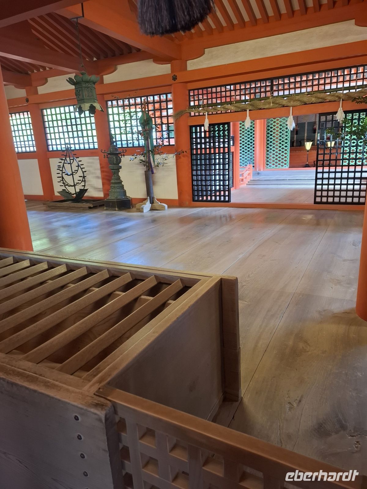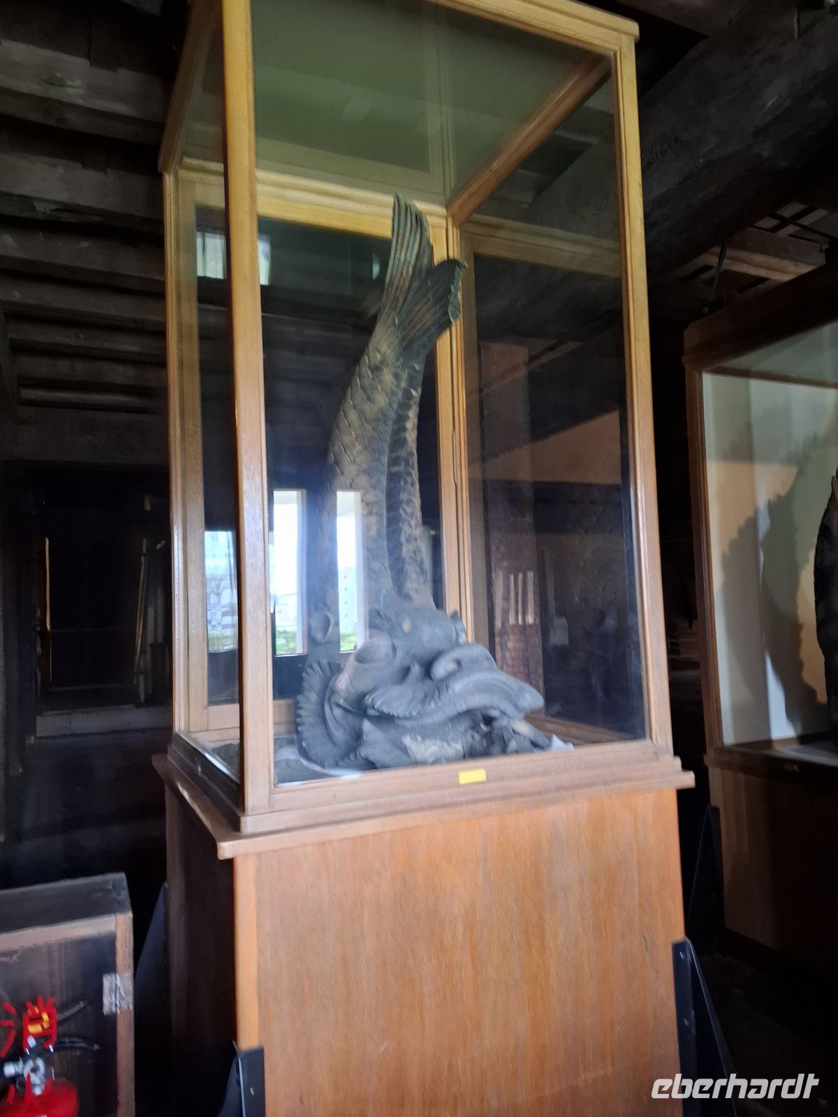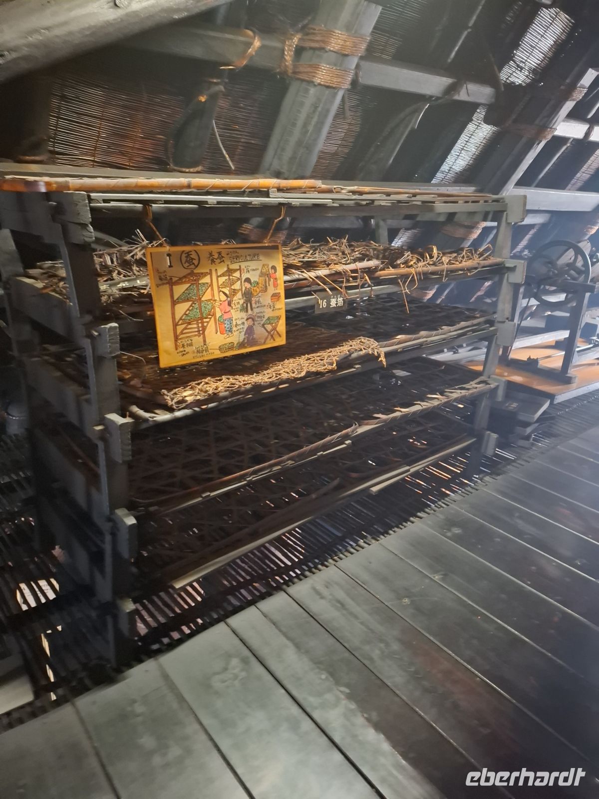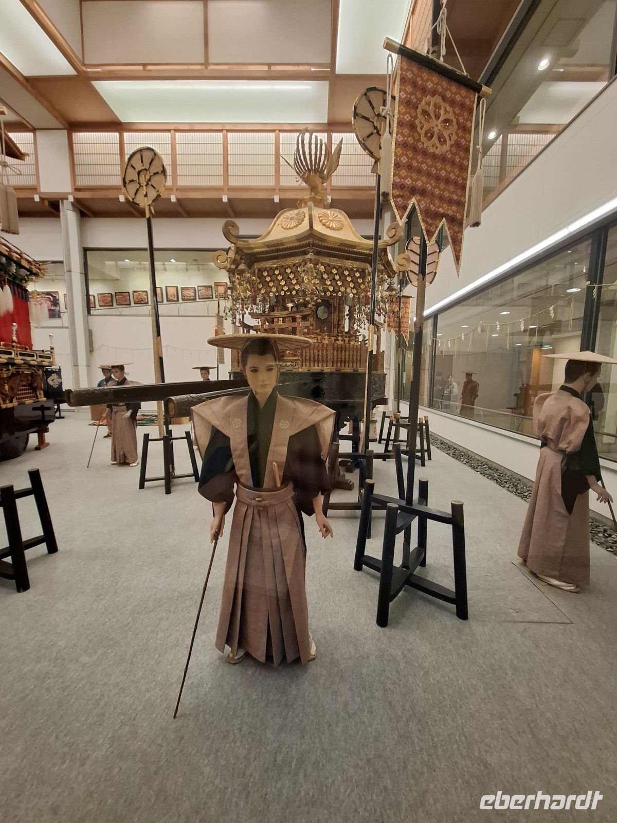 Am späten Vormittag treffen wir uns am Hotel wieder und gemeinsam mit Makino San fahren wir zum ca. eine Stunde entfernten Dorf Shirakawago, ein malerischer Ort mit schilfgedeckten Bauernhäusern, das von der UNESCO in seiner Gesamtheit zum Weltkulturerbe erklärt wurde. Gemeinsam mit Gudrun spazieren wir entlang der Straßen, da wir noch ein wenig Zeit haben, bis wir eines der Häuser von innen besichtigen dürfen. Aber hinter jeder Ecke verbirgt sich ein neues, tolles Fotomotiv. Das Dorf, das auch heute noch von ca. 1.600 Einwohnern belebt wird, würde in Deutschland unter dem Begriff Museumsdorf zu erleben sein. Bis 1929 betrieb man hier in Shirakawago noch Seidenraupenzucht und es war nicht unüblich, dass bis 40 Personen in einem der Häuser gemeinsam lebten. Schließlich dürfen wir eines der Kanda-Häuser betreten und bei einer Führung lauschen wir den Ausführungen Gudruns zum Aufbau eines solchen Hauses, was wichtig war für die Einrichtung und sie zeigt uns auch die reetgedeckten Dächer von Innen. Nach einer gewissen Zeit, die wir individuell in Shirakawago gestalten, kehren wir nach Takayama zurück und besuchen den Kaikan Takayama Yatai, der sich vor dem wichtigen Shinto Schrein Sakurayama Hachimangu befindet. Hier bestaunen wir die berühmten Yatai-Wagen, die während des sogenannten Takayama Float Cart Festival aus den "Garagen" geholt und präsentiert werden. Diese Wagen bestechen durch ihre Farbenfreude und aufwendigen Details und erzählen von der Geschichte und Tradition der Stadt Takayama.