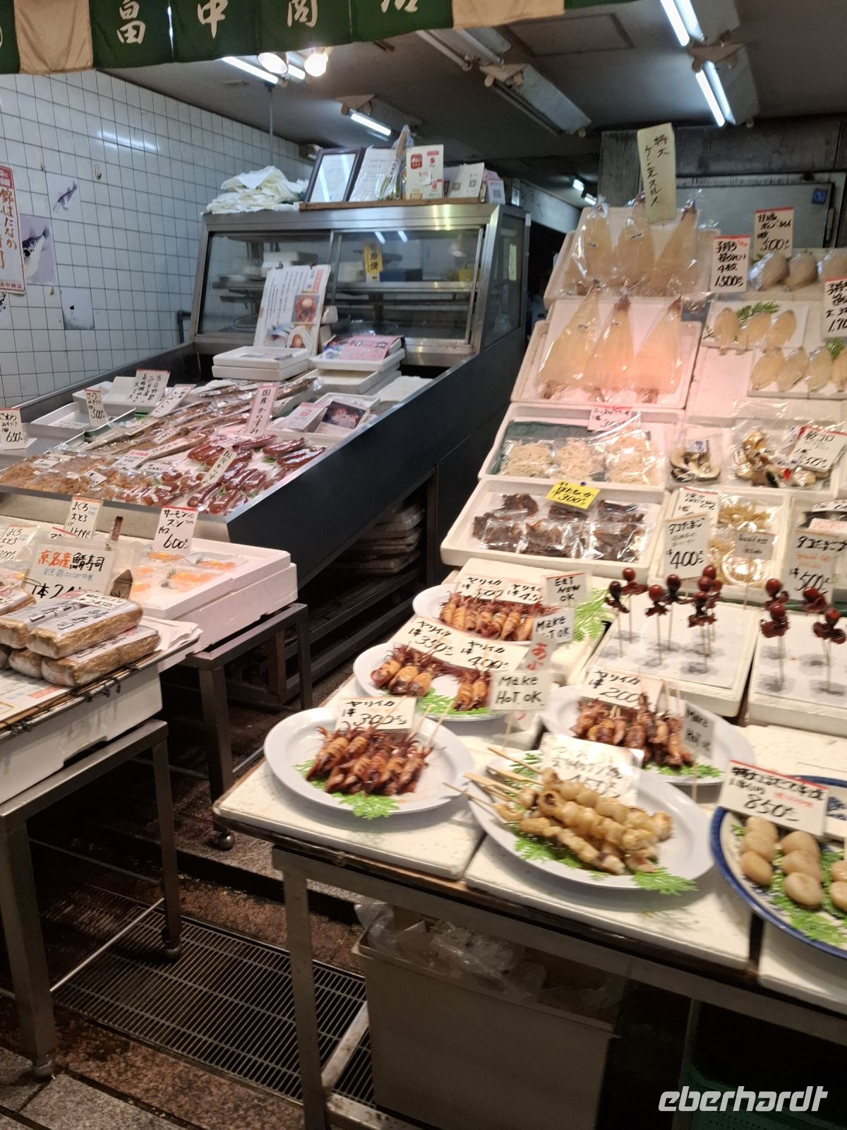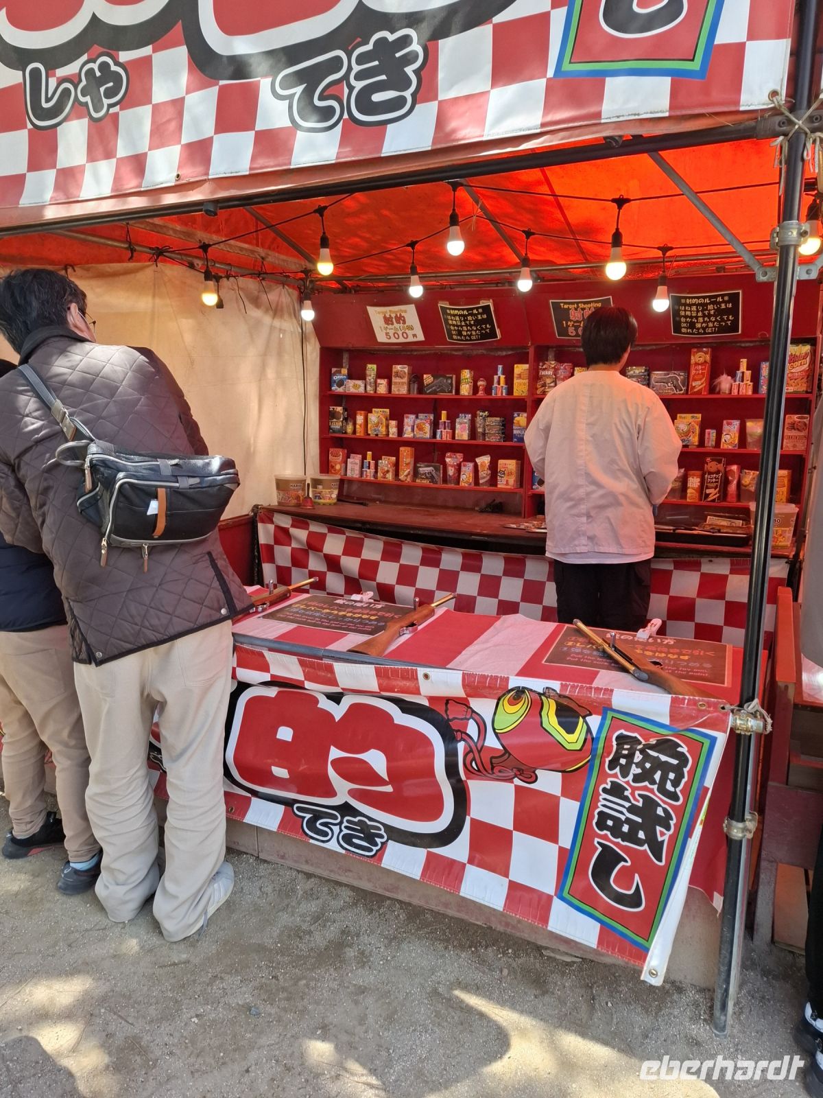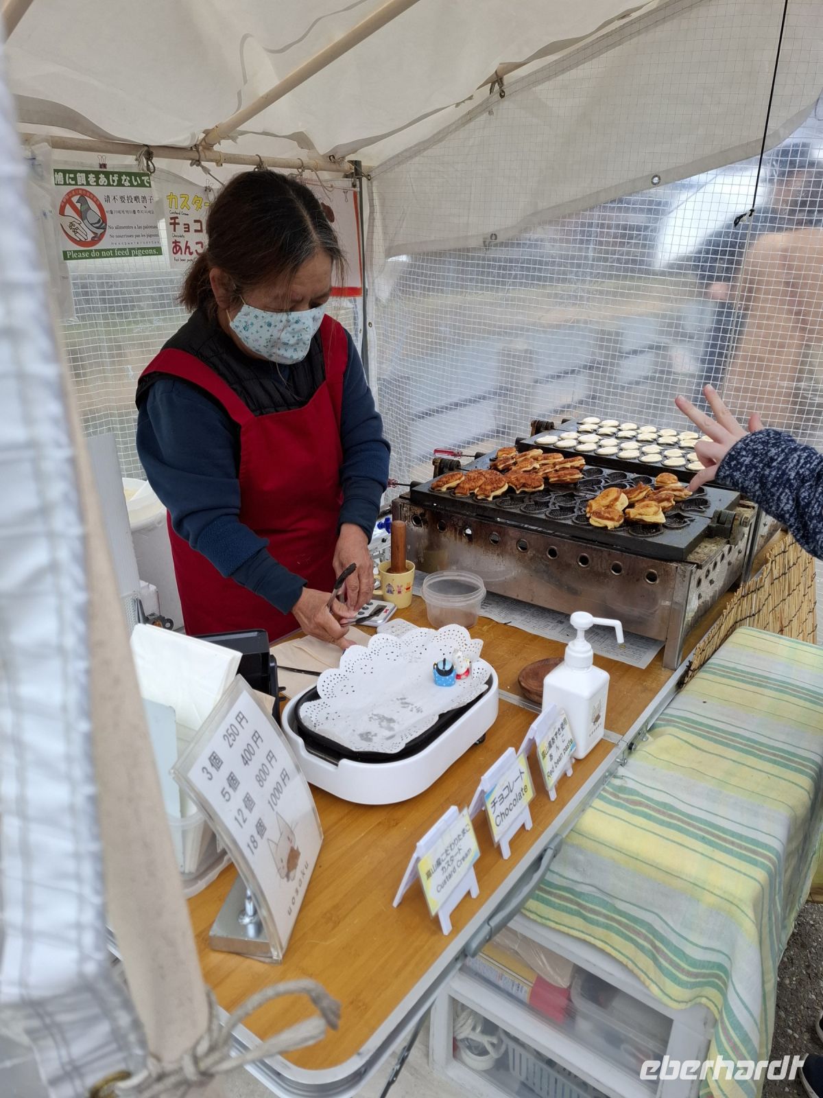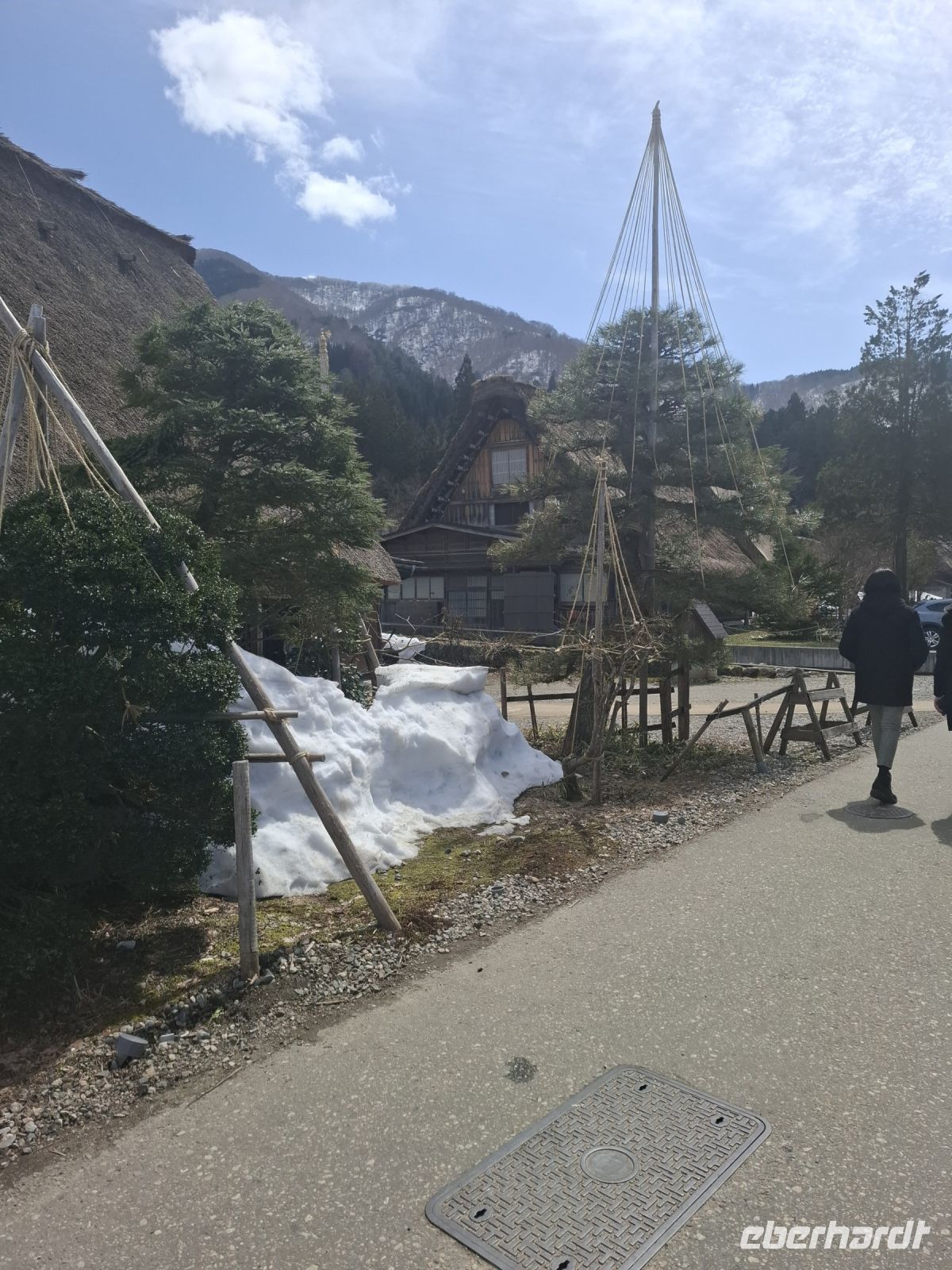 Wir dürfen heute etwas länger schlafen und treffen uns 09:00 Uhr an der Hotelrezeption. Noch schnell werden die letzten deutschsprachigen Stadtpläne ausgeteilt und schon beginnen wir mit unserer kleinen Stadtbesichtigung durch die architektonisch noch gut erhaltene Altstadt Takayamas. Dafür spazieren wir rund 10 Minuten zu Fuß von unserem Hotel bis wir die Hauptgasse/-straße in der Altstadt erreicht haben. Wir flanieren entlang der Straße und Gudrun erzählt uns die ein oder andere wichtige Information zu den Läden und Restaurants, die langsam aber sicher zum Leben erwecken, sozusagen langsam ihre Ladentüren öffnen. Hier gibt es neben Souvenirs auch die Ess-Stäbchen zu kaufen, für deren Produktion Takayama bekannt ist. Anschließend schlendern wir über den großen Morgenmarkt, der sich entlang des Flusses Myagawas erstreckt. Auch hier findet sich der ein oder andere Souvenirladen aber auch kleine Imbisse an den man süße Leckereien, Süßkartoffelbrei aber auch Fisch sowie frisches Obst kaufen kann. Der Einblick ist schon sehr interessant, auch wenn es uns aufgrund des kalten Wetters ziemlich fröstelt. Nachdem Gudrun ihre Ausführungen beendet hat, genießen wir ein wenig freie Zeit, die wir zum Einkauf von Souvenirs nutzen sollten, denn so viel Freizeitmöglichkeiten werden wir in den kommenden Tagen nicht mehr haben um zu shoppen.