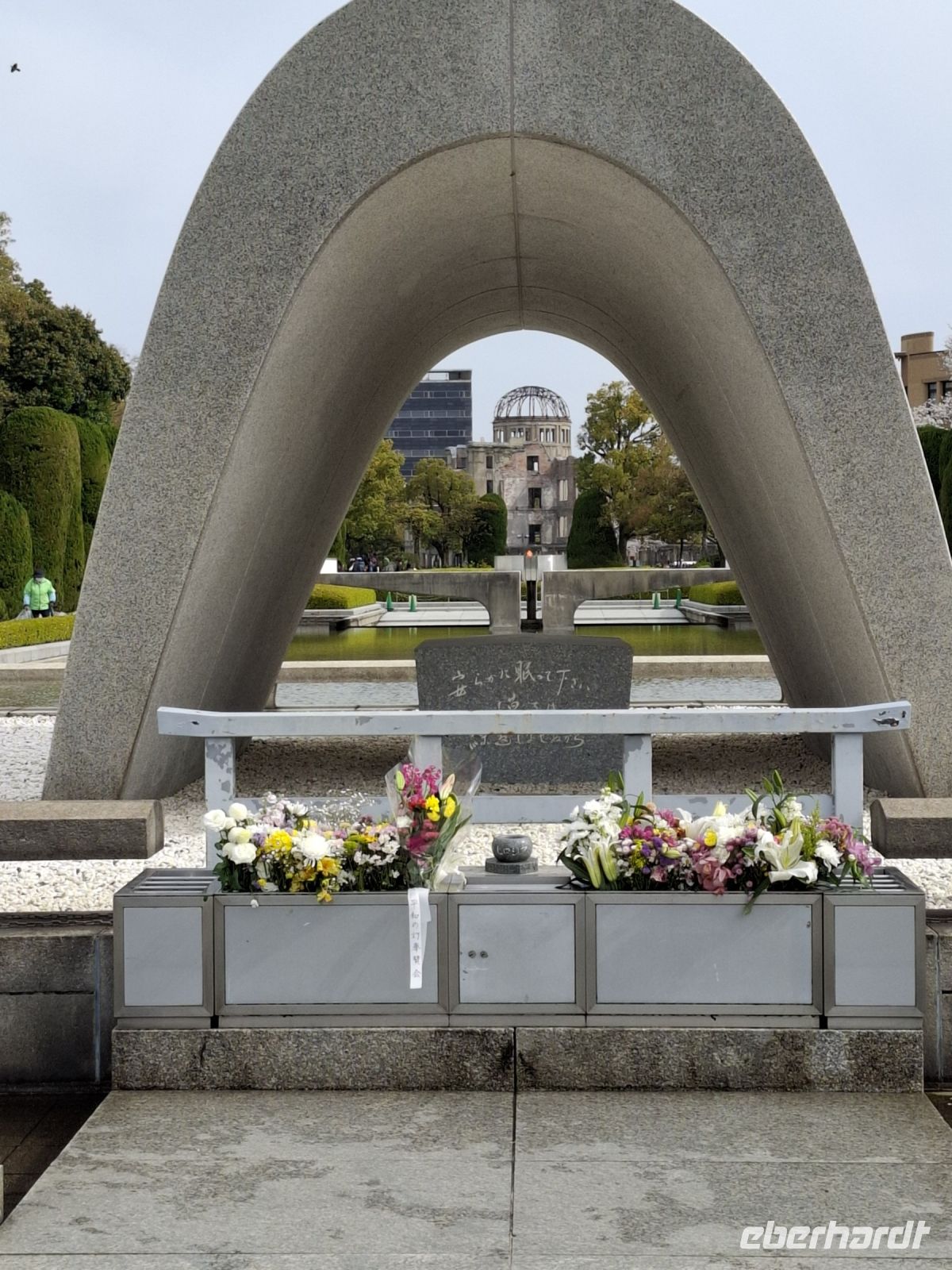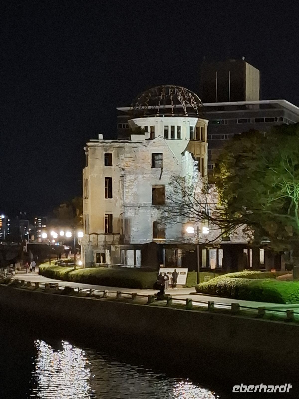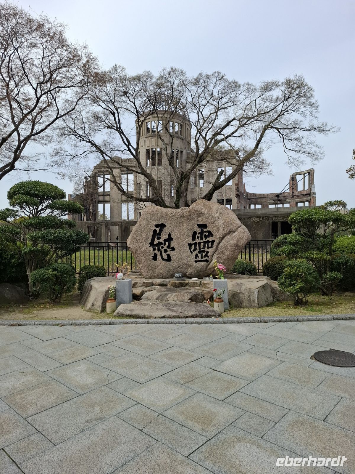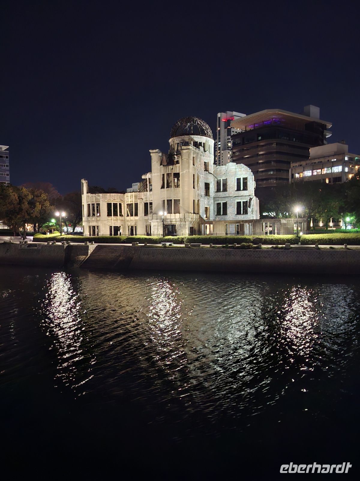 Heute steht ein eher beklemmendes Thema auf unserem Vormittagsprogramm. Gemeinsam mit Gudrun spazieren wir zum nahgelegenen Hiroshima Peace Memorial Museum und von dort aus weiter zum Mahnmal, das den Opfern des Atombombenabwurfs vom 06.08.1945 gewidmet ist. Hier geht sie auf die (Vor-)geschichte zum Bombenabwurf ein und beleuchtet neben den politischen Fakten auch die menschlichen Tragödien, die sich vor 80 Jahren abgespielt haben. Wir gehen weiter zum ewigen Feuer und von dort aus spazieren wir mit Gudrun zu der Stelle, an der die Atombombe abgeworfen wurde. Unser Rundgang führt uns auch vorbei am Atombomben-Dom, über die Aioi-Brücke, zur Friedensglocke und auch zum Denkmal für das Mädchen Sadako Sasiki mit ihrer Geschichte der 1.000 Kraniche. Nach dem inhaltlichen Input geht es für uns nun zurück zum Hiroshima Peace Memorial Museum, wo wir ausreichend Zeit haben, durch das Museum zu ziehen und uns die Ausstellung anzuschauen. Es wird ein immer beklommeneres Gefühl und es ist schier unbegreiflich, wozu die Menschheit fähig ist.