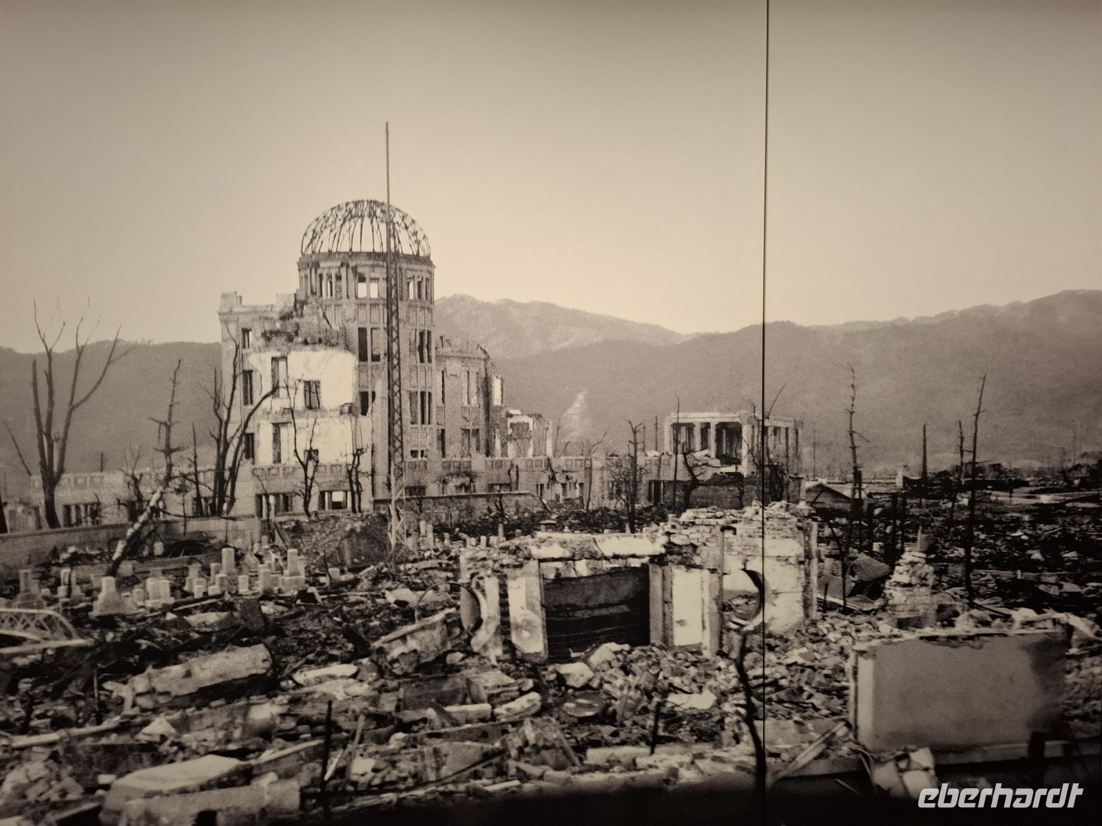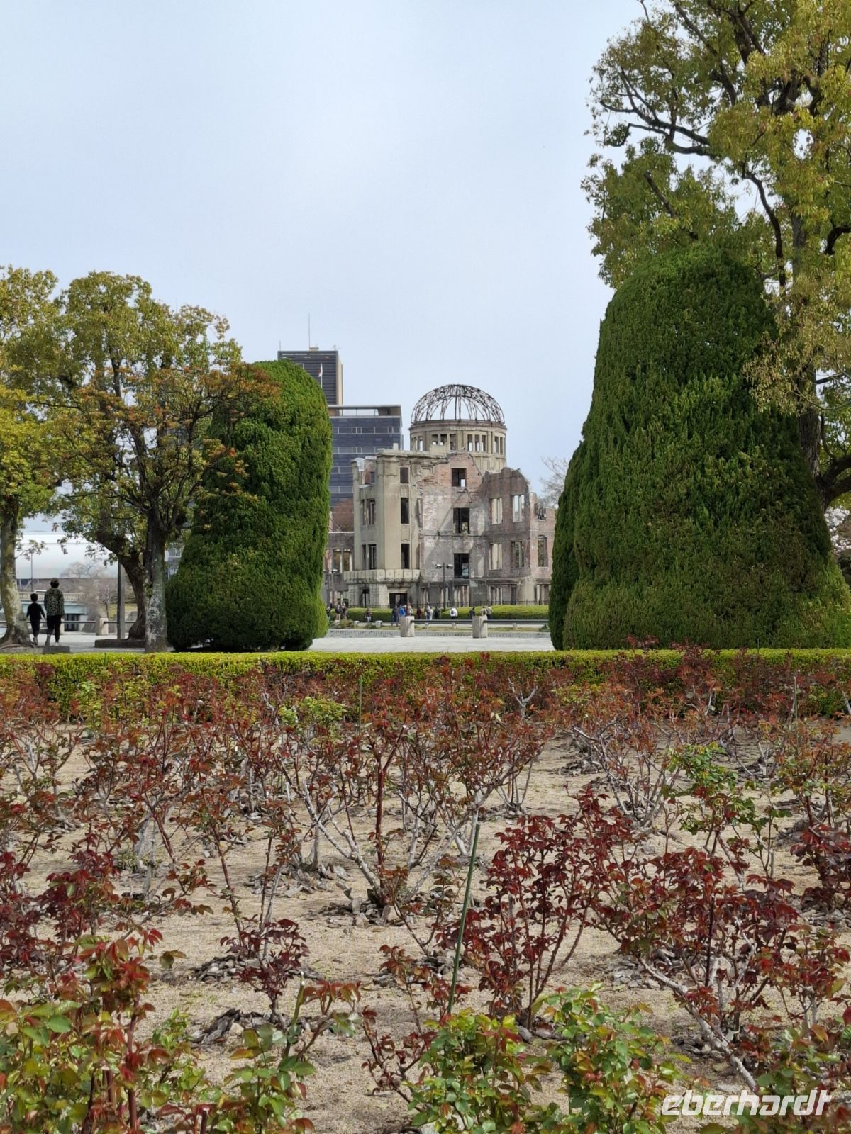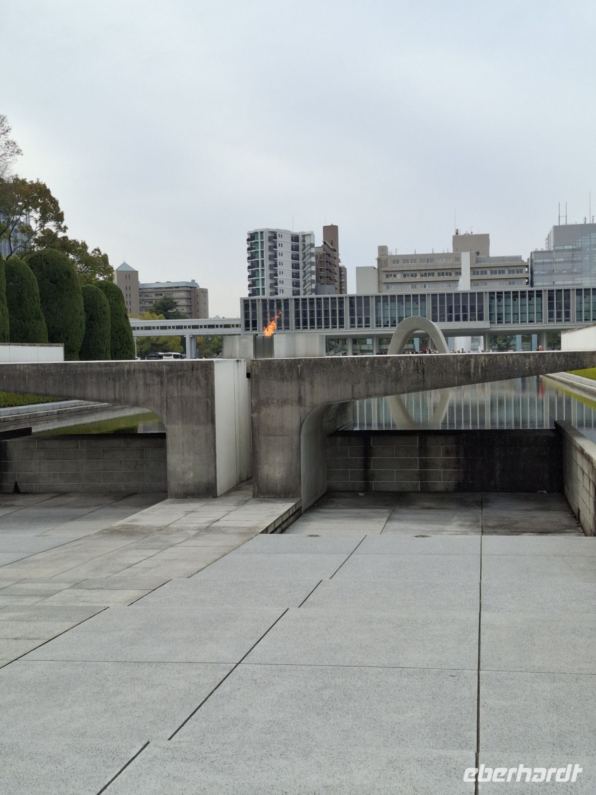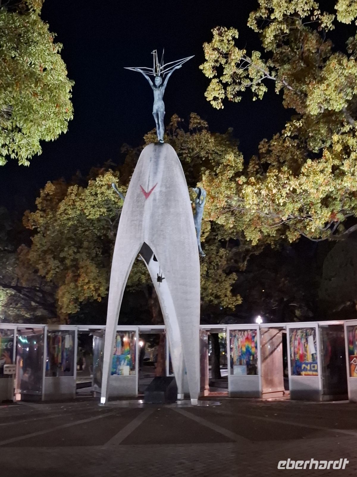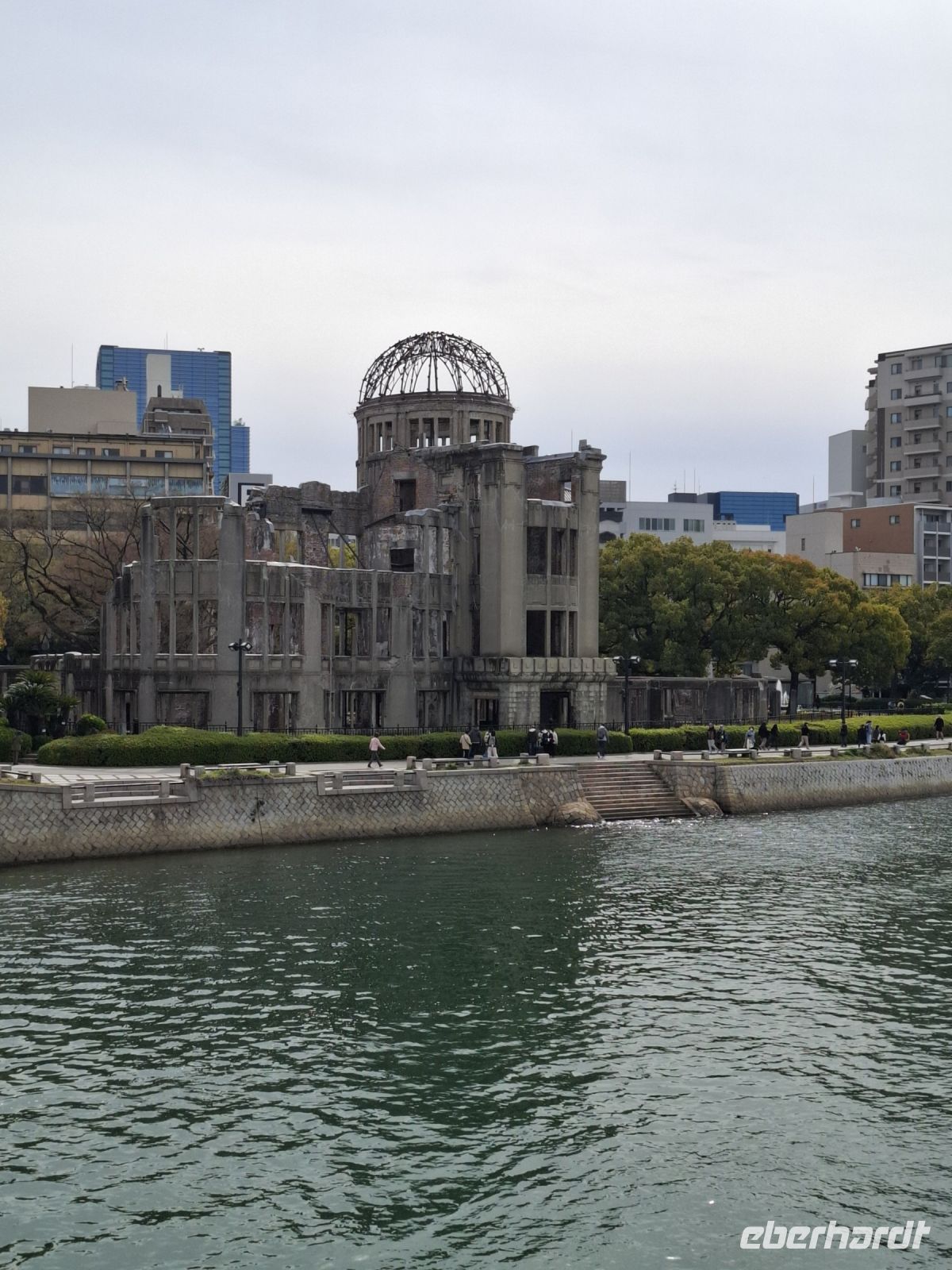 Heute steht ein eher beklemmendes Thema auf unserem Vormittagsprogramm. Gemeinsam mit Gudrun spazieren wir zum nahgelegenen Hiroshima Peace Memorial Museum und von dort aus weiter zum Mahnmal, das den Opfern des Atombombenabwurfs vom 06.08.1945 gewidmet ist. Hier geht sie auf die (Vor-)geschichte zum Bombenabwurf ein und beleuchtet neben den politischen Fakten auch die menschlichen Tragödien, die sich vor 80 Jahren abgespielt haben. Wir gehen weiter zum ewigen Feuer und von dort aus spazieren wir mit Gudrun zu der Stelle, an der die Atombombe abgeworfen wurde. Unser Rundgang führt uns auch vorbei am Atombomben-Dom, über die Aioi-Brücke, zur Friedensglocke und auch zum Denkmal für das Mädchen Sadako Sasiki mit ihrer Geschichte der 1.000 Kraniche. Nach dem inhaltlichen Input geht es für uns nun zurück zum Hiroshima Peace Memorial Museum, wo wir ausreichend Zeit haben, durch das Museum zu ziehen und uns die Ausstellung anzuschauen. Es wird ein immer beklommeneres Gefühl und es ist schier unbegreiflich, wozu die Menschheit fähig ist.