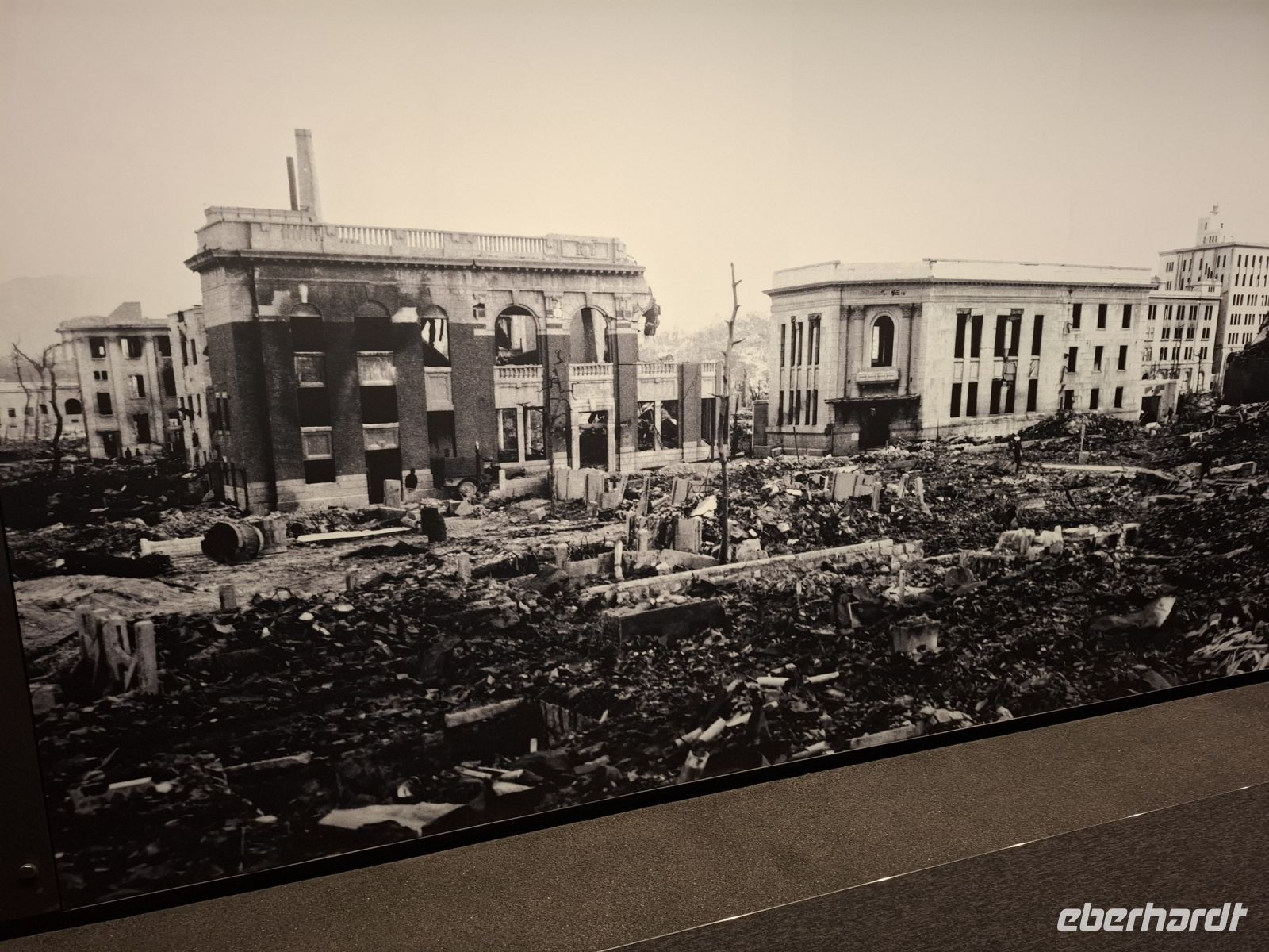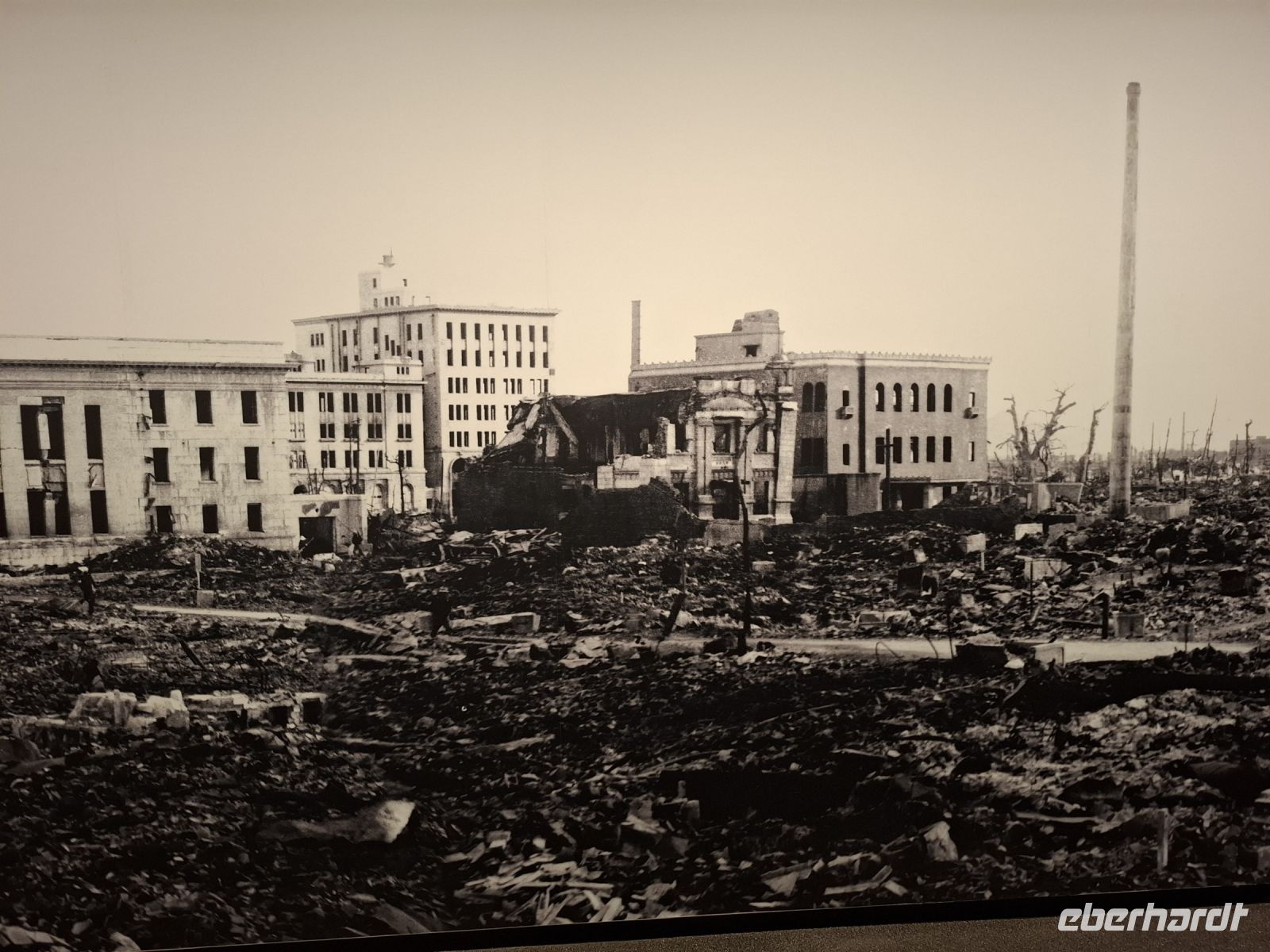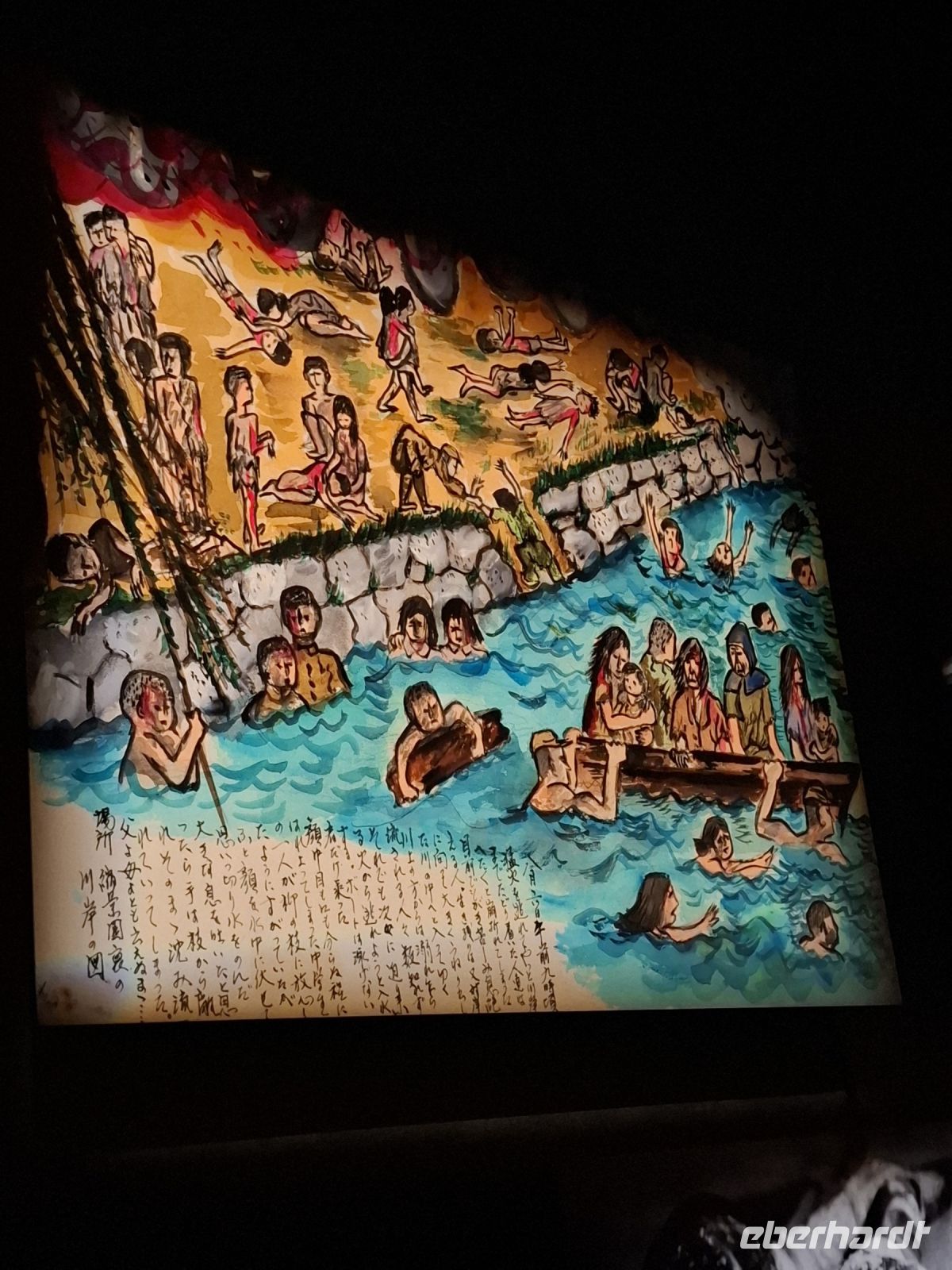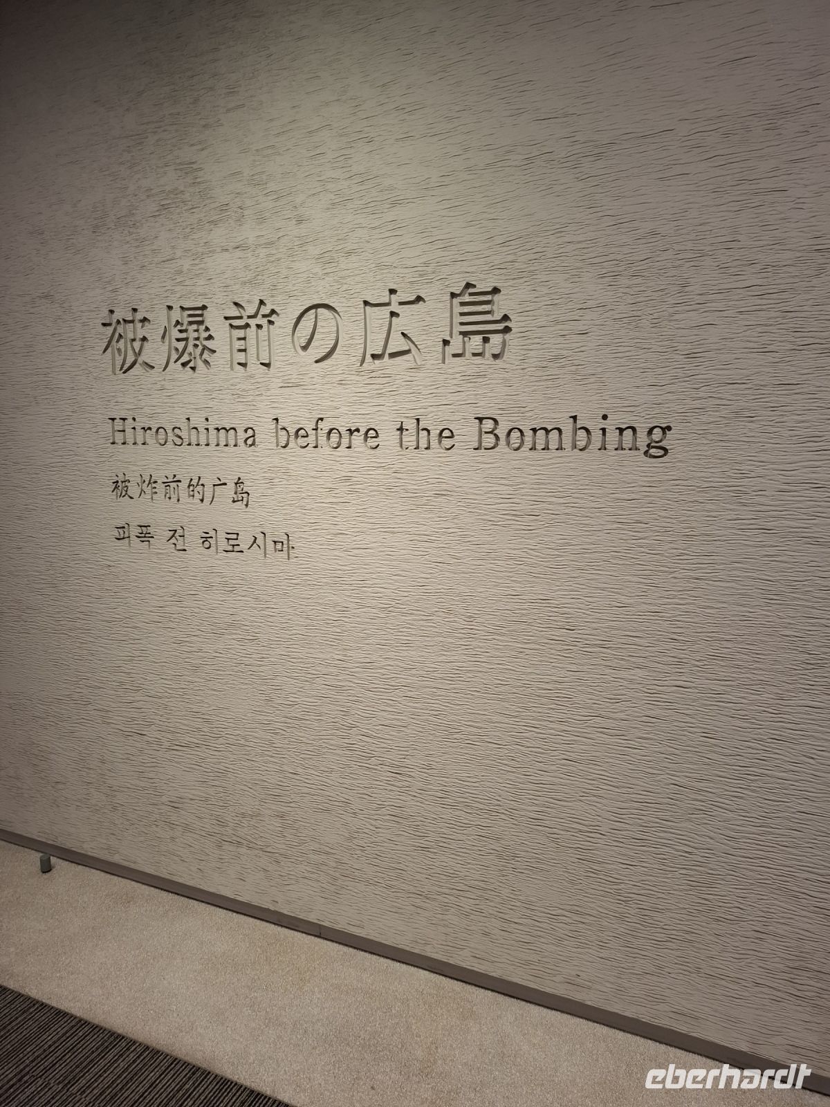 Heute steht ein eher beklemmendes Thema auf unserem Vormittagsprogramm. Gemeinsam mit Gudrun spazieren wir zum nahgelegenen Hiroshima Peace Memorial Museum und von dort aus weiter zum Mahnmal, das den Opfern des Atombombenabwurfs vom 06.08.1945 gewidmet ist. Hier geht sie auf die (Vor-)geschichte zum Bombenabwurf ein und beleuchtet neben den politischen Fakten auch die menschlichen Tragödien, die sich vor 80 Jahren abgespielt haben. Wir gehen weiter zum ewigen Feuer und von dort aus spazieren wir mit Gudrun zu der Stelle, an der die Atombombe abgeworfen wurde. Unser Rundgang führt uns auch vorbei am Atombomben-Dom, über die Aioi-Brücke, zur Friedensglocke und auch zum Denkmal für das Mädchen Sadako Sasiki mit ihrer Geschichte der 1.000 Kraniche. Nach dem inhaltlichen Input geht es für uns nun zurück zum Hiroshima Peace Memorial Museum, wo wir ausreichend Zeit haben, durch das Museum zu ziehen und uns die Ausstellung anzuschauen. Es wird ein immer beklommeneres Gefühl und es ist schier unbegreiflich, wozu die Menschheit fähig ist.