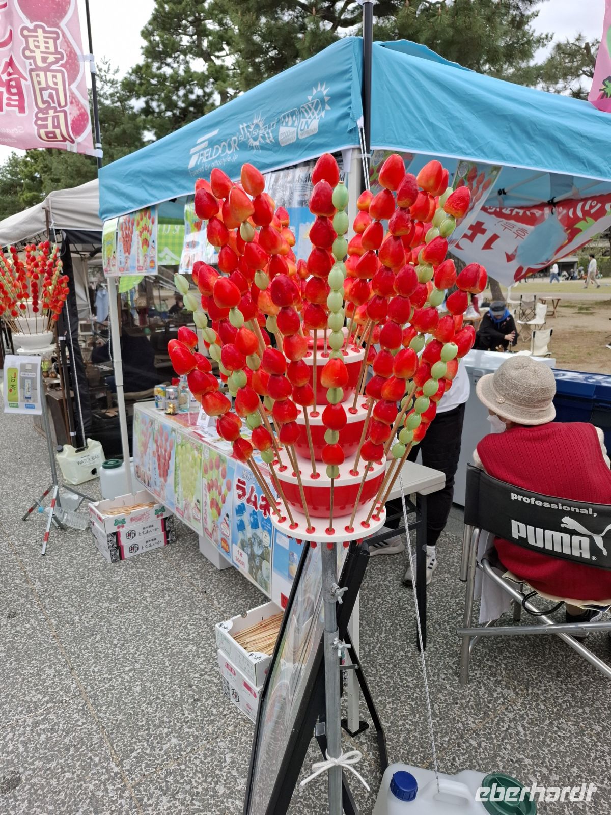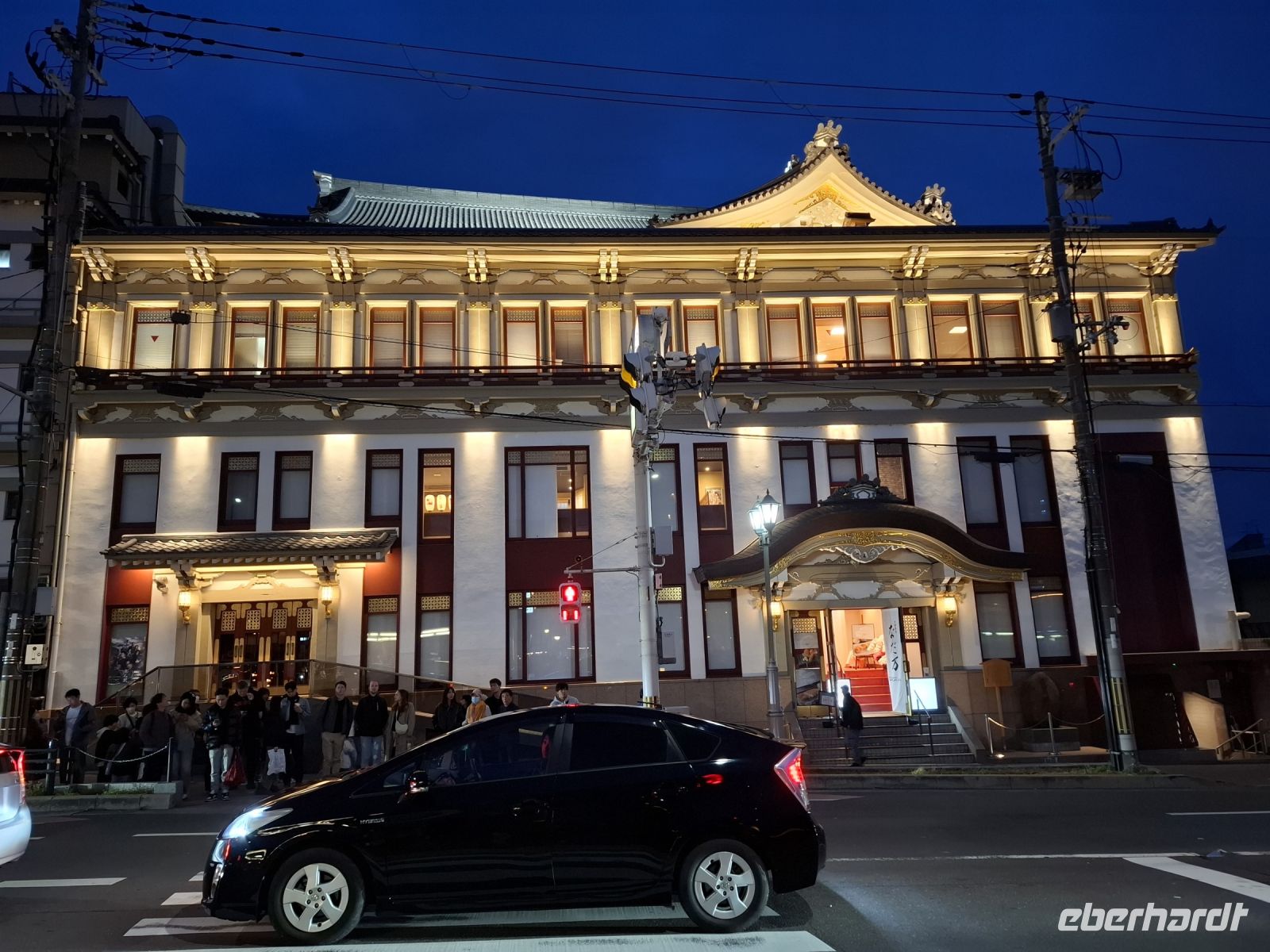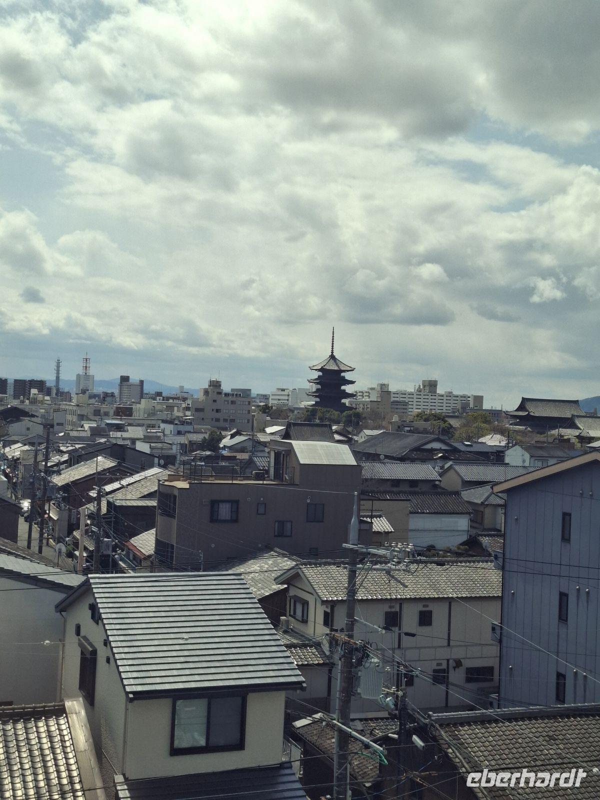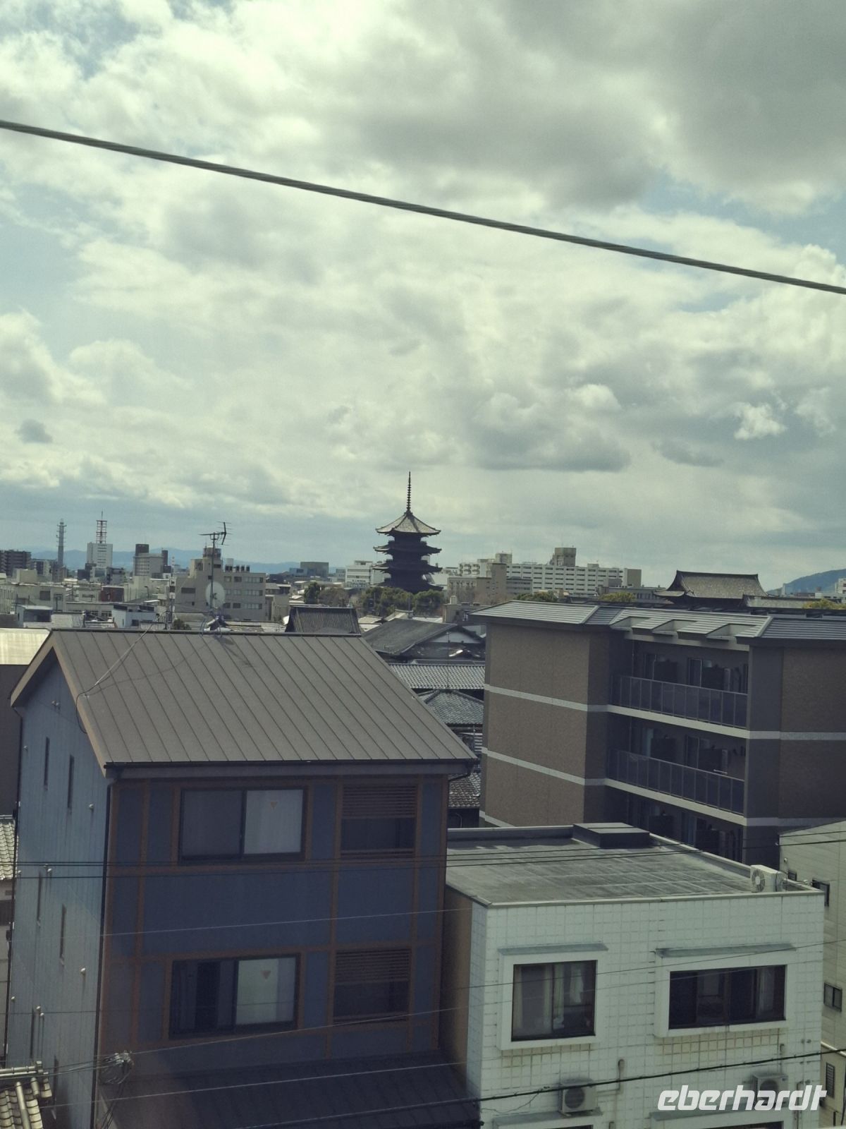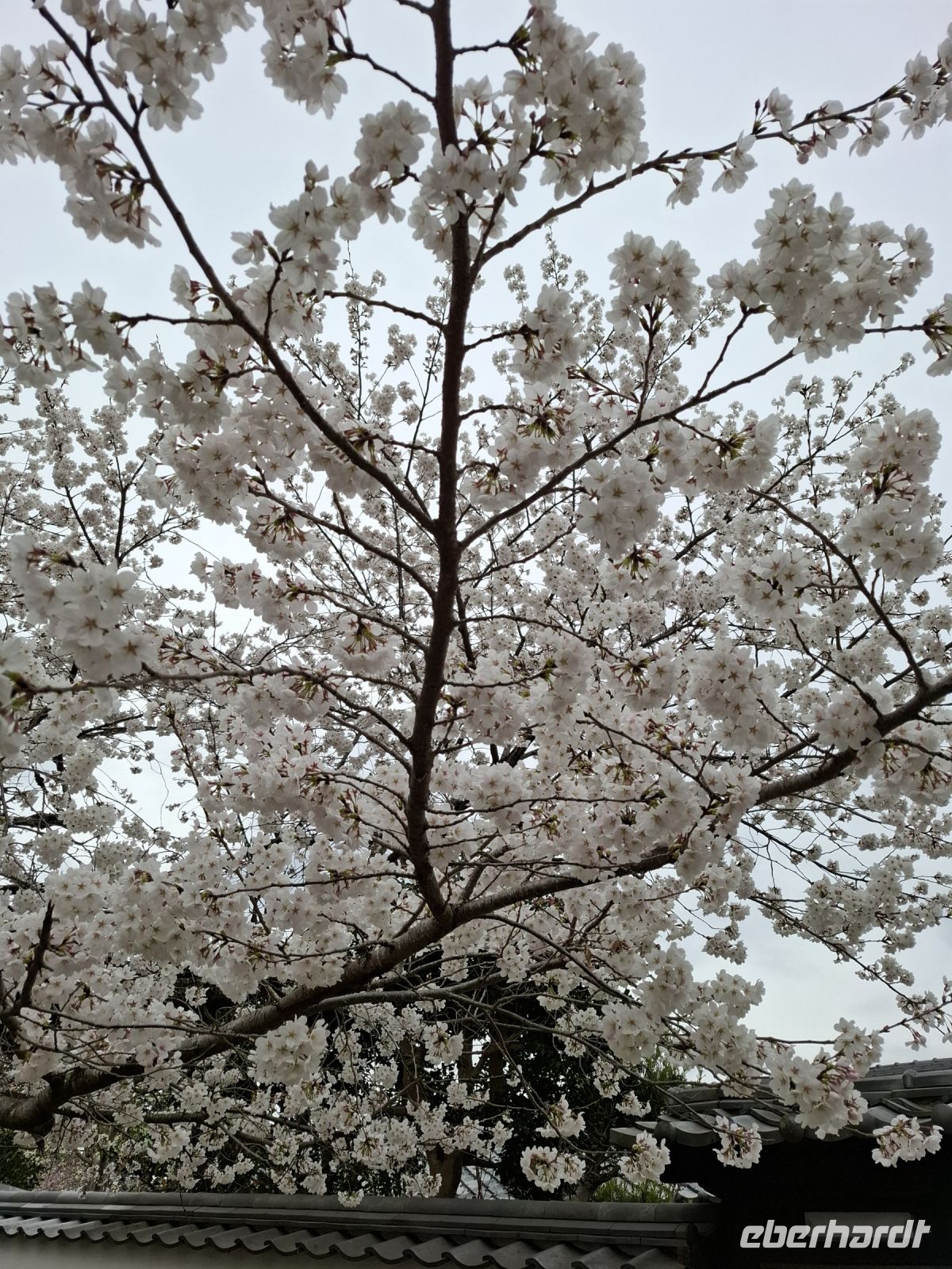 Gegen Mittag treffen wir uns an der Hotellobby, holen unser Gepäck ab und warten auf die bestellten Taxen, die uns zum Bahnhof von Hiroshima fahren. Hier besteigen wir erneut den Shinkanzen, erst im falschen Wagen, aber da meine Gruppe sehr flexibel ist, nimmt sie Gudrun und mir den kleinen Fehler nicht übel. Auf den richtigen Sitzreihen Platz genommen, fahren wir von Hiroshima, noch einmal an Himeji vorbei, nach Kyoto, unserer letzten Station auf dieser Reise. Während ich auf unser Reisegepäck aufpasse, unternimmt Gudrun mit unserer Reisegruppe eine kleine Führung durch den Bahnhof von Kyoto, der durch seinen besonderen Baustil besticht. Nach dem Hotel-Checkin steht uns der restliche Abend frei zur individuellen Gestaltung. Ein Teil meiner Reisegruppe besucht das Gion-Theater in der Nähe der "Geisha"-Straße. Hier treffe ich zum späteren Abend ein paar Gäste und gemeinsam spazieren wir zum Yakama-Schrein, an dem das Kirschblütenfest gefeiert wird. Zahlreiche Imbissstände bieten unterschiedliche Leckereien an und viele Touristen als auch Einheimische lassen sich diesen Spaß nicht entgehen.
