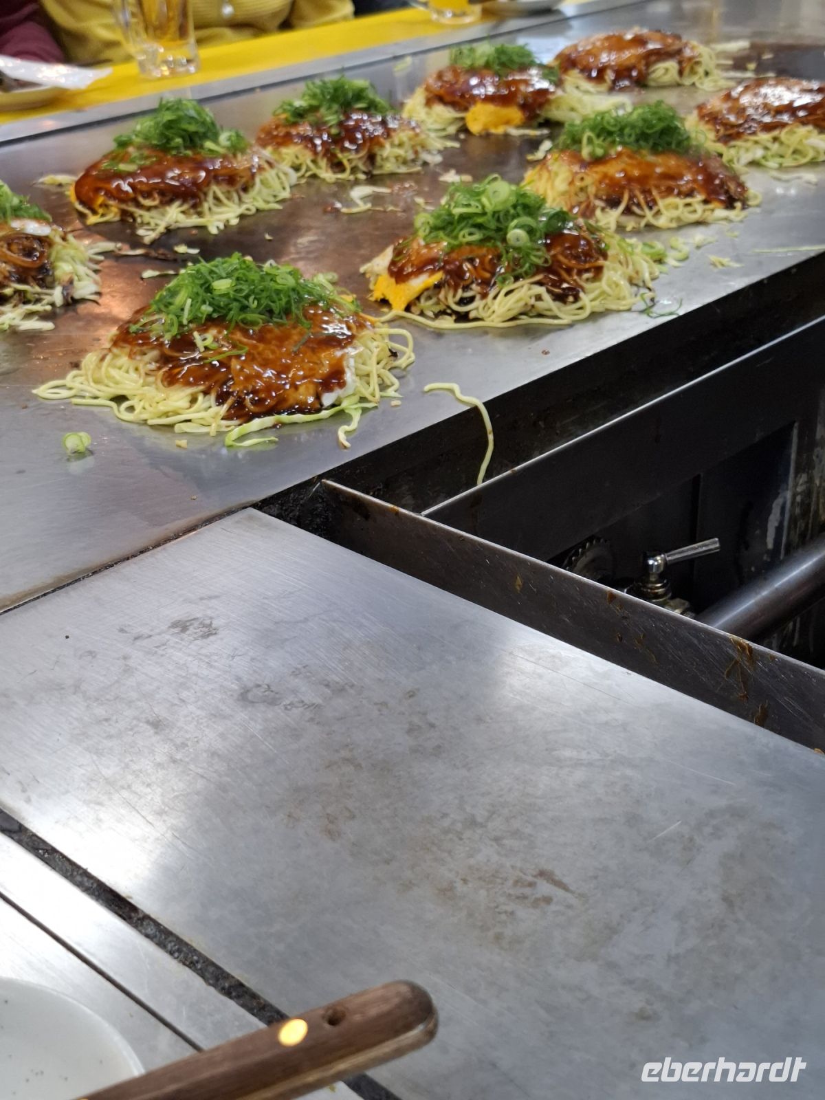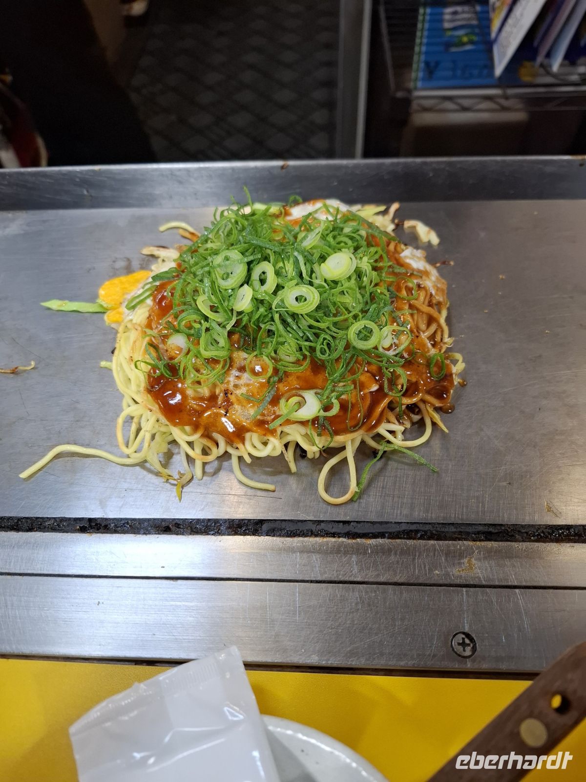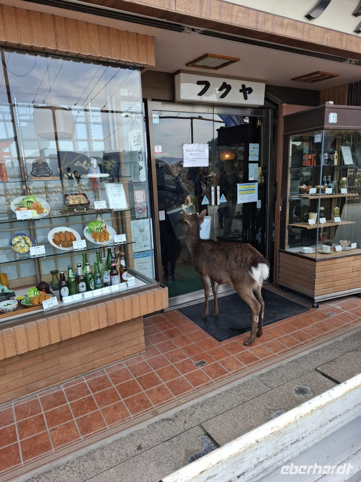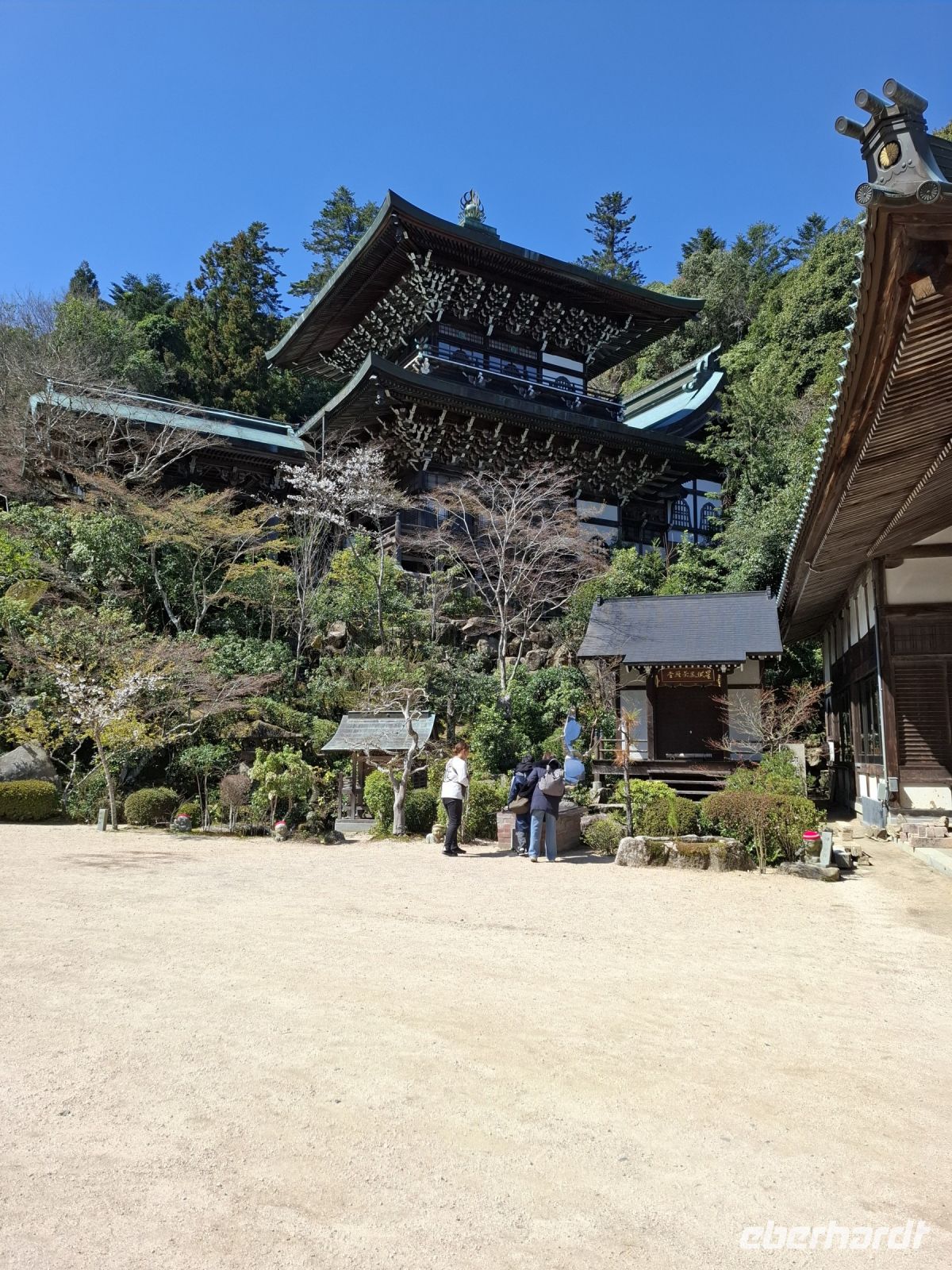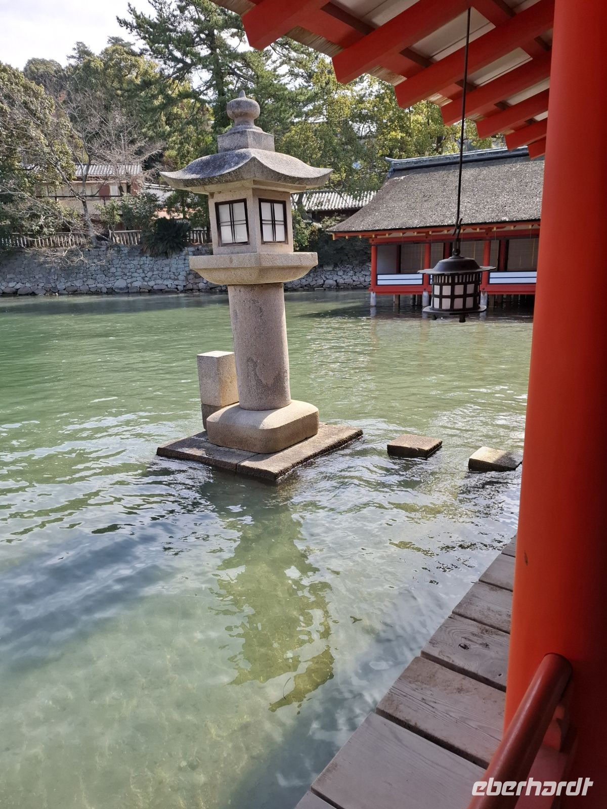 Im Hotel "The Knot" wird uns zum ersten Mal auf dieser Reise ein westliches Frühstück serviert. Müsli, Obst und Salat holen wir uns vom Buffet und bei dem Warmanteil können wir aus einer Speisekarte auswählen. Auch wenn heute eigentlich nicht ganz so viel Programm auf unserem Plan steht, treffen wir uns gegen halb, um zum nahegelegenen Bootsanleger zu spazieren. Auf dem Weg dahin begleitet uns ein Fluss an dessen Ufer wiederum Kirschbäume zu finden sind. So langsam aber sich befinden wir uns tatsächlich inmitten der beginnenden Kirschblüte - ein sehr schöner Anblick, der uns bei jedem Baum zum neuen Strahlen bringt. Kurz vor neun Uhr legt die Direktfähre, die wir aufgrund des hohen Wasserstandes noch nutzen können ab und nach rund 45 Minuten Fahrt erreichen wir die Insel Miyajima. Nachdem wir die Fähre verlassen haben, begegnen wir auch dem ersten Reh und Gudrun zeigt uns den Ort, wo wir uns am Mittag wieder treffen werden. Da wir so zeitig da sind, haben wir Glück, dass die Insel noch nicht so sehr überlaufen ist, wie sie dann am Mittag sein wird. Zudem ist noch viel Wasser da, so das wir das O-torri-Tor auch so fotografieren können, wie wir es von den Bildern her kennen. Der Tidenhub wird heute sehr groß sein: 3,15 Meter. Gemeinsam spazieren wir nun zum O-torri-Tor und trotz zahlreicher Touristen haben wir ausreichend Zeit und Möglichkeiten, dieses bekannte Tor zu fotografieren und in uns gedanklich aufzunehmen. Im Itsukushima-Schrein, den wir ums im Anschluss anschauen, haben wir das große Glück, einer Hochzeitszeremonie beizuwohnen. Es ist sehr eindrucksvoll und ehrfürchtig. Und das Brautpaar sieht sichtlich stolz aus und freut sich über so viel Interesse an ihrer Hochzeit. Was für ein außergewöhnlicher Zufall, das wir dies so miterleben durften. Auf dem Weg zum Daishoin-Tempel erfahren wir von Gudrun, dass heutzutage bereits 6000 Menschen auf der Insel Miyajima wohnen, eine beeindruckende Zahl. Auf dem Weg zum Schrein nutzen ein paar Gäste meiner Reisegruppe die Möglichkeit, die Glücksglocke erklingen zu lassen und wir hoffen nun alle, dass Glück ihr ständiger Begleiter sein wird. Nach den Gudruns Erklärungen im Tempel und den Besuch einer kleinen Grotte, löst sich unsere Reisegruppe auf und wir haben nun freie Zeit, um die Insel Miyajima für uns entdecken. Gegen Mittag, als die Touristenströme immer mehr werden, treffen wir uns und nehmen nun eine andere Fähre zurück auf das Festland. Wir erreichen einen Vorort von Hiroshima und setzen unsere weitere Rückfahrt mit zwei Metrolinien fort. Zurück am Hotel steht der Nachmittag unter dem Motto: freie Zeit. Einige Gäste kaufen ein paar Souvenirs, andere wiederum haben sich vorab von der Gruppe gelöst, um die Friedensburg zu besichtigen. Am Abend treffen wir uns am Hotel wieder, um gemeinsam in mehrere Taxen zu einem lokalen Restaurant zu fahren. Hiroshima ist nicht nur durch abscheuliche Kriegserlebnisse bekannt sondern auch für "japanische Pizza", die wir heute in einem typischen Okonomiyaki-Restaurant probieren.