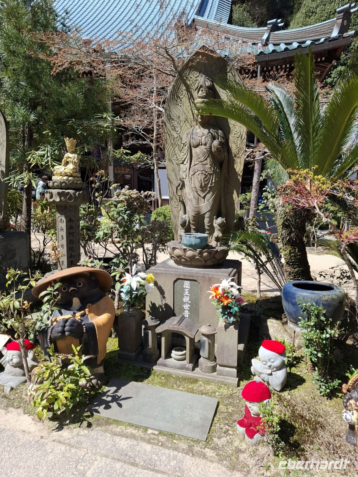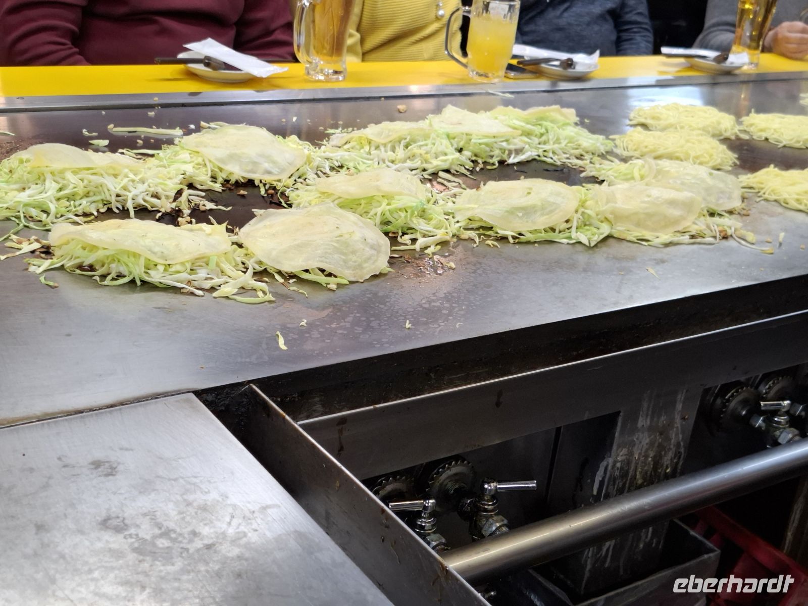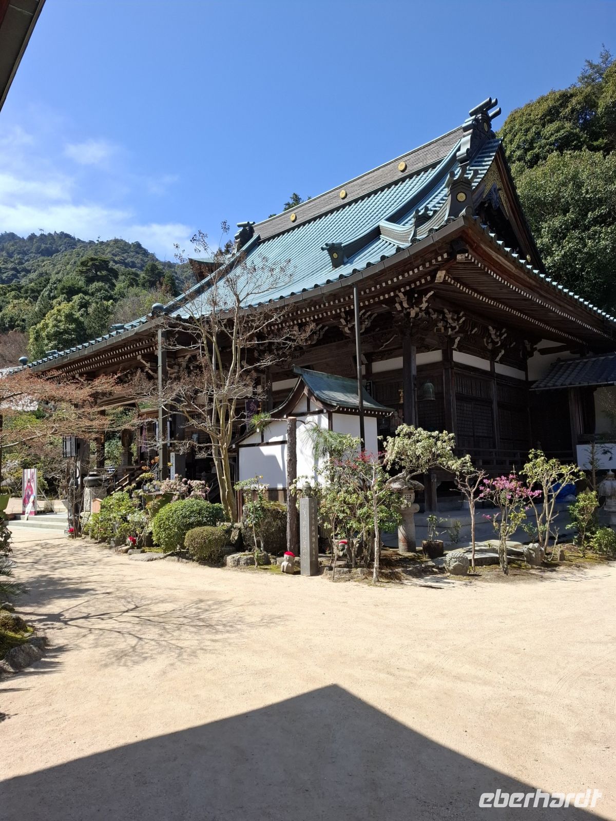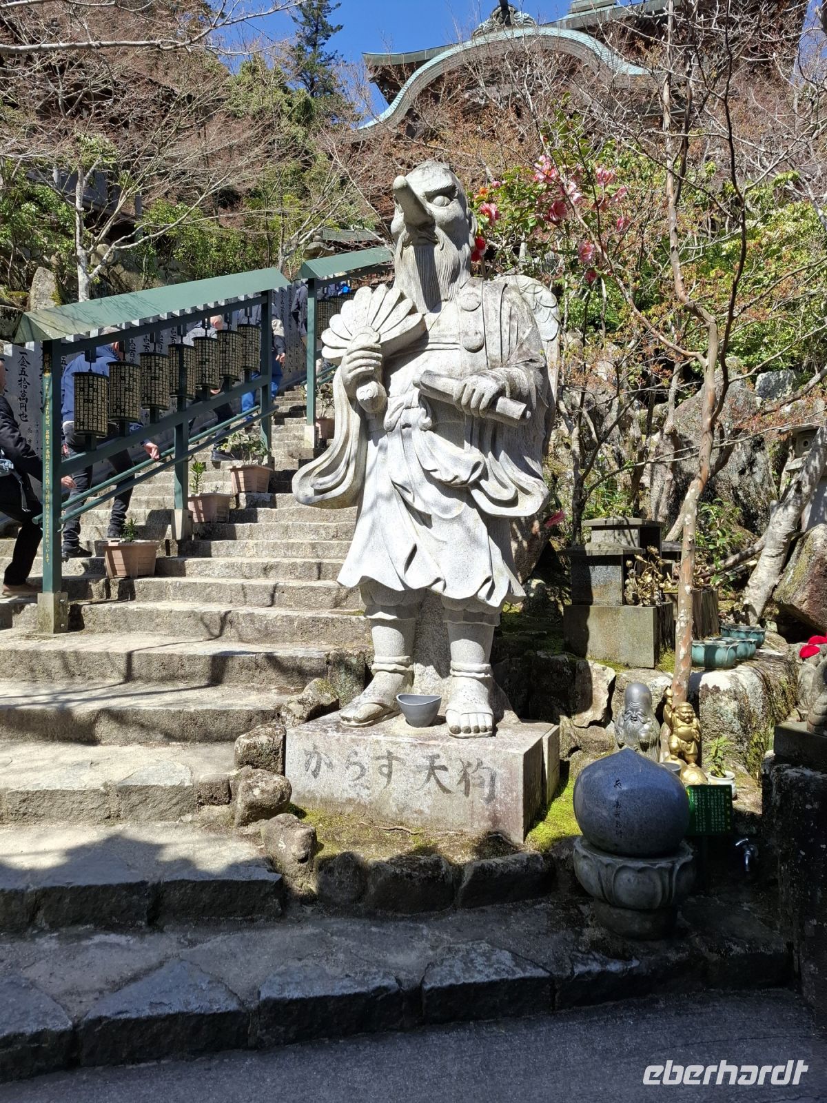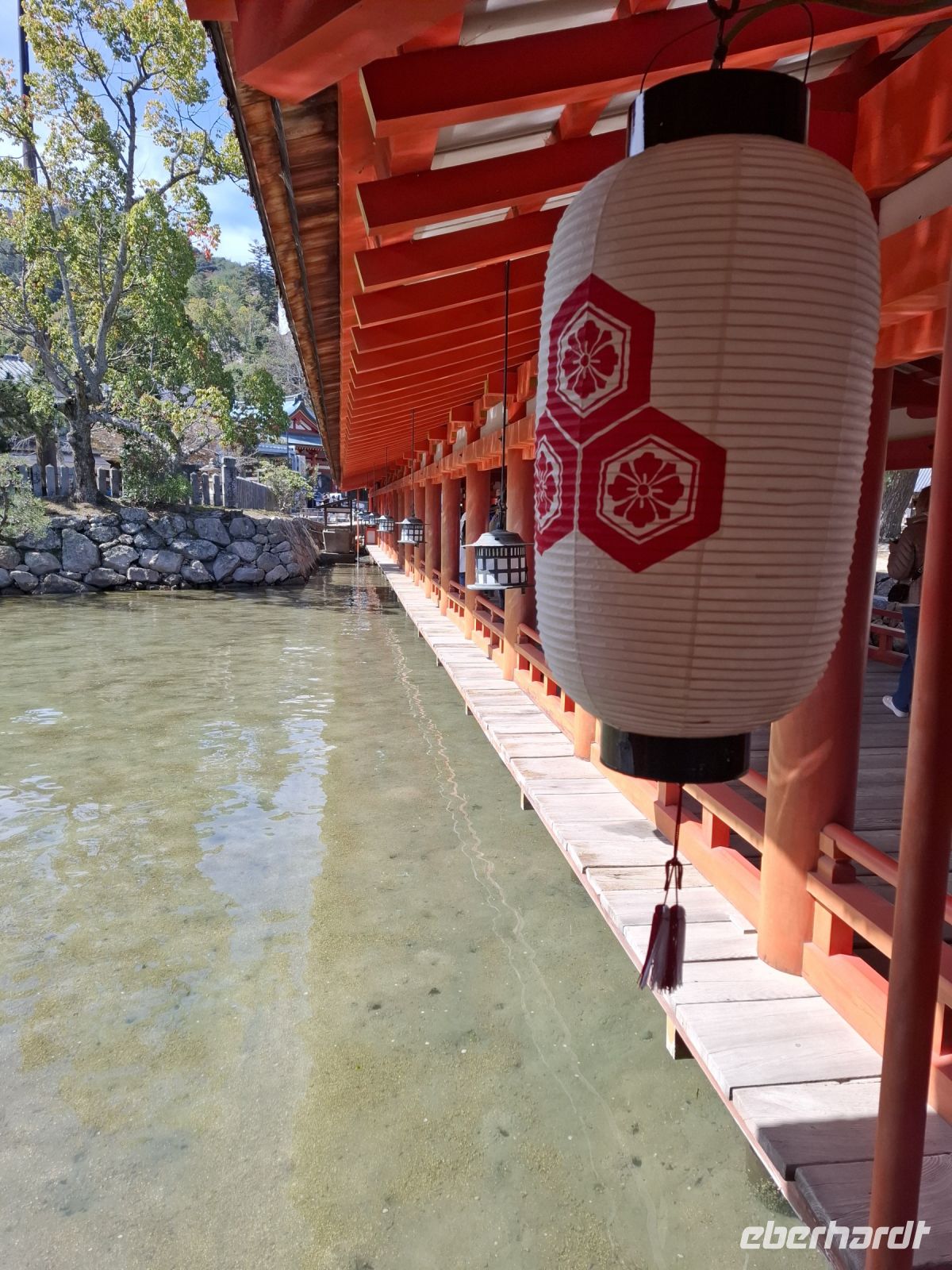 Im Hotel "The Knot" wird uns zum ersten Mal auf dieser Reise ein westliches Frühstück serviert. Müsli, Obst und Salat holen wir uns vom Buffet und bei dem Warmanteil können wir aus einer Speisekarte auswählen. Auch wenn heute eigentlich nicht ganz so viel Programm auf unserem Plan steht, treffen wir uns gegen halb, um zum nahegelegenen Bootsanleger zu spazieren. Auf dem Weg dahin begleitet uns ein Fluss an dessen Ufer wiederum Kirschbäume zu finden sind. So langsam aber sich befinden wir uns tatsächlich inmitten der beginnenden Kirschblüte - ein sehr schöner Anblick, der uns bei jedem Baum zum neuen Strahlen bringt. Kurz vor neun Uhr legt die Direktfähre, die wir aufgrund des hohen Wasserstandes noch nutzen können ab und nach rund 45 Minuten Fahrt erreichen wir die Insel Miyajima. Nachdem wir die Fähre verlassen haben, begegnen wir auch dem ersten Reh und Gudrun zeigt uns den Ort, wo wir uns am Mittag wieder treffen werden. Da wir so zeitig da sind, haben wir Glück, dass die Insel noch nicht so sehr überlaufen ist, wie sie dann am Mittag sein wird. Zudem ist noch viel Wasser da, so das wir das O-torri-Tor auch so fotografieren können, wie wir es von den Bildern her kennen. Der Tidenhub wird heute sehr groß sein: 3,15 Meter. Gemeinsam spazieren wir nun zum O-torri-Tor und trotz zahlreicher Touristen haben wir ausreichend Zeit und Möglichkeiten, dieses bekannte Tor zu fotografieren und in uns gedanklich aufzunehmen. Im Itsukushima-Schrein, den wir ums im Anschluss anschauen, haben wir das große Glück, einer Hochzeitszeremonie beizuwohnen. Es ist sehr eindrucksvoll und ehrfürchtig. Und das Brautpaar sieht sichtlich stolz aus und freut sich über so viel Interesse an ihrer Hochzeit. Was für ein außergewöhnlicher Zufall, das wir dies so miterleben durften. Auf dem Weg zum Daishoin-Tempel erfahren wir von Gudrun, dass heutzutage bereits 6000 Menschen auf der Insel Miyajima wohnen, eine beeindruckende Zahl. Auf dem Weg zum Schrein nutzen ein paar Gäste meiner Reisegruppe die Möglichkeit, die Glücksglocke erklingen zu lassen und wir hoffen nun alle, dass Glück ihr ständiger Begleiter sein wird. Nach den Gudruns Erklärungen im Tempel und den Besuch einer kleinen Grotte, löst sich unsere Reisegruppe auf und wir haben nun freie Zeit, um die Insel Miyajima für uns entdecken. Gegen Mittag, als die Touristenströme immer mehr werden, treffen wir uns und nehmen nun eine andere Fähre zurück auf das Festland. Wir erreichen einen Vorort von Hiroshima und setzen unsere weitere Rückfahrt mit zwei Metrolinien fort. Zurück am Hotel steht der Nachmittag unter dem Motto: freie Zeit. Einige Gäste kaufen ein paar Souvenirs, andere wiederum haben sich vorab von der Gruppe gelöst, um die Friedensburg zu besichtigen. Am Abend treffen wir uns am Hotel wieder, um gemeinsam in mehrere Taxen zu einem lokalen Restaurant zu fahren. Hiroshima ist nicht nur durch abscheuliche Kriegserlebnisse bekannt sondern auch für "japanische Pizza", die wir heute in einem typischen Okonomiyaki-Restaurant probieren.
