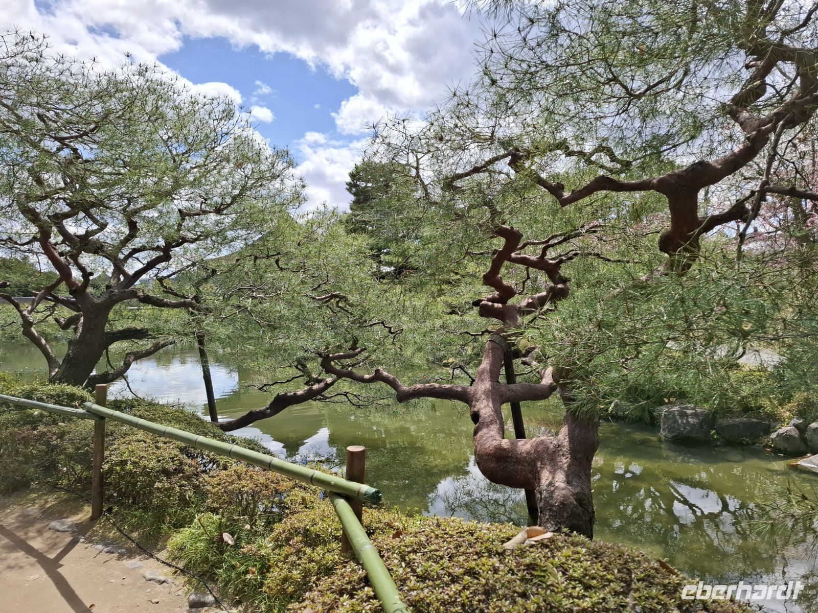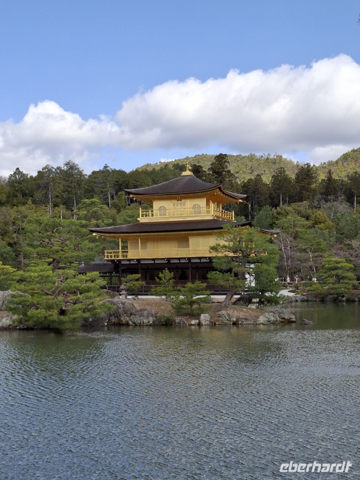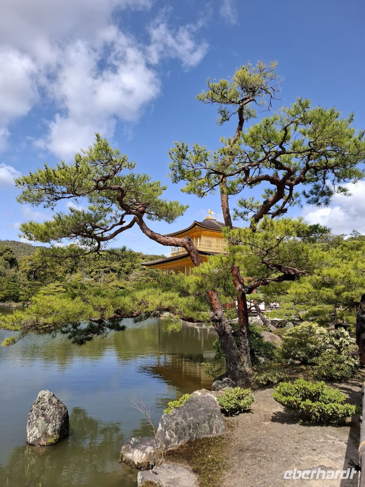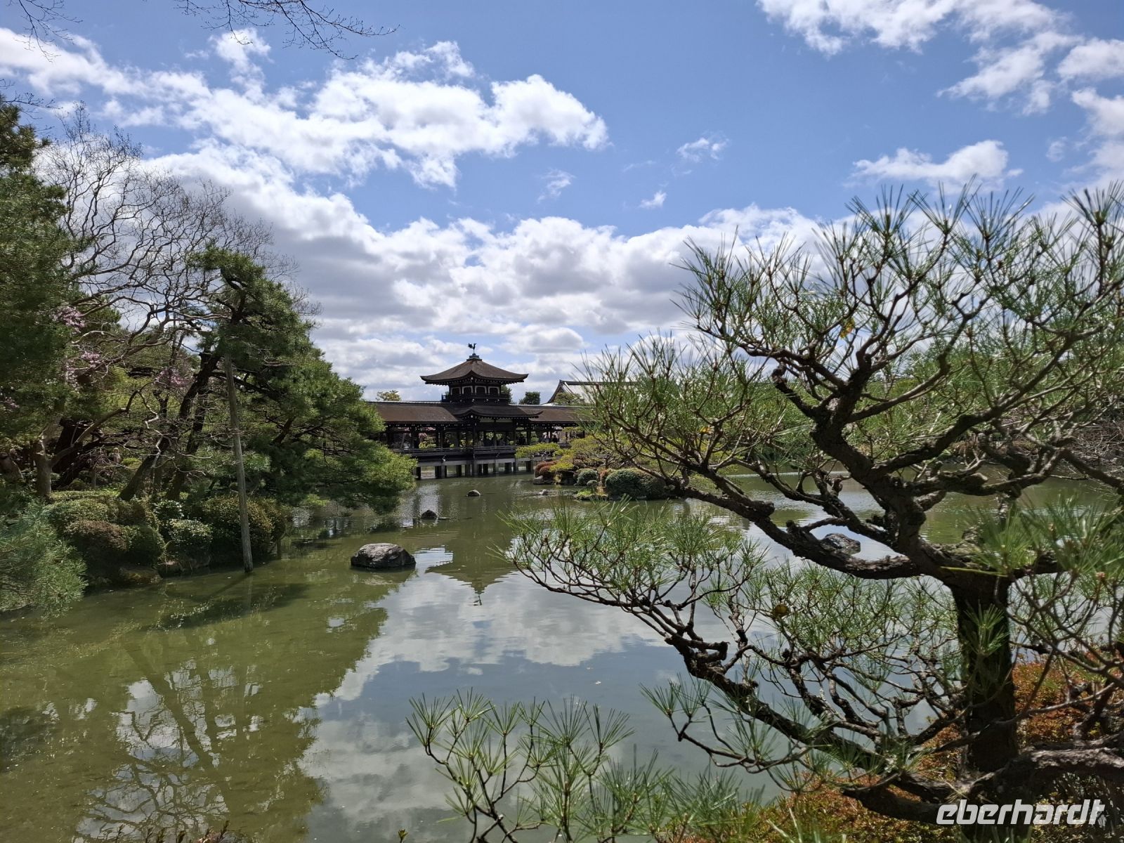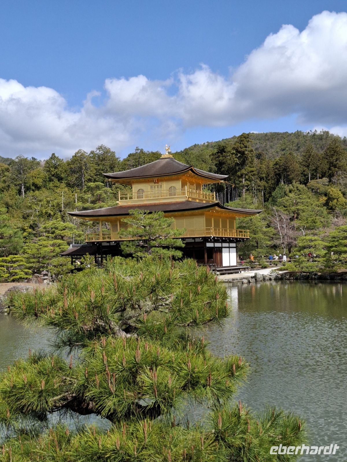 Der letzte Ausflugs-Tag auf unserer Rundreise durch Japan ist angebrochen. Zum vorletzten Mal lauschen wir der Weisheit des Tages und steigen dann am Parkplatz des Ryoanji-Tempels aus. Nach dem Ticketkauf besichtigen wir den Ryoanji-Tempel und platzieren uns auf der Holzveranda um den Ausführungen Gudruns zu lauschen. Dabei blicken wir auf den minimalistisch angelegten Garten, der von der Holzveranda aus abgeht. Gudrun führt uns weiter durch die Anlage dieses Zen-Gartens. Durch einen Gang mit alten Bäumen und entlang kleinerer Pfade führt Sie uns sicher an den Schönheiten dieser Anlage vorbei. Unser nächstes Ziel ist der nur rund 5 Minuten entfernt gelegene Kinkakuji-Tempel, der auch unter dem Namen "Goldener Pavillon" bekannt geworden ist. Der Tempel ist vollständig mit Blattgold bedeckt, was ihm einen ikonischen Glanz verleiht. Hier sind nun schon sehr viel mehr Menschen mit uns in der Anlage und gemeinsam strömen wir zum Teich, von wo aus wir den besten (Foto)Blick auf den goldenen Pavillon genießen. Leider haben wir nicht das ganz so große Glück, das Spiegelbild des Pavillon im Teich zu erblicken, da der Wind leichte Wellen erzeugt aber an einer Stelle am Wasser haben wir ein Kleinbild des Tempels im Wasser erblicken können. Die letzte Anlage auf unserer Rundreise ist der Besuch am Heian-Schrein. Er wurde im Jahr 1895 errichtet und feiert somit in diesem Jahr sein 130jähriges Bestehen. Wir betreten durch das imposante rote Torri-Tor und schlendern auch hier durch die schön gestaltete Gartenanlage. Der Garten ist sorgfältig angelegt und vereint verschiedene Elemente traditioneller japanischer Gärten wie zum Beispiell Teiche, Brücken, Bambushaine und steinerne Wege. Auch hier bewundern wir die wunderschönen Kirschblüten, die in der Sonne tanzen.