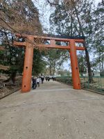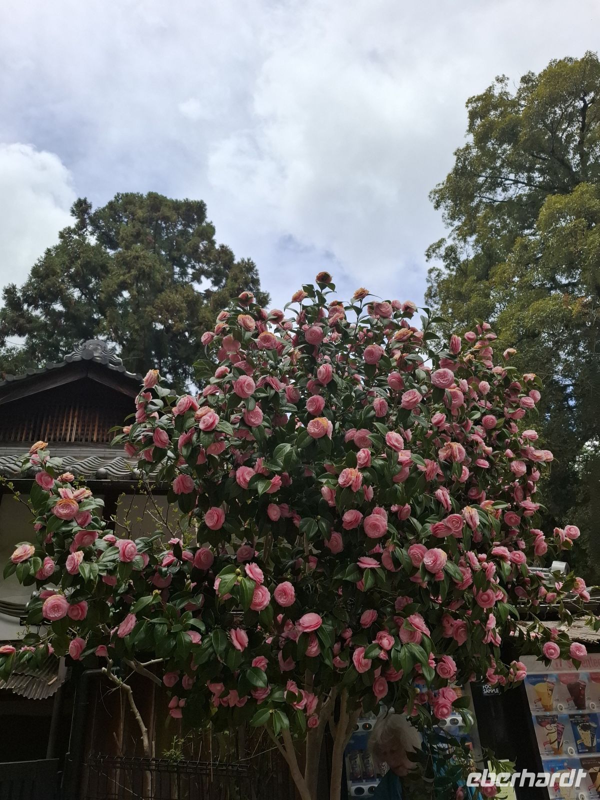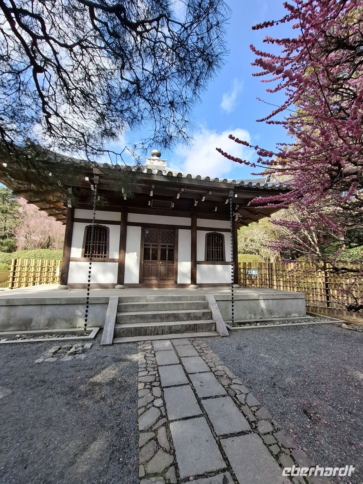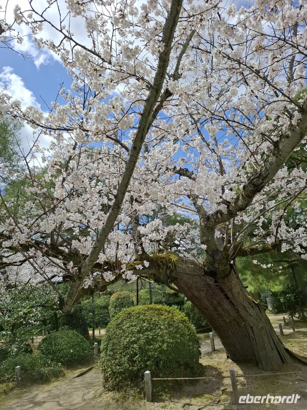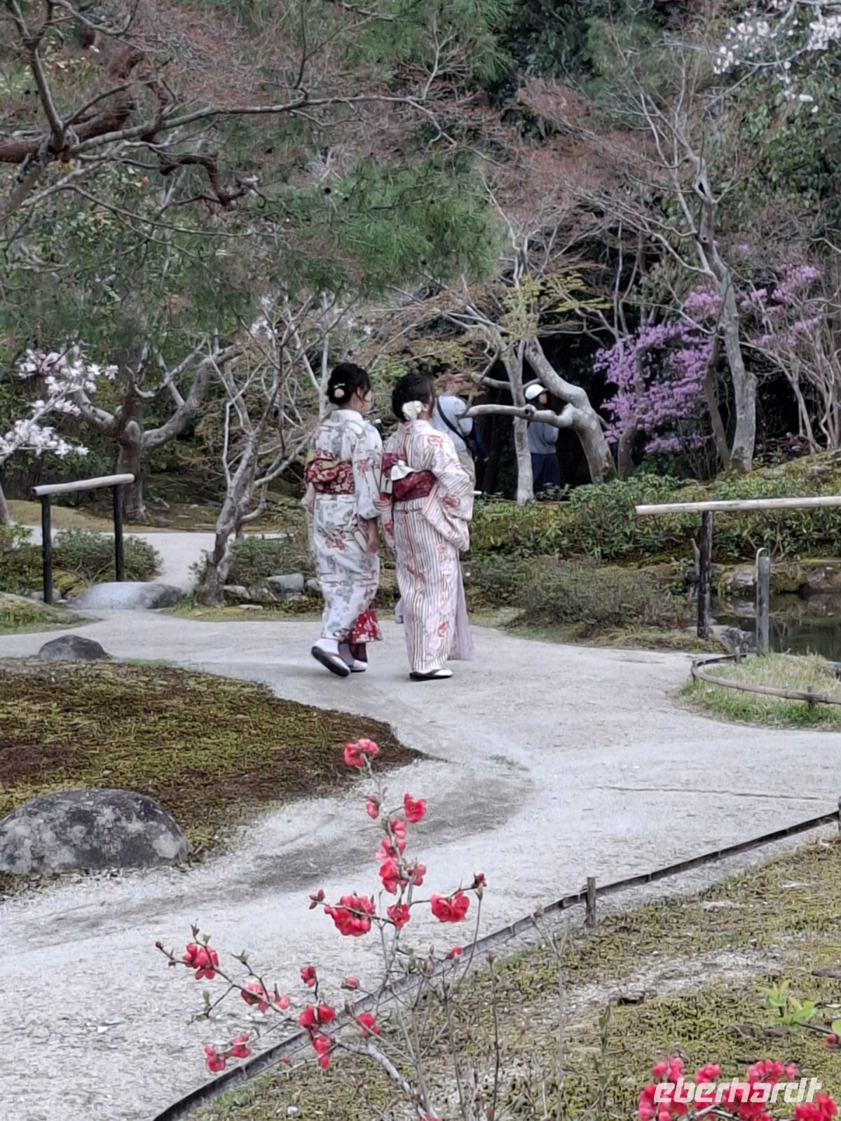 Der letzte Ausflugs-Tag auf unserer Rundreise durch Japan ist angebrochen. Zum vorletzten Mal lauschen wir der Weisheit des Tages und steigen dann am Parkplatz des Ryoanji-Tempels aus. Nach dem Ticketkauf besichtigen wir den Ryoanji-Tempel und platzieren uns auf der Holzveranda um den Ausführungen Gudruns zu lauschen. Dabei blicken wir auf den minimalistisch angelegten Garten, der von der Holzveranda aus abgeht. Gudrun führt uns weiter durch die Anlage dieses Zen-Gartens. Durch einen Gang mit alten Bäumen und entlang kleinerer Pfade führt Sie uns sicher an den Schönheiten dieser Anlage vorbei. Unser nächstes Ziel ist der nur rund 5 Minuten entfernt gelegene Kinkakuji-Tempel, der auch unter dem Namen "Goldener Pavillon" bekannt geworden ist. Der Tempel ist vollständig mit Blattgold bedeckt, was ihm einen ikonischen Glanz verleiht. Hier sind nun schon sehr viel mehr Menschen mit uns in der Anlage und gemeinsam strömen wir zum Teich, von wo aus wir den besten (Foto)Blick auf den goldenen Pavillon genießen. Leider haben wir nicht das ganz so große Glück, das Spiegelbild des Pavillon im Teich zu erblicken, da der Wind leichte Wellen erzeugt aber an einer Stelle am Wasser haben wir ein Kleinbild des Tempels im Wasser erblicken können. Die letzte Anlage auf unserer Rundreise ist der Besuch am Heian-Schrein. Er wurde im Jahr 1895 errichtet und feiert somit in diesem Jahr sein 130jähriges Bestehen. Wir betreten durch das imposante rote Torri-Tor und schlendern auch hier durch die schön gestaltete Gartenanlage. Der Garten ist sorgfältig angelegt und vereint verschiedene Elemente traditioneller japanischer Gärten wie zum Beispiell Teiche, Brücken, Bambushaine und steinerne Wege. Auch hier bewundern wir die wunderschönen Kirschblüten, die in der Sonne tanzen.