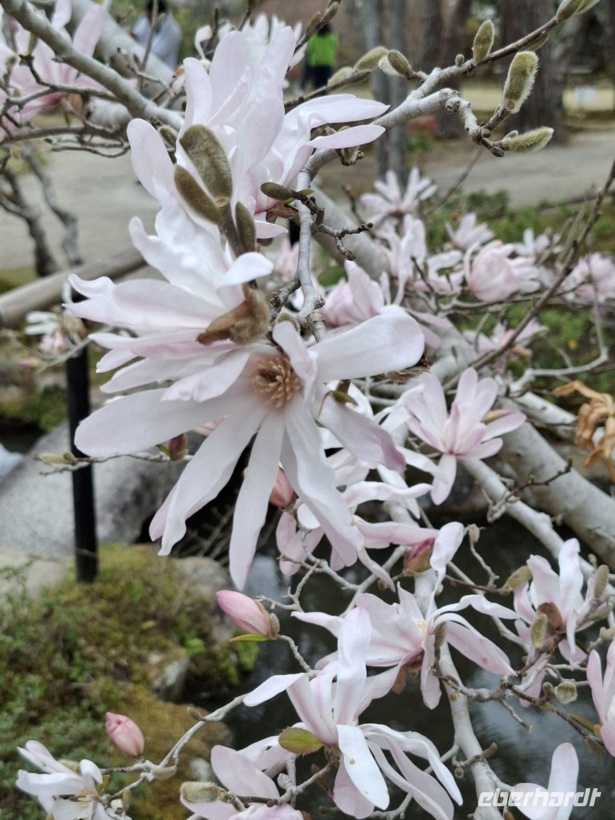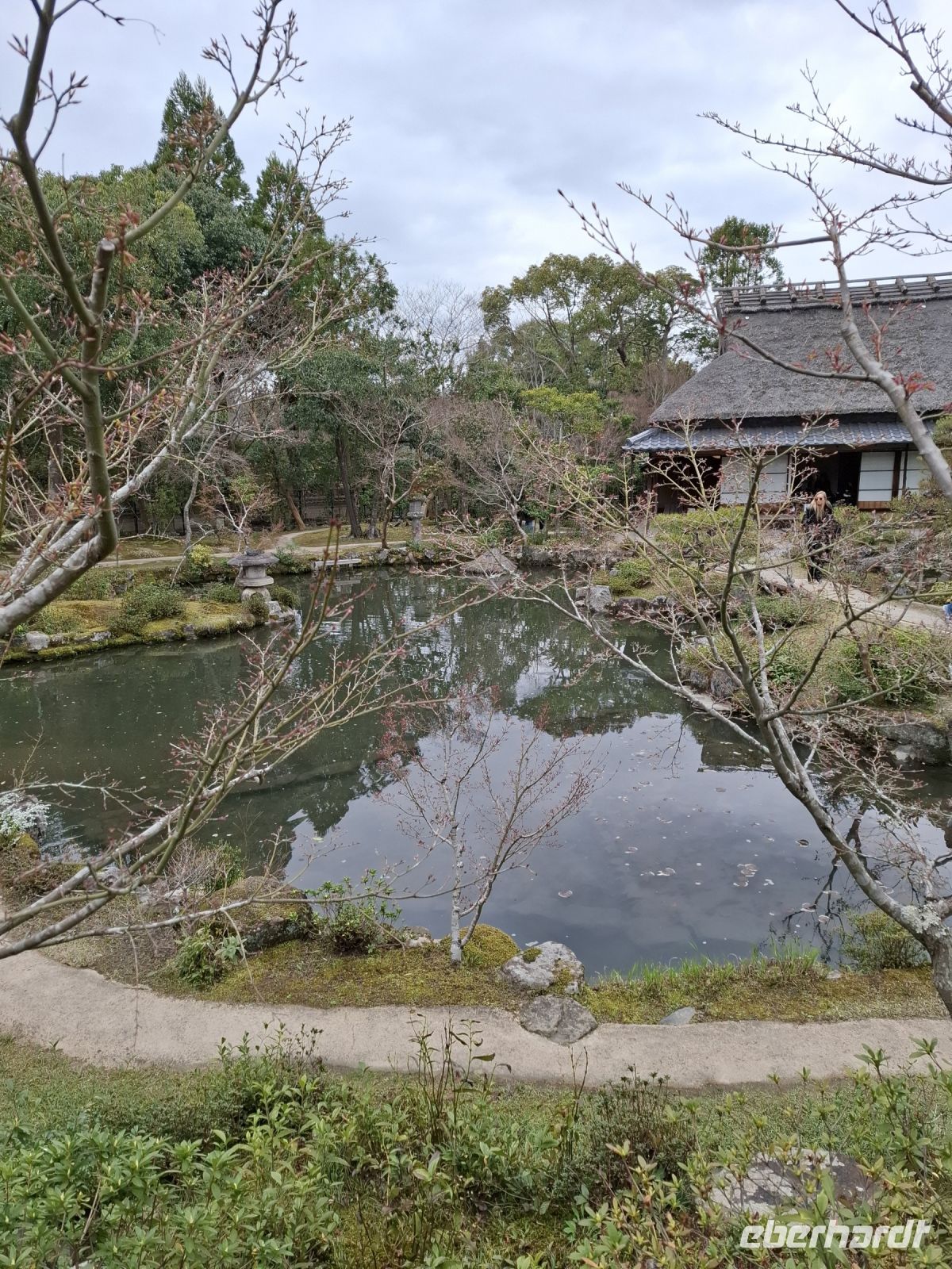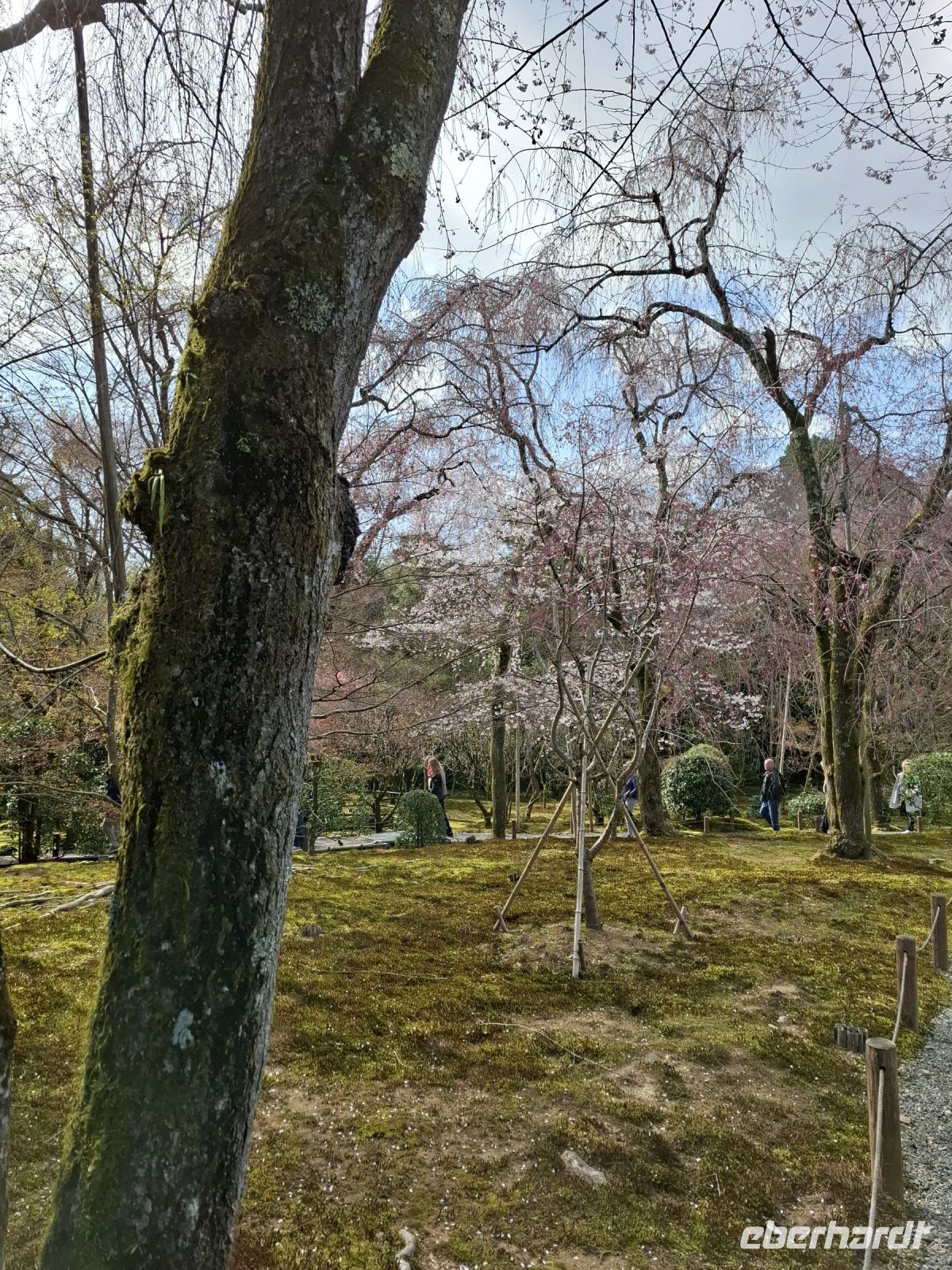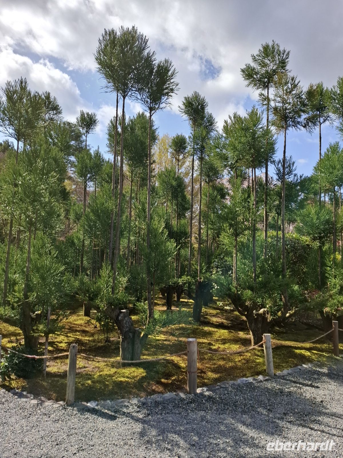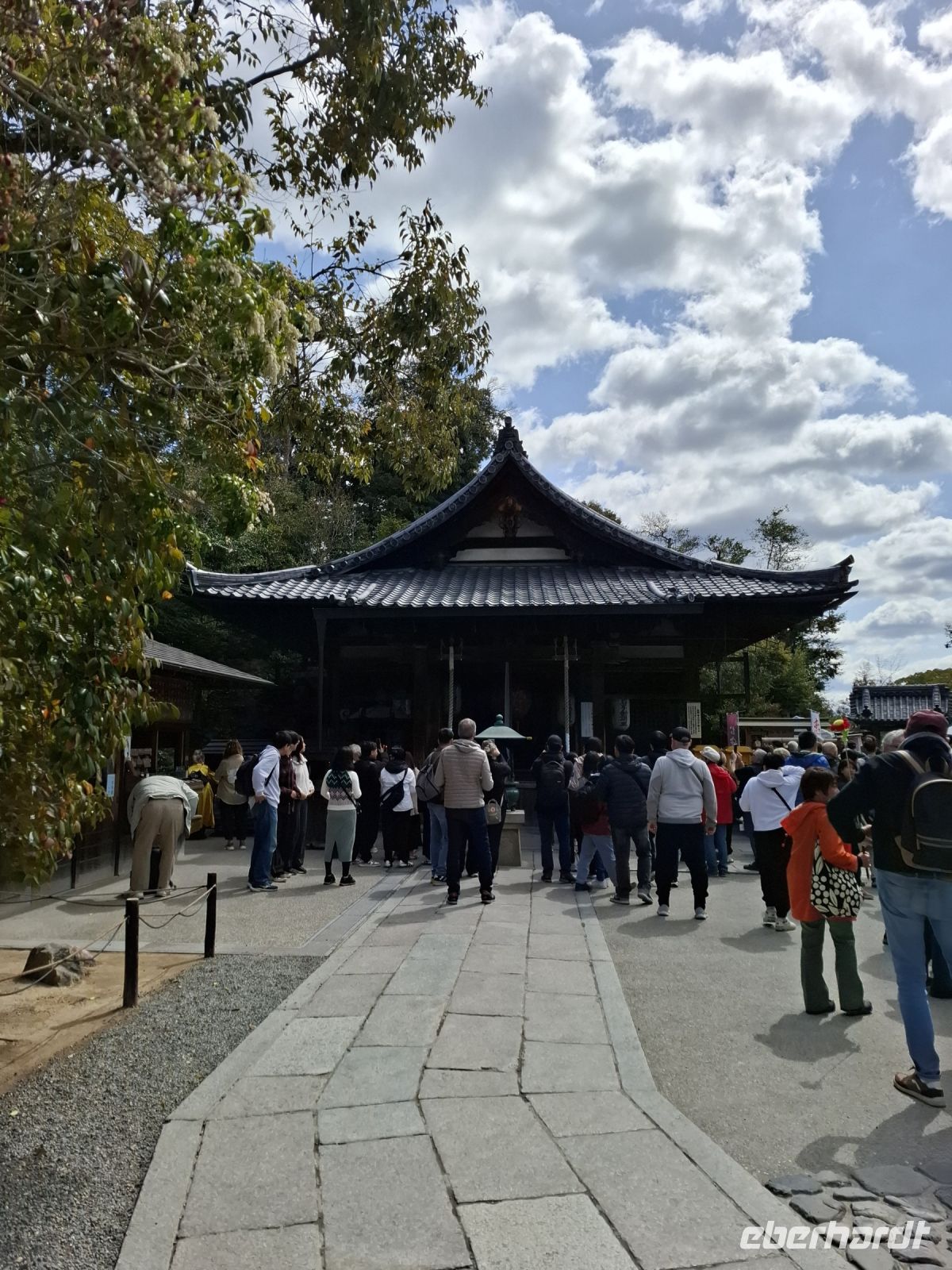 Der letzte Ausflugs-Tag auf unserer Rundreise durch Japan ist angebrochen. Zum vorletzten Mal lauschen wir der Weisheit des Tages und steigen dann am Parkplatz des Ryoanji-Tempels aus. Nach dem Ticketkauf besichtigen wir den Ryoanji-Tempel und platzieren uns auf der Holzveranda um den Ausführungen Gudruns zu lauschen. Dabei blicken wir auf den minimalistisch angelegten Garten, der von der Holzveranda aus abgeht. Gudrun führt uns weiter durch die Anlage dieses Zen-Gartens. Durch einen Gang mit alten Bäumen und entlang kleinerer Pfade führt Sie uns sicher an den Schönheiten dieser Anlage vorbei. Unser nächstes Ziel ist der nur rund 5 Minuten entfernt gelegene Kinkakuji-Tempel, der auch unter dem Namen "Goldener Pavillon" bekannt geworden ist. Der Tempel ist vollständig mit Blattgold bedeckt, was ihm einen ikonischen Glanz verleiht. Hier sind nun schon sehr viel mehr Menschen mit uns in der Anlage und gemeinsam strömen wir zum Teich, von wo aus wir den besten (Foto)Blick auf den goldenen Pavillon genießen. Leider haben wir nicht das ganz so große Glück, das Spiegelbild des Pavillon im Teich zu erblicken, da der Wind leichte Wellen erzeugt aber an einer Stelle am Wasser haben wir ein Kleinbild des Tempels im Wasser erblicken können. Die letzte Anlage auf unserer Rundreise ist der Besuch am Heian-Schrein. Er wurde im Jahr 1895 errichtet und feiert somit in diesem Jahr sein 130jähriges Bestehen. Wir betreten durch das imposante rote Torri-Tor und schlendern auch hier durch die schön gestaltete Gartenanlage. Der Garten ist sorgfältig angelegt und vereint verschiedene Elemente traditioneller japanischer Gärten wie zum Beispiell Teiche, Brücken, Bambushaine und steinerne Wege. Auch hier bewundern wir die wunderschönen Kirschblüten, die in der Sonne tanzen.
