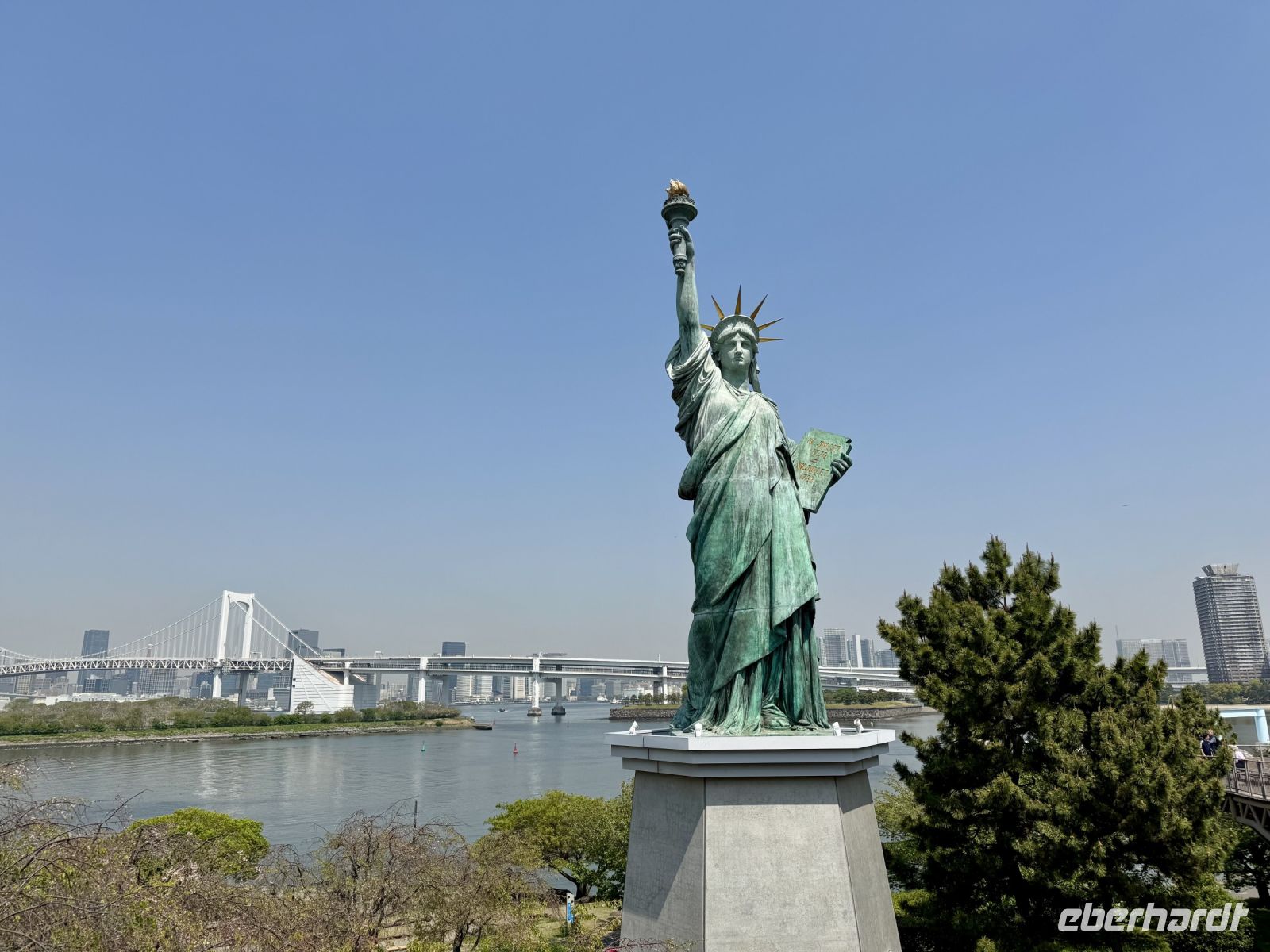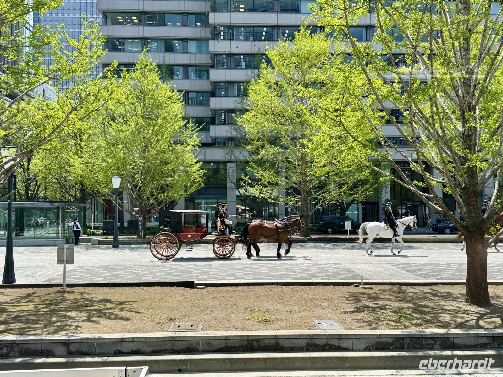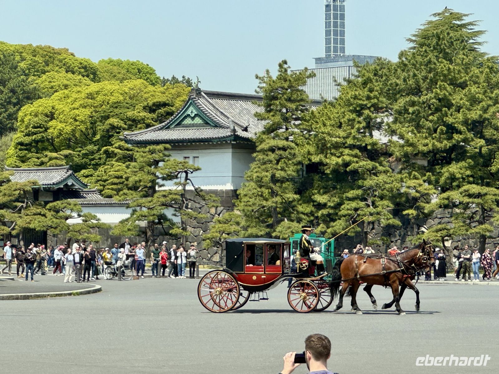 Nach einem angenehmen Flug und der pünktlichen Landung in Tokio … stehen wir trotz bereits im Voraus ausgefüllter Formulare erst mal ewig in der Schlange. Unsere Koffer drehen derweil auf dem Band schon die eine oder andere Runde und winken uns sehnsüchtig zu (wir können sie hinter den Schaltern sehen). Endlich haben wir es geschafft und können unseren örtlichen Reiseleiter begrüßen. Er heißt Hartmut, macht gleich einen sympathischen Eindruck und ist erstaunt, dass wir nach etwa zwei Stunden schon durch alle Kontrollen durch sind. Oha. Da wir quasi „viel zu zeitig“ dran sind, macht Hartmut mit uns einen spontanen Abstecher zum Wasser in der Nähe des Kreuzfahrthafens. Die Kopie der Freiheitsstatue macht uns kurz stutzig, ob wir uns nicht verflogen haben, doch blühende Kirschbäume und Getränkeautomaten sagen uns deutlich: Ihr seid in Japan. Die Fahrt zum Tokyo Skytree führt uns mitten durch die Stadt und vorbei am Kaiserpalast, wo Hartmut schon die nächste Überraschung für uns organisiert hat. Ein neuer Botschafter wurde eingeführt und wird nun mit Polizeieskorte in einer historischen Postkutsche zum Bahnhof chauffiert. Mit dem Zug werden wir auf dieser Reise auch noch mehrmals fahren, doch heute fahren wir nur noch mit dem vergoldeten Fahrstuhl hinauf zur Aussichtsplattform und blicken auf das endlose Häusermeer von Tokio hinab. Ein guter Einstieg, der uns die immense Ausdehnung dieser Megastadt mit etwa 38 Millionen Einwohnern verdeutlicht. Am Fuße des Turms findet gerade ein taiwanesisches Food Festival statt, welches wir als Anlass für eine Mittagspause nehmen. Nun geht es in den Stadtteil Ikebukuro etwas nordwestlich des Zentrums zu unserem ersten Hotel. Nach dem Empfang durch das sehr höfliche und zuvorkommende Personal in der beeindruckenden Lobby beziehen wir unsere Zimmer in der 12. Etage und erliegen reihum dem Ruf der warmen Dusche. Auch ein kleines Nickerchen klingt nach der langen Anreise sehr verlockend. Beim Abendessen in einem nahegeliegenen Izakaya haben wir später die Gelegenheit, uns gegenseitig näher zu „beschnuppern“ — was keinesfalls eine Anspielung auf die Tatsache sein soll, dass wir uns barfuß durch das Etablissement bewegen — und auch die japanische Küche kennenzulernen. Dazu gehören wiederum Sashimi, Wasabi, Tempura und frische Krabbe auf Eis. Ein Verdauungsspaziergang durch das hell erleuchtete Vergnügungsviertel von Ikebukuro rundet unseren ersten Abend in Japan ab.