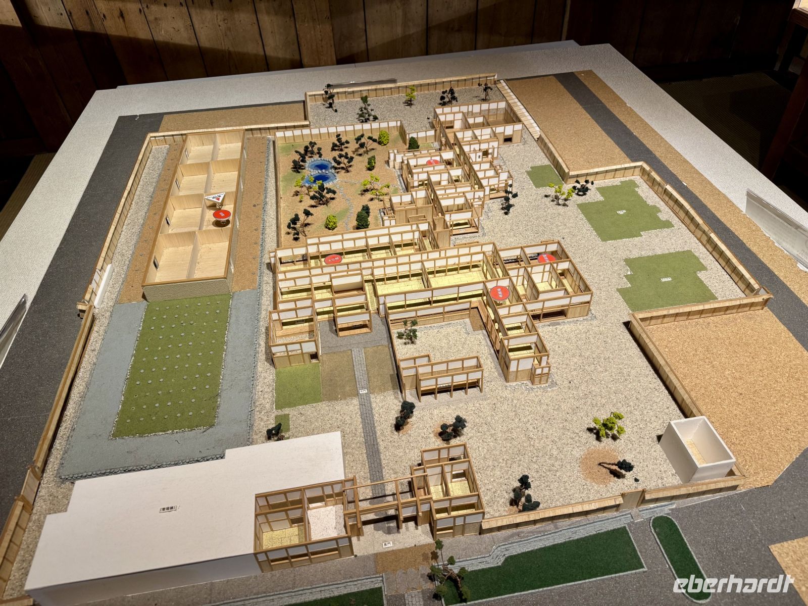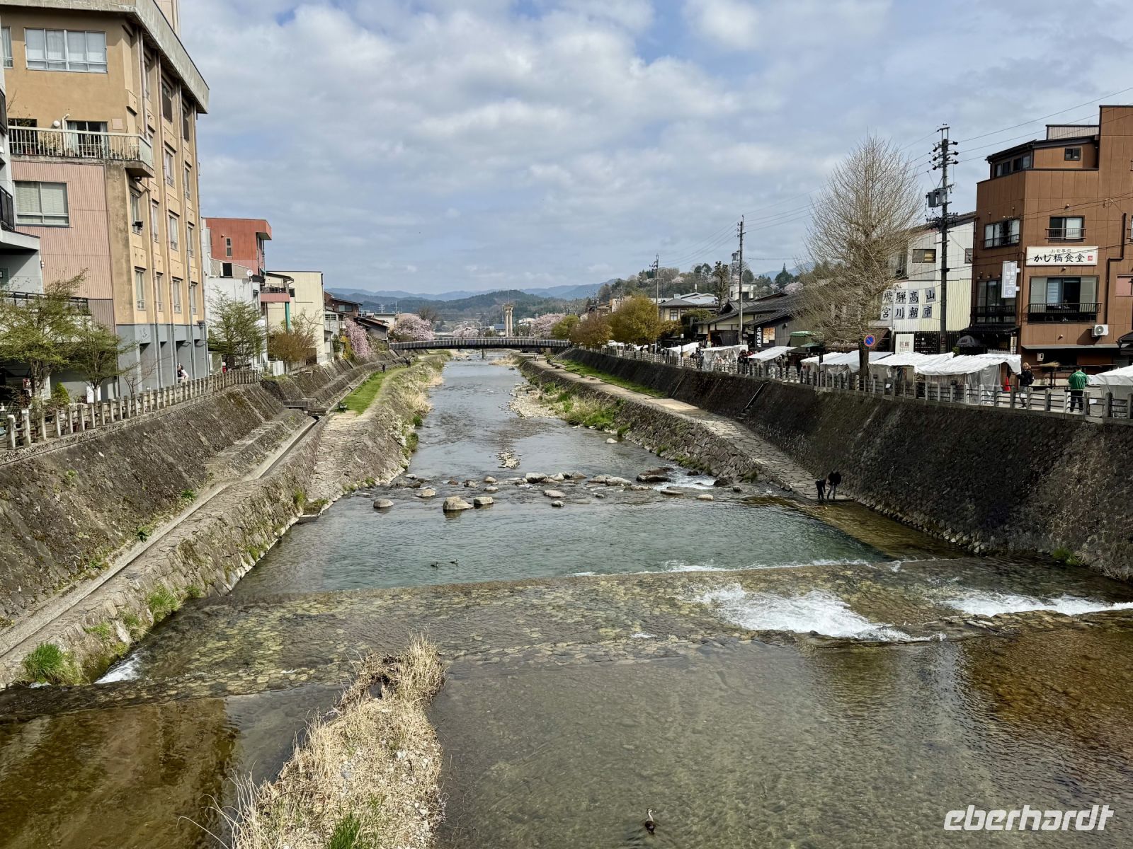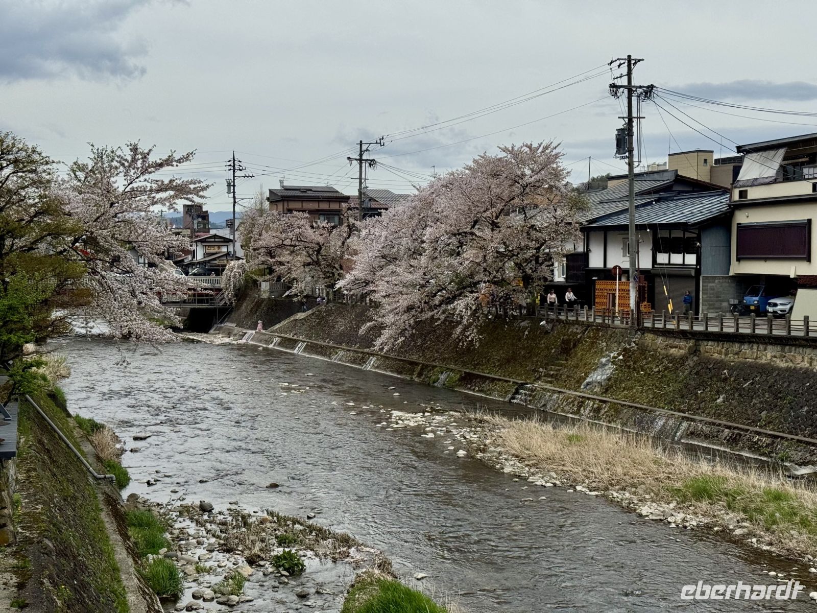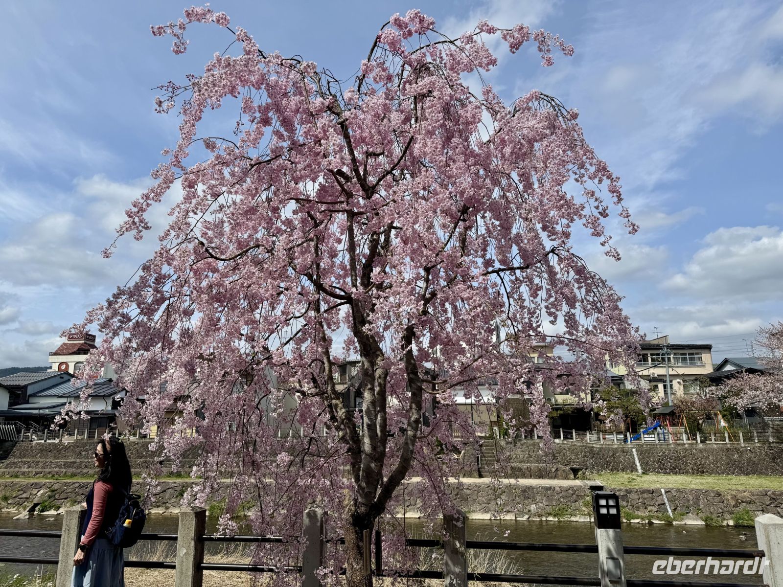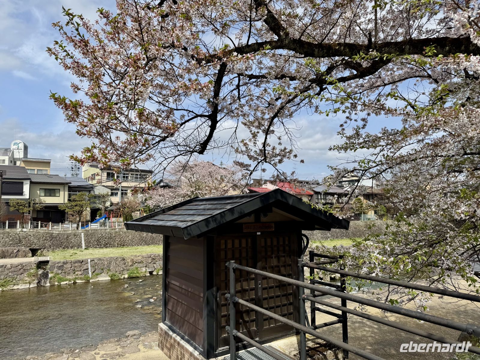 In mehrfacher Hinsicht wollen wir heute in die Vergangenheit Japans reisen, vor allem in die Edo-Zeit. Wir beginnen jedoch mit einem kleinen Spaziergang zum Morgenmarkt am Fluss. Unterwegs gibt es bereits viel zu entdecken: versteckte kleine Schreine, hübsche alte Häuser aus Holz, ein niedliches kleines Auto, Dekoration in den Schaufenstern. In Takayama ist die Kirschblüte noch in vollem Gange. Vor allem am Fluss sehen wir viele prächtige Bäume. Auf dem Morgenmarkt wird Obst und Gemüse feilgeboten, aber auch Andenken aus Holz und allerlei süße Sachen. Und überall hängen die kleinen roten Puppen, die Affenbabys darstellen sollen. Ouashi-san hat derweil umgeparkt und erwartet uns auf dem großen Busparkplatz. Von dort aus fahren wir durch die Berge ins Museumsdorf Shirakawago. Auch hier stoßen wir auf viele blühende Kirschbäume, die vor den schilfgedeckten Bauernhäusern und schneebedeckten Gipfeln der Japanischen Alpen tolle Fotomotive abgeben. Nach einem weiteren kleinen Spaziergang mit Hartmut besichtigen wir ein traditionelles Bauernhaus mit Ahnenschrein, Feuerstelle und riesigem Dachboden. Nach unserer Rückkehr nach Takayama müssen wir uns am Hotel nun leider von Ouashi-san verabschieden. Ein „Sayonara“ ist für diesen tollen und herzlichen Fahrer mehr als angebracht, der die Messlatte sehr hoch gesetzt hat. Er muss nun weiter nach Osaka fahren und dort die nächste Gruppe in Empfang nehmen. Aufgrund der Expo haben Reiseleiter und Busfahrer gerade generell richtig viel zu tun. Das Jinya-Museum schließt am Nachmittag den Kreis zu unserem Tagesausflug nach Nikko am vierten Tag. Es war ein regionales Verwaltungsgebäude des Tokugawa-Shogunats und lässt die Zeit der Samurai-Herrschaft u. a. mit Großraumbüros, Küche mit Reistöpfen, kleiner Teestube und einer Sänfte für die edlen Herren vor unseren Augen auferstehen. Ein Bummel durch das umgebende Viertel von Takayama mit vielen Gebäuden aus ebenjener Epoche, also der Edo-Zeit, rundet diesen tollen Programmpunkt ab. Hartmut hat heute die Spendierhosen an und lädt uns spontan zu einer Sake-Verkostung ein. Nur ein paar Häuser weiter können wir von einer wirklich köstlichen Miso-Brühe probieren. Das weckt die Vorfreude auf unser Abendessen mit regional typischem Hida-Rindfleisch in einem Grillrestaurant. Auch hier dürfen/müssen wir selbst Hand anlegen, denn das Grillgut kommt roh auf den Tisch – und zwar in riesigen Mengen. Fast genug für ein Dorffest.