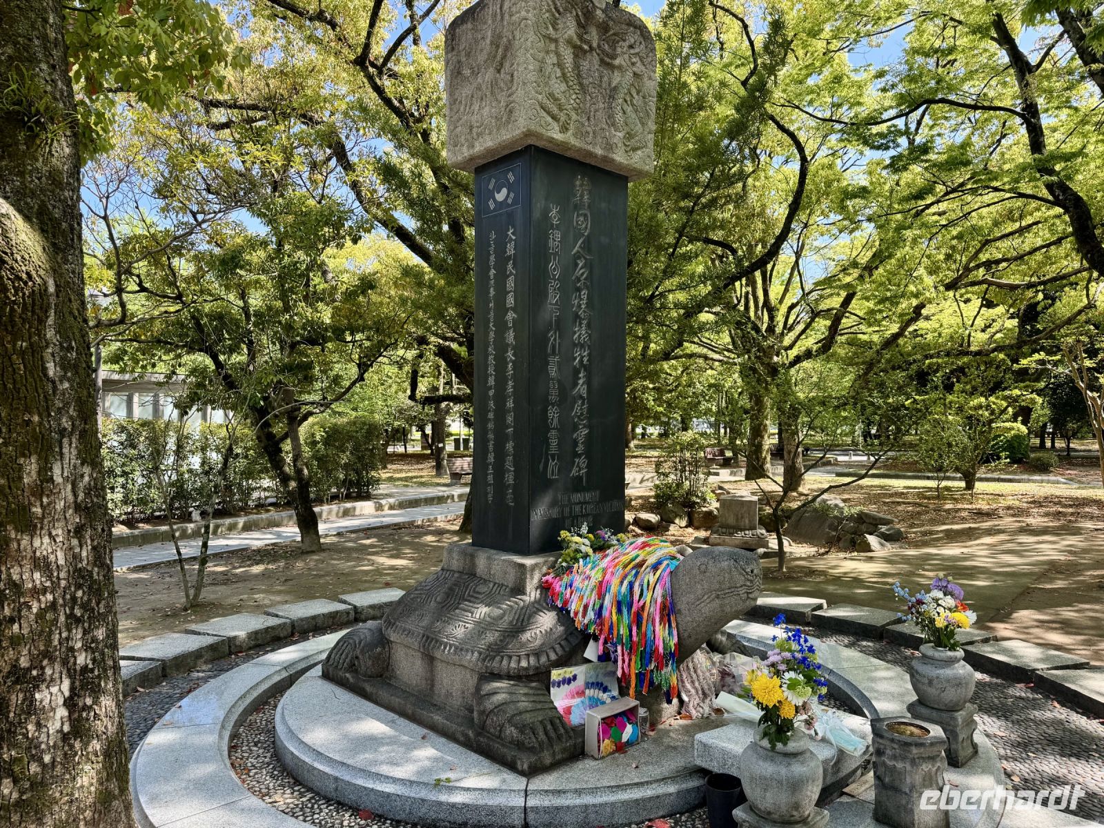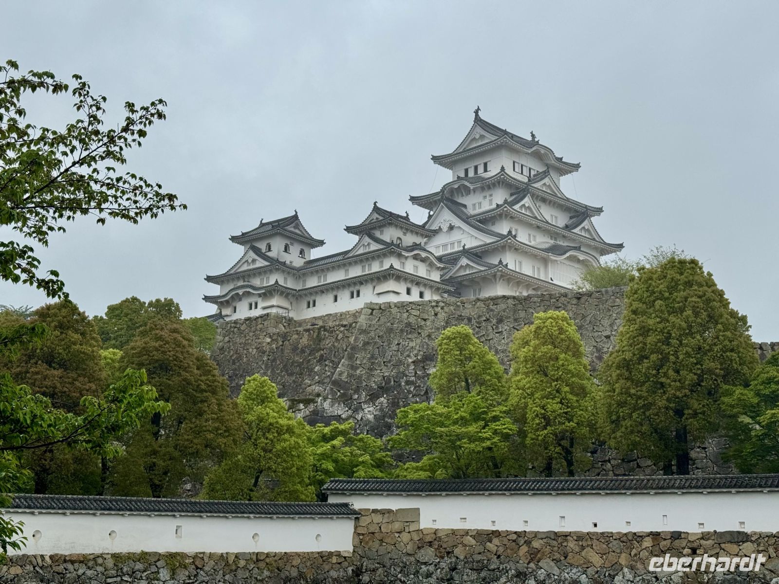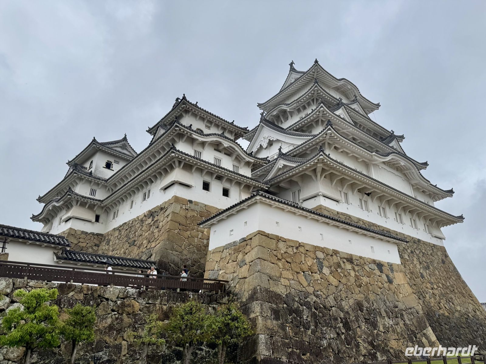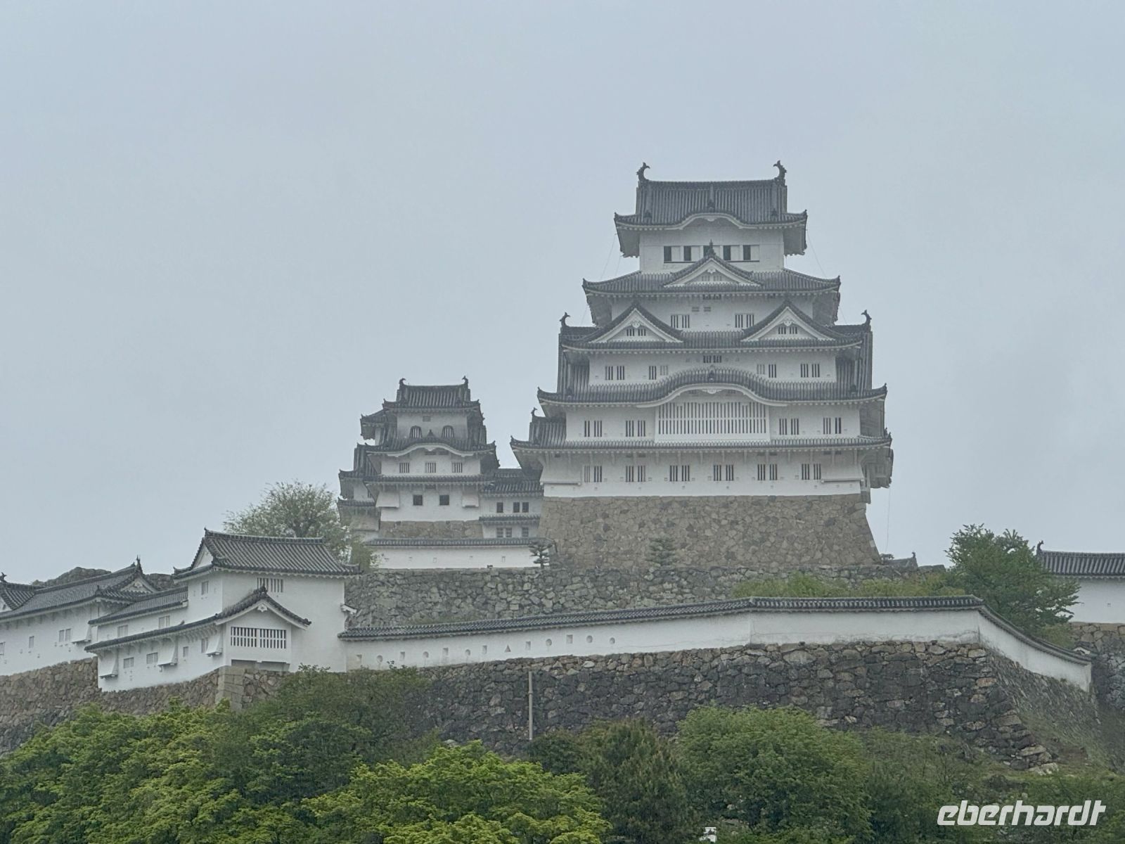 Wir verabschieden uns von unseren Koffern, die immer noch in der Lobby stehen, immerhin bereits fein säuberlich vermessen und etikettiert. Im leichten Regen laufen wir nur mit Handgepäck die kurze Strecke zum Bahnhof und besteigen den Regionalzug nach Nagoya. Diese Zugfahrt erweist sich trotz Regen als landschaftlich reizvoll, denn die Strecke führt durch viele grüne Täler und kleine Dörfer. Im berühmten Shinkansen des Typs N700S herrscht dagegen eher nüchterne Flugzeugatmosphäre: eine Dreierreihe auf der einen Seite, eine Zweierreihe auf der anderen und nur kleine Fenster. Bei fast 300 Kilometern pro Stunde rauscht die Welt im Eiltempo vorbei. Ich will mich angesichts der starken Beschleunigung reflexartig anschnallen und warte nur auf den Augenblick des Abhebens. Der bleibt zum Glück aber aus. In Himeji machen wir einen Zwischenstopp, verstauen unser Handgepäck im Schließfach und marschieren im Nieselregen zur ikonischen Burg des weißen Reihers. Im leichten Regen wirkt sie wie eine geheimnisvolle und uneinnehmbare Festung aus einem Fantasy-Roman. Oder wie Hartmut es ausdrückt: „Bei schönem Wetter kann ja jeder gute Fotos machen.“ Die Herausforderung steht also. Wer mit mir das Innere der Burg besichtigen will, steht gleich vor der nächsten Herausforderung: vielen Treppen mit steilen Stufen. Die beiden Tüten mit Schirm bzw. Schuhen sind auch nicht gerade hilfreich. Aber es lohnt sich, denn so eine alte Samurai-Burg aus Holz hat ihren ganz eigenen Charme und ist mit einer europäischen Ritterburg nicht zu vergleichen. Von Himeji nach Hiroshima braucht der Shinkansen dann ziemlich genau eine Stunde. Und natürlich ist er pünktlich, wir sind ja schließlich in Japan. Unser Hotel in Hiroshima erreichen wir per Taxi und können uns noch ein bisschen ausruhen, bevor wir für unseren Pizza-Abend zum Bahnhof zurückfahren. Wobei eine japanische Okonomiyaki nicht mit unserer Vorstellung von Pizza zu vergleichen ist. Sie wird vor unseren Augen aus Kraut, Teig, Nudeln und Ei sowie einigen Geheimzutaten frisch zubereitet und erweist sich als sehr lecker. Zur Abwechslung fahren wir mit der Straßenbahn zurück in Richtung unserer Unterkunft und machen noch einen kurzen nächtlichen Spaziergang durch den Friedenspark am Fluss. Beim Anblick des beleuchteten Atombomben-Doms wird mir jedoch schlagartig ganz anders. Bis jetzt hatte ich dieses dunkle Kapitel der Menschheitsgeschichte noch ganz gut verdrängen können, doch plötzlich tauchen die Bilder aus Filmen und Dokumentationen vor meinem geistigen Auge wieder auf. (Ein ähnlich starkes Schwindelgefühl hatte ich verspürt, als ich im Smithsonian Museum in Washington vor einer Interkontinentalrakete mit 8–10 atomaren Sprengköpfen mit jeweils einem Vielfachen der Sprengkraft der Hiroshima-Bombe stand.) Ein schnelles Schokoladeneis auf die Faust vertreibt zum Glück die trübseligen Gedanken vorerst wieder – morgen werden wir uns diesem Thema noch ausführlicher widmen.