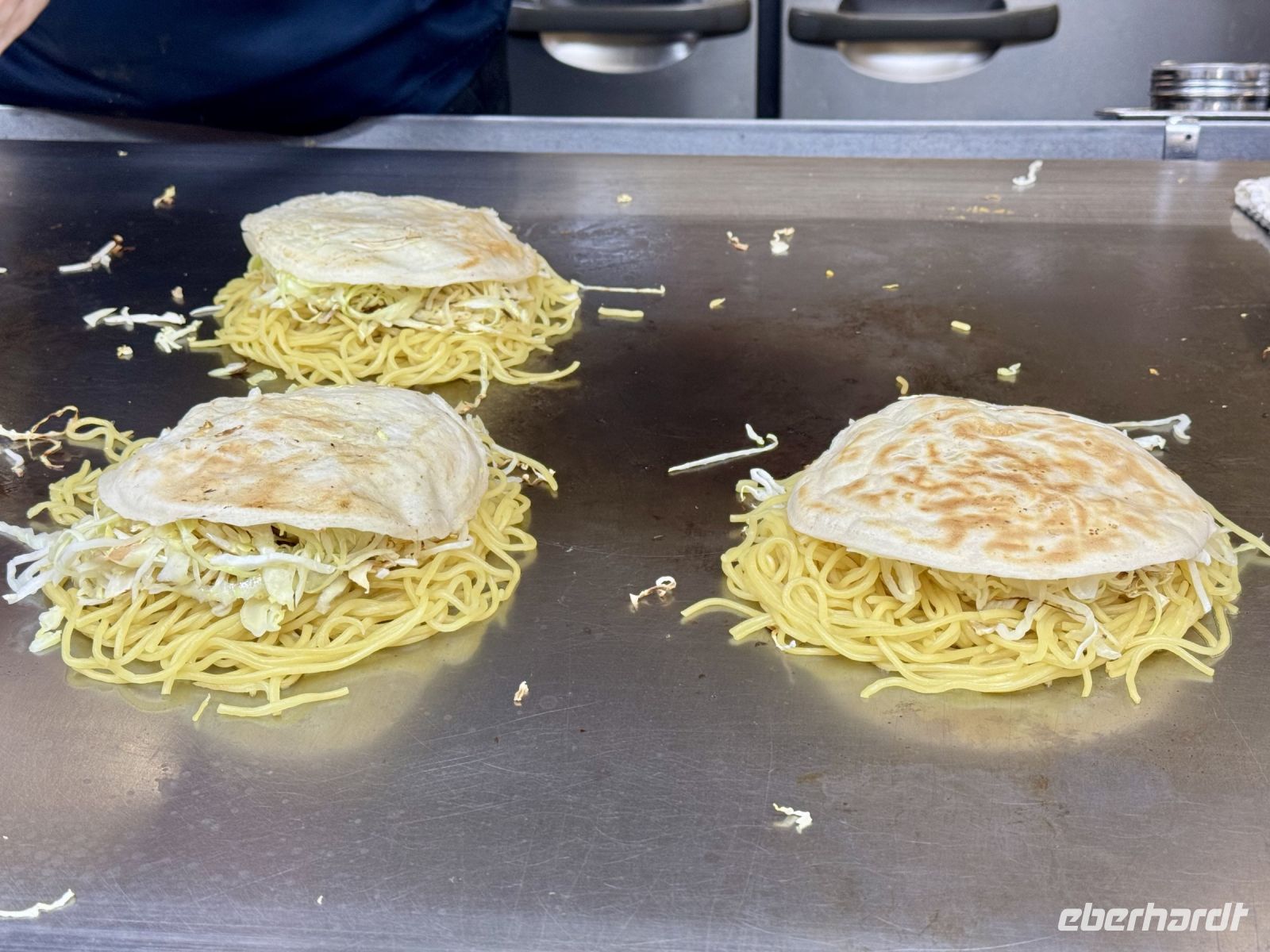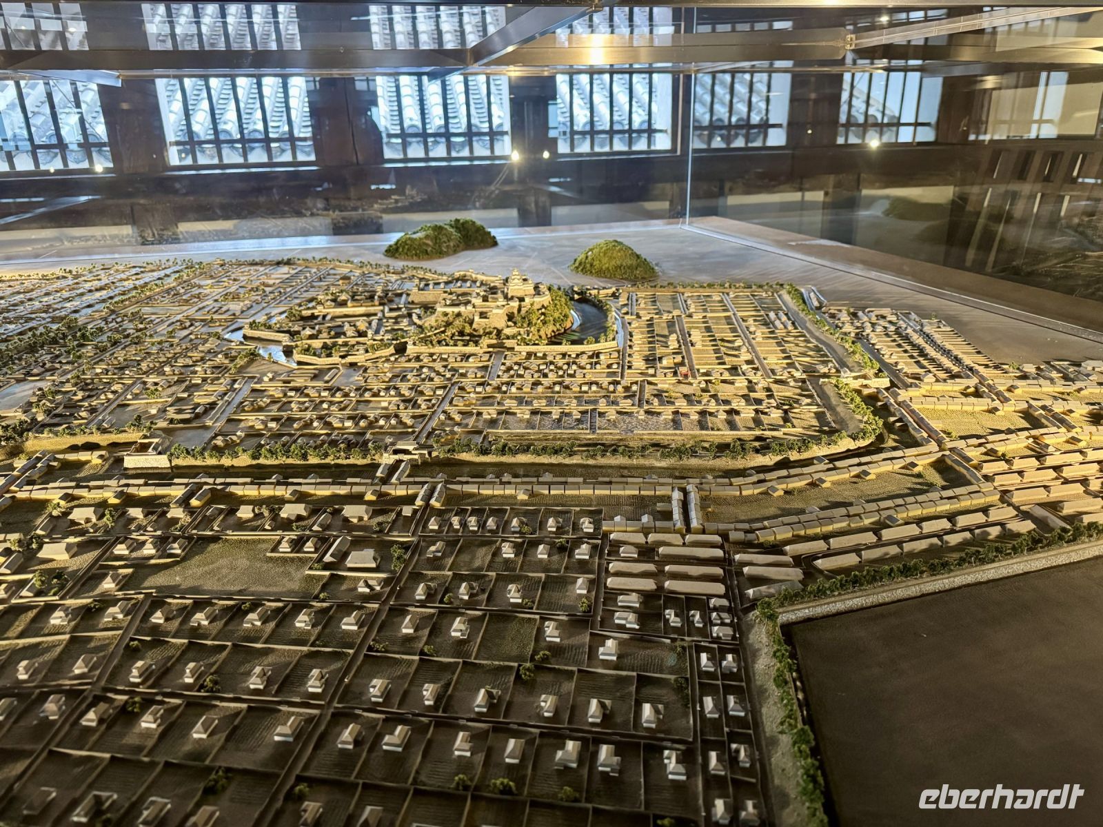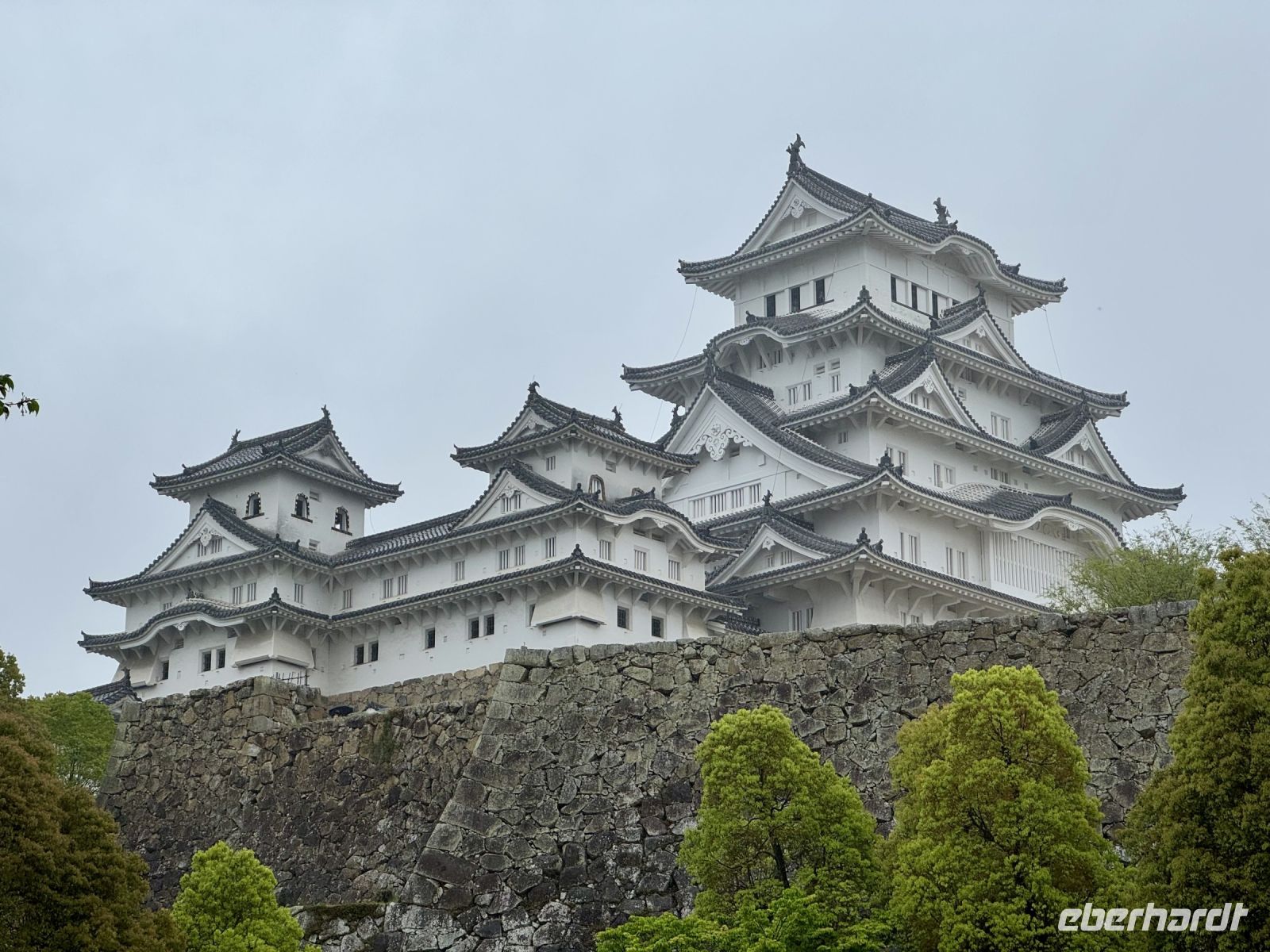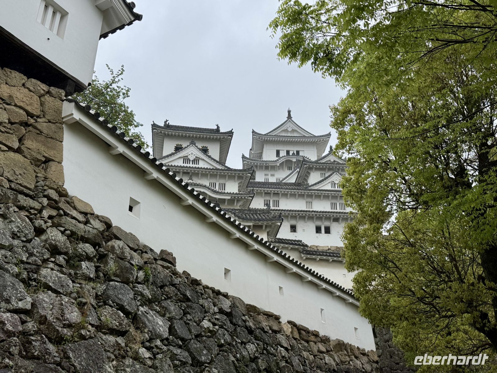 Wir verabschieden uns von unseren Koffern, die immer noch in der Lobby stehen, immerhin bereits fein säuberlich vermessen und etikettiert. Im leichten Regen laufen wir nur mit Handgepäck die kurze Strecke zum Bahnhof und besteigen den Regionalzug nach Nagoya. Diese Zugfahrt erweist sich trotz Regen als landschaftlich reizvoll, denn die Strecke führt durch viele grüne Täler und kleine Dörfer. Im berühmten Shinkansen des Typs N700S herrscht dagegen eher nüchterne Flugzeugatmosphäre: eine Dreierreihe auf der einen Seite, eine Zweierreihe auf der anderen und nur kleine Fenster. Bei fast 300 Kilometern pro Stunde rauscht die Welt im Eiltempo vorbei. Ich will mich angesichts der starken Beschleunigung reflexartig anschnallen und warte nur auf den Augenblick des Abhebens. Der bleibt zum Glück aber aus. In Himeji machen wir einen Zwischenstopp, verstauen unser Handgepäck im Schließfach und marschieren im Nieselregen zur ikonischen Burg des weißen Reihers. Im leichten Regen wirkt sie wie eine geheimnisvolle und uneinnehmbare Festung aus einem Fantasy-Roman. Oder wie Hartmut es ausdrückt: „Bei schönem Wetter kann ja jeder gute Fotos machen.“ Die Herausforderung steht also. Wer mit mir das Innere der Burg besichtigen will, steht gleich vor der nächsten Herausforderung: vielen Treppen mit steilen Stufen. Die beiden Tüten mit Schirm bzw. Schuhen sind auch nicht gerade hilfreich. Aber es lohnt sich, denn so eine alte Samurai-Burg aus Holz hat ihren ganz eigenen Charme und ist mit einer europäischen Ritterburg nicht zu vergleichen. Von Himeji nach Hiroshima braucht der Shinkansen dann ziemlich genau eine Stunde. Und natürlich ist er pünktlich, wir sind ja schließlich in Japan. Unser Hotel in Hiroshima erreichen wir per Taxi und können uns noch ein bisschen ausruhen, bevor wir für unseren Pizza-Abend zum Bahnhof zurückfahren. Wobei eine japanische Okonomiyaki nicht mit unserer Vorstellung von Pizza zu vergleichen ist. Sie wird vor unseren Augen aus Kraut, Teig, Nudeln und Ei sowie einigen Geheimzutaten frisch zubereitet und erweist sich als sehr lecker. Zur Abwechslung fahren wir mit der Straßenbahn zurück in Richtung unserer Unterkunft und machen noch einen kurzen nächtlichen Spaziergang durch den Friedenspark am Fluss. Beim Anblick des beleuchteten Atombomben-Doms wird mir jedoch schlagartig ganz anders. Bis jetzt hatte ich dieses dunkle Kapitel der Menschheitsgeschichte noch ganz gut verdrängen können, doch plötzlich tauchen die Bilder aus Filmen und Dokumentationen vor meinem geistigen Auge wieder auf. (Ein ähnlich starkes Schwindelgefühl hatte ich verspürt, als ich im Smithsonian Museum in Washington vor einer Interkontinentalrakete mit 8–10 atomaren Sprengköpfen mit jeweils einem Vielfachen der Sprengkraft der Hiroshima-Bombe stand.) Ein schnelles Schokoladeneis auf die Faust vertreibt zum Glück die trübseligen Gedanken vorerst wieder – morgen werden wir uns diesem Thema noch ausführlicher widmen.