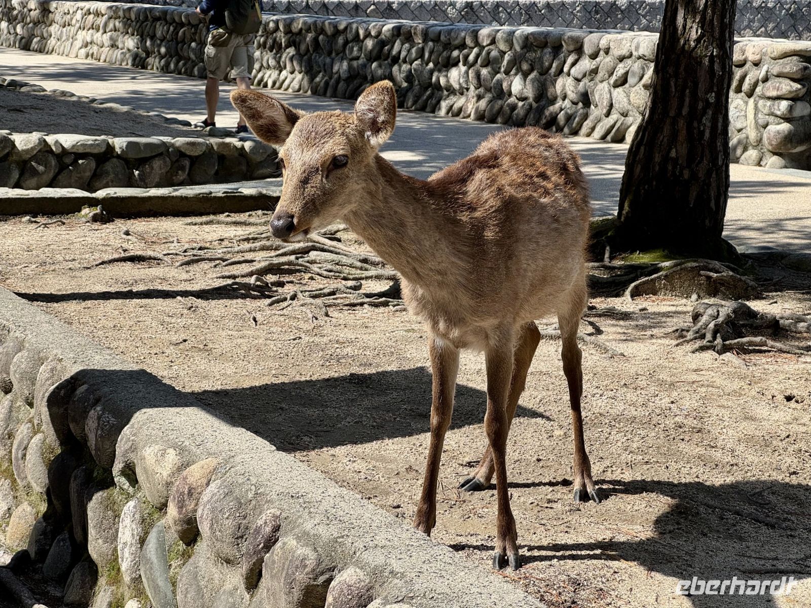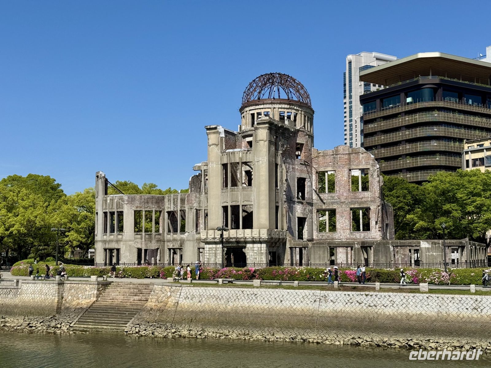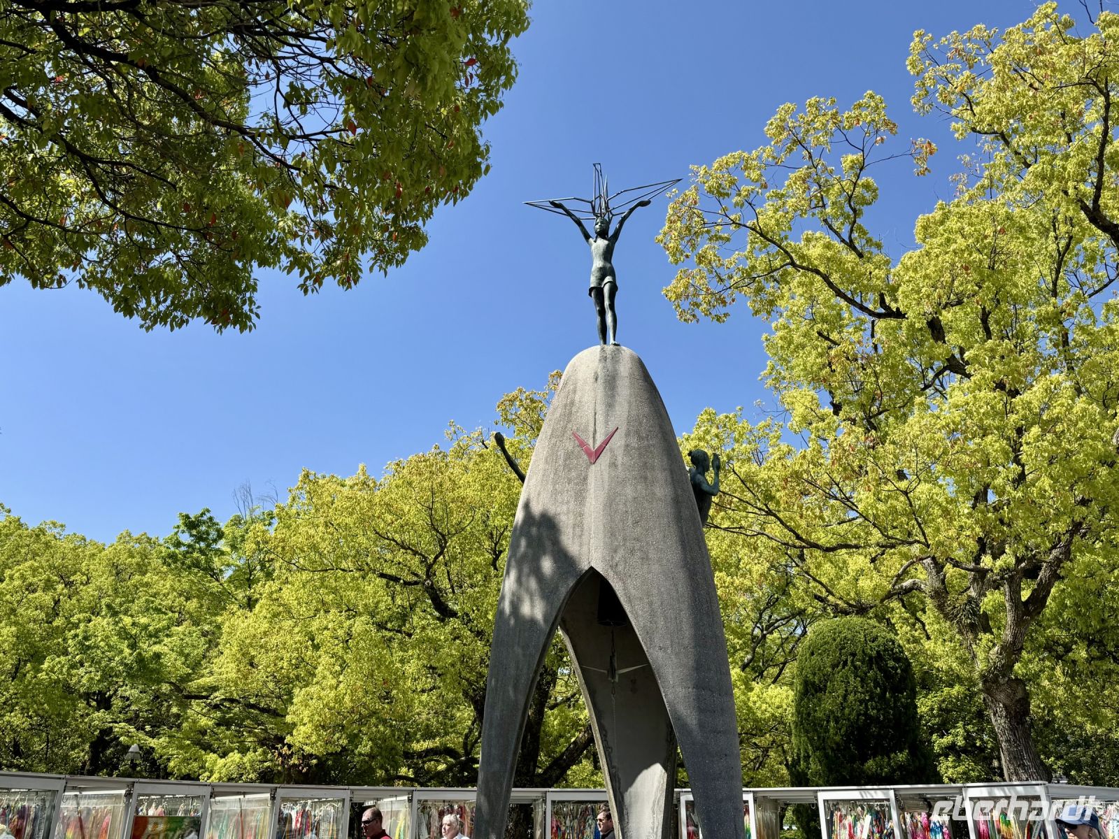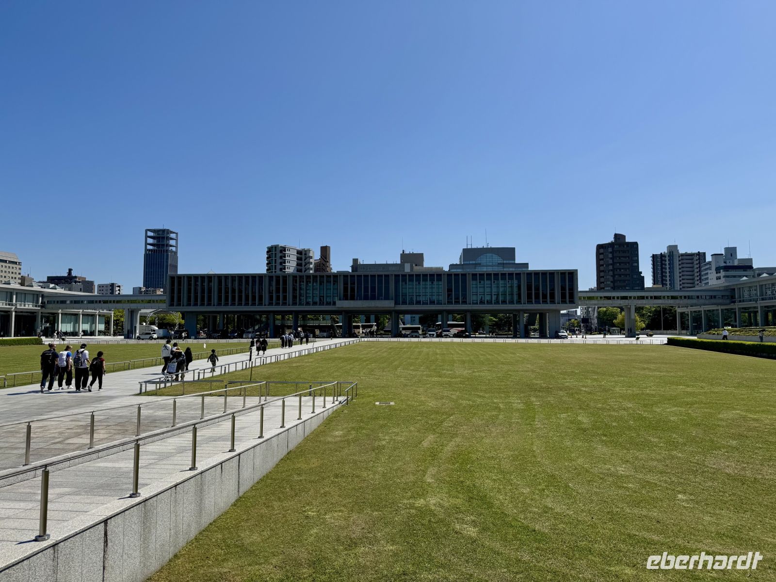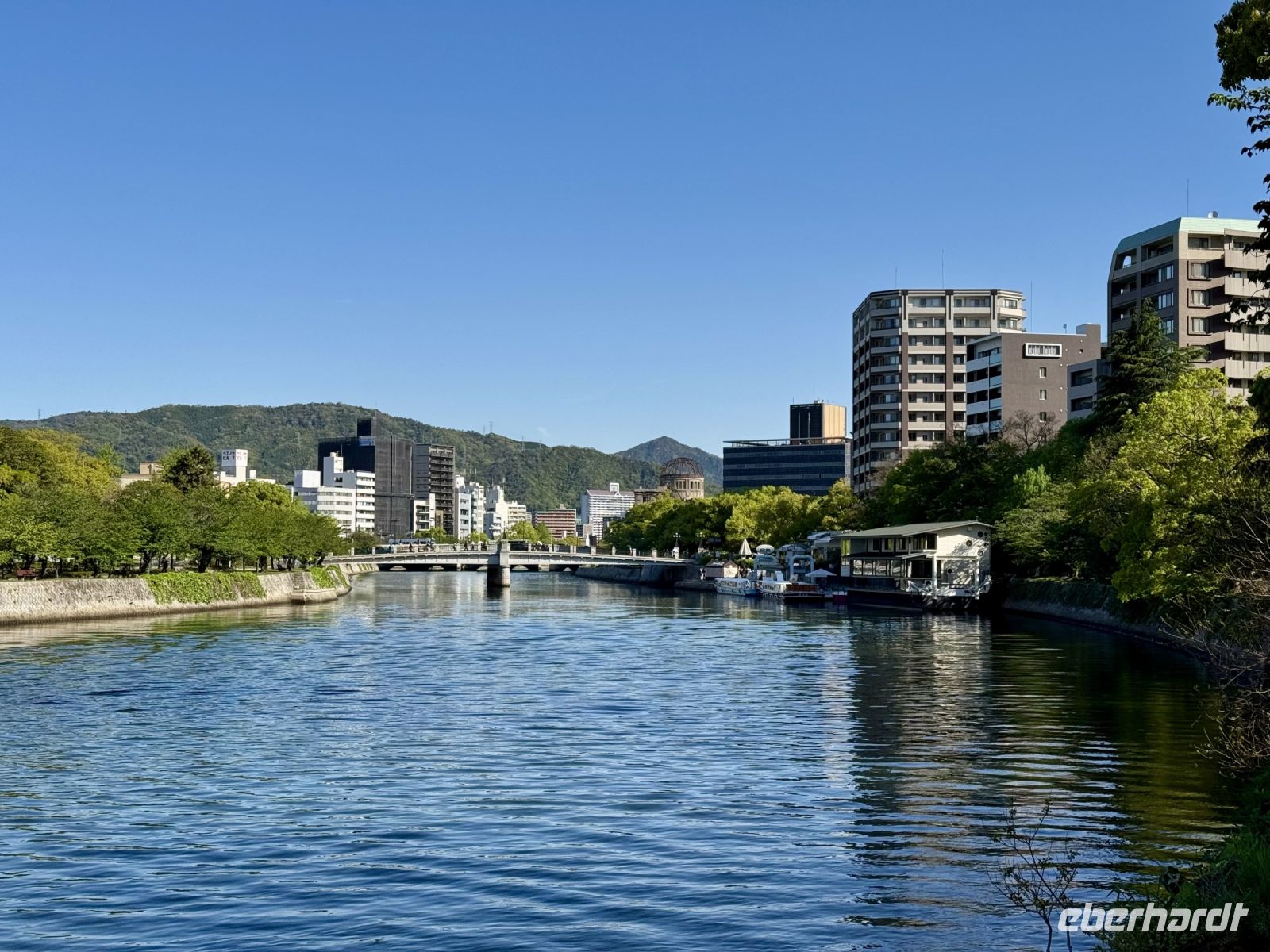 Unser Hotel in Hiroshima ist ja insgesamt sehr schön, doch das tollste Feature, wie es neudeutsch heißt, ist die Aussicht beim Frühstück im Panorama-Restaurant in der 25. Etage. Wir suchen uns extra Plätze am Fenster und können uns gar nicht wieder lösen. Den Anleger der Fähre zur Insel Miyajima haben wir gestern Abend bereits passiert. Nach etwa 10 Minuten Fußmarsch sind wir wieder dort und setzen mit dem Boot zur vorgelagerten Insel über. Das herrliche Wetter mag seinen Teil dazu beitragen, dass wir bei Weitem nicht die einzigen Besucher sind, die sich heute einen der berühmtesten Schreine ganz Japans anschauen möchten. Das berühmte rote Tor im Wasser kennt wahrscheinlich die halbe Welt aus dem Fernsehen und aus Reiseführern. Dem entsprechend gibt es sogar eine kleine Selfie-Warteschlange. Die frei lebenden Hirsche gehen ganz ohne Eintrittskarte ein und aus, begleiten uns teilweise wie ein Hund auf Gassi-Runde. Auch hier werden wir wieder Zeuge einer traditionellen Hochzeit. Das hat Hartmut wieder gut organisiert. Nur den Sonnenschein kann er nicht für sich reklamieren – das geht auf die Kappe unserer lieben Wetterengel (Stichwort: „Wenn Engel reisen.“). Die Freizeit bis zur Mittagspause nutzen einige Gäste, um frische Austern zu probieren. Für alle ganz hilfreich ist aber etwas Nervennahrung, die wir am frühen Nachmittag für den Besuch des Friedensmuseums und Friedensparks in Hiroshima dringend benötigen. Das Thema und die Exponate sorgen nicht nur bei mir für eine emotionale Achterbahnfahrt zwischen Trauer und Wut, Mitgefühl und Angst, einem Gefühl der Ohnmacht und der Hoffnung auf eine friedliche Zukunft und ein Ausbleiben einer Wiederholung des atomaren Infernos. Der Ort der Explosion war ganz in der Nähe unseres Hotels – und heute ist Hiroshima (wieder) eine moderne, lebhafte Stadt. Ein Umstand, den mein Gehirn schwer verarbeiten kann und der gleichzeitig Zeugnis ist für den Überlebenswillen der Menschheit. Mit diesen Gedanken verabschieden wir uns aus Hiroshima und kehren erst zum Hotel und dann mit Taxis und unserem Handgepäck zum Bahnhof zurück. Noch ein letztes Mal fahren wir mit dem Shinkansen. Mit Einbruch der Dämmerung erreichen wir unsere letzte Station Kyoto. Während ich das gesammelte Handgepäck bewache, entführt Hartmut unsere Gäste zu einer Tour durch den Bahnhof, der ein architektonisches Meisterwerk darstellt. Unter dem geschwungenen Hallendach verläuft eine Besucherröhre, die eine tolle Aussicht über die Stadt gewährt. Unser modernes Hotel mit eigenem kleinen Zen-Garten liegt mitten im Zentrum. Wir freuen uns sehr, als wir unsere Koffer neben der Rezeption erblicken, stürzen erst mal auf unsere Zimmer und später hinaus in die Nacht.