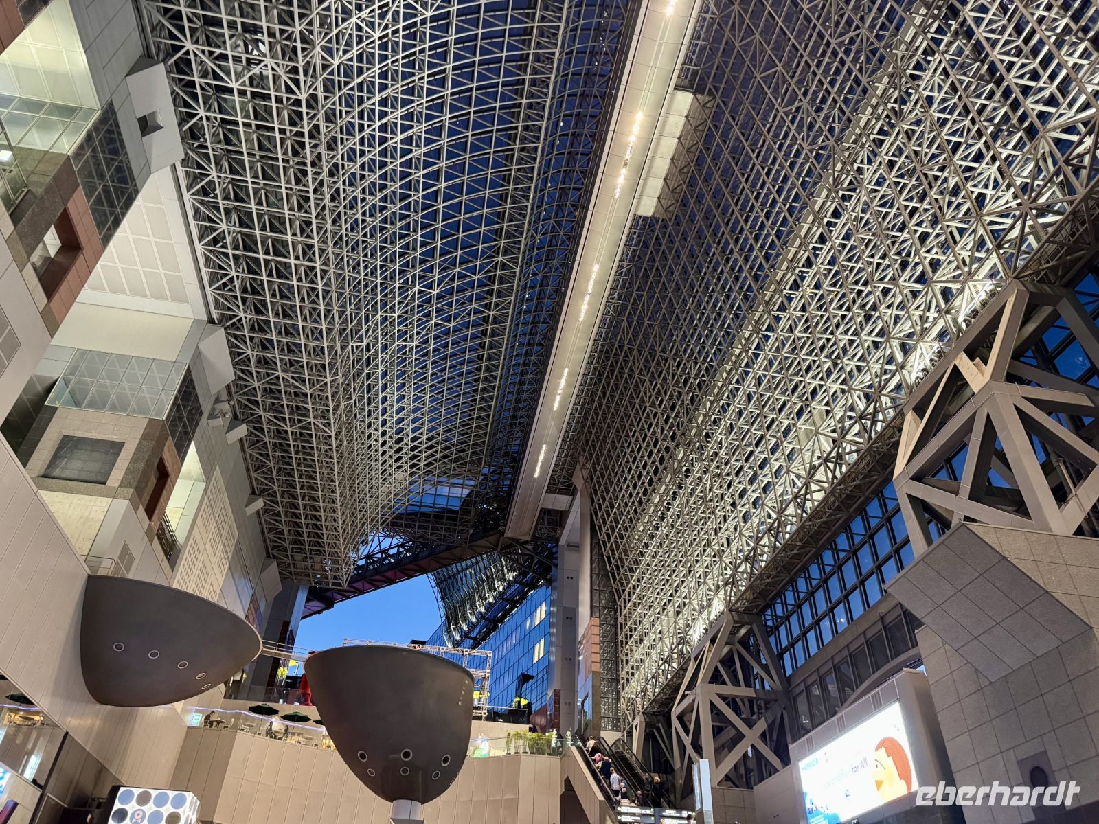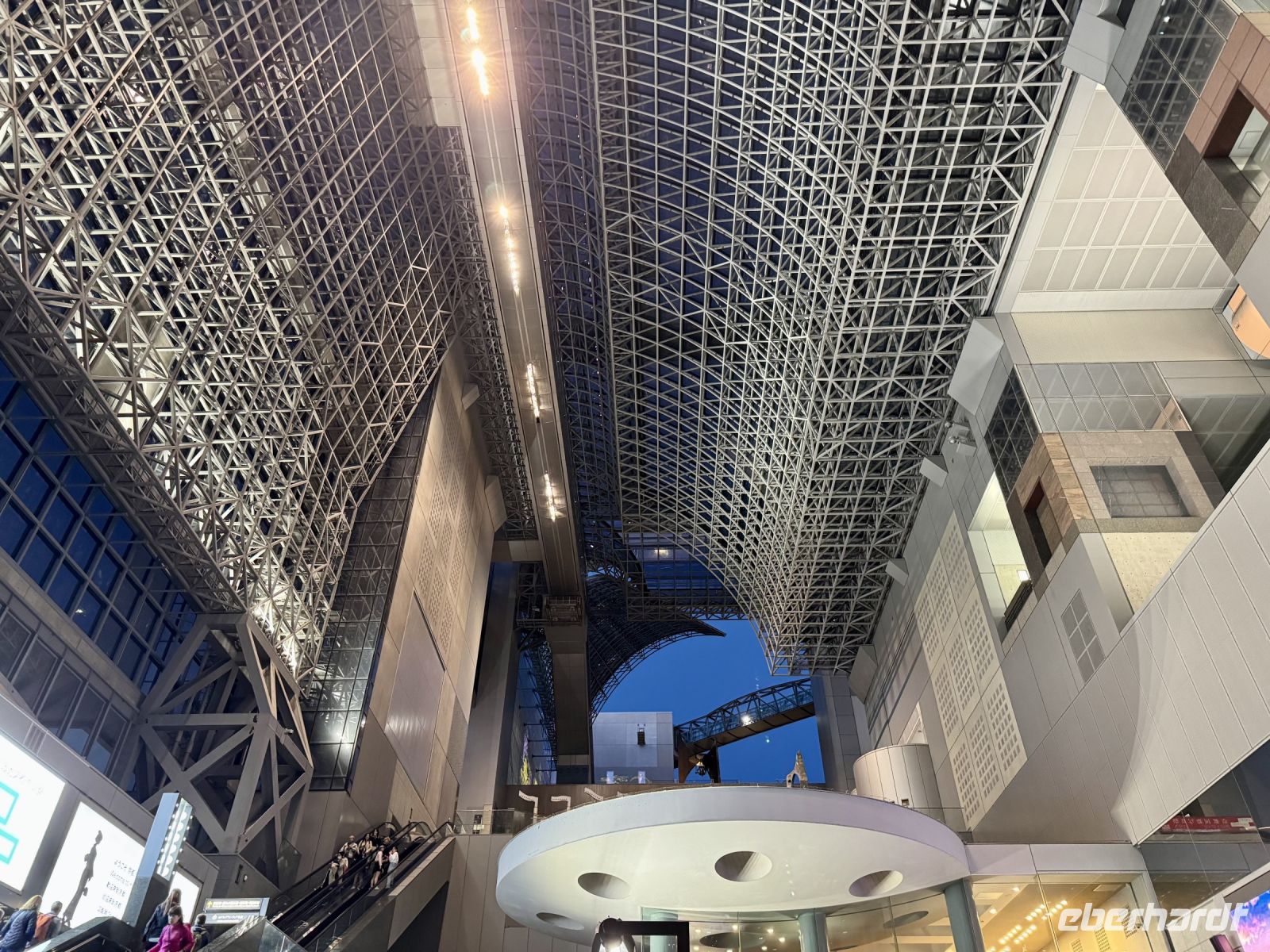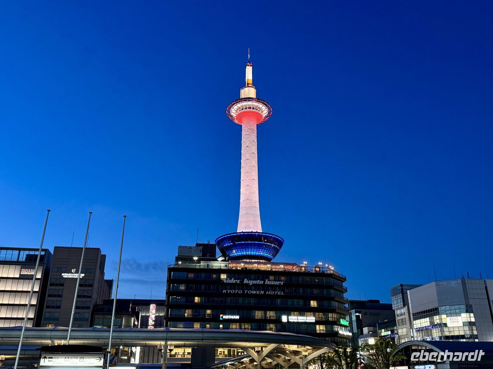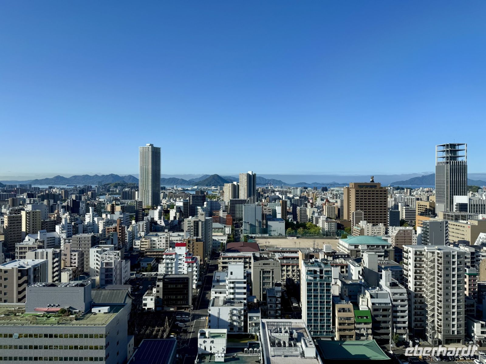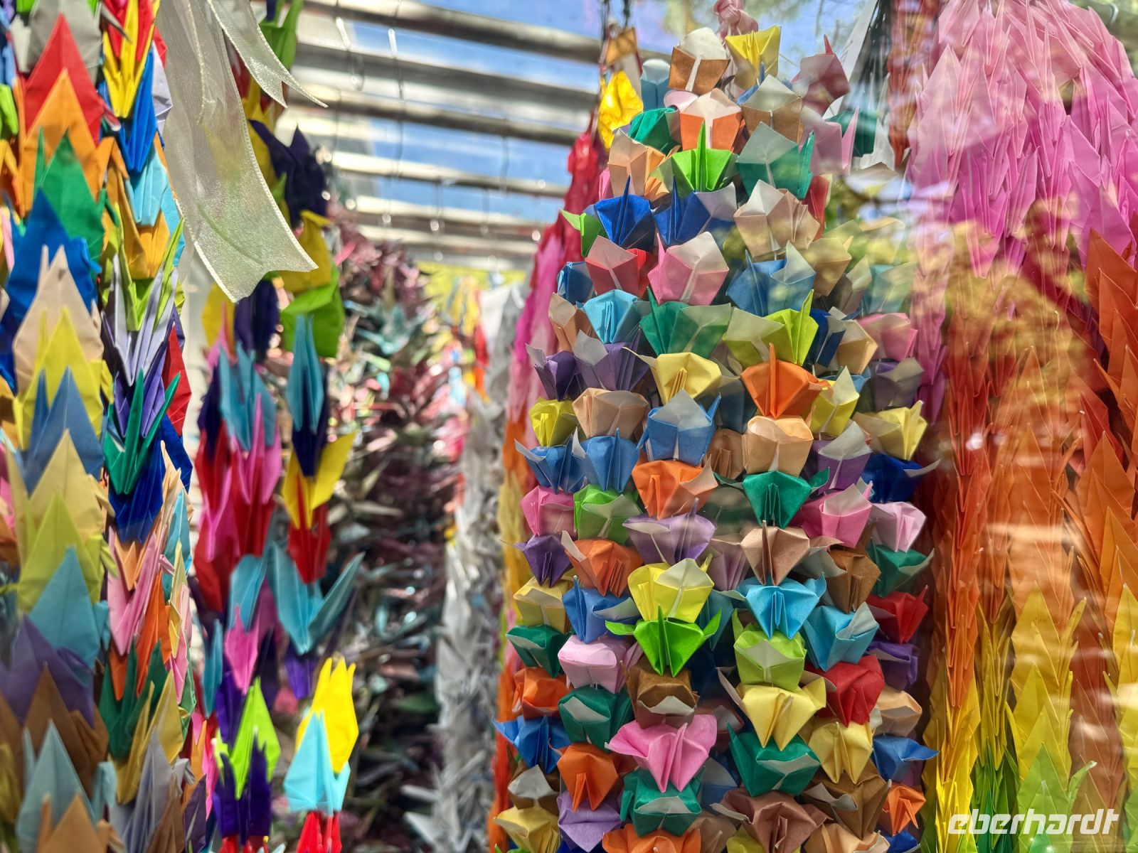 Unser Hotel in Hiroshima ist ja insgesamt sehr schön, doch das tollste Feature, wie es neudeutsch heißt, ist die Aussicht beim Frühstück im Panorama-Restaurant in der 25. Etage. Wir suchen uns extra Plätze am Fenster und können uns gar nicht wieder lösen. Den Anleger der Fähre zur Insel Miyajima haben wir gestern Abend bereits passiert. Nach etwa 10 Minuten Fußmarsch sind wir wieder dort und setzen mit dem Boot zur vorgelagerten Insel über. Das herrliche Wetter mag seinen Teil dazu beitragen, dass wir bei Weitem nicht die einzigen Besucher sind, die sich heute einen der berühmtesten Schreine ganz Japans anschauen möchten. Das berühmte rote Tor im Wasser kennt wahrscheinlich die halbe Welt aus dem Fernsehen und aus Reiseführern. Dem entsprechend gibt es sogar eine kleine Selfie-Warteschlange. Die frei lebenden Hirsche gehen ganz ohne Eintrittskarte ein und aus, begleiten uns teilweise wie ein Hund auf Gassi-Runde. Auch hier werden wir wieder Zeuge einer traditionellen Hochzeit. Das hat Hartmut wieder gut organisiert. Nur den Sonnenschein kann er nicht für sich reklamieren – das geht auf die Kappe unserer lieben Wetterengel (Stichwort: „Wenn Engel reisen.“). Die Freizeit bis zur Mittagspause nutzen einige Gäste, um frische Austern zu probieren. Für alle ganz hilfreich ist aber etwas Nervennahrung, die wir am frühen Nachmittag für den Besuch des Friedensmuseums und Friedensparks in Hiroshima dringend benötigen. Das Thema und die Exponate sorgen nicht nur bei mir für eine emotionale Achterbahnfahrt zwischen Trauer und Wut, Mitgefühl und Angst, einem Gefühl der Ohnmacht und der Hoffnung auf eine friedliche Zukunft und ein Ausbleiben einer Wiederholung des atomaren Infernos. Der Ort der Explosion war ganz in der Nähe unseres Hotels – und heute ist Hiroshima (wieder) eine moderne, lebhafte Stadt. Ein Umstand, den mein Gehirn schwer verarbeiten kann und der gleichzeitig Zeugnis ist für den Überlebenswillen der Menschheit. Mit diesen Gedanken verabschieden wir uns aus Hiroshima und kehren erst zum Hotel und dann mit Taxis und unserem Handgepäck zum Bahnhof zurück. Noch ein letztes Mal fahren wir mit dem Shinkansen. Mit Einbruch der Dämmerung erreichen wir unsere letzte Station Kyoto. Während ich das gesammelte Handgepäck bewache, entführt Hartmut unsere Gäste zu einer Tour durch den Bahnhof, der ein architektonisches Meisterwerk darstellt. Unter dem geschwungenen Hallendach verläuft eine Besucherröhre, die eine tolle Aussicht über die Stadt gewährt. Unser modernes Hotel mit eigenem kleinen Zen-Garten liegt mitten im Zentrum. Wir freuen uns sehr, als wir unsere Koffer neben der Rezeption erblicken, stürzen erst mal auf unsere Zimmer und später hinaus in die Nacht.