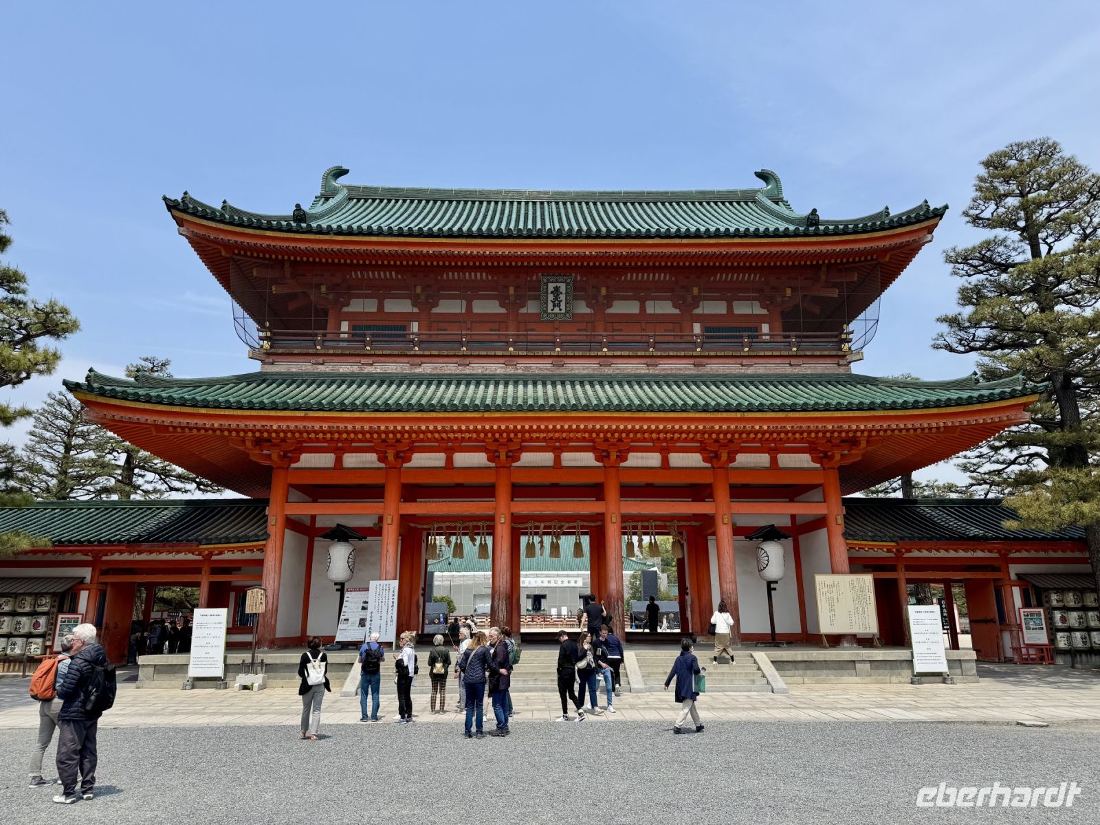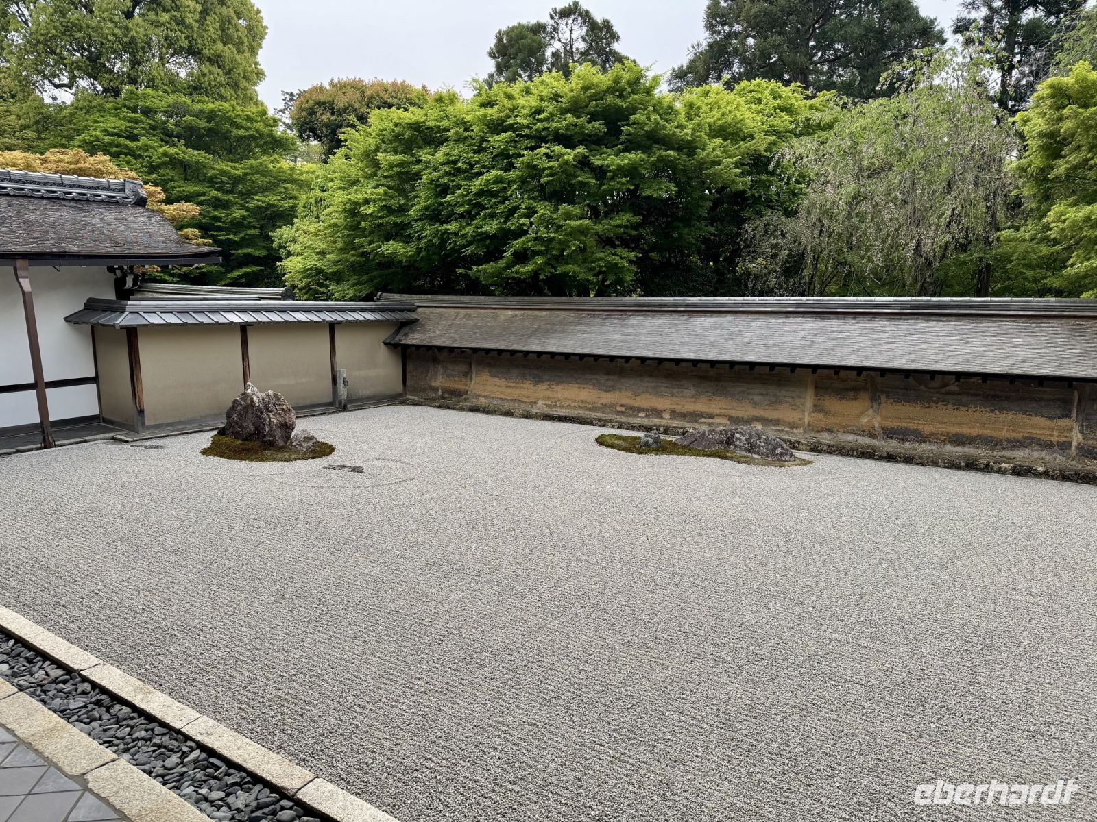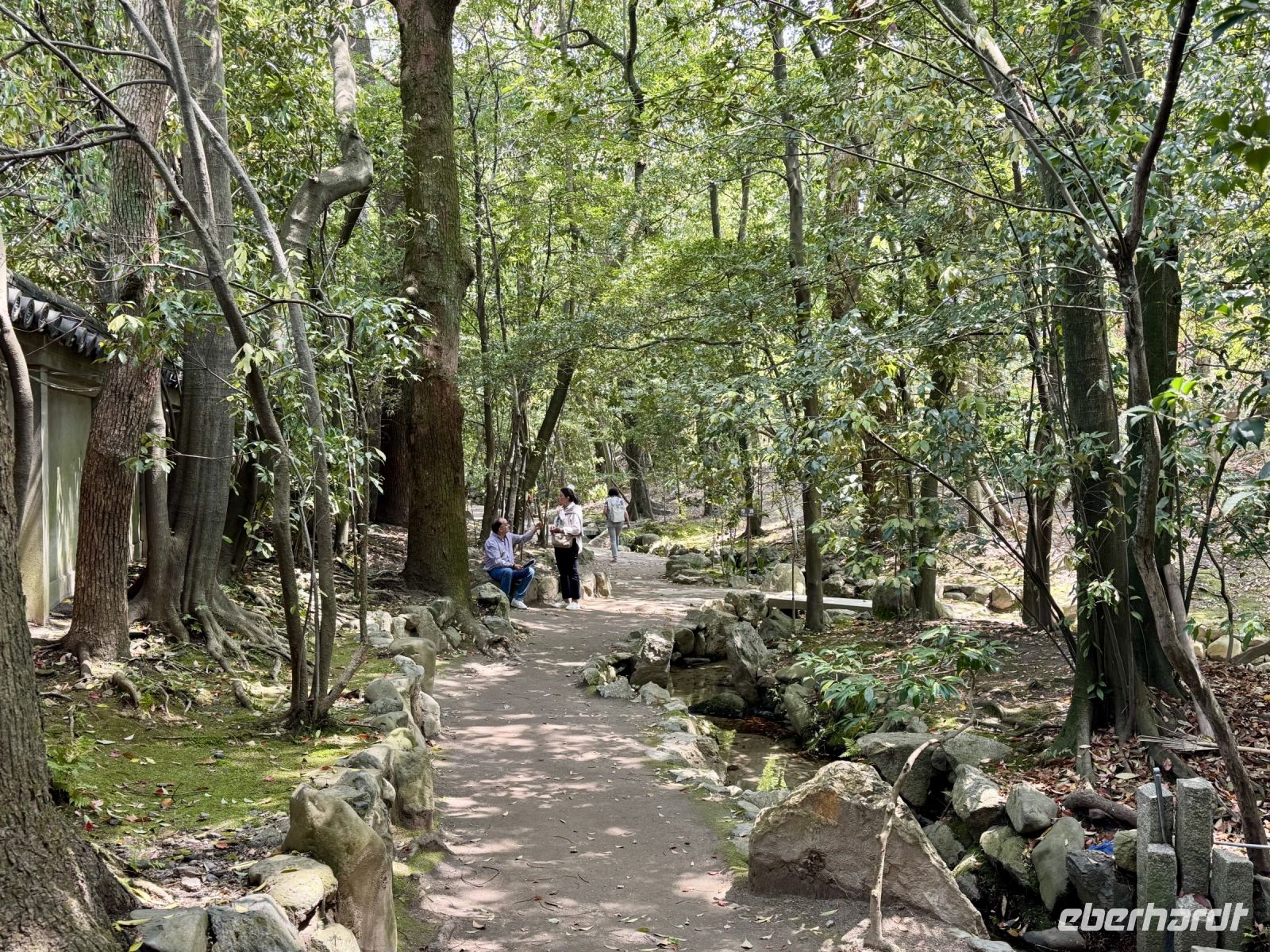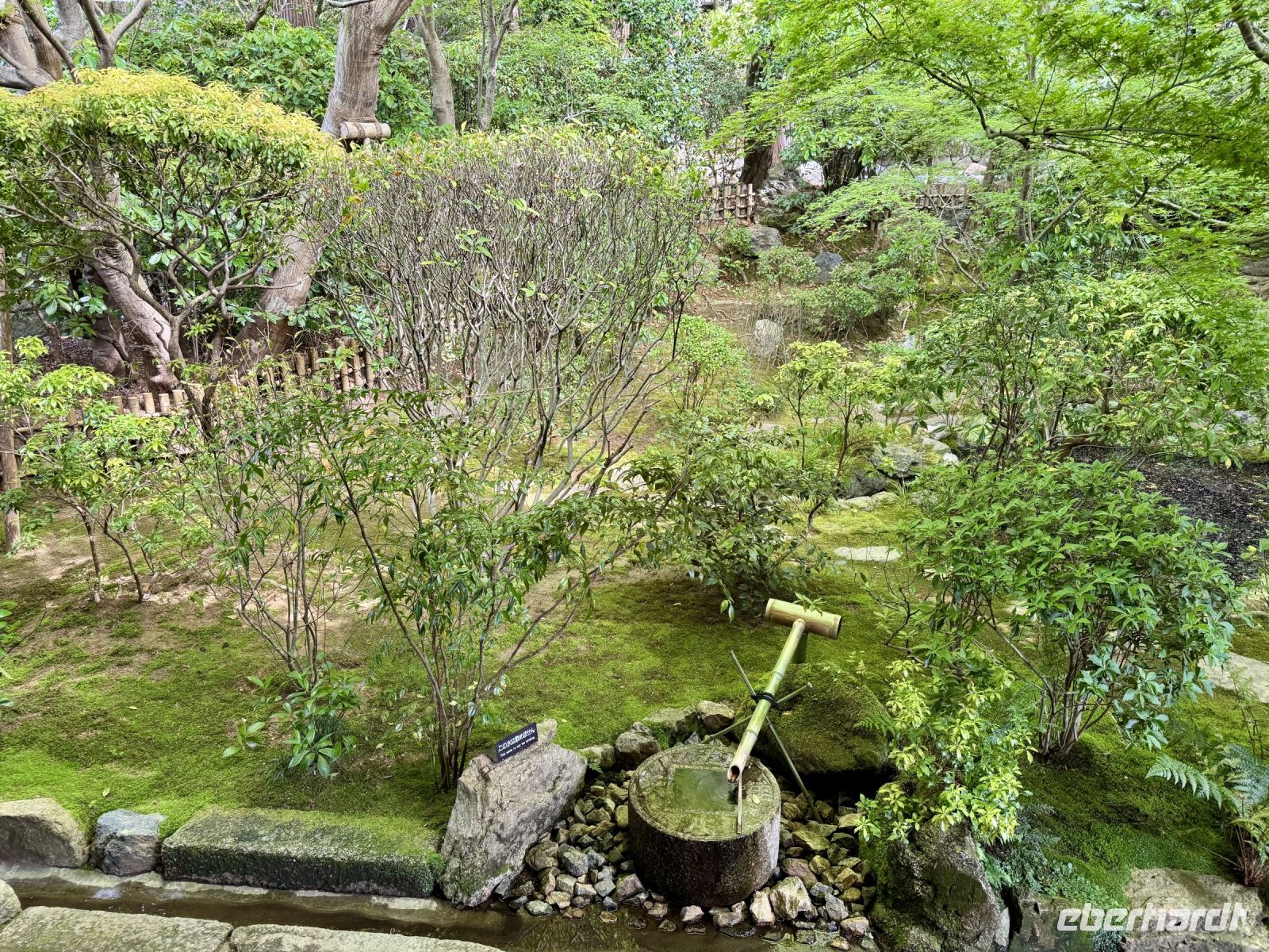 Am heutigen Tag wollen wir fast alle Ecken der rechteckig angelegten Stadt Kyoto erkunden. Wir beginnen auf dem Stadtplan oben links mit einem Besuch des Ryoan-ji-Tempels, der für seinen Zen-Garten bekannt ist. Wir versuchen, uns in einen Zustand der inneren Ruhe zu meditieren, was aber angesichts der anderen Besucher nicht ganz einfach ist. Der Tempelgarten entpuppt sich jedoch als grüne Oase des Friedens und bietet tolle Fotomotive. Ein Abstecher zum Goldenen Pavillon (Kinkaku-ji) ist natürlich ein MUSS bei jeder Stadtrundfahrt durch Kyoto. Das gilt natürlich auch für alle anderen Reisegruppen, zu denen sich noch viele Schulklassen gesellen. Kurzum: Es ist richtig, richtig voll. Ein von Hartmut empfohlenes Softeis soll als Ansporn und Belohnung dienen und erweist sich tatsächlich als sehr lecker. Trotz oder gerade wegen der Goldstaub-Dekoration. Und voll ist es hier – zum Glück – auch nicht mehr. Ruhe und Frieden finden wir aber doch noch, und zwar bei unserem Besuch des Heian-Schreins, eines verkleinerten Nachbaus des Kaiserpalastes. Es ist schon fast eine spirituelle Erfahrung, als sich plötzlich ein Reiher erhebt und majestätisch über den See gleitet. Zurück am Hotel bietet Hartmut ein gemeinsames Sushi-Essen an, das großen Anklang findet. Bis zur Teezeremonie am späten Nachmittag erkunden wir das Zentrum von Kyoto auf eigene Faust, kaufen Souvenirs oder gehen einfach ein bisschen am Fluss spazieren. Auf die Teezeremonie waren wir sehr gespannt und sind dann auch sehr angetan, vor allem von unserer sehr sympathischen Meisterin, die einerseits den Matcha-Tee ganz schnell und ganz locker aus dem Handgelenk aufschäumt und sich andererseits viel Zeit für unsere Fragen nimmt. Sie ist außerdem in der Kunst des Blumensteckens (Ikebana) versiert und zeigt uns eines ihrer kleinen Kunstwerke in der traditionellen Ziernische. Während es nun langsam dunkel wird, entführt uns Hartmut auf einen Spaziergang durch das Geisha-Viertel zum illuminierten Kodai-ji-Tempel. Neben der Lichtershow beeindruckt uns besonders der beleuchtete Bambuswald. Nach einem weiteren Tag mit vielen tollen Eindrücken laufen wir schließlich zu unserem schönen Hotel zurück.