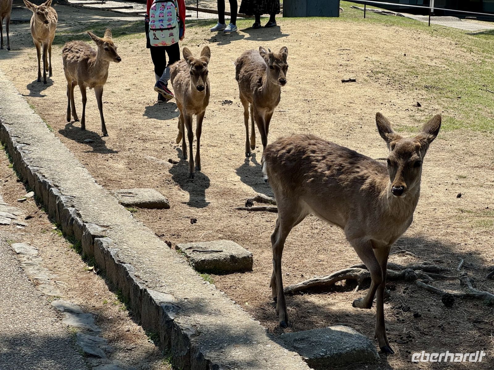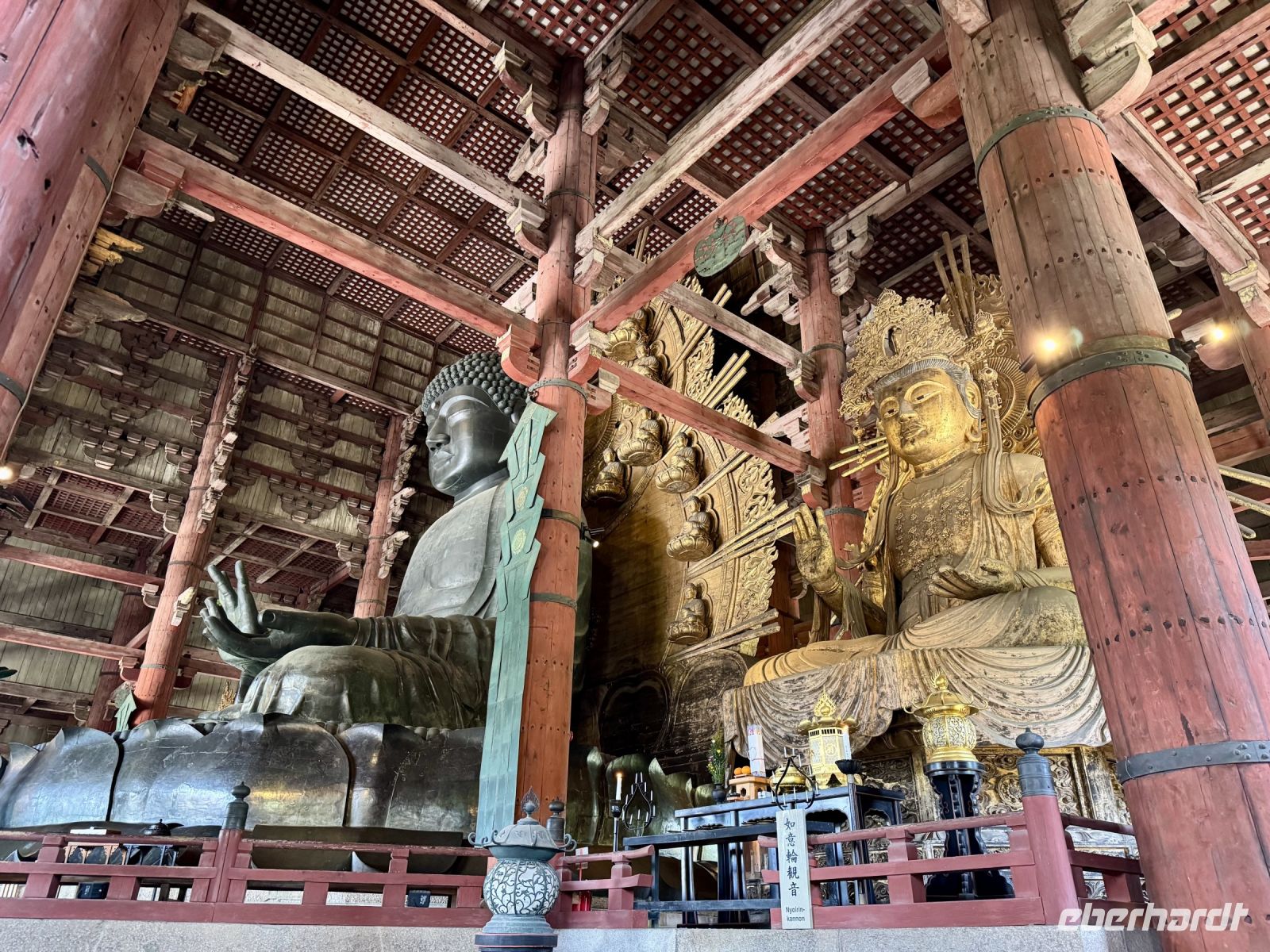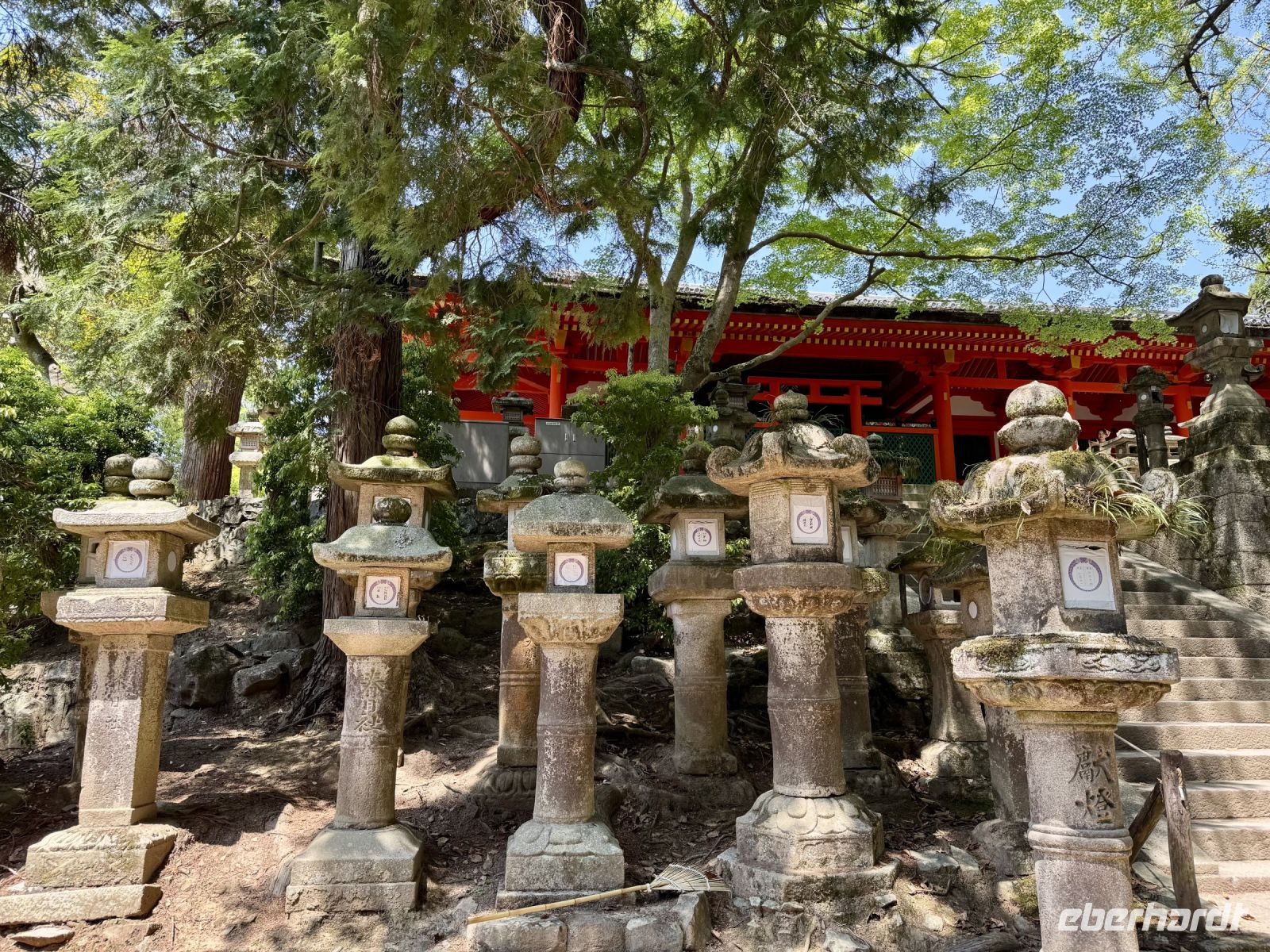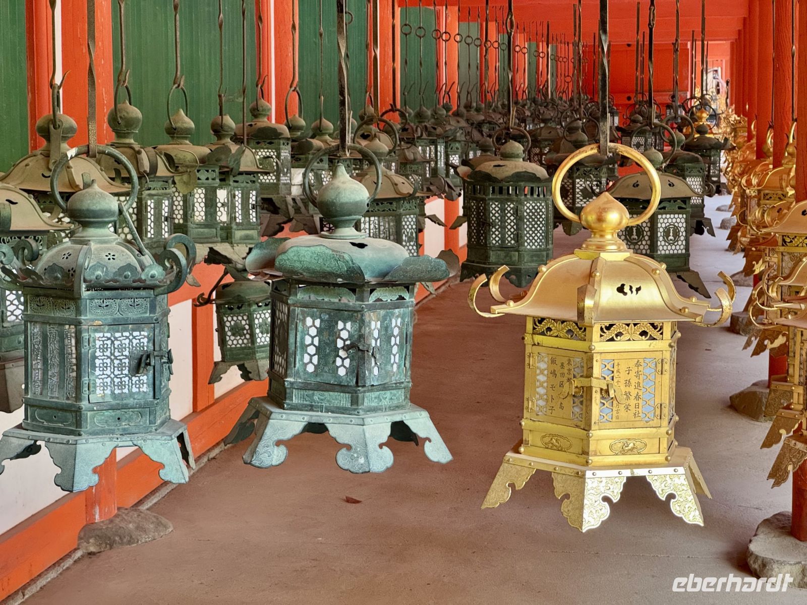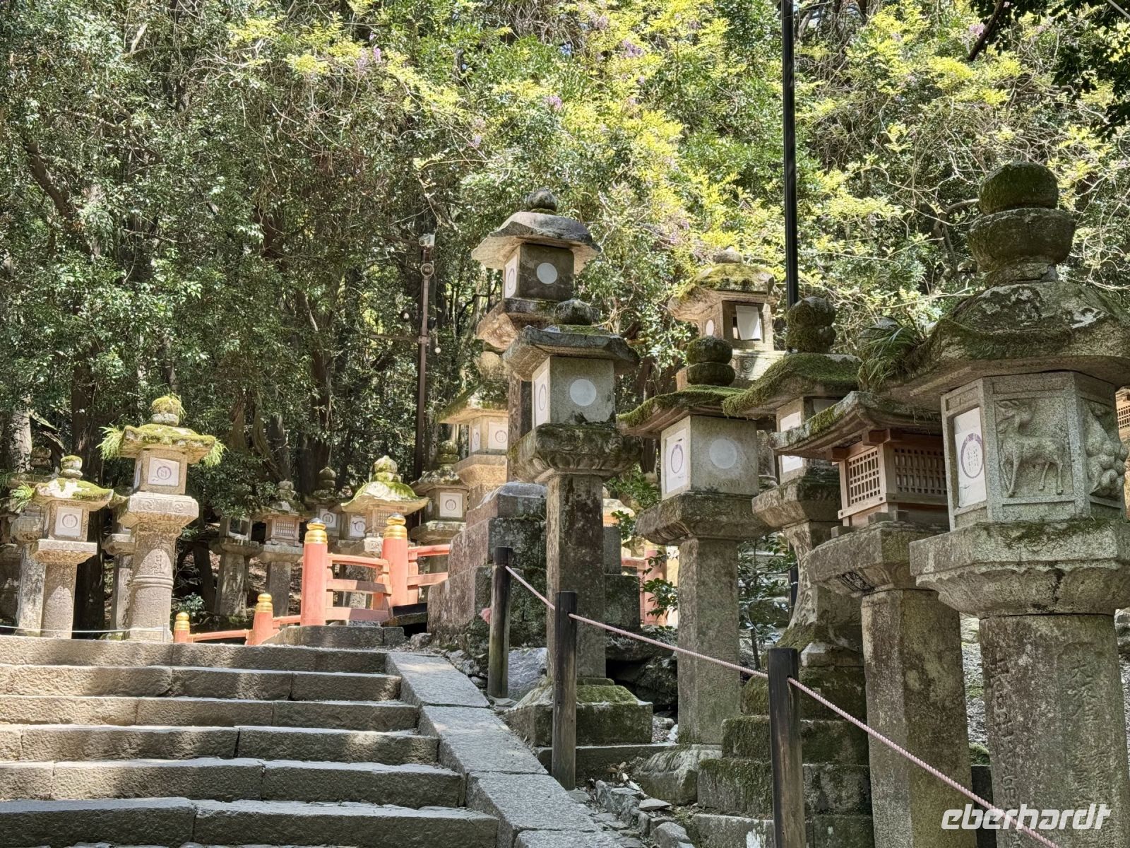 Mit Nara steht heute eine weitere ehemalige Hauptstadt auf dem Programm. Die eine Stunde Fahrt vertreiben wir uns mit einem Haiku-Wettbewerb mit tollen Beiträgen. Hauptattraktion in Nara ist weder der größte sitzende Bronze-Buddha der Welt in einem der größten Holzgebäude der Welt, auch nicht der Kasuga-Taisha-Schrein mit seinen vielen Laternen — nein, es sind die höflichen Sikahirsche, die sich freundlich vor den Besuchern verbeugen und um Kekse bitten. Sie können allerdings auch ganz schön hartnäckig sein, wenn sie einmal angefüttert werden. Hartmut warnt uns deshalb vor Beginn unseres ausgedehnten Spaziergangs durch den Nara-Park vor Bissen in den Hintern und anderem möglichen Schabernack. Natürlich besuchen wir auch den Bronze-Buddha und seine beiden Begleiter, steigen die Treppen hinauf zum Nigatsudo-Tempel (wo wir eine kleine Teepause einlegen), laufen dann durch die Sonne gemütlich weiter zum erwähnten Kasuga-Taisha-Schrein (ziehen uns je nach Laune unterwegs ein Eis aus dem Automaten) und werden schließlich am dortigen Busparkplatz von unserem Fahrer wieder aufgesammelt. Am frühen Nachmittag sind wir zurück in Kyoto und haben noch mal einige Stunden Freizeit. Inzwischen kennen wir uns einigermaßen gut in der alten Kaiserstadt aus und wissen, wo die besten Geschäfte für letzte Souvenirs zu finden sind. Unser gemeinsames Abschiedsabendessen findet einmal mehr in einem traditionellen Grillrestaurant statt. Diesmal dürfen wir 90 Minuten lang alles von der Karte bestellen, was unser Herz begehrt — na dann legen wir mal los! Es gibt ganz viele tolle Gerichte zum Probieren. (Nur leider kommt bis zum Ende trotz Mehrfachbestellung nicht alles bei uns an. Meinem Eis trauere ich immer noch hinterher … Satt werden wir aber trotzdem alle – nicht zuletzt dank freundlicher Würstchen-Spenden vom Nachbartisch!) Den letzten gemeinsamen Abend nutzen wir auch, um uns bei unserem Reiseleiter Hartmut zu bedanken, der uns mit seinem Wissen, seinen Anekdoten und seiner gelassenen Art sehr beeindruckt hat. Gern würden wir mit ihm weitere Ecken dieses geheimnisvollen Landes erkunden!