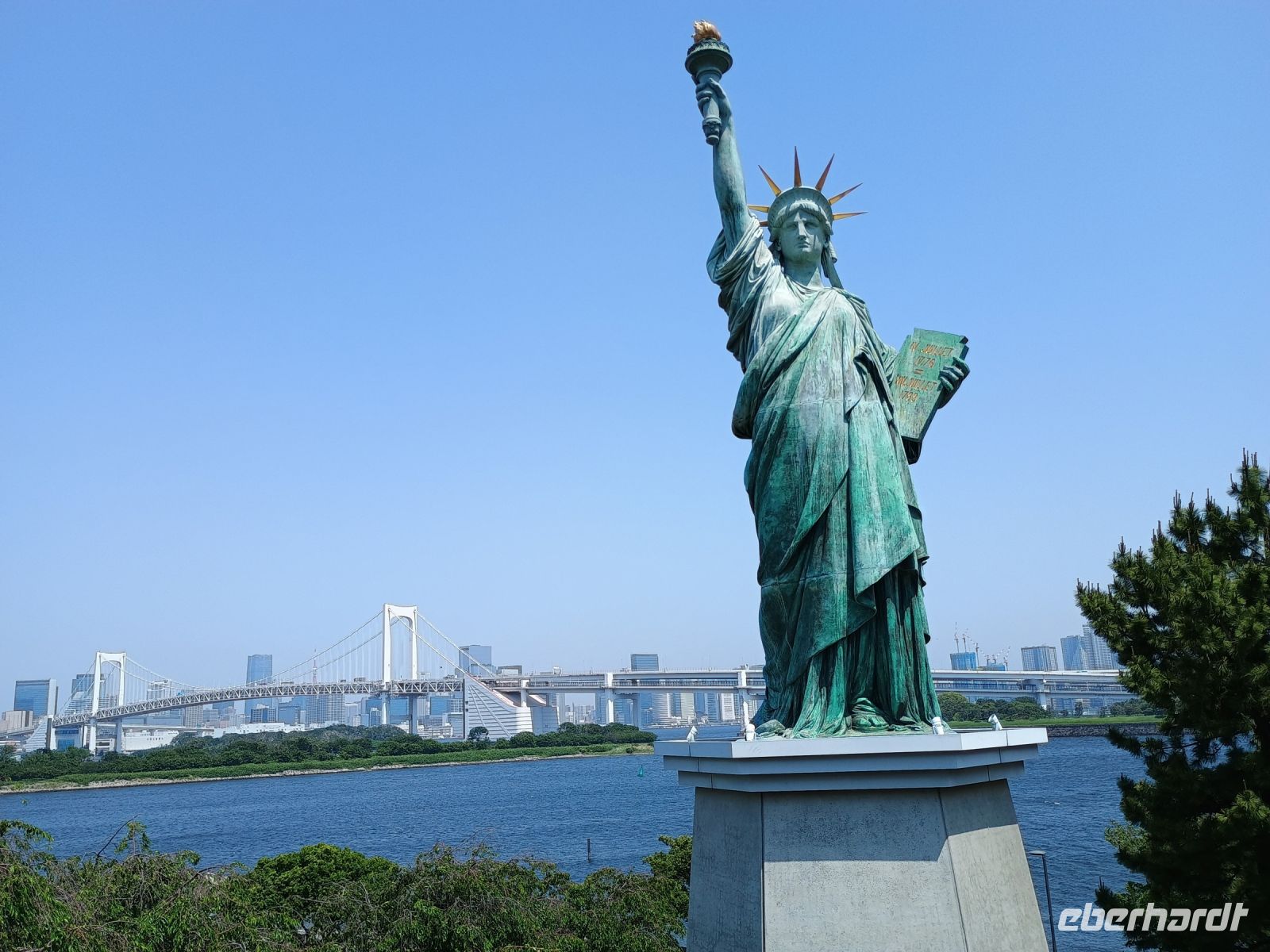 Japan heißt auf Japanisch Nihon veraltet Nippon und bedeutet den Ursprung der Sonne. Nach der Einreise erwartet uns bereits Samira, unsere örtliche Reiseleitung für die nächsten 13 Tage. Zusammen bringt uns unser Busfahrer Miya Zaki in die Hauptstadt Japans, Tokio. Da wir schnell durch die Kontrollen gekommen sind, haben wir noch viel Zeit bis zu unserem Timeslot beim Skytree, dadurch haben wir die Möglichkeit, einen Spaziergang über eine vorgelagerte Insel zu machen. Odaiba wurde auf aufgeschüttetem Land errichtet und ist ein Paradebeispiel für Japans Innovationsgeist. Die Insel wurde ursprünglich als Verteidigungsplattform im 19. Jahrhundert angelegt und später in den 1990er Jahren zu einem Erholungs-, Einkaufs- und Technologiezentrum ausgebaut. Hier machen wir einen kleinen Spaziergang und genießen unsere erste Sicht auf die Skyline Tokios mit der Rainbow Bridge im Vordergrund. Diese Brücke wird im Dezember in Regenbogenfarben beleuchtet, und die Bevölkerung hat den Namen der Brücke selbstständig gewählt. Auf dem Weg zum zweithöchsten Bauwerk der Welt, dem Tokyo Skytree, erzählt uns Samira einige interessante Fakten über das Land. Japan erstreckt sich 3000 km von Nord nach Süd und hat somit mehrere Klimazonen. Die Japaner selbst denken, dass ihr Land klein ist, das liegt vor allem daran, dass es viele Berge und Gebiete gibt, die unbewohnbar sind. So leben zum Beispiel 30 % der Gesamtbevölkerung in der Metropolregion Tokio, die in 23 Stadtbezirke aufgeteilt ist. Die Japaner leben nach der Regel, man macht nichts, was andere stören könnte, so spricht man in der Bahn nicht und isst auch nichts im Gehen.