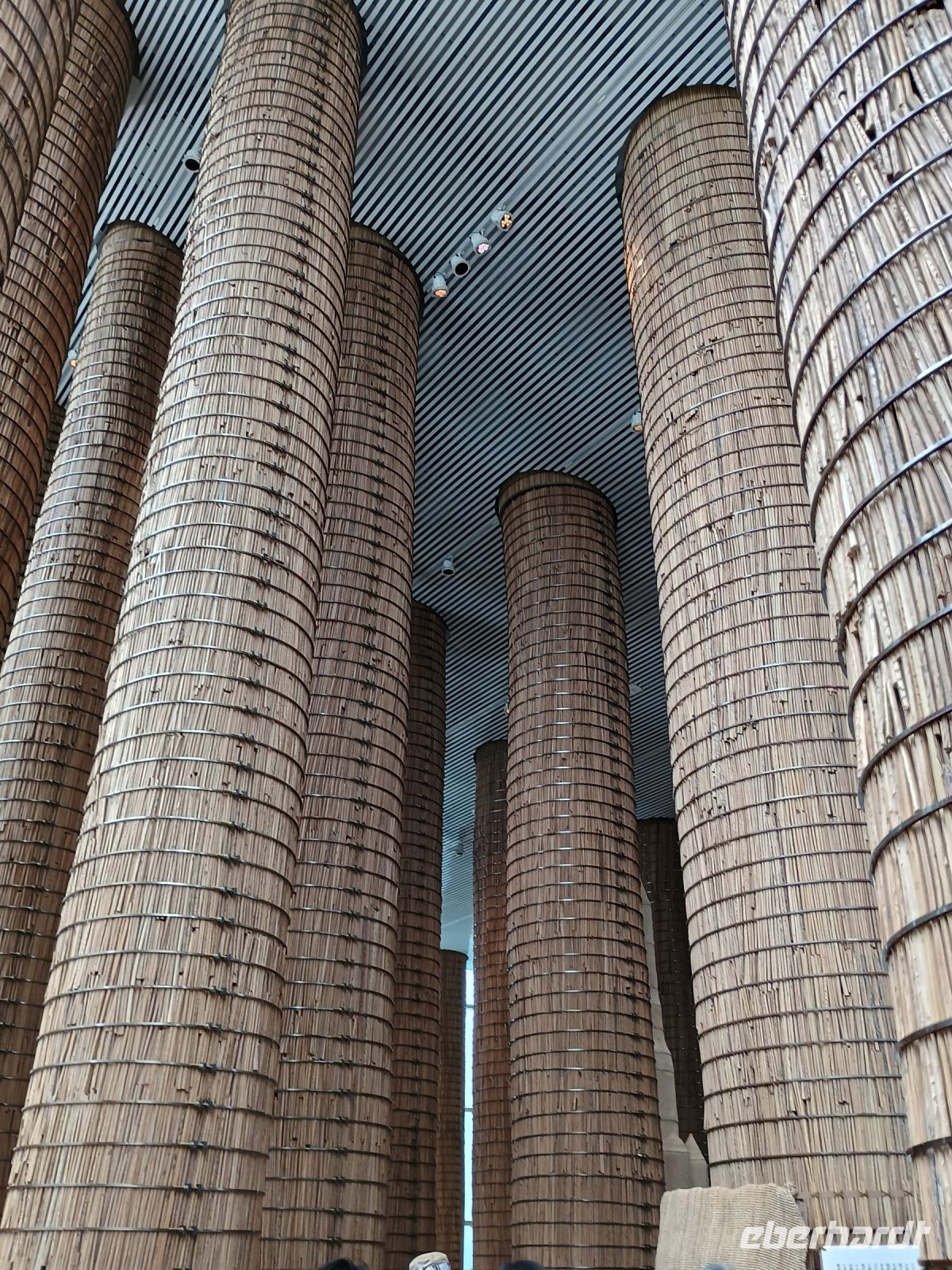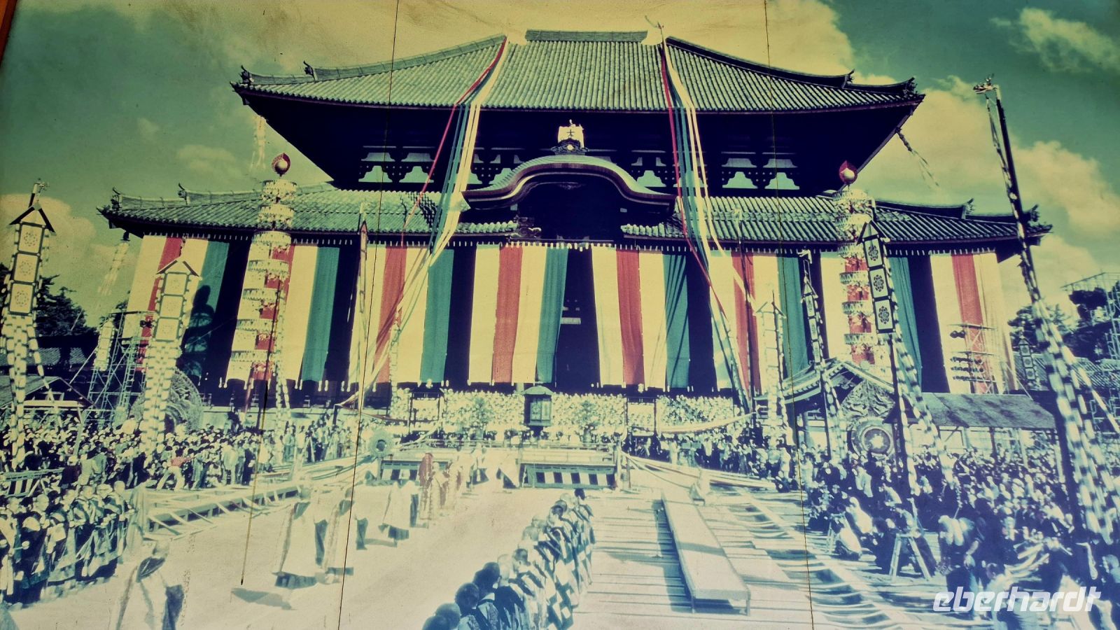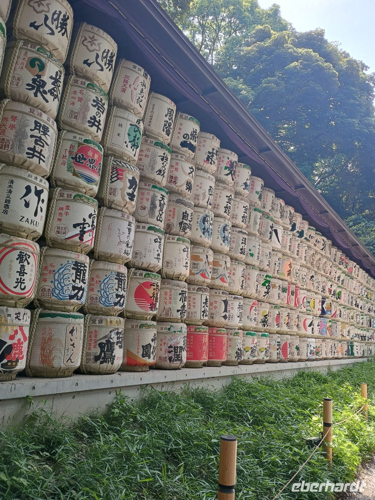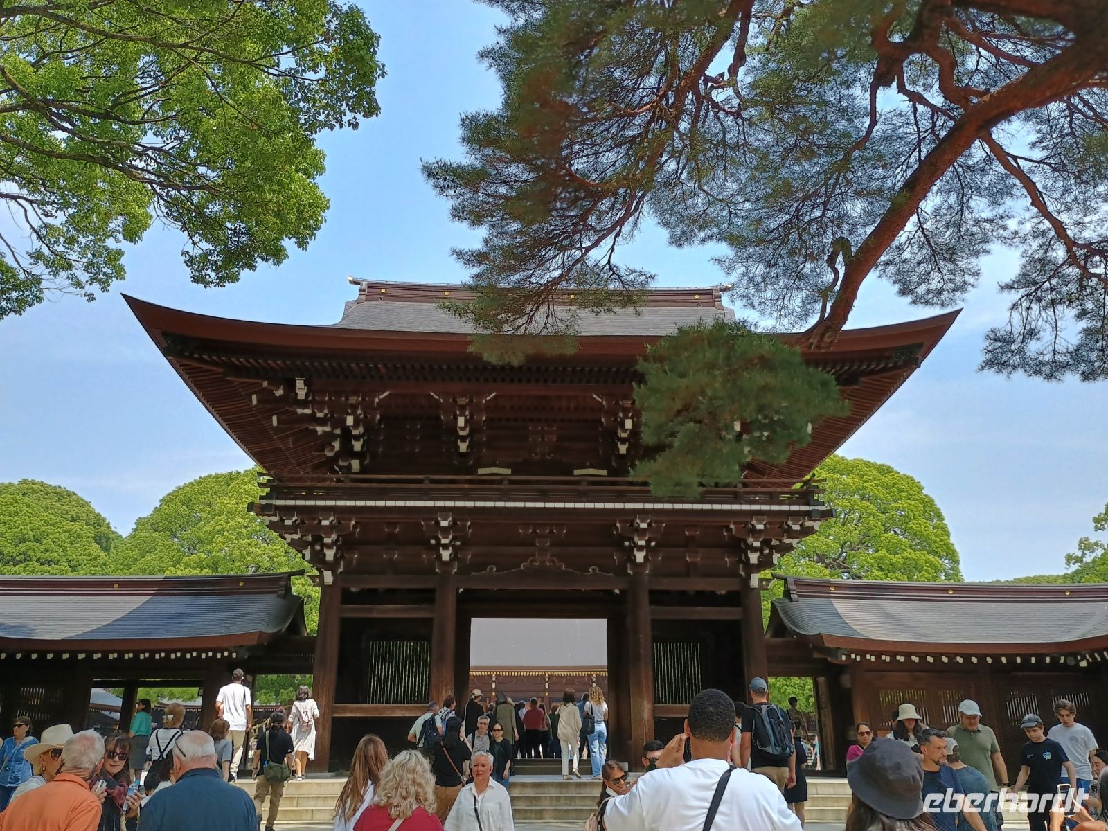 Nach einem leckeren Frühstück, wo man die Wahl zwischen vielen asiatischen und westlichen Gerichten hat, geht es für uns mit dem Bus zu unserem ersten Ziel, dem Meji-Schrein. Der Schrein liegt im Stadtteil Shibuya und wurde 1912 angefangen zu bauen zu Ehren des Kaisers Meji und seiner Frau. 1920 wurde der Schrein fertiggestellt. Im Zweiten Weltkrieg wurde der Schrein durch Bombenangriffe zerstört und 1958 originalgetreu wiederaufgebaut. Der Schrein liegt in einem großen bewaldeten Areal von 70 Hektar, die 100.000 Bäume wurden aus ganz Japan gespendet und machen den Schrein zu einer Oase mitten in der Metropole Tokio. Zum Hatsumode, dem ersten Schreinbesuch des Jahres, zieht es über 3 Millionen Besucher her, eine der höchsten Besucherzahlen Japans.