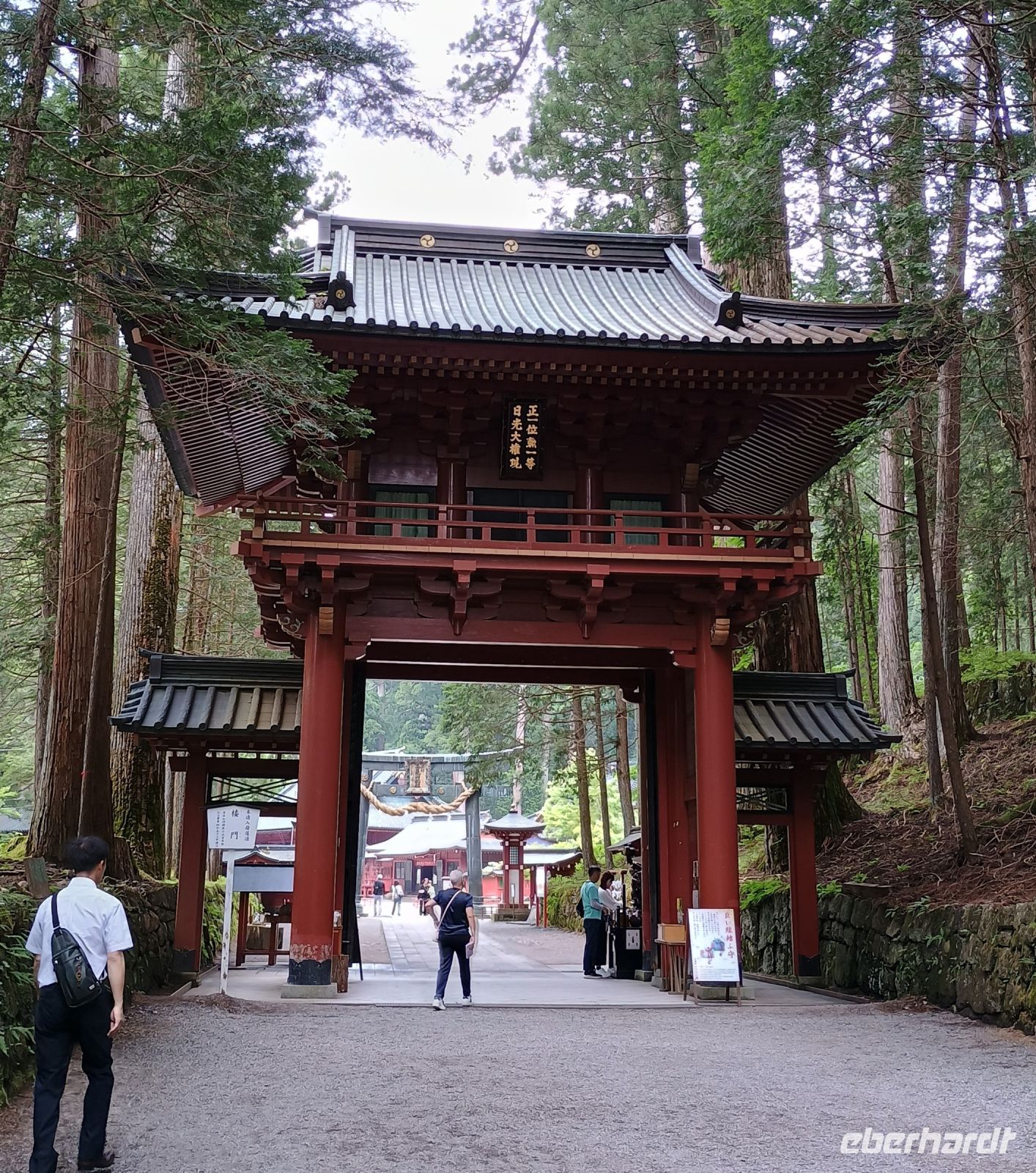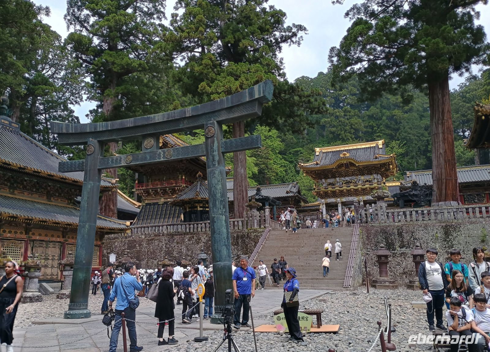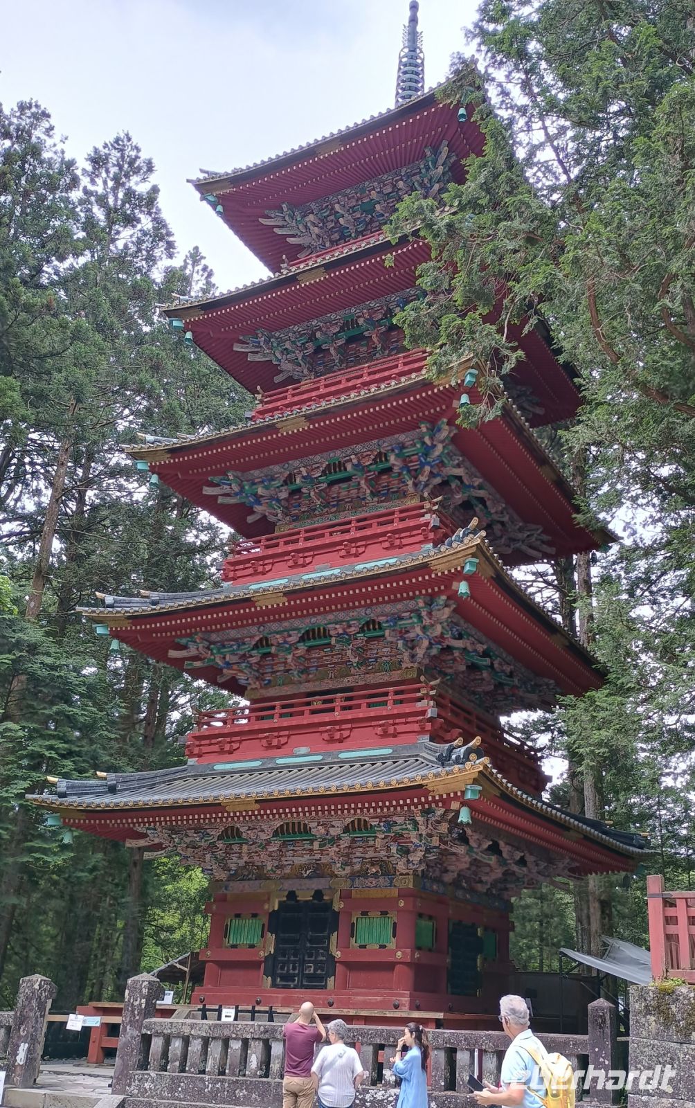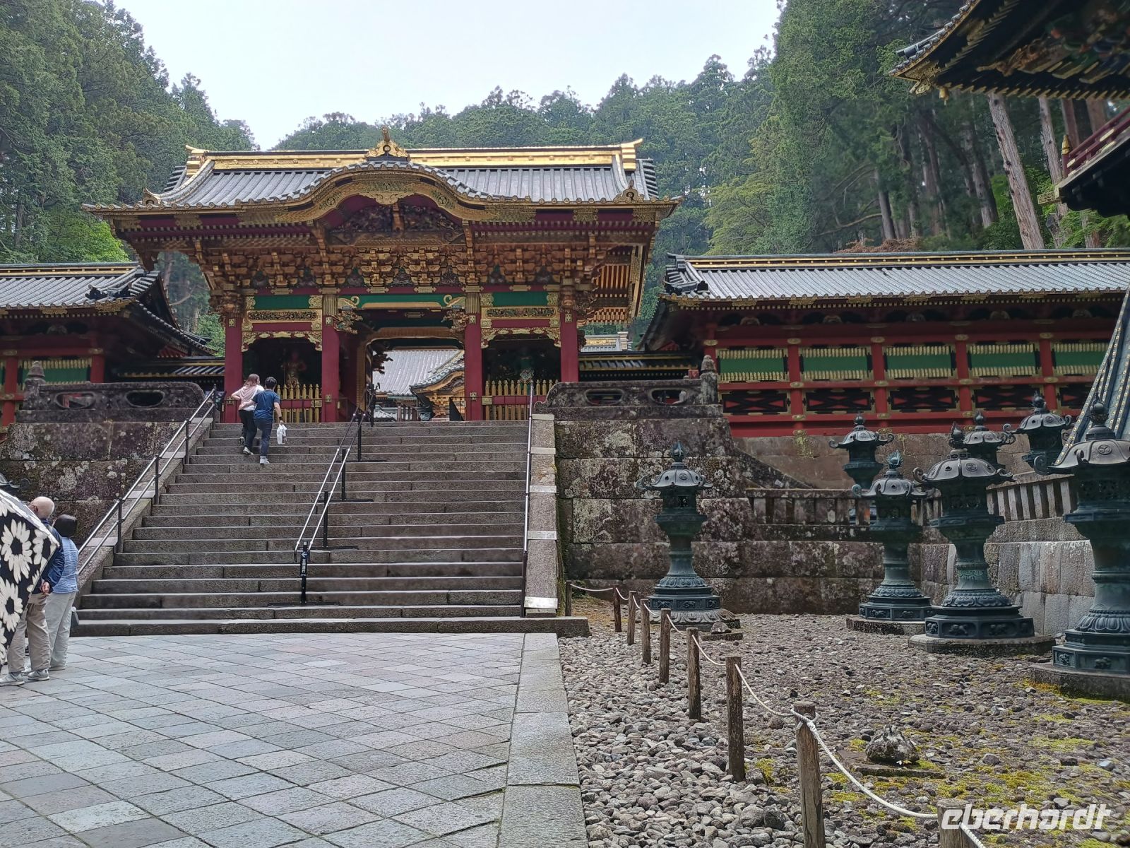 Heute geht es für uns über die Autobahn nach Nikko in der Präfektur Tochigi, etwa 140 km nördlich von Tokio. Auf der längeren Fahrt erzählt uns Samira wieder einiges zu dem Leben in Japan. Das Land besteht aus 47 Präfekturen, diese sind ähnlich wie bei uns in Deutschland die Bundesländer. Die meisten Japaner, die in der Region Tokio leben, haben kein Auto, da es in der Stadt bei den Wohnblocks oft keine Parkplätze gibt bzw. man einen Parkplatz für 200-300 Euro im Monat mieten müsste, außerdem ist man in der Stadt mit den öffentlichen Verkehrsmitteln super angebunden und teilweise schneller als mit dem Auto. Von allen neuen gekauften Autos sind 60 % Hybridfahrzeuge, und Japans Ziel ist es, bis 2035 auf E-Mobilität umzusteigen, dafür werden auch immer mehr Parkplätze für E-Autos gebaut. Der Toshogu Schrein wurde im Jahr 1617 errichtet und ist dem mächtigen Shogun Tokugawa Ieyasu gewidmet – dem Gründer des Tokugawa-Shogunats, das Japan über 250 Jahre lang regierte (Edo-Zeit, 1603–1868). Er wurde hier als Gottheit unter dem Namen Tosho Daigongen („Großer Avatar des östlichen Lichts“) verehrt. Die heutige prachtvolle Anlage wurde zwischen 1634 und 1636 unter der Leitung seines Enkels, Tokugawa Iemitsu, massiv erweitert und verschönert. Viele kennen vielleicht die Serie Shogun, da geht es ebenfalls um die Geschichte des Shogun, dessen Grab wir heute besuchen, jedoch in abgehandelter Form, deshalb hat man auch den Namen in der Serie geändert und hat ihn nicht Tokugawa Ieyasu genannt. Auf dem Gelände findet man eine 5-stöckige Pagode, diese steht für die 5 Existenzen Erde, Wasser, Feuer, Wind und Himmel. Neben der Pagode gibt es noch weitere Hauptmerkmale des Schreins wie zum Beispiel das Haupttor Yomeimon, dieses ist aufwendig geschnitzt, vergoldet und mit über 500 detailreichen Figuren dekoriert und gilt als Kulturgut nationalen Rangs. Des Weiteren zählt dazu „Drei weise Affen“, diese Schnitzerei befindet sich an einem Stallgebäude und ist eine ikonische Darstellung und wurde durch diesen Ort weltweit bekannt. Die Affen halten sich die Ohren zu, den Mund und die Augen, dies soll verdeutlichen, dass die Affen nichts Böses sehen, hören oder sagen. Viele denken jetzt, das kommt einem bekannt vor, und ich bin mir sicher, jeder hat eines der Emojis bei WhatsApp schon einmal benutzt, die auf dieser Schnitzerei beruhen. Eine kleine, aber berühmte Schnitzerei von Hidari Jingoro, einem legendären Holzschnitzer, ist die "Schlafende Katze", auch japanisch Nemuri-neko genannt. Sie gilt als Symbol für Frieden – da sogar eine Katze ruhig schläft. Hinter dem Hauptschrein führt eine Treppe mit vielen Stufen hoch zum Grabmal von Tokugawa Ieyasu.
