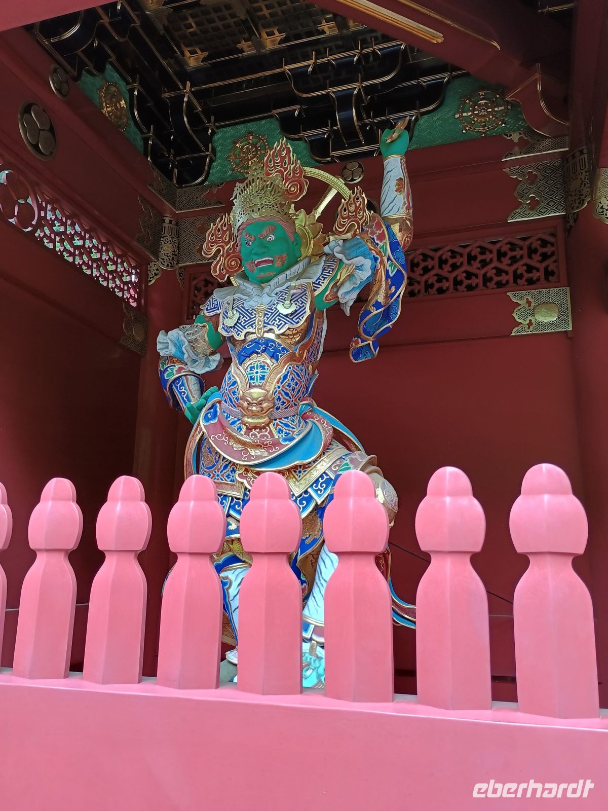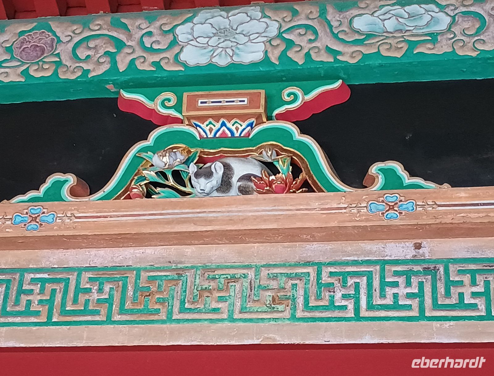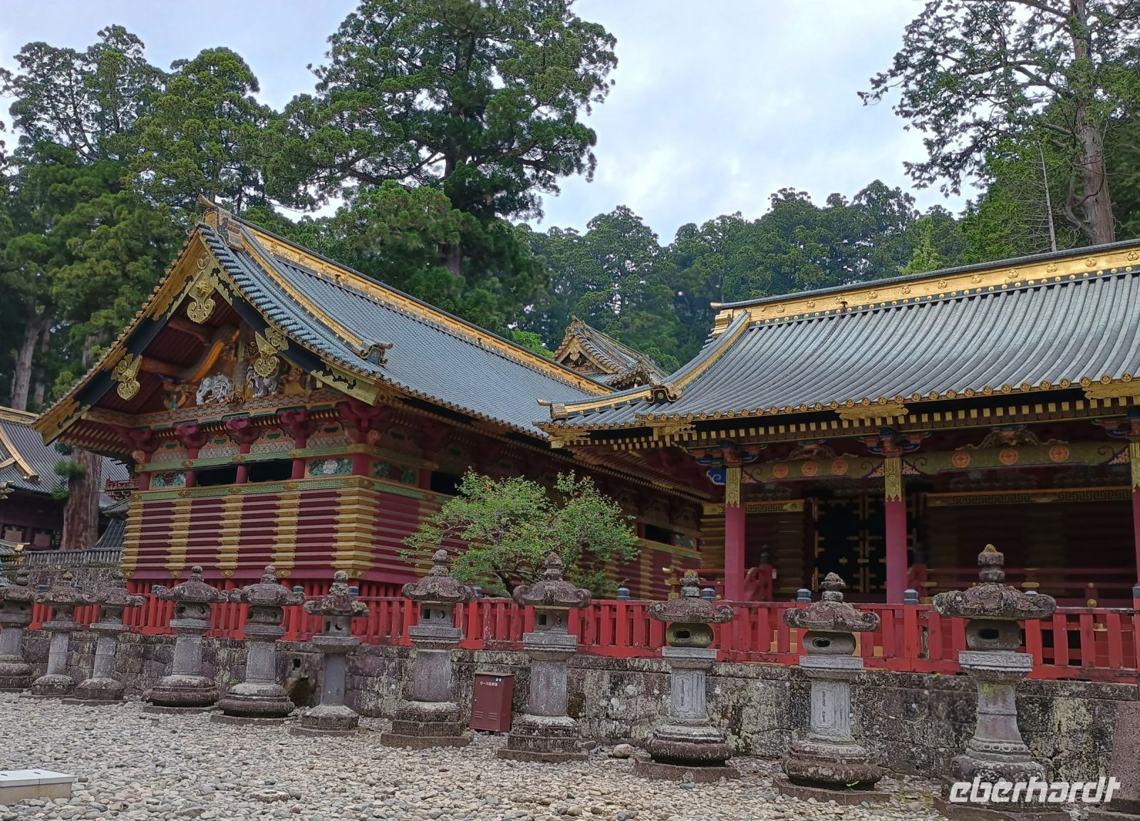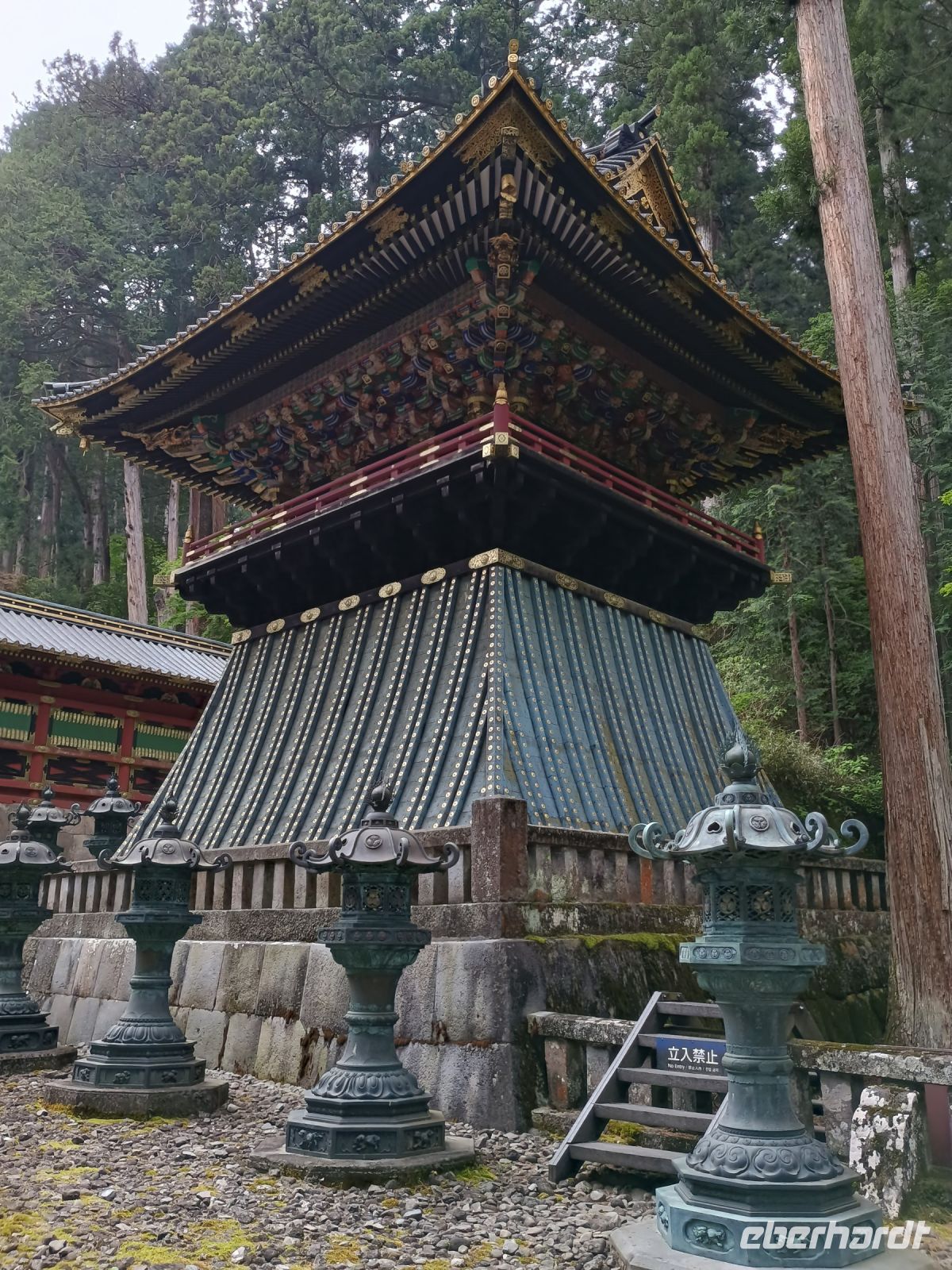 Heute geht es für uns über die Autobahn nach Nikko in der Präfektur Tochigi, etwa 140 km nördlich von Tokio. Auf der längeren Fahrt erzählt uns Samira wieder einiges zu dem Leben in Japan. Das Land besteht aus 47 Präfekturen, diese sind ähnlich wie bei uns in Deutschland die Bundesländer. Die meisten Japaner, die in der Region Tokio leben, haben kein Auto, da es in der Stadt bei den Wohnblocks oft keine Parkplätze gibt bzw. man einen Parkplatz für 200-300 Euro im Monat mieten müsste, außerdem ist man in der Stadt mit den öffentlichen Verkehrsmitteln super angebunden und teilweise schneller als mit dem Auto. Von allen neuen gekauften Autos sind 60 % Hybridfahrzeuge, und Japans Ziel ist es, bis 2035 auf E-Mobilität umzusteigen, dafür werden auch immer mehr Parkplätze für E-Autos gebaut. Der Toshogu Schrein wurde im Jahr 1617 errichtet und ist dem mächtigen Shogun Tokugawa Ieyasu gewidmet – dem Gründer des Tokugawa-Shogunats, das Japan über 250 Jahre lang regierte (Edo-Zeit, 1603–1868). Er wurde hier als Gottheit unter dem Namen Tosho Daigongen („Großer Avatar des östlichen Lichts“) verehrt. Die heutige prachtvolle Anlage wurde zwischen 1634 und 1636 unter der Leitung seines Enkels, Tokugawa Iemitsu, massiv erweitert und verschönert. Viele kennen vielleicht die Serie Shogun, da geht es ebenfalls um die Geschichte des Shogun, dessen Grab wir heute besuchen, jedoch in abgehandelter Form, deshalb hat man auch den Namen in der Serie geändert und hat ihn nicht Tokugawa Ieyasu genannt. Auf dem Gelände findet man eine 5-stöckige Pagode, diese steht für die 5 Existenzen Erde, Wasser, Feuer, Wind und Himmel. Neben der Pagode gibt es noch weitere Hauptmerkmale des Schreins wie zum Beispiel das Haupttor Yomeimon, dieses ist aufwendig geschnitzt, vergoldet und mit über 500 detailreichen Figuren dekoriert und gilt als Kulturgut nationalen Rangs. Des Weiteren zählt dazu „Drei weise Affen“, diese Schnitzerei befindet sich an einem Stallgebäude und ist eine ikonische Darstellung und wurde durch diesen Ort weltweit bekannt. Die Affen halten sich die Ohren zu, den Mund und die Augen, dies soll verdeutlichen, dass die Affen nichts Böses sehen, hören oder sagen. Viele denken jetzt, das kommt einem bekannt vor, und ich bin mir sicher, jeder hat eines der Emojis bei WhatsApp schon einmal benutzt, die auf dieser Schnitzerei beruhen. Eine kleine, aber berühmte Schnitzerei von Hidari Jingoro, einem legendären Holzschnitzer, ist die "Schlafende Katze", auch japanisch Nemuri-neko genannt. Sie gilt als Symbol für Frieden – da sogar eine Katze ruhig schläft. Hinter dem Hauptschrein führt eine Treppe mit vielen Stufen hoch zum Grabmal von Tokugawa Ieyasu.