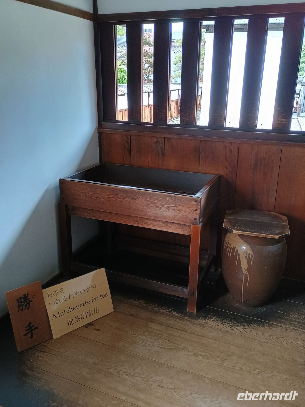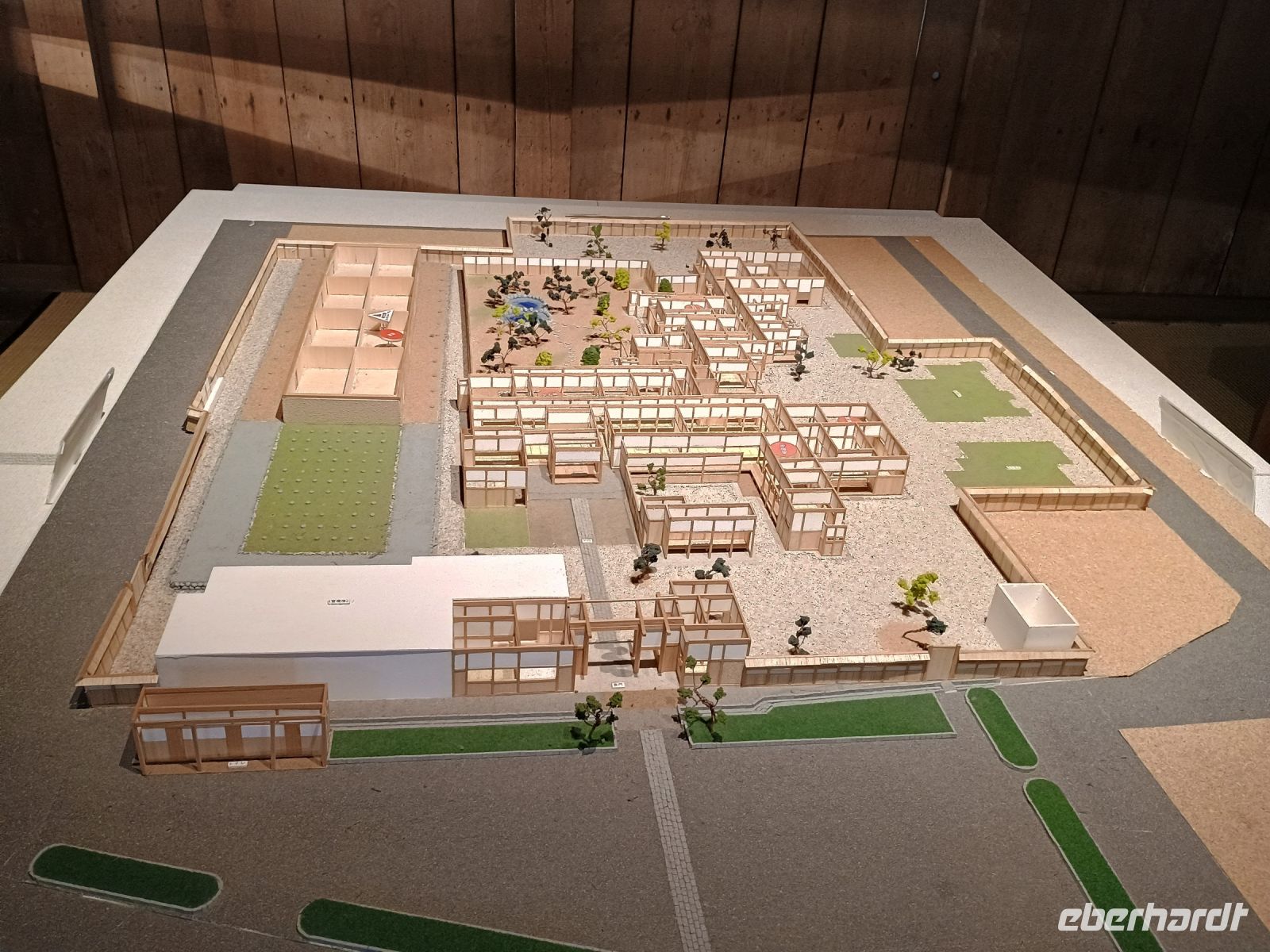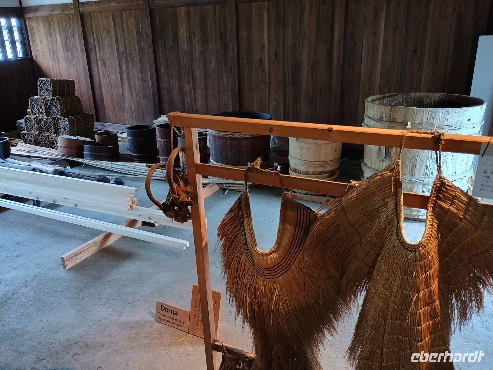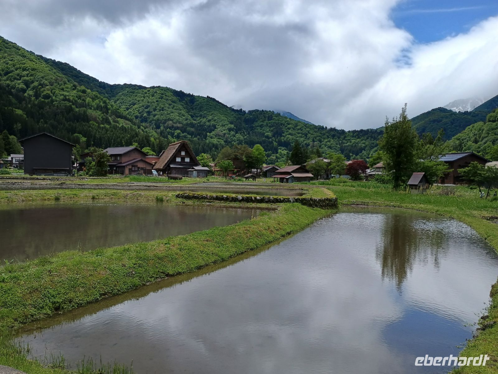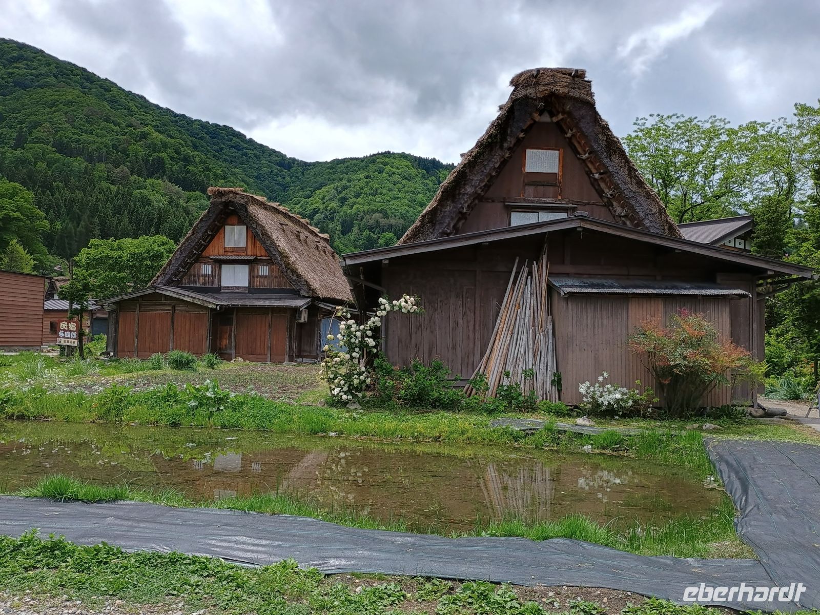 Huete geht es für uns bereits früh los zum Morgenmarkt Miyagawa, hier haben wir die Möglichkeit Souvenirs einzukaufen oder eine der vielen Köstlichkeiten wie gefüllte Teigtaschen, Pudding oder getrocknetes Obst zu probieren. Nachdem kleinen Bummel geht es für uns mit dem Bus zum Dorf Shirakwago, ein Dorf, das im typischen japanischen Stil erbaut wurde und die Dächer mit Stroh abgedeckt sind und wurde zum UNESCO-Weltkulturerbe ernannt. Die Region besteht aus dichten Wäldern und es gibt wenig Platz für Landwirtschaft, wir sehen auf unseren Spaziergang aber Reisfelder und auch Felder, wo Buchweizen und Hirse angebaut werden. Das Dorf wurde um 1700 und in der Edo Zeit von der Region Takayama verwaltet und erst 1915 komplett an die Außenwelt angeschlossen. Gab es 1900 um die 94 Häuser, zogen viele mit dem Wirtschaftsaufschwung in die Städte und viele Häuser wurden abgerissen, sodass es nur noch 25 alte Häuser im Jahr 1999 gab. Wir besichtigen das Haus der Familie Kanda (größte Haus des Dorfes), das heute ein Museum ist. Wir verbringen auch im Dorf unsere Mittagspause und einige nutzen die Freizeit, um auf den Aussichtspunkt hinaufzulaufen; hier hat man einen Blick auf das komplette Dorf mit den Alpen im Hintergrund. In den kleinen Flüssen, die sich durch das ganze Dorf schlängeln, sieht man viele Koi-Fische und Monsterforellen. Danach geht es wieder nach Takayama zurück, wo wir noch das Jinya, das ehemalige Verwaltungshaus aus der Edo-Zeit besichtigen.
