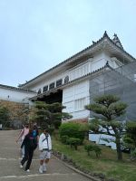 Heute geht es für uns mit dem Zug weiter nach Hiroshima. Zuerst fahren wir mit dem normalen Zug nach Nagoya und von dort geht es für uns dann weiter mit dem Shinkansen nach Himeji, ein ganz besonderer Höhepunkt für uns alle. Der Shinkansen hat eine durchschnittliche Geschwindigkeit von 200 km/h und hat bei Testfahrten sogar schon Geschwindigkeiten von bis zu 600 km/h erreicht. Früher wurden die Züge wie unsere ICE gebaut, aber durch die hohe Geschwindigkeit gab es bei Tunnelausfahrten immer einen sehr lauten Knall, daraufhin hat man sich ein Beispiel aus der Tierwelt genommen, den Eisvogel, dieses Tier taucht ohne Wasserspritzer in Wasser ein und man dachte sich so muss es auch mit dem Shinkansen in den Tunneln möglich sein, seitdem hat er seine berühmte Form. Der Shinkansen hat sein eigenes Streckennetz mit einer Gesamtlänge von 2138 km. Die erste Strecke von Tokio nach Osaka wurde 1964 gebaut und in Europa folgte 1981 die Strecke Paris - Lyon mit dem TGV. In Himeji angekommen, sehen wir bereits die Burg vom Bahnhof aus. Wir gehen zu Fuß durch eine Einkaufspassage zur Burg und jeder hat Zeit, sich die Burg in seinem eigenen Tempo anzuschauen. Eine Besonderheit der Burg ist, dass diese nur aus Holz gebaut ist und ohne Nägel wie Puzzleteile ineinander aufgebaut wurde. Die Burg ist eine der bedeutendsten und schönsten Burgen Japans und noch komplett im Original erhalten. Es ist eine weitläufige Anlage mit 83 Gebäuden, darunter Türme, Tore, Wachtürme, Vorratsräume und versteckte Verteidigungsanlagen, und auch einen Zoo findet man angrenzend an das Gelände. Danach geht es für uns mit dem Shinkansen weiter nach Hiroshima. Am Abend spazieren wir durch den beleuchtenden Friedenspark und sehen bereits den Atombombendom und die ewige Flamme. Man merkt bereits, dass morgen ein sehr andächtiger Tag werden wird.