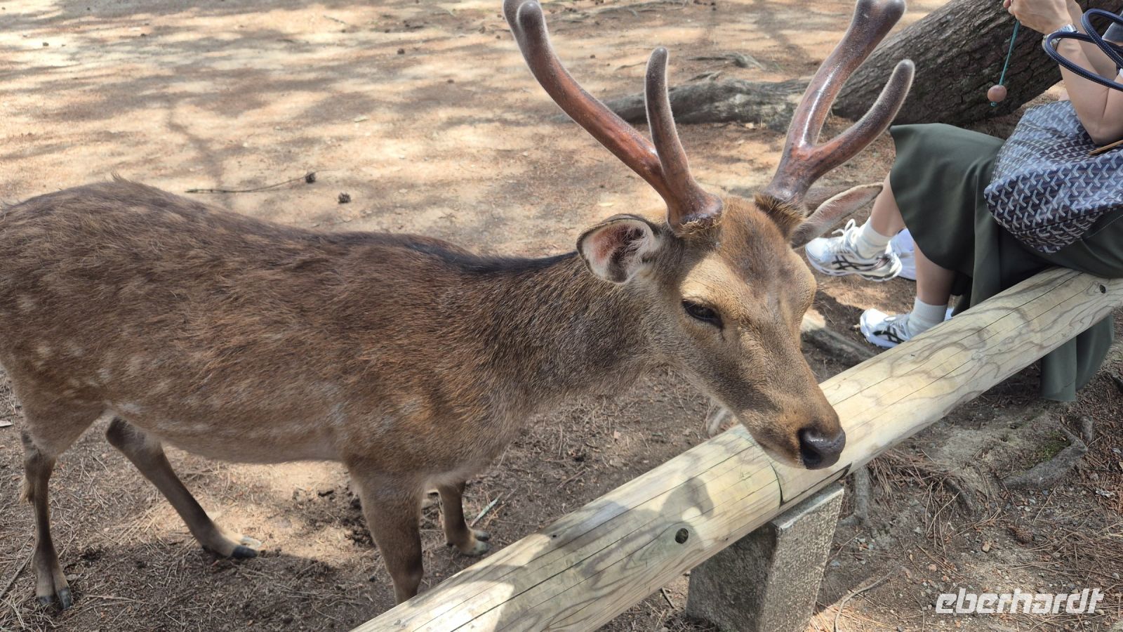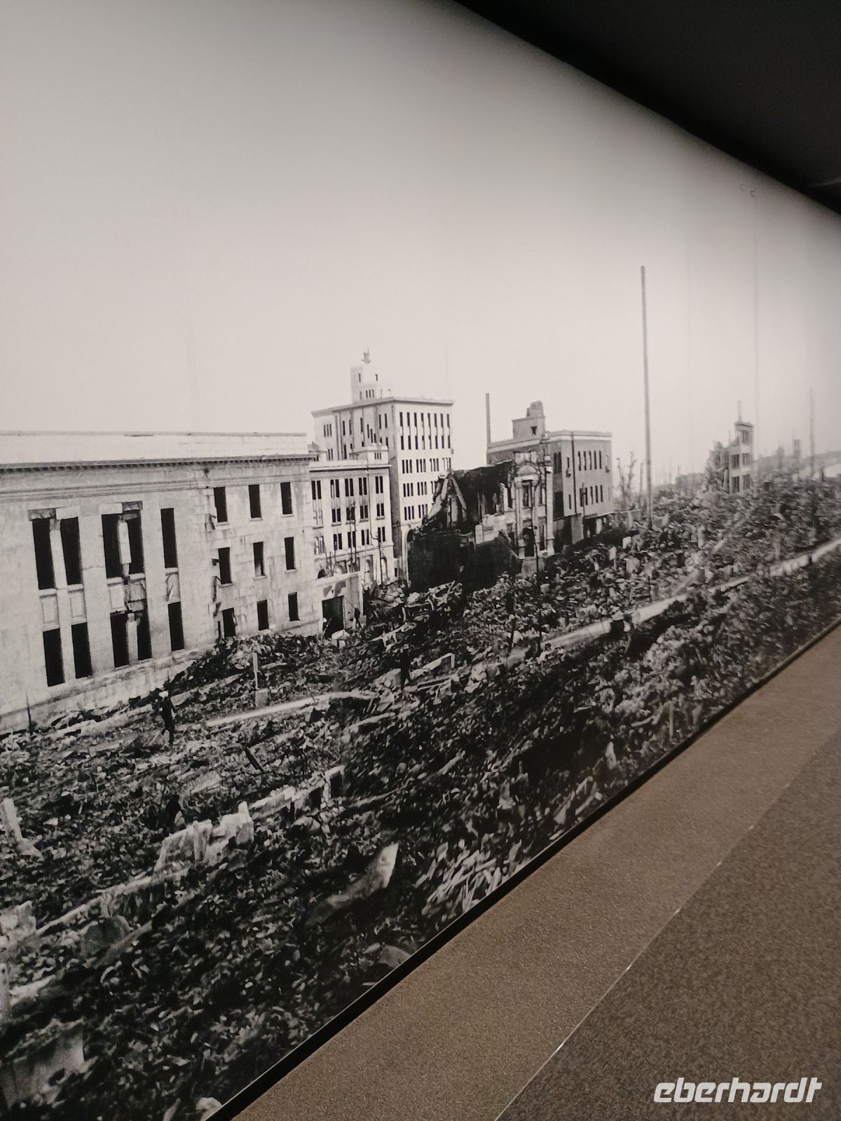 und Rehe und Hirsche laufen frei herum und haben mit den Touristen überhaupt keine Probleme. Die Insel ist berühmt für ihr „schwebendes“ rotes Tori-Tor im Meer. Sie liegt in der Präfektur Hiroshima und ist ein Muss für Reisende, die sich für Kultur, Spiritualität und Natur interessieren. Wir spazieren zur Hauptattraktion, dem Itsukushima-Schrein, dieser gehört zum UNESCO-Weltkulturerbe seit 1996 und wurde ursprünglich im 6. Jahrhundert erbaut. Der Schrein wurde auf Pfählen im Meer gebaut und so sieht es bei Flut aus, als würde die Anlage über dem Meer schweben. Wir verbringen unsere Mittagspause auf der Insel und müssen mächtig aufpassen, dass kein Reh kommt und uns unser Essen wegnimmt. Mit der Fähre setzen wir dann später wieder auf das Festland über und fahren mit der Metro in die Stadt zum Friedenspark. Wir besuchen das Friedensmuseum, das den Besuchern die Auswirkungen der Atombombe zeigt. Am Ende des Zweiten Weltkriegs entschied sich die US-Regierung unter Präsident Harry S. Truman zum Einsatz von Atombomben, um das Kaiserreich Japan zur Kapitulation zu zwingen und den Krieg schnell zu beenden. Dies geschah im Kontext eines langen und verlustreichen Pazifikkriegs. Die Bombe mit dem Namen Little Boy wurde am 06.08.1945 über Hiroshima abgeworfen. Die Explosion geschah in etwa 580 m Höhe über der Stadt, sofortige Todesopfer werden auf 70.000–80.000 Menschen geschätzt, die durch die Explosion, Hitze und Druckwelle starben. Bis Ende 1945 hat sich diese Zahl auf 140.000 erhöht, da viele Menschen durch die Strahlung, Verbrennungen, Verletzungen und Folgekrankheiten starben. Viele Überlebende litten unter chronischen Krankheiten, Krebs, genetischen Schäden und psychischen Traumata. Etwa 70 % der Gebäude in Hiroshima wurden zerstört oder schwerbeschädigt. Die japanische Regierung kapitulierte offiziell am 15. August 1945, nach einem weiteren Atombombenabwurf auf Nagasaki am 9. August. Die Kapitulation wurde am 2. September 1945 unterzeichnet und beendete damit den Zweiten Weltkrieg. Der Abwurf der Atombombe auf Hiroshima war der erste militärische Einsatz einer Kernwaffe in der Geschichte der Menschheit. Die Ereignisse von Hiroshima und Nagasaki lösten eine weltweite Debatte über Ethik, Völkerrecht, Rüstungskontrolle und die Rolle von Atomwaffen aus, die bis heute anhält.