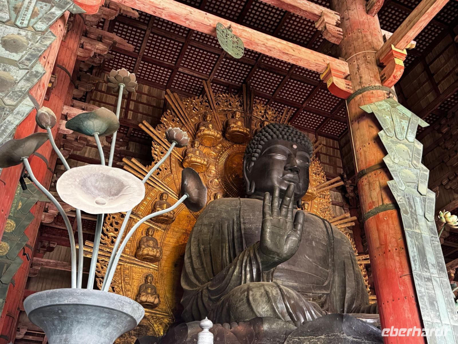 Heute geht es für uns nach Nara. Auf dem Weg halten wir am Fushimi Inari-Taisha, einem der bekanntesten Shinto-Schreine Japans. Die ca. 10.000 Torii-Tore wurden von Privatpersonen und Unternehmen gespendet, um sich für Glück oder geschäftlichen Erfolg zu bedanken. Die Tore sind mit den Namen der Spender und dem Datum der Spende beschriftet, und die Tori-Tore führen hinauf bis zum Gipfel des Berges Inari. Danach geht es in den Nara Park, der bekannt für seine frei laufende Sikahirsche ist. Die Hirsche gelten als heilig und als Boten der Götter im Shinto. Im Herzen des Nara-Parks besuchen wir den Todaiji, einen der bedeutendsten buddhistischen Tempel Japans. Die Hauptattraktion ist die riesige Daibutsu (Große Buddha-Statue) im Daibutsuden (Große Buddha-Halle), die mit 15 Metern Höhe eine der größten Bronze-Buddhas der Welt ist. Das Tempelgebäude selbst ist eines der größten Holzgebäude der Welt. Am Abend gehen wir zusammen Okonomiyaki essen, ein beliebtes japanisches Gericht, das auch als japanischer Pfannkuchen bekannt ist.