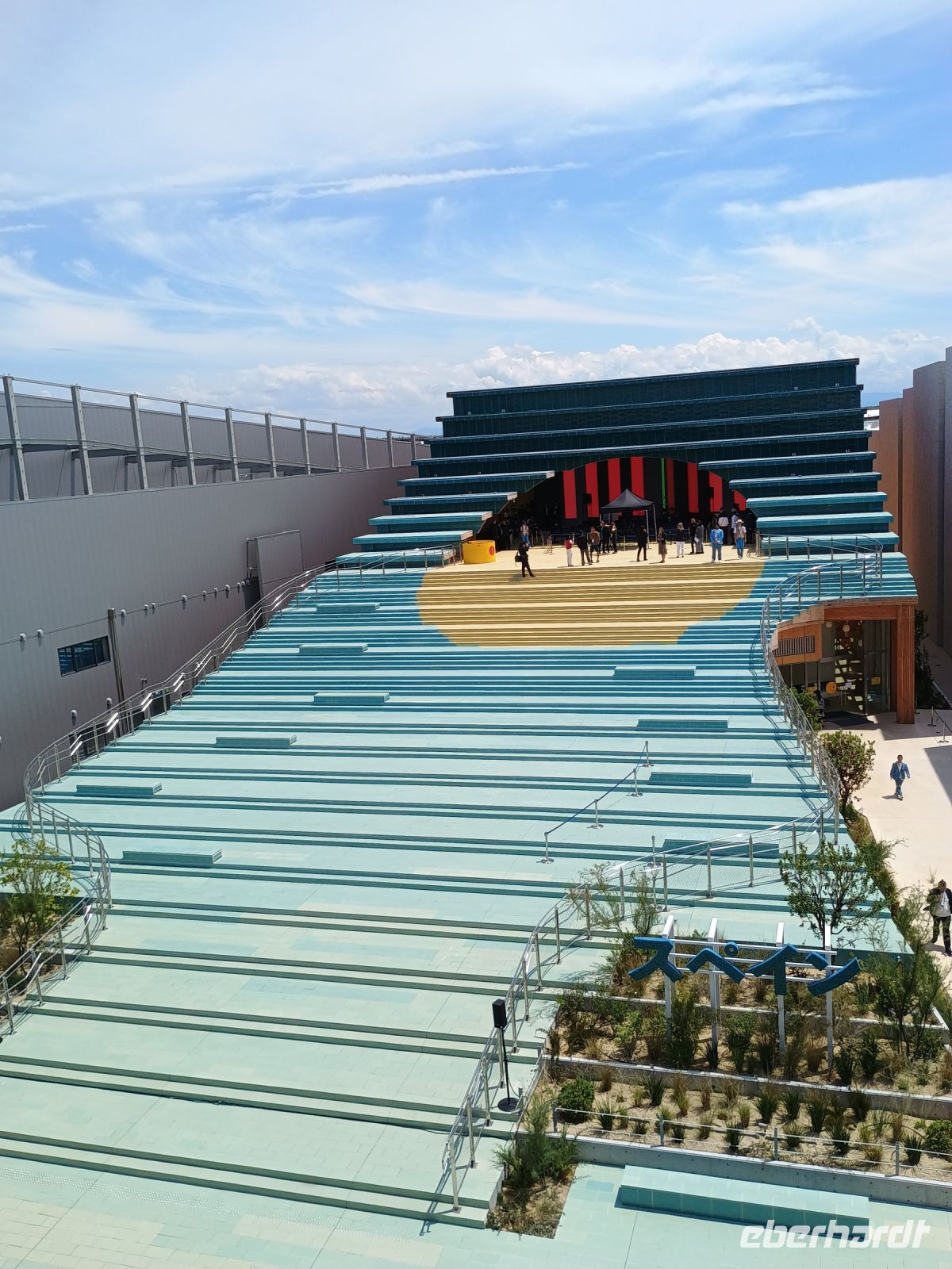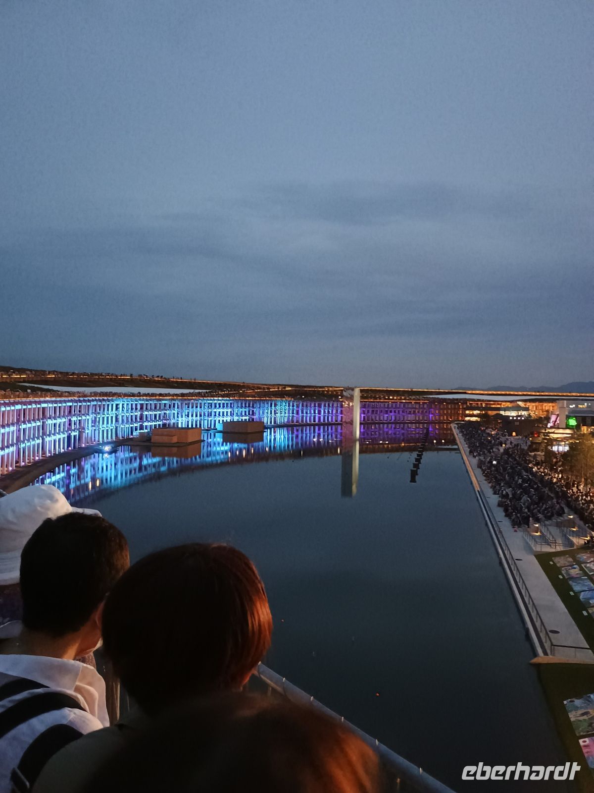 Heute geht es mit dem Bus nach Osaka, wo wir in die Metro umsteigen, die uns auf die Insel Yumeshima, was auf Deutsch übersetzt Trauminsel bedeutet, bringt. Die Weltausstellung findet vom 13. April bis zum 13. Oktober auf der künstlich angelegten Insel Yumeshima statt. Sie steht unter dem Motto: „Designing Future Society for Our Lives“ und fokussiert sich auf die Themen „Leben retten“, „Leben stärken“ und „Leben verbinden“. Über 160 Länder präsentieren sich in rund 80 Pavillons, und es werden bis zu 28 Millionen Gäste erwartet. Wir gehen zusammen zum japanischen Pavillon und zum deutschen Pavillon, bevor die Gäste Freizeit haben und sich ganz individuell auf dem Gelände vertun können. Der „Grand Ring“, eine 2 km lange Holzkonstruktion, ist das Herzstück des Geländes und gilt als die weltweit größte Holzkonstruktion. Neben den Ausstellungen finden auch außerhalb der Pavillons Vorführungen statt, und an der Wasserplaza kann man sich zur jeder vollen Stunde eine kleine Wassershow anschauen. Highlights sind unter anderem ein Marsmeteorit, ein aus Stammzellen gezüchtetes Mini-Herz und das längste Sushi-Förderband der Welt.