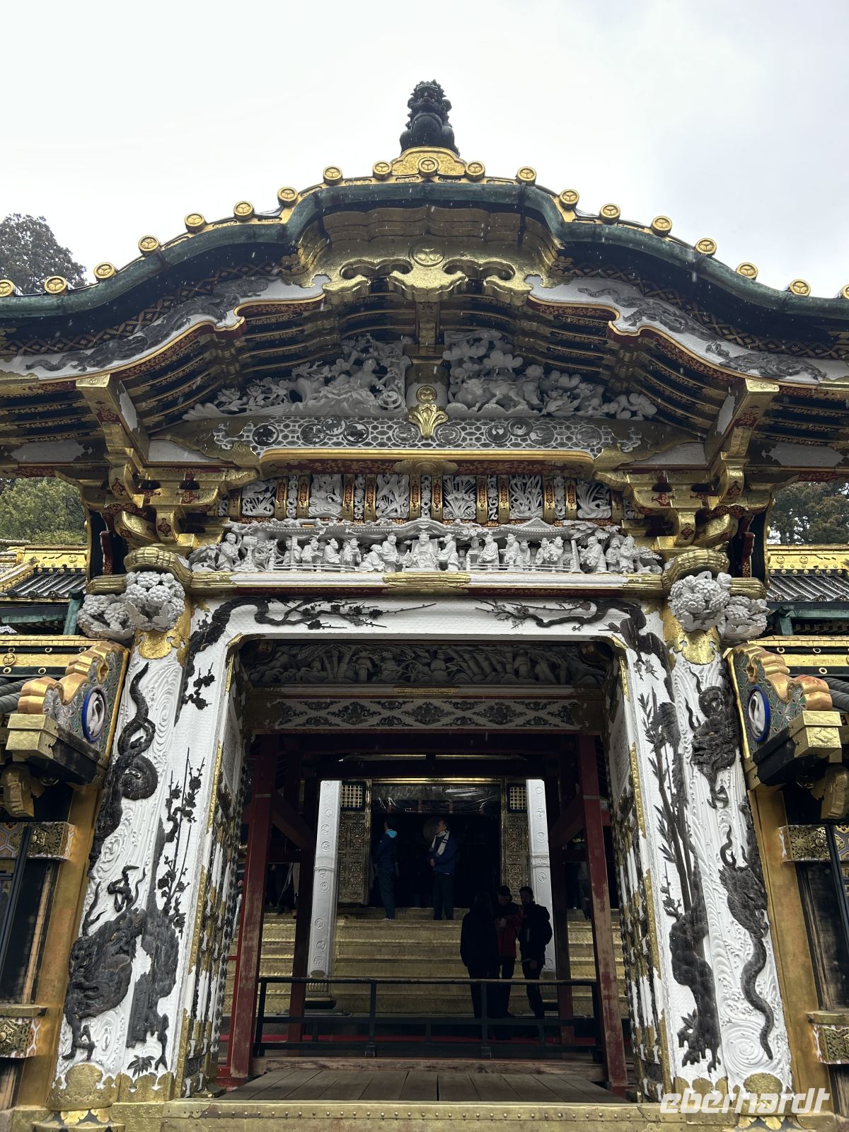 Unser Ziel war der prunkvolle Nikkō Tōshō-gū sowie das nahegelegene Taiyū-in Mausoleum. Kaum angekommen, mussten wir allerdings erst einmal wieder unsere Regenschirme auspacken – auch an diesem Tag meinte es das Wetter nicht allzu gut mit uns.