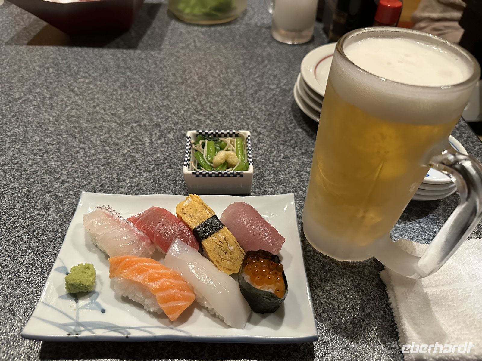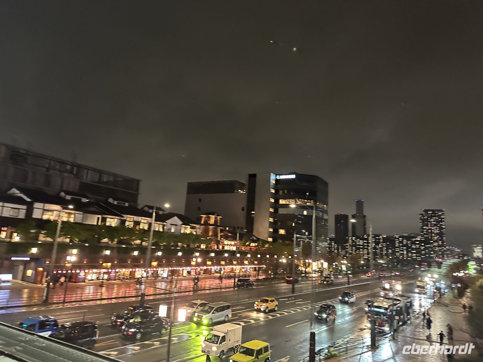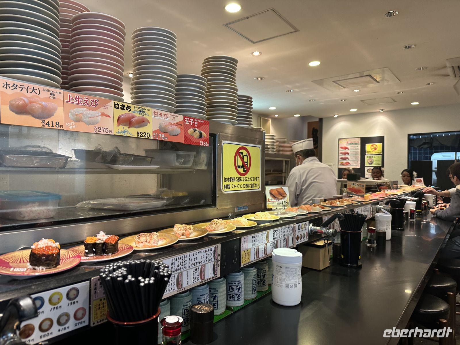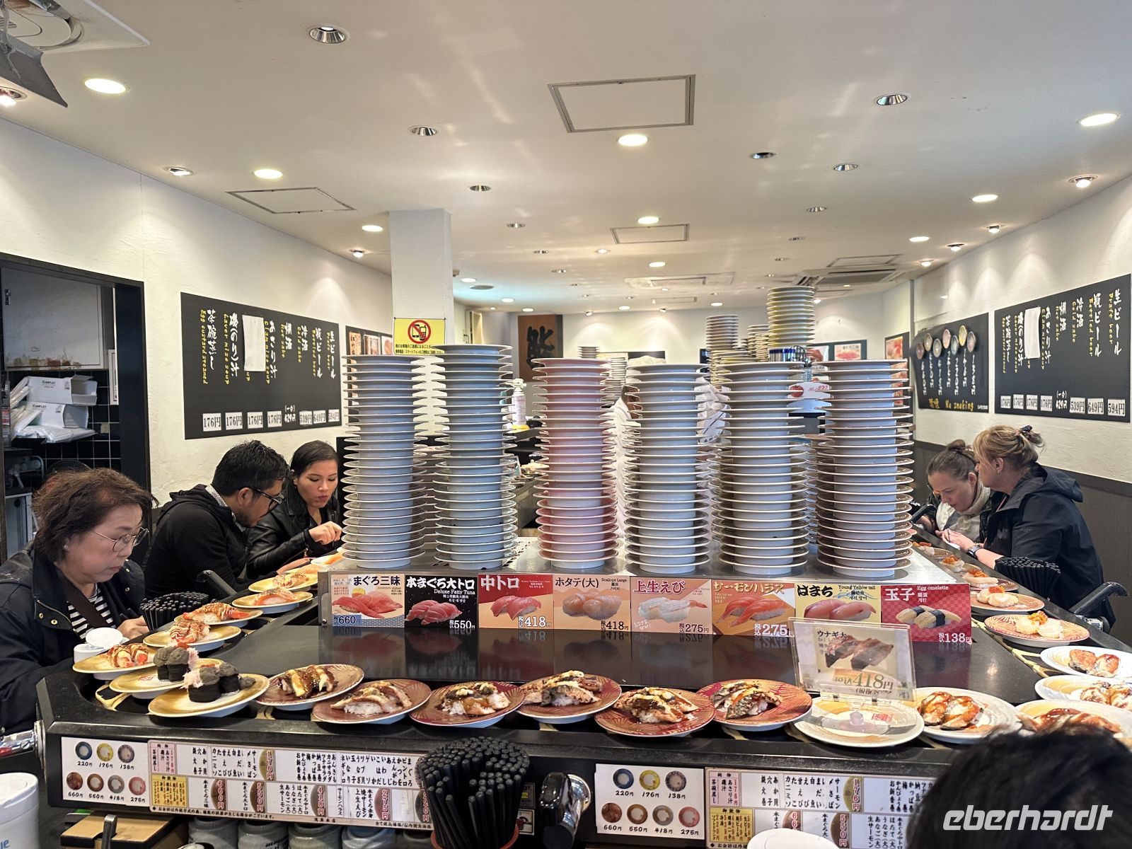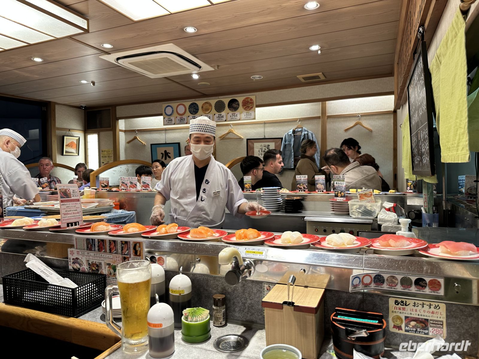 Gegen Mittag verabschieden wir uns von Hiroshima und steigen in den Shinkansen, der uns in gewohnter Geschwindigkeit und Präzision nach Kyoto bringt. Bei der Ankunft am Bahnhof von Kyoto nutzen wir eines der sogenannten Ausländer-Taxis. Diese speziellen Taxis werden von besonders freundlichen, oft mehrsprachigen Fahrern gesteuert, die auf internationale Gäste spezialisiert sind – ein sehr entspannter Transfer zu unserem Hotel. Dort angekommen, wartet eine gute Nachricht auf uns: Unser Hauptgepäck, das wir in Takayama losgeschickt haben, ist bereits unversehrt eingetroffen. Nach dem Check-in nutzen wir die Zeit für einen ersten Spaziergang am nahegelegenen Fluss Kamo. Die Uferwege sind gesäumt von unzähligen Kirschblütenbäumen, die gerade ihre volle Pracht entfalten. Das weiche Licht des Nachmittags und die fallenden Blütenblätter sorgen für eine fast märchenhafte Atmosphäre. Das Abendessen findet heute in Eigenregie statt. Kyoto bietet eine unglaubliche Auswahl, und viele von uns zieht es zum Beispiel zum Sushino Musashi. Dieses beliebte Kaiten-Sushi-Restaurant am Bahnhof ist bekannt für seine frische Auswahl und das lebhafte Ambiente, bei dem die kleinen Teller auf dem Förderband an den Gästen vorbeiziehen – ein perfekter, unkomplizierter kulinarischer Ausklang für unseren ersten Abend in der alten Kaiserstadt.