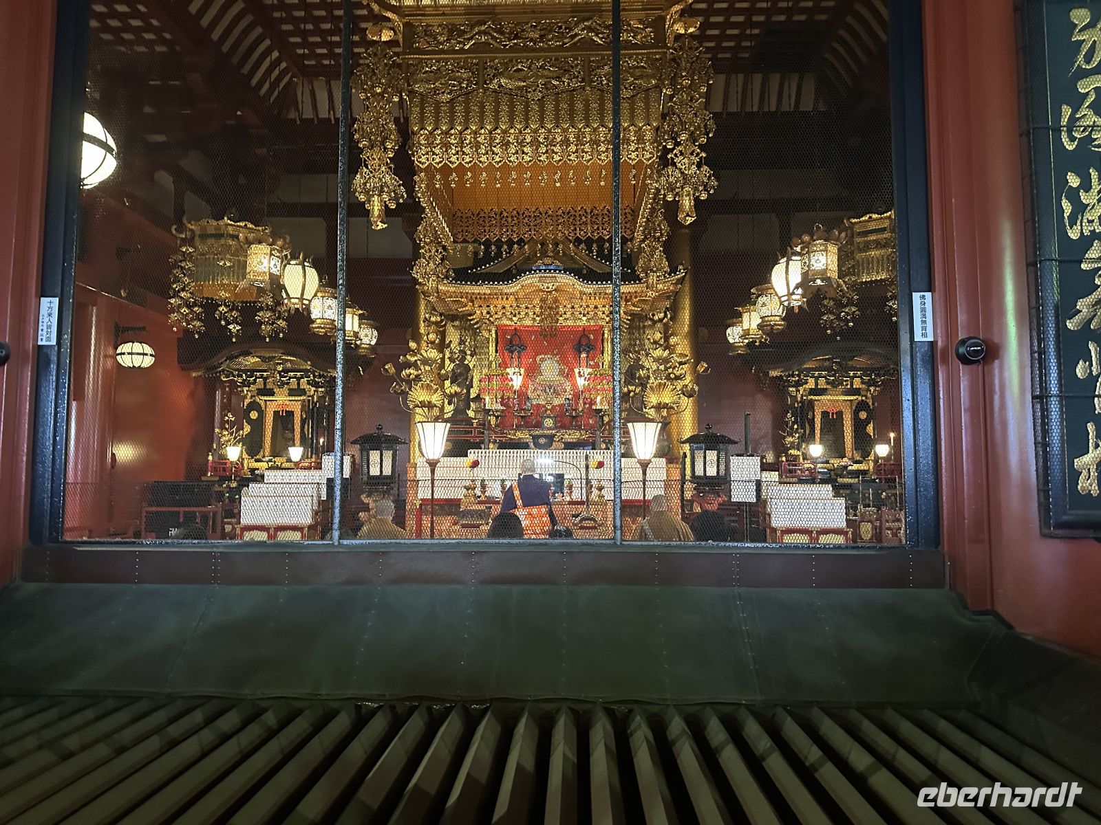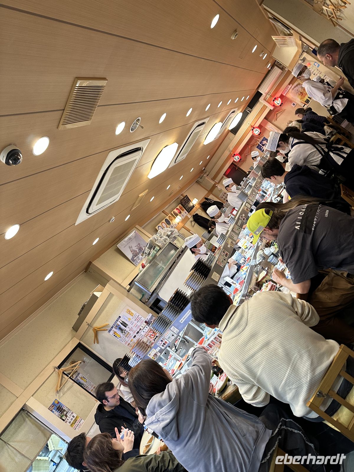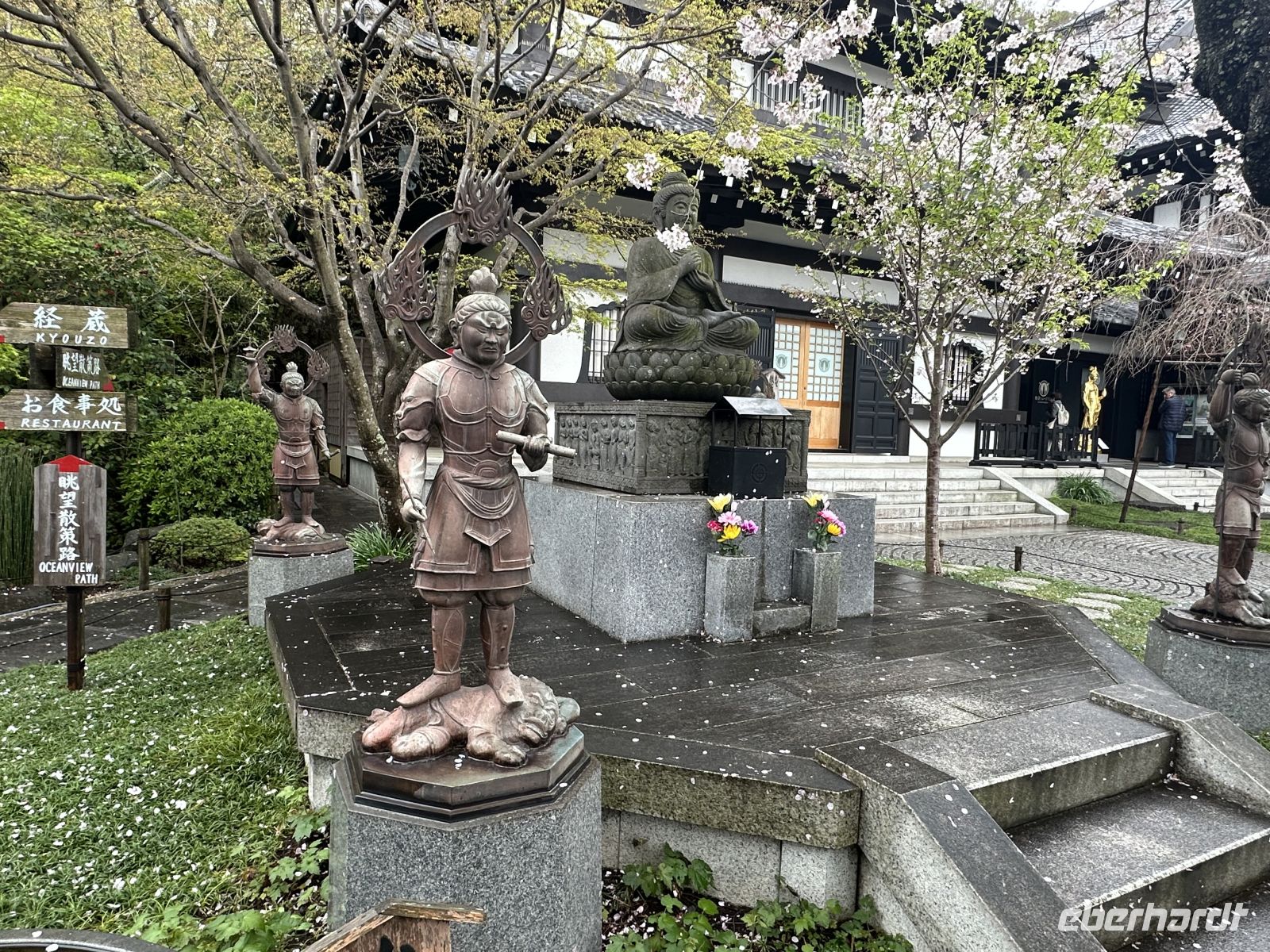 Während wir unsere Fahrt fortsetzen, zeigt sich Tokio von seiner nassen Seite: Ein kräftiger japanischer Frühlingsregen setzt ein. Vom Bus aus erleben wir ein besonderes Spektakel: die berühmte Shibuya-Kreuzung. Trotz des Regens wälzen sich Menschenmassen über die Straße, sobald die Ampeln auf Grün springen. Es ist ein faszinierendes Bild – ein fast endloses Meer aus meist durchsichtigen Regenschirmen, das sich diszipliniert und lautlos in alle Richtungen bewegt. Anschließend erreichen wir Ginza, das wohl exklusivste Einkaufsviertel der Stadt. Hier bewundern wir die Architektur der Luxuskaufhäuser und die perfekt dekorierten Schaufenster, die im Regengrau besonders hell leuchten. Als wir in Asakusa ankommen, regnet es mittlerweile wie verrückt. Doch das hält uns nicht auf. Wir schreiten durch das berühmte Kaminarimon, dem Donnertor mit seiner riesigen roten Laterne. Diese wird flankiert von den furchteinflößenden Statuen der Wind- und Donnergötter und wir betreten nun den heiligen Bezirk des Senso-ji. Dieser Tempel ist nicht nur der älteste der Stadt, sondern auch ein Ort tiefer Legenden: Wir erfahren, dass er bereits im 7. Jahrhundert gegründet wurde, nachdem Fischer eine goldene Statue der Göttin Kannon im nahegelegenen Fluss fanden. Trotz des prasselnden Regens spazieren wir über die Nakamise-Dori zur Haupthalle, immer darauf bedacht, im Menschengewimmel die Gruppe nicht zu verlieren. Ein besonderes Erlebnis ist der große Weihrauchkessel vor dem Tempel. Wir beobachten, wie sich die Gläubigen den heiligen Rauch zufächeln, der Körper und Geist reinigen und heilen soll. Einige von uns fordern ihr Schicksal heraus und ziehen ein Omikuji – ein traditionelles Glückslos. Man schüttelt eine Metalldose, bis ein nummeriertes Stäbchen herausfällt, welches einem dann die entsprechende Weissagung zuweist. Von „Großem Glück“ bis „Pech“ ist alles dabei. Wer ein weniger gutes Los zieht, knotet es kurzerhand an ein bereitstehendes Metallgestell, um das Unheil symbolisch am Tempel zurückzulassen. Nach der Besichtigung genießen wir trotz des Wetters etwas Freizeit. Die kleinen Gassen rund um den Tempel bieten unzählige Möglichkeiten: Manche nutzen die Zeit für einen wärmenden Tee, andere erstehen Souvenirs wie handgefertigte Fächer oder kosten die frisch gebackenen Senbei (Reiscracker). Diese individuelle Zeit erlaubt es jedem, Asakusa in seinem eigenen Tempo zu entdecken, bevor wir uns wieder sammeln. Nach diesem ereignisreichen und ziemlich feuchten Tag kehren wir in unser Hotel zurück. Doch bevor wir den Abend ganz beenden, nutzen einige von uns die ideale Lage unseres Quartiers: Direkt gegenüber vom Hotel befindet sich das neu gestaltete Viertel Koto-Toyosu. In den traditionell gestalteten Gassen, die an das historische Tokio erinnern, kehren wir zum Abendessen ein. Es ist eine gemütliche Atmosphäre, die einen wunderbaren Kontrast zum modernen Hotelbau bildet. Zum Abschluss des Tages wartet das hoteleigene Onsen. Im heißen Thermalwasser aufzuwärmen ist ein wahrer Segen und lässt uns die Anstrengungen des Tages sofort vergessen.