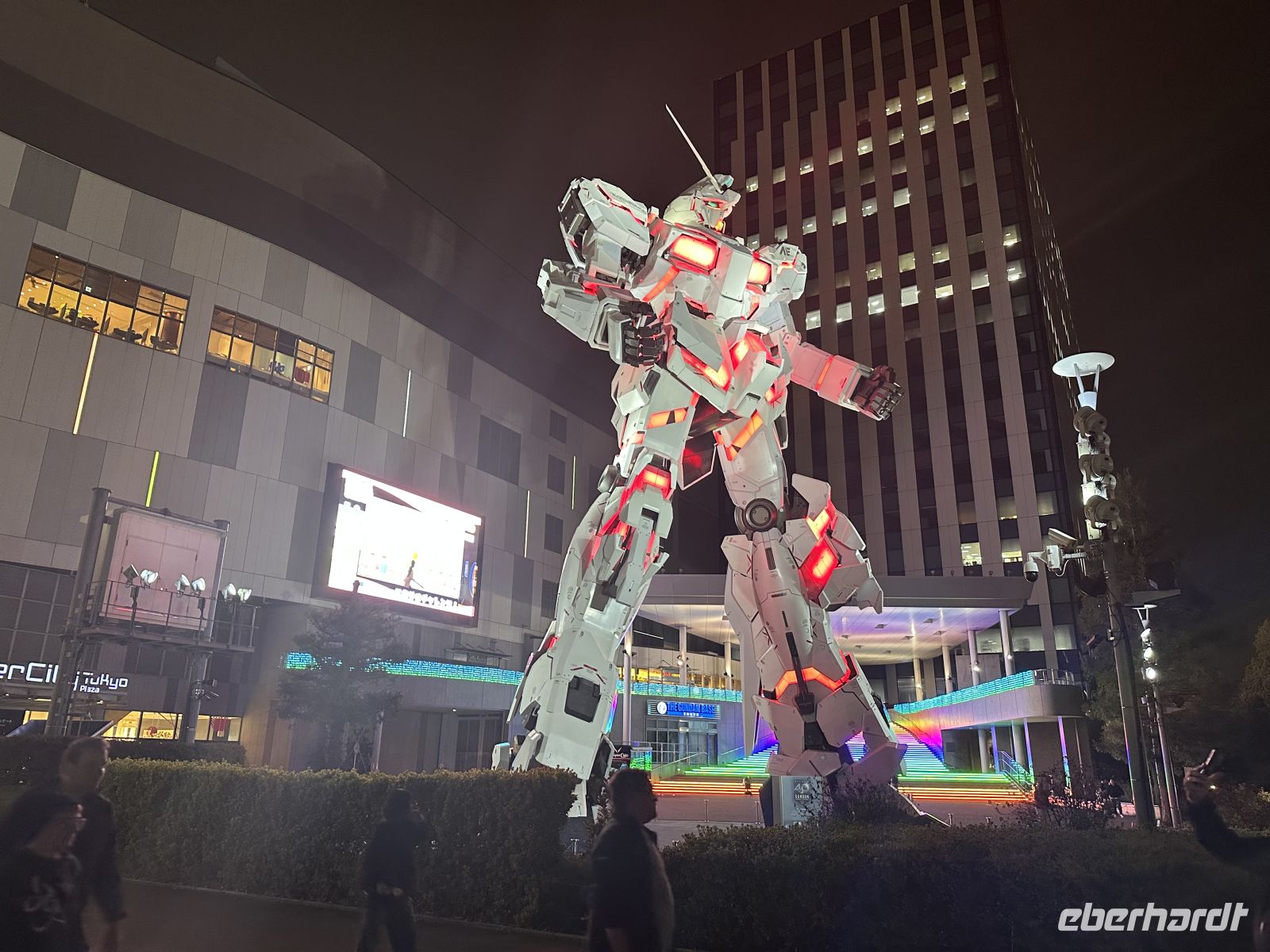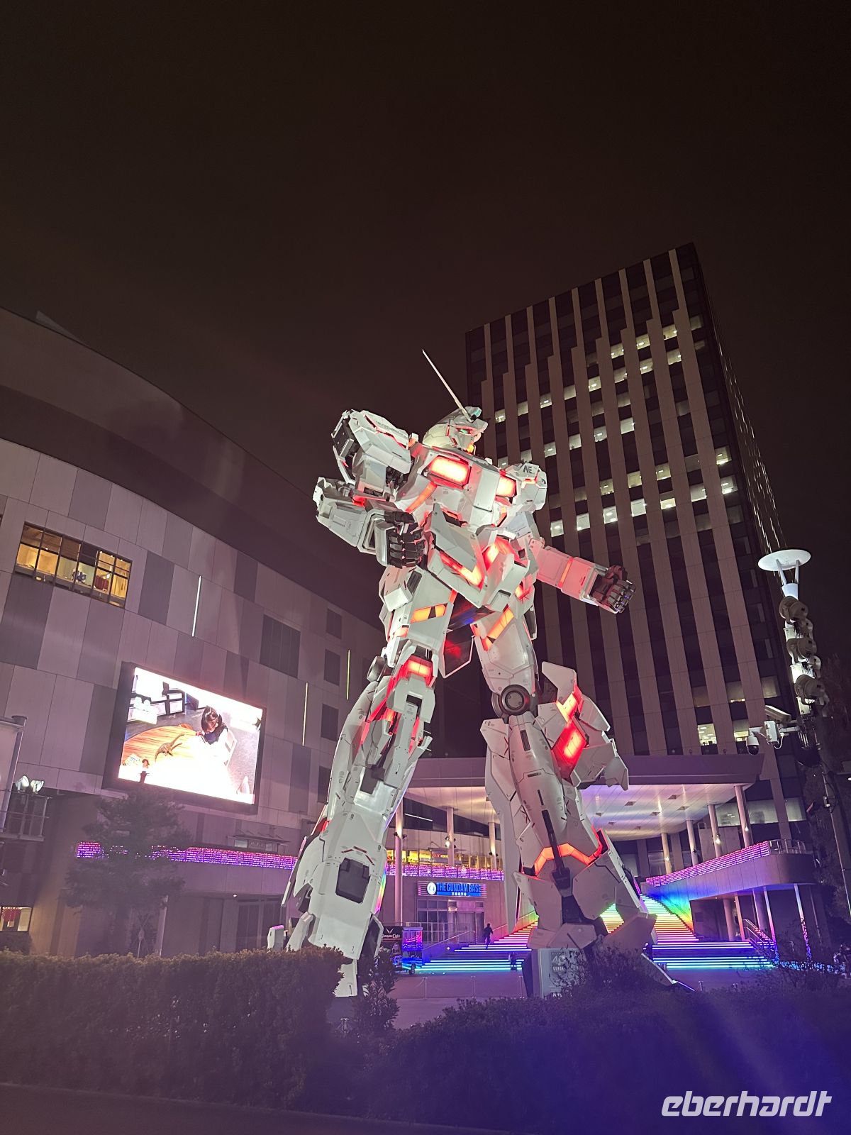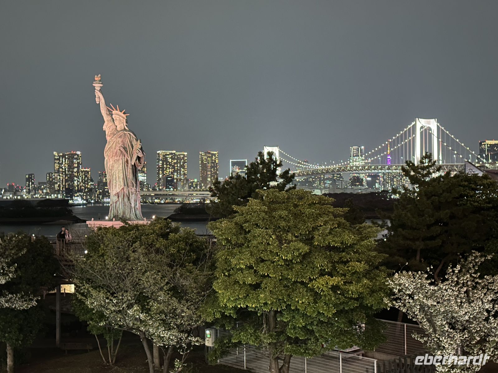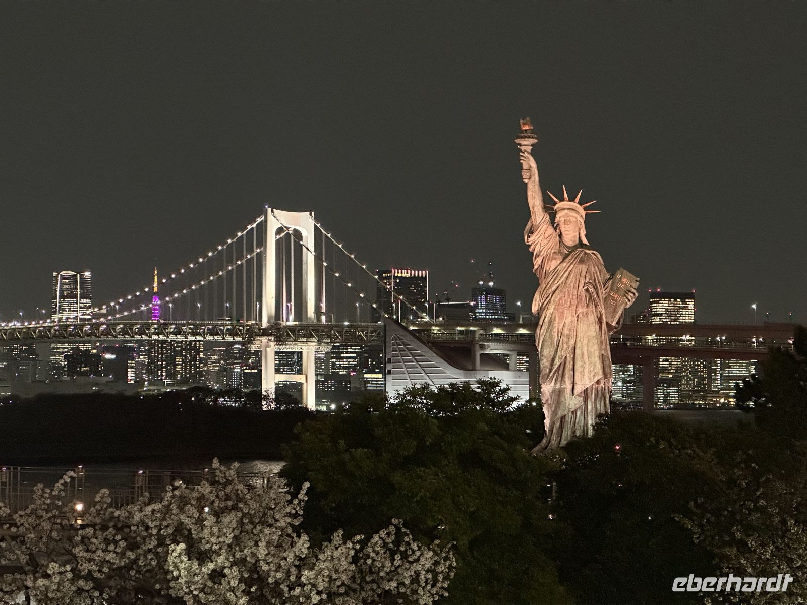 Unser Weg führt uns direkt zu einem der modernen Wahrzeichen der Stadt: dem Tokyo Skytree. Wir fahren hinauf auf die Aussichtsplattformen des höchsten Fernsehturms der Welt. Der Blick über das endlose Häusermeer von Tokio bei Tageslicht ist einfach fantastisch. Nun fahren wir zu unserem Hotel, dem La Vista Tokyo Bay. Nach dem Check-in und einer kurzen Ruhepause nutzen zum ersten Mal die berühmte Tokioter U-Bahn, um zu unserem Restaurant zu gelangen. Das Abendessen wird zu einer kulinarischen Entdeckungsreise. Wir genießen fangfrisches Sashimi, kunstvolles Chirashi-Sushi, Yakitori-Spieße und das am Tisch zubereitete Fleisch. Es ist ein geselliger Abend, an dem wir die ersten Eindrücke austauschen. Doch der Tag ist noch nicht zu Ende: Nach dem Essen steigen wir in die Yurikamome, die computergesteuerte, führerlose Hochbahn. Die Fahrt über die Rainbow Bridge nach Odaiba ist beeindruckend – die Skyline von Tokio ist spektakulär beleuchtet. In Odaiba angekommen, spazieren wir vorbei an der japanischen Freiheitsstatue und staunen über den riesigen Gundam-Roboter, der vor der Kulisse der nächtlichen Bucht fast futuristisch wirkt. Ein toller Abschluss unseres ersten Tages in Japan.
