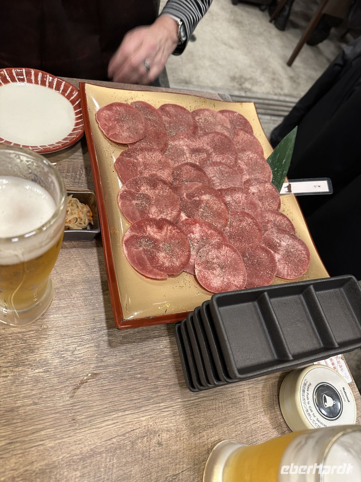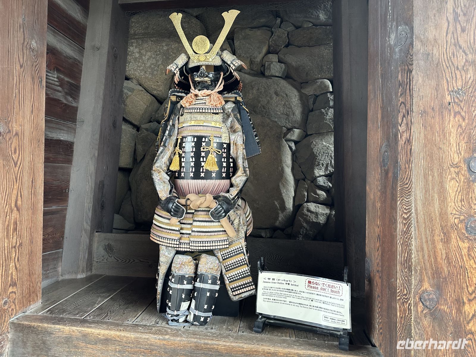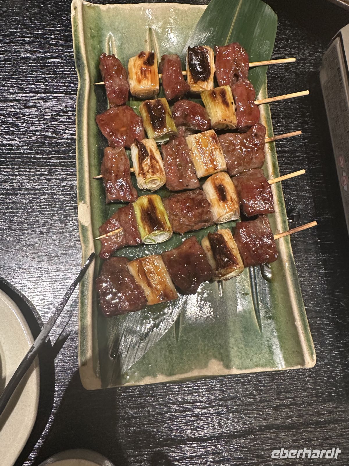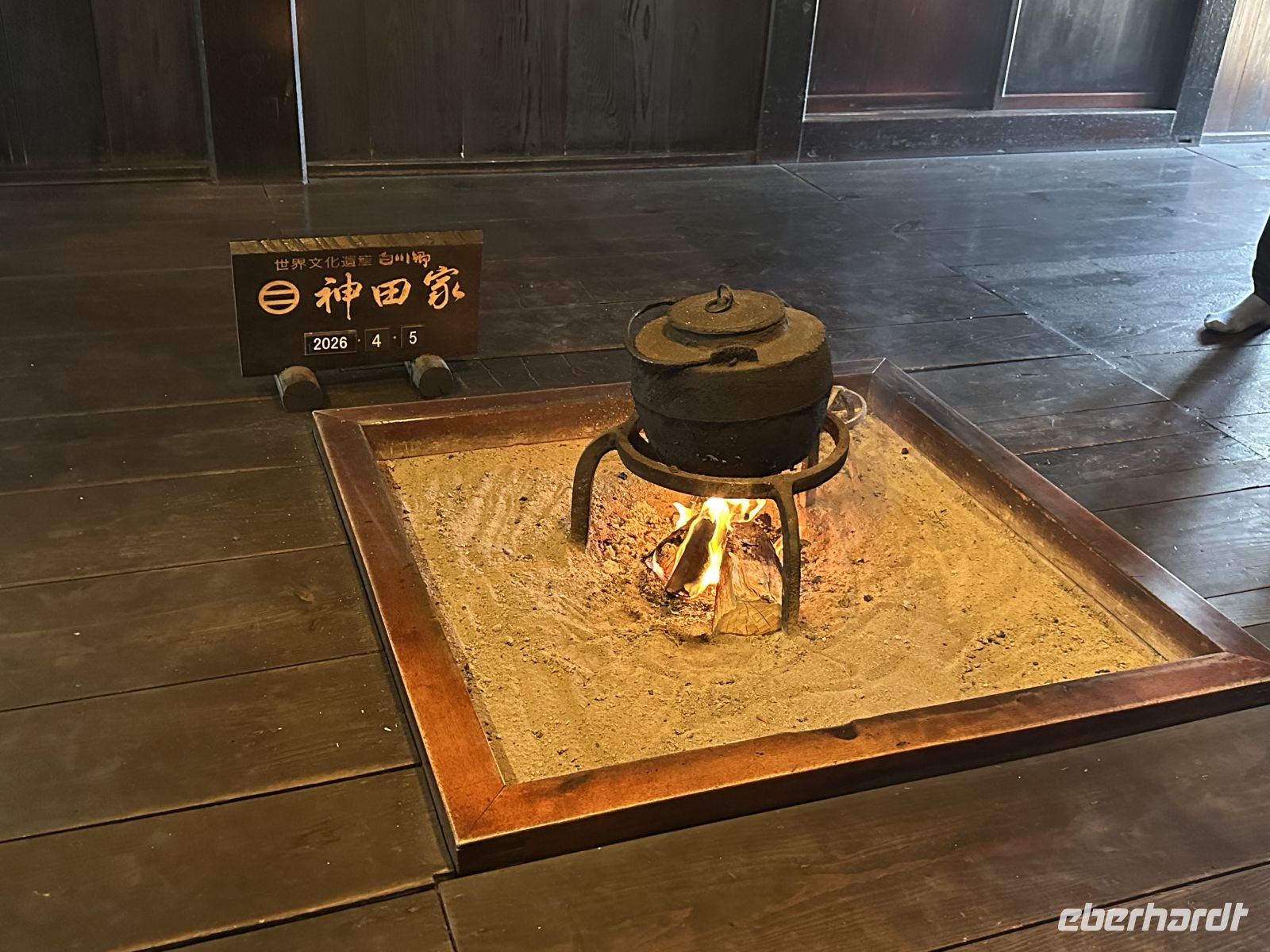 Es ist ein absolut faszinierender Anblick, die Makaken in ihrer natürlichen Umgebung so nah zu erleben. Die Affen sitzen entspannt am und im dampfenden Wasser der heißen Quellen, um sich aufzuwärmen. Es ist unglaublich friedlich, ihnen zuzusehen: Einige schließen sichtlich genießend die Augen, während andere sich gegenseitig hingebungsvoll lausen und das Fell pflegen. Besonders die Jungtiere sorgen für Begeisterung – sie spielen ausgelassen miteinander und wir haben sogar das Glück, einen kleinen Affen zu beobachten, der mutig unter Wasser taucht. Nach dem Vormittag bei den Schneeaffen erreichen wir die Burg Matsumoto. Sie wird wegen ihrer schwarzen Holzfassade auch die Krähenburg genannt und ist eine der wenigen erhaltenen Originalburgen Japans. Da heute viel los ist, reihen wir uns in den stetigen Besucherstrom ein. Das Innere der Burg ist ein echtes Abenteuer: Wir kraxeln regelrecht die extrem steilen und schmalen Holztreppen hinauf, die teilweise eine Steigung von bis zu 61 Grad haben. Es ist eine Herausforderung, sich den Weg durch das historische Gebälk bis in die 5. Etage zu bahnen, während es um uns herum sehr voll ist. Doch die Mühe lohnt sich. Wir bestaunen die massiven Holzpfeiler und die ausgeklügelten Verteidigungsanlagen wie die Schießscharten und die Öffnungen zum Abwerfen von Steinen. Von oben bietet sich uns ein fantastischer Ausblick auf die Stadt und die umliegenden Berge der japanischen Alpen, bevor wir den vorsichtigen Abstieg antreten. Zum Abschluss des Tages kehren wir in ein spezialisiertes Restaurant im Stadtteil Hanaokamachi ein. Das markante Schild mit der Aufschrift „Hida-gyu“ verspricht uns das berühmte Rindfleisch der Region. Das Konzept des Hauses ist das „Itto-gai“ – man verwertet hier das ganze Tier, um eine Vielfalt an Schnitten anzubieten. Immer vier Gäste teilen sich einen Grill am Platz und ein riesengroßes Tablett mit viel Fleisch. Während wir das Fleisch selbst garen, werden uns zahlreiche Beilagen gereicht. Es gibt eine große Schale mit frischem, knackigem Salat und Mais sowie verschiedene Schälchen mit typisch japanischen Vorspeisen und Pickles. Zum Würzen stehen Wasabi, Knoblauchpaste und frische Zitronenscheiben bereit. Den Abschluss bildet ein leichtes Dessert aus saftigen Mandarinen.