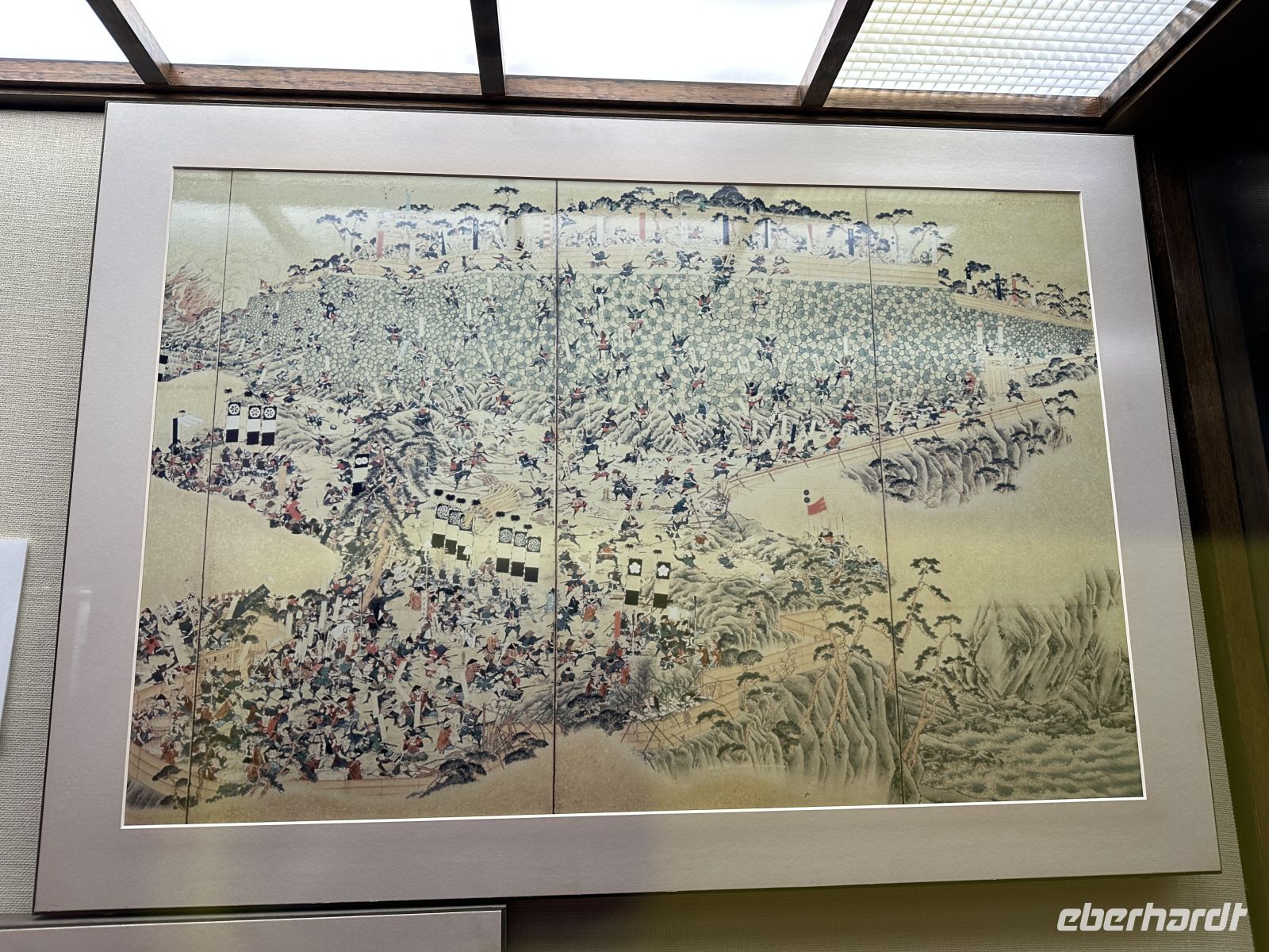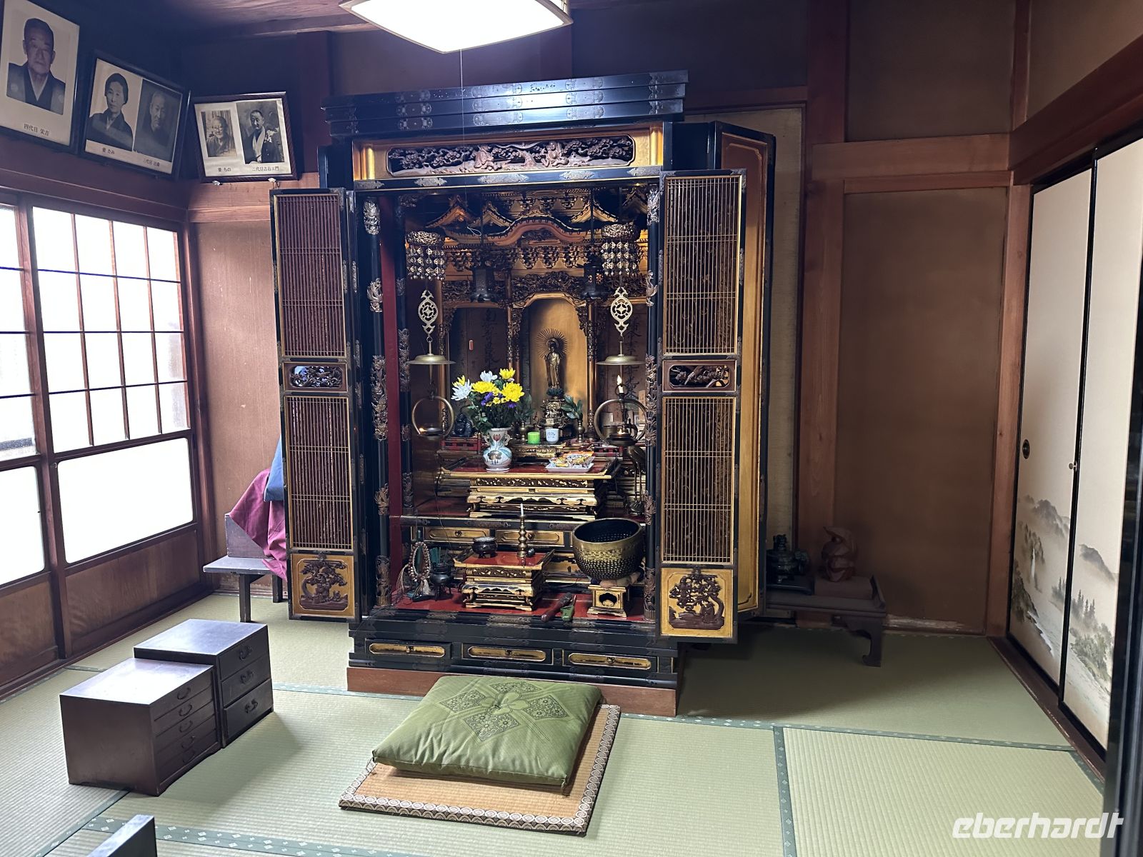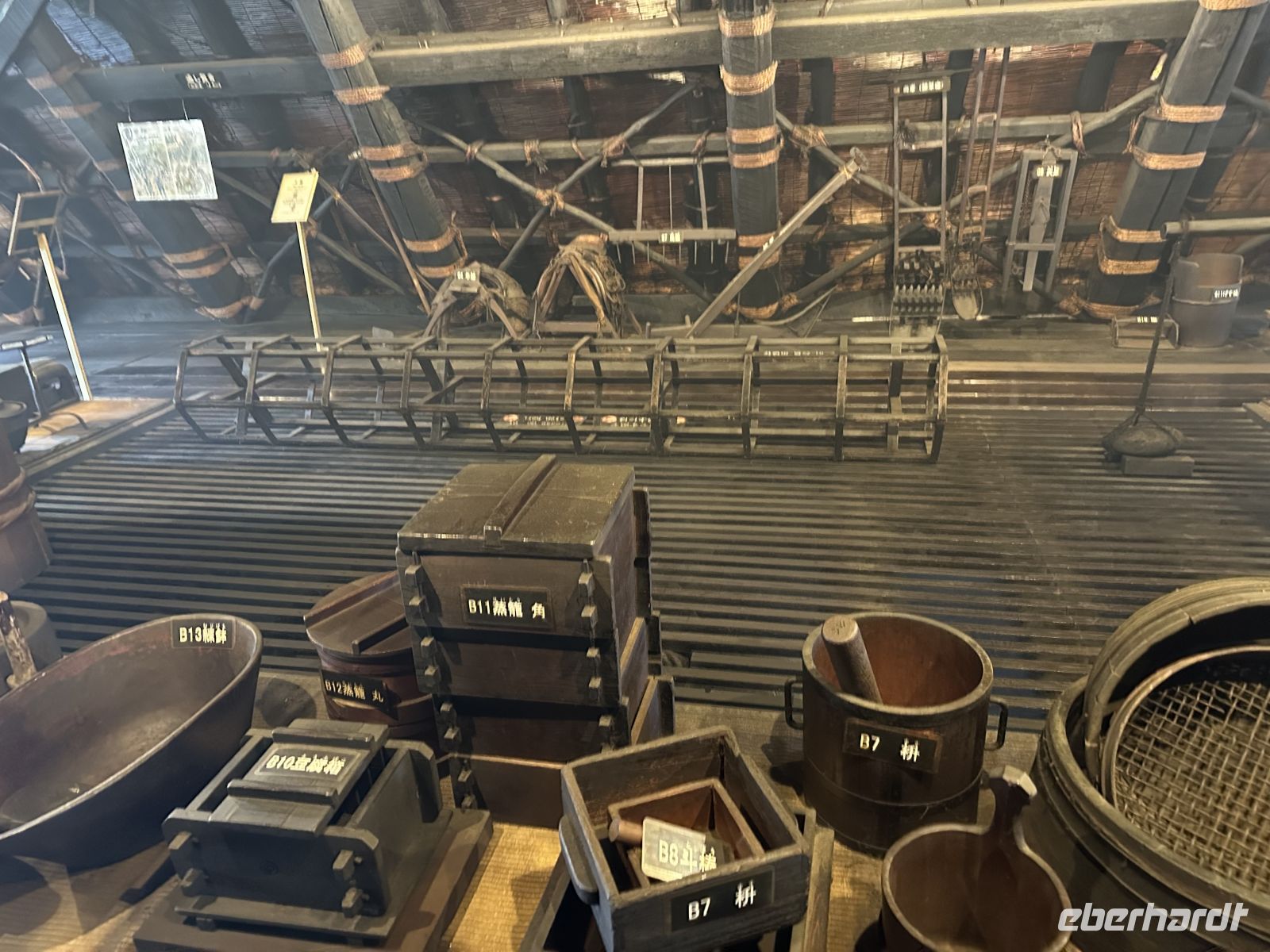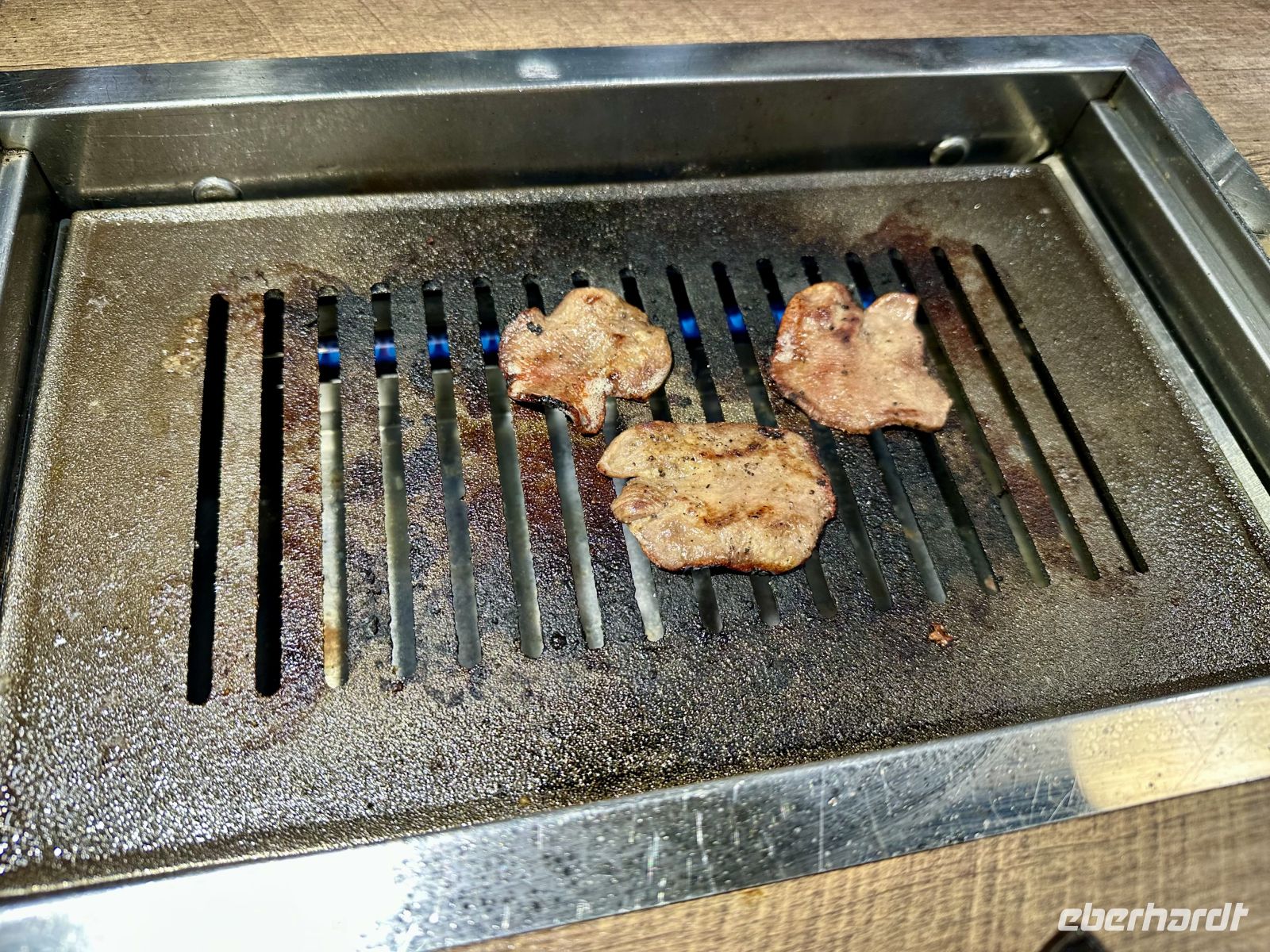 Es ist ein absolut faszinierender Anblick, die Makaken in ihrer natürlichen Umgebung so nah zu erleben. Die Affen sitzen entspannt am und im dampfenden Wasser der heißen Quellen, um sich aufzuwärmen. Es ist unglaublich friedlich, ihnen zuzusehen: Einige schließen sichtlich genießend die Augen, während andere sich gegenseitig hingebungsvoll lausen und das Fell pflegen. Besonders die Jungtiere sorgen für Begeisterung – sie spielen ausgelassen miteinander und wir haben sogar das Glück, einen kleinen Affen zu beobachten, der mutig unter Wasser taucht. Nach dem Vormittag bei den Schneeaffen erreichen wir die Burg Matsumoto. Sie wird wegen ihrer schwarzen Holzfassade auch die Krähenburg genannt und ist eine der wenigen erhaltenen Originalburgen Japans. Da heute viel los ist, reihen wir uns in den stetigen Besucherstrom ein. Das Innere der Burg ist ein echtes Abenteuer: Wir kraxeln regelrecht die extrem steilen und schmalen Holztreppen hinauf, die teilweise eine Steigung von bis zu 61 Grad haben. Es ist eine Herausforderung, sich den Weg durch das historische Gebälk bis in die 5. Etage zu bahnen, während es um uns herum sehr voll ist. Doch die Mühe lohnt sich. Wir bestaunen die massiven Holzpfeiler und die ausgeklügelten Verteidigungsanlagen wie die Schießscharten und die Öffnungen zum Abwerfen von Steinen. Von oben bietet sich uns ein fantastischer Ausblick auf die Stadt und die umliegenden Berge der japanischen Alpen, bevor wir den vorsichtigen Abstieg antreten. Zum Abschluss des Tages kehren wir in ein spezialisiertes Restaurant im Stadtteil Hanaokamachi ein. Das markante Schild mit der Aufschrift „Hida-gyu“ verspricht uns das berühmte Rindfleisch der Region. Das Konzept des Hauses ist das „Itto-gai“ – man verwertet hier das ganze Tier, um eine Vielfalt an Schnitten anzubieten. Immer vier Gäste teilen sich einen Grill am Platz und ein riesengroßes Tablett mit viel Fleisch. Während wir das Fleisch selbst garen, werden uns zahlreiche Beilagen gereicht. Es gibt eine große Schale mit frischem, knackigem Salat und Mais sowie verschiedene Schälchen mit typisch japanischen Vorspeisen und Pickles. Zum Würzen stehen Wasabi, Knoblauchpaste und frische Zitronenscheiben bereit. Den Abschluss bildet ein leichtes Dessert aus saftigen Mandarinen.