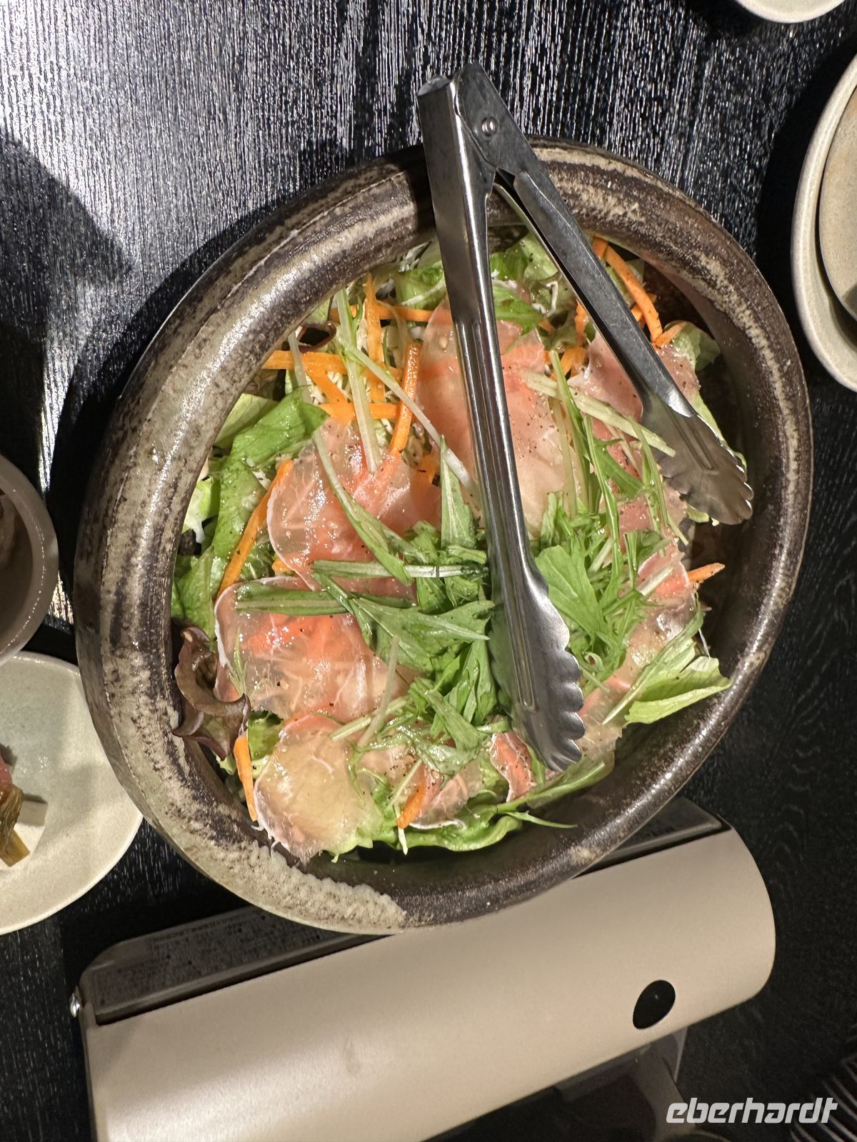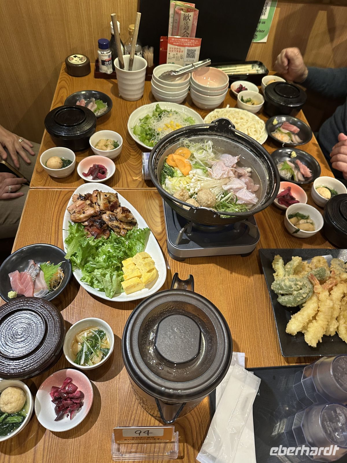 Unser Weg führt uns zum Todai-ji Tempel, einem der größten Holzgebäude der Welt. Im Inneren erwartet uns der Daibutsu, der große Buddha. Die beeindruckende Größe dieser Bronzestatue ist überwältigend. Ein Stück weiter beobachten wir amüsiert ein besonderes Spektakel: In einem der gewaltigen hölzernen Stützpfeiler befindet sich ein Loch, das genau so groß ist wie das Nasenloch des Buddhas. Es heißt, wer dort hindurchpasst, erlangt im nächsten Leben die Erleuchtung. Wir schauen zu, wie sich einige mutige Besucher durch die enge Öffnung winden. Anschließend spazieren wir weiter zum Nigatsu-do, einem Teil des Tempelkomplexes, der erhöht am Hang liegt. Dort wird eine der riesigen Fackeln ausgestellt, die beim berühmten Shuni-e Festival zum Einsatz kommen. Eindrucksvolle Bilder berichten vom Mizutori-Ritual, der heiligen Wasserschöpfzeremonie, die hier seit über 1200 Jahren jedes Jahr im März stattfindet. Den Abend krönen wir mit einem festlichen Abschiedsessen, das keine Wünsche offen lässt. In einem urigen Restaurant teilen wir uns ein klassisches Nabemono (Hot Pot). In der Mitte des Tisches köchelt in einem gusseisernen Topf eine herzhafte Brühe mit Huhn, Tofu, Enoki-Pilzen und Lauch. Flankiert wird der Eintopf von einer Vielfalt an Köstlichkeiten: knuspriges Tempura, fangfrisches Sashimi, feines Tamagoyaki-Omelett und kleine Schälchen mit farbenfroh eingelegtem Gemüse. Später geben wir Udon-Nudeln in die kräftige Brühe, um auch den letzten Rest des Geschmacks zu genießen. Bei Tee und in geselliger Runde lassen wir die unzähligen Eindrücke unserer Japan-Reise Revue passieren – ein würdiger und herzlicher Abschluss für dieses große Abenteuer.