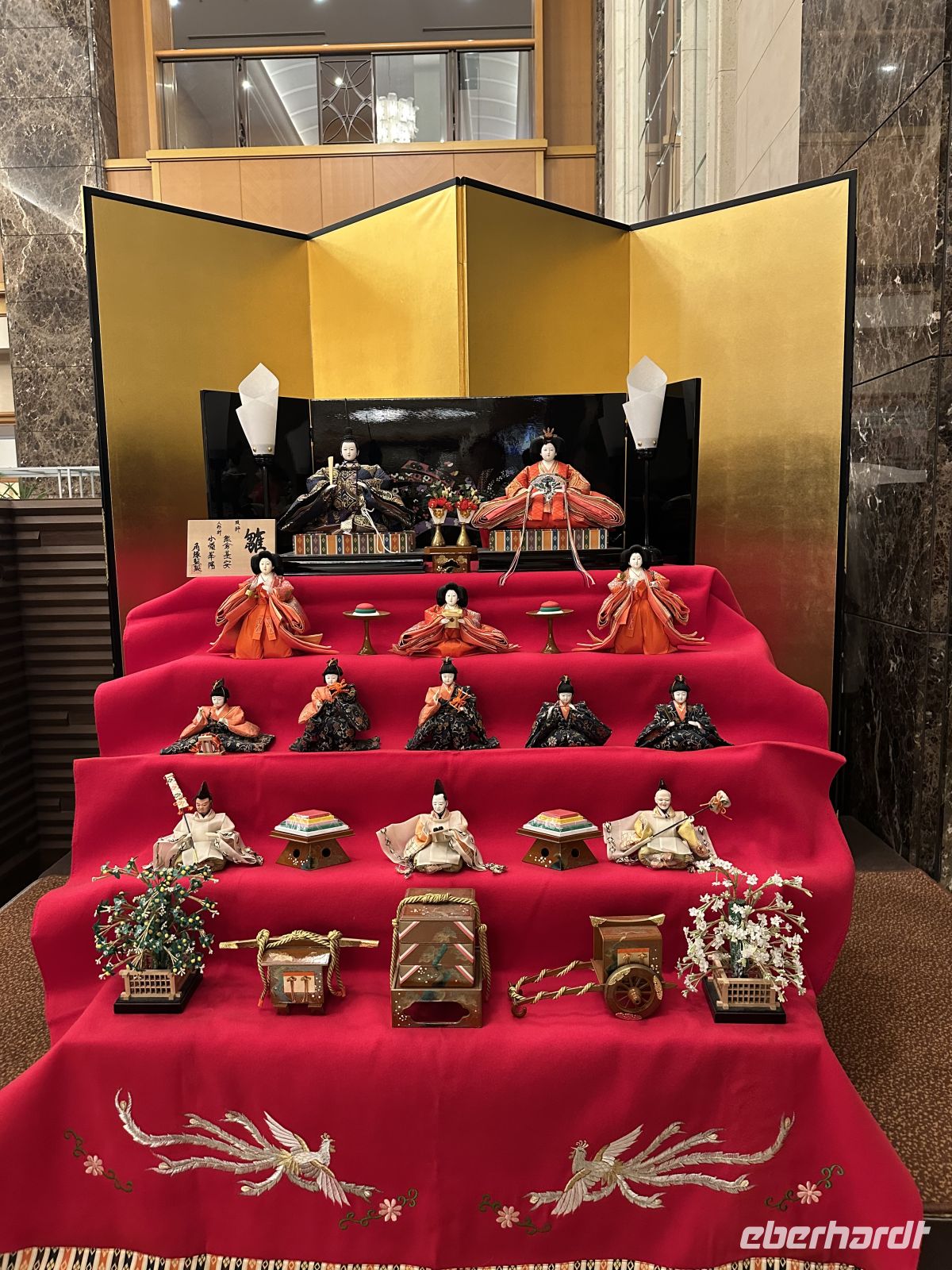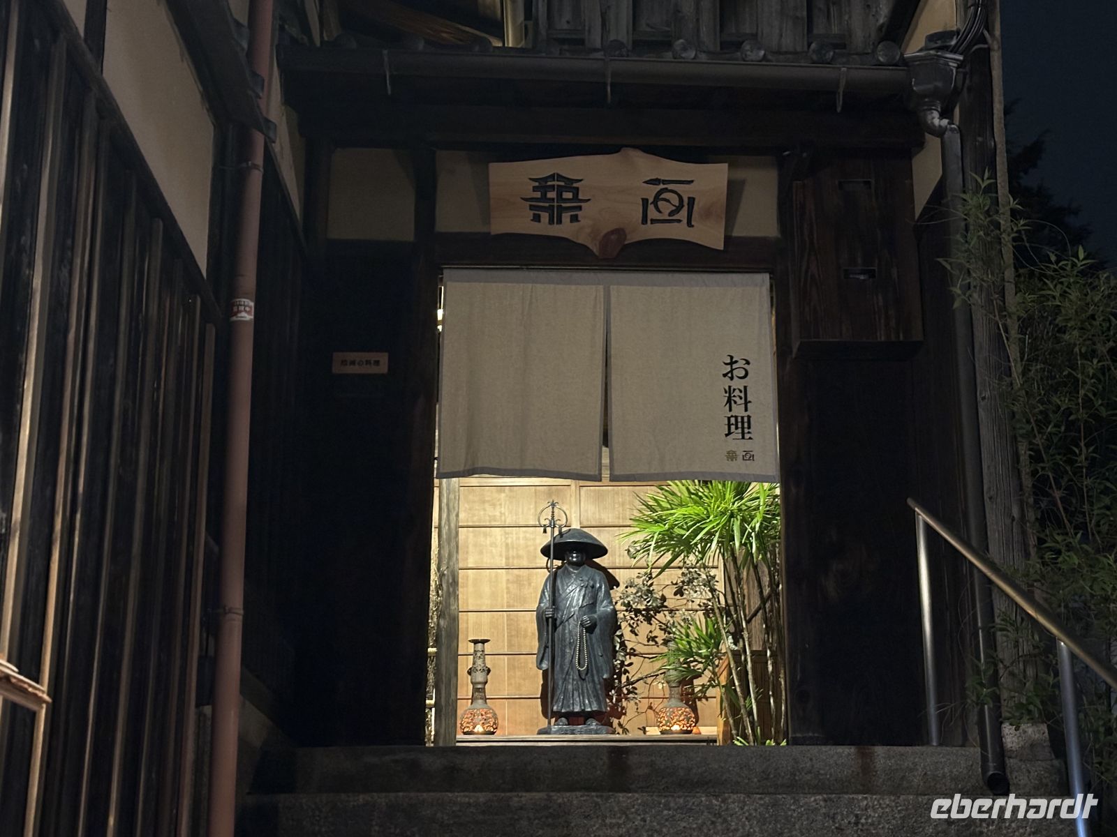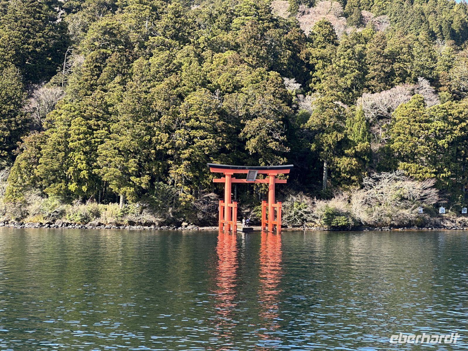 Nach dem beeindruckenden Frühstück mit den Pancakes und dem Fischbuffet verlassen wir Tokio und machen uns auf den Weg Richtung Süden. Unser erster Halt ist Kamakura. Am Eingang zum heiligen Bezirk empfängt uns ein beeindruckendes Ninotorii. Wir spazieren durch eine wunderschöne Kirschblütenallee, in der die Bäume in voller Pracht stehen. Der Regen begleitet uns auch heute, was die Farben der rosa Blüten und des grünen Mooses noch intensiver leuchten lässt. Wir besuchen den Hase-dera Tempel, der für seine weitläufigen Gärten bekannt ist. Ein besonders berührender Ort ist der dortige Kinderfriedhof mit den vielen kleinen Jizo-Statuen, die zum Schutz der Seelen aufgestellt wurden. In der Daikoku-do Halle bewundern wir die Schnitzereien und Statuen, bevor wir zum großen sitzenden Buddha, dem Daibutsu, weiterfahren. Trotz des Regens ist der Anblick der riesigen Bronzestatue unter den blühenden Kirschbäumen ein unvergessliches Motiv. Nach dem Besuch des Hase-dera Tempels erreichen wir den Kotoku-in Tempel, in dessen Zentrum der Daibutsu steht, der Große Buddha von Kamakura. Es handelt sich um eine gewaltige Bronzestatue des Amida Buddha, die bereits im 13. Jahrhundert gegossen wurde. Mit einer Höhe von über elf Metern thront er majestätisch unter freiem Himmel. Der Anblick ist heute besonders spektakulär, da der sitzende Buddha von voll blühenden Kirschbäumen eingerahmt wird. Die zarten rosa Blüten bilden einen wunderschönen Kontrast zur dunklen, grünlichen Patina der Bronze. Trotz des anhaltenden Regens strahlt die Statue eine unglaubliche Ruhe und Gelassenheit aus. Wir erfahren, dass der Buddha früher in einer riesigen Halle stand, die jedoch vor Jahrhunderten durch einen Tsunami zerstört wurde, weshalb er heute unter freiem Himmel besichtigt werden kann. In den Gassen von Kamakura machen wir eine kuriose Entdeckung: Eine Sherlock Holmes Figur steht dort neben einer klassischen roten Telefonzelle und einem originalen London Taxi. Direkt daneben finden wir eine kleine Manufaktur. Wir schauen zu, wie dort frische Matcha Kekse mit schwarzer Sesampaste gebacken werden. Sie sind noch warm und schmecken einfach köstlich. Danach führt uns die Reise weiter in den Hakone Nationalpark. Wir gehen an Bord eines prachtvoll verzierten Piratenboots und überqueren den Lake Ashinoko. Während der Fahrt haben wir Glück: Trotz der Wolken erhaschen wir einen Blick auf den majestätischen Fuji-san. Vom Wasser aus sehen wir auch das berühmte rote Torii, das direkt im See steht und ein Wahrzeichen der Region ist. Am Abend erreichen wir unser neues Quartier, das Onyado Megumi. Nach diesem langen Tag im Regen freuen wir uns darauf, die traditionelle Gastfreundschaft und das heiße Wasser des Onsens zu genießen. Bevor wir uns im Onsen aufwärmen können, erwartet uns ein kulinarischer Höhepunkt: das Kaiseki-Menü. Diese traditionelle Form der japanischen gehobenen Küche ist weit mehr als nur eine Mahlzeit; es ist eine Kunstform, bei der die Saisonalität und die regionale Herkunft der Zutaten im Mittelpunkt stehen.