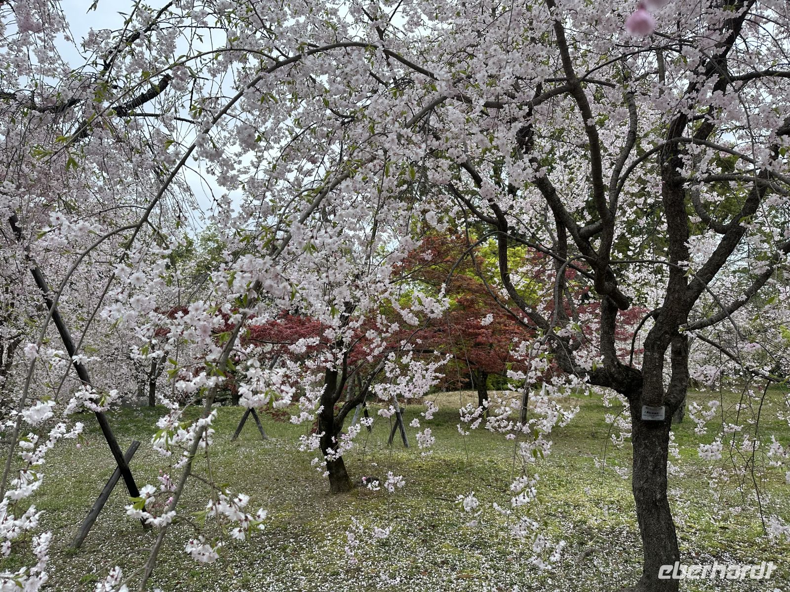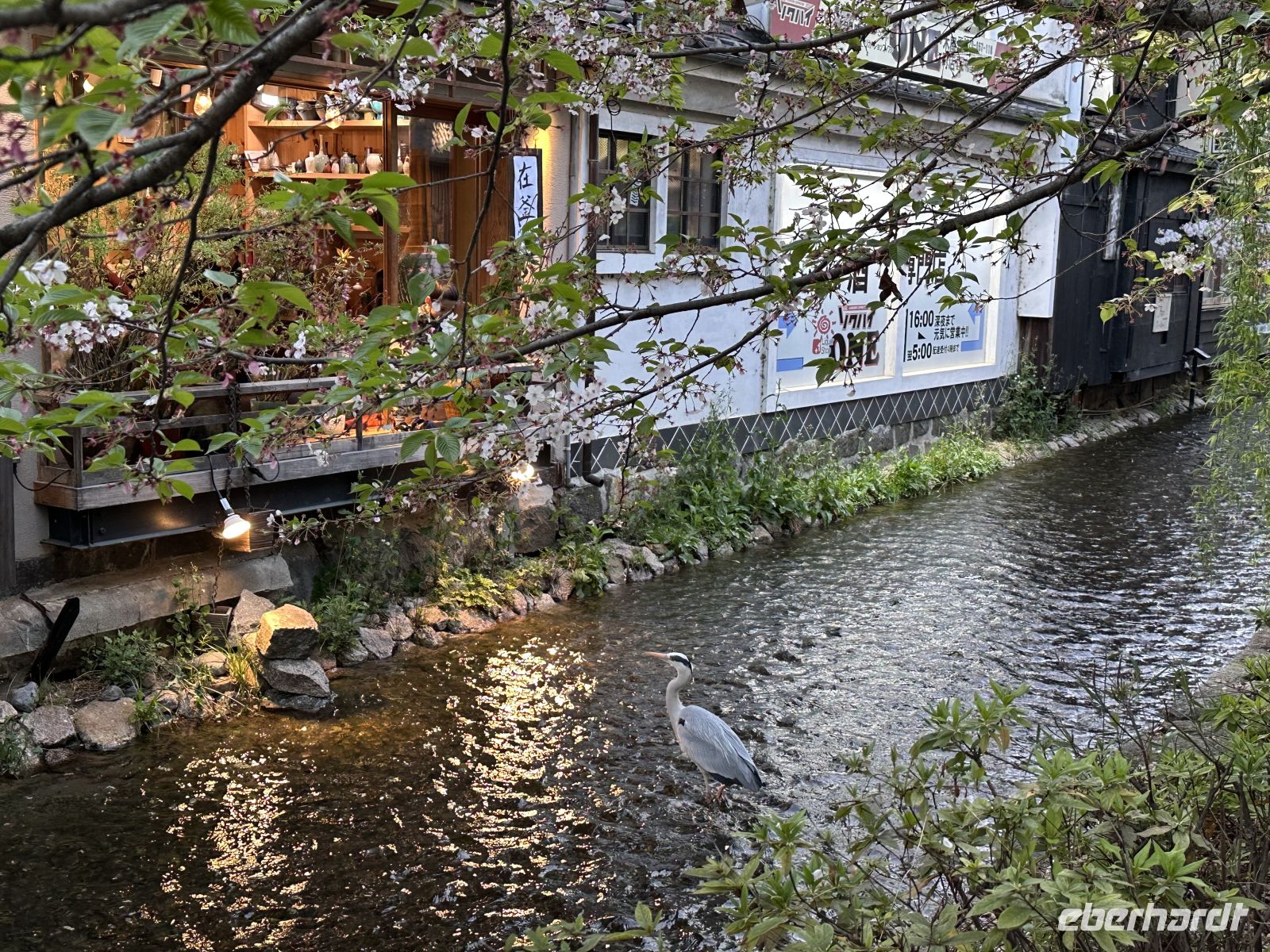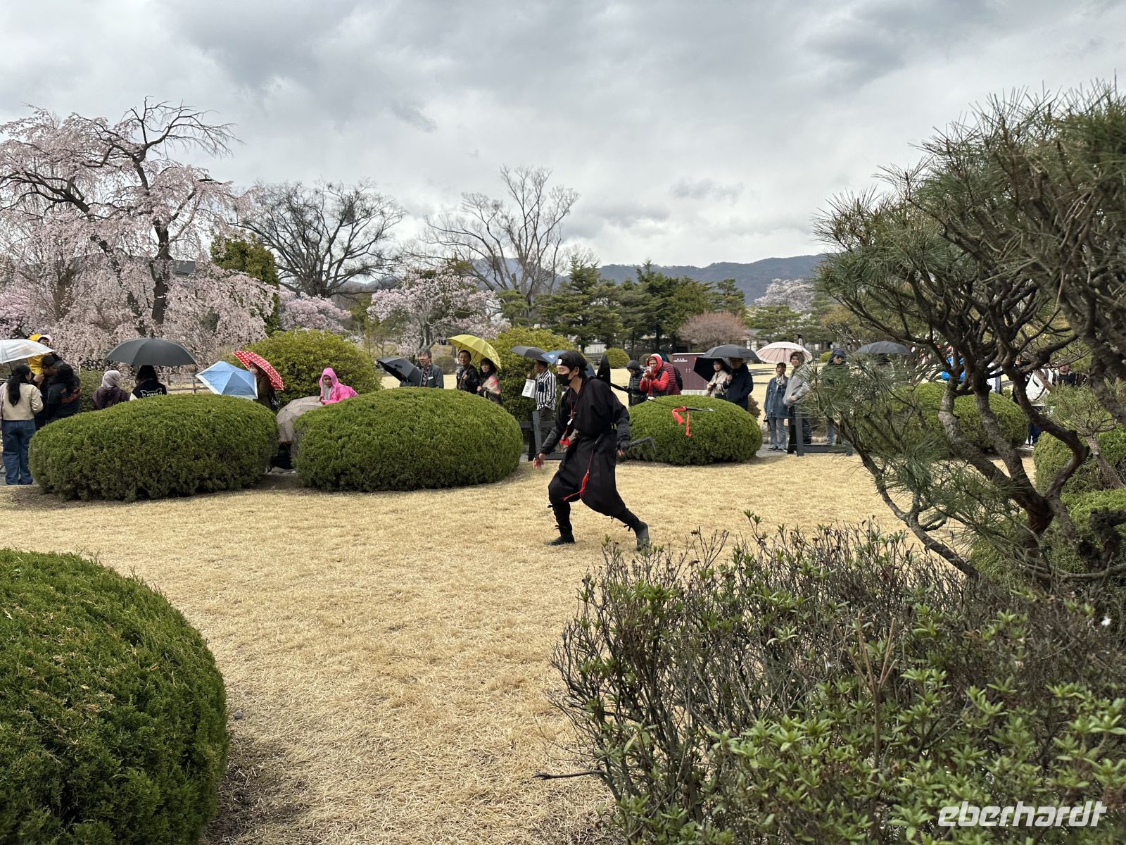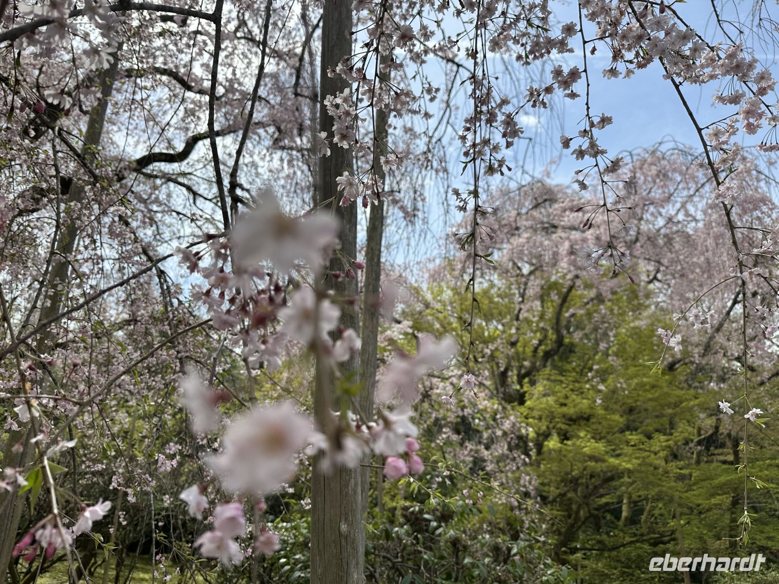 Ein besonderes Naturerlebnis erwartet uns am Okazaki-Tempel. Die Anlage liegt in einem wahren Blütenmeer aus Kirschblüten. Während wir die friedliche Atmosphäre genießen, haben wir großes Glück mit Tierbeobachtungen: Wir können einen Reiher in aller Ruhe beobachten und entdecken sogar einen leuchtend blauen Eisvogel – ein seltener und magischer Moment für unsere Gruppe.