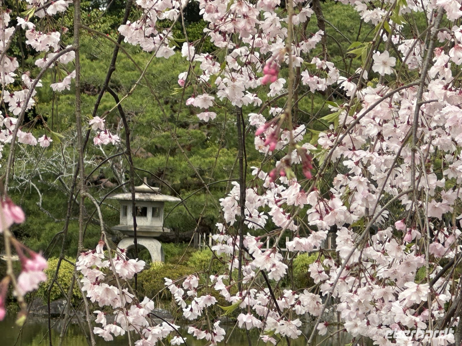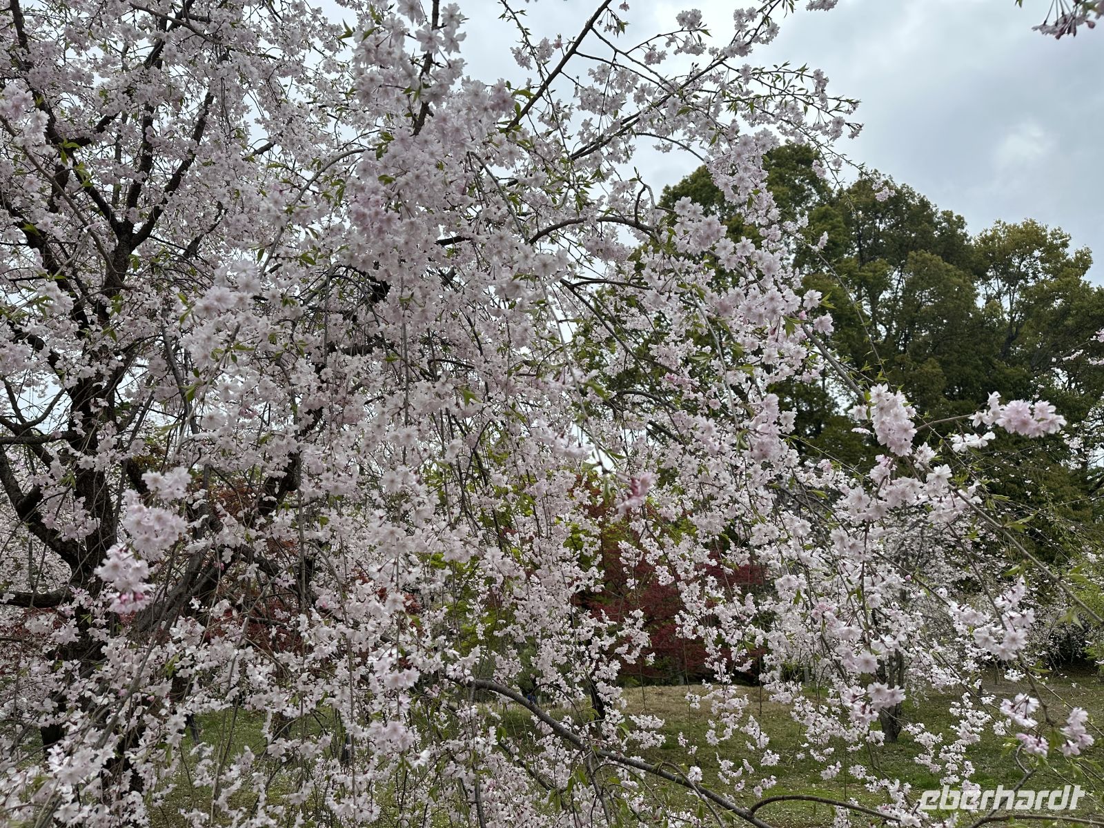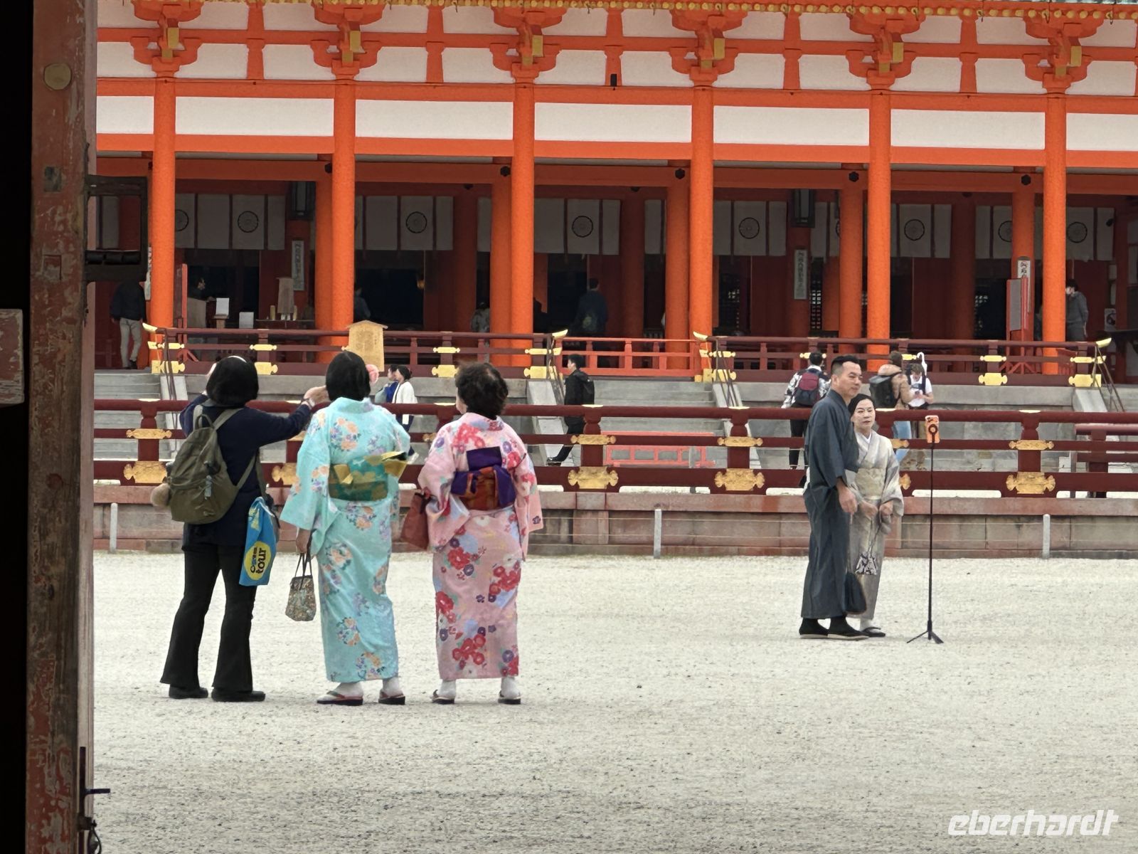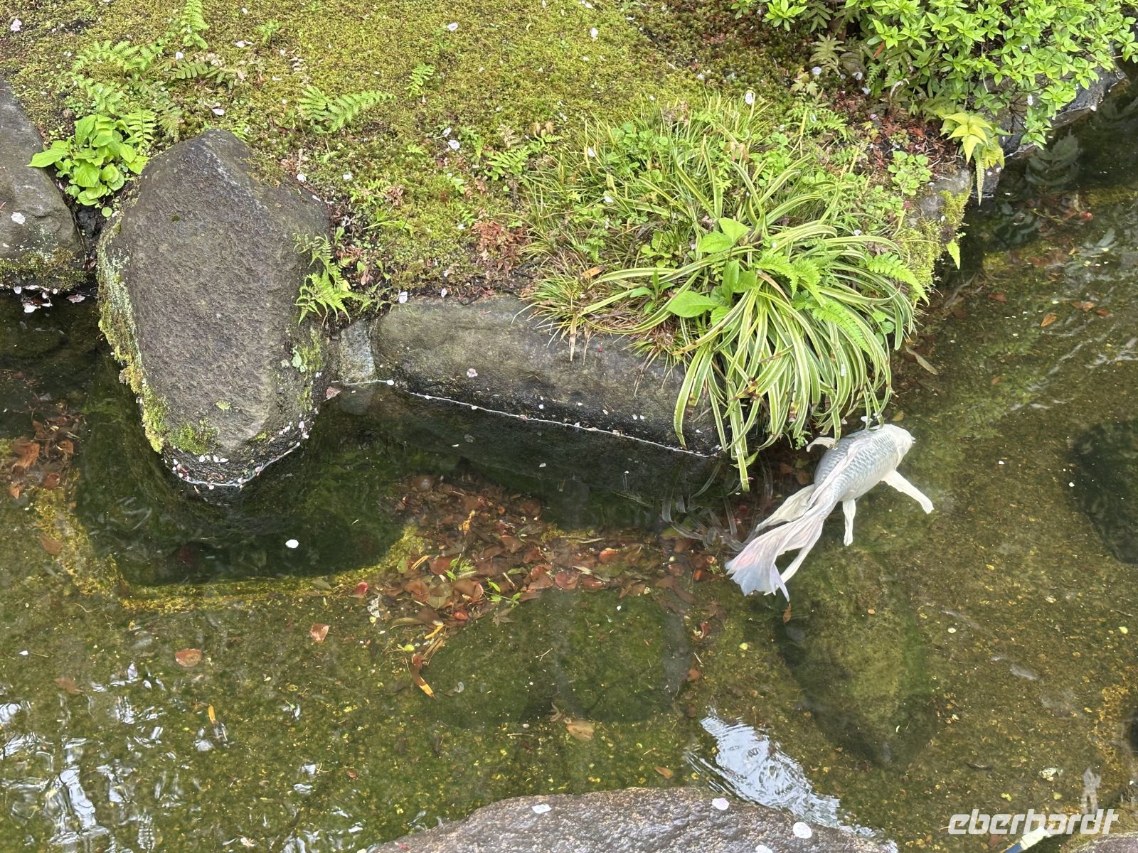 Ein besonderes Naturerlebnis erwartet uns am Okazaki-Tempel. Die Anlage liegt in einem wahren Blütenmeer aus Kirschblüten. Während wir die friedliche Atmosphäre genießen, haben wir großes Glück mit Tierbeobachtungen: Wir können einen Reiher in aller Ruhe beobachten und entdecken sogar einen leuchtend blauen Eisvogel – ein seltener und magischer Moment für unsere Gruppe.