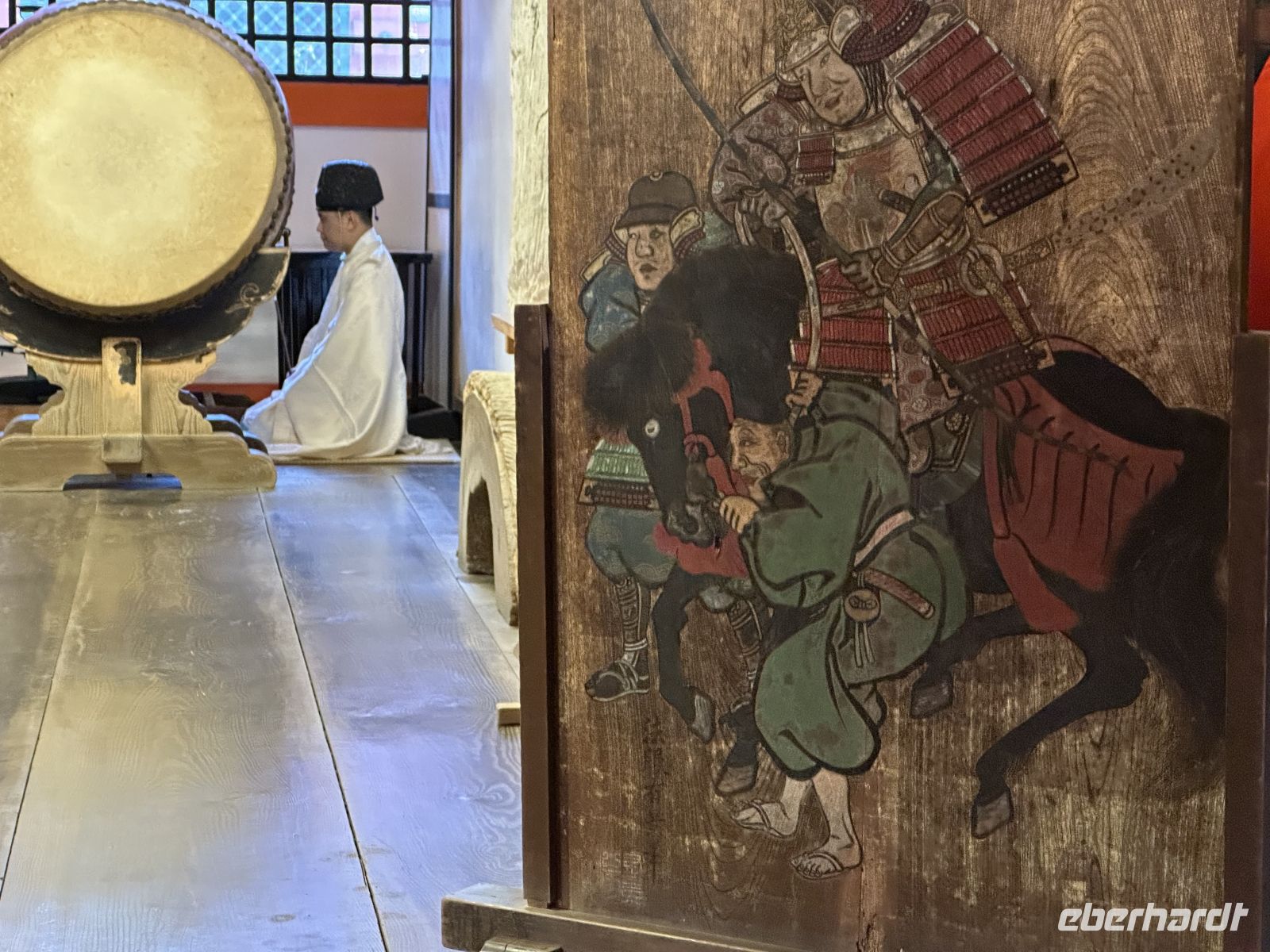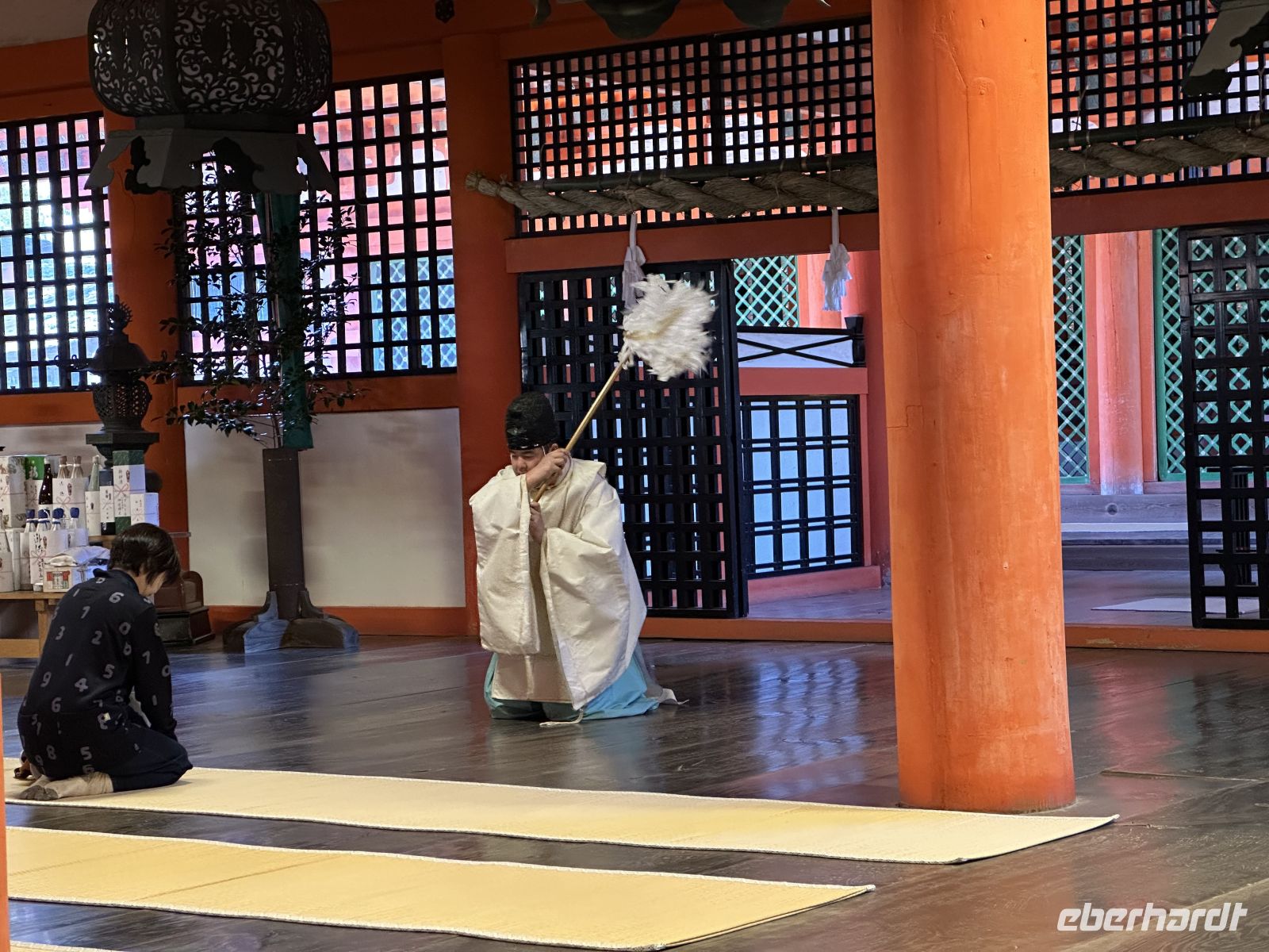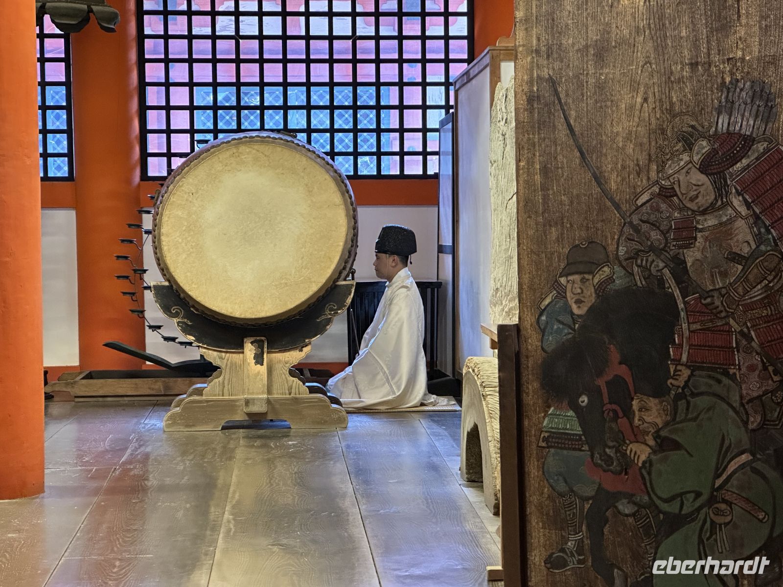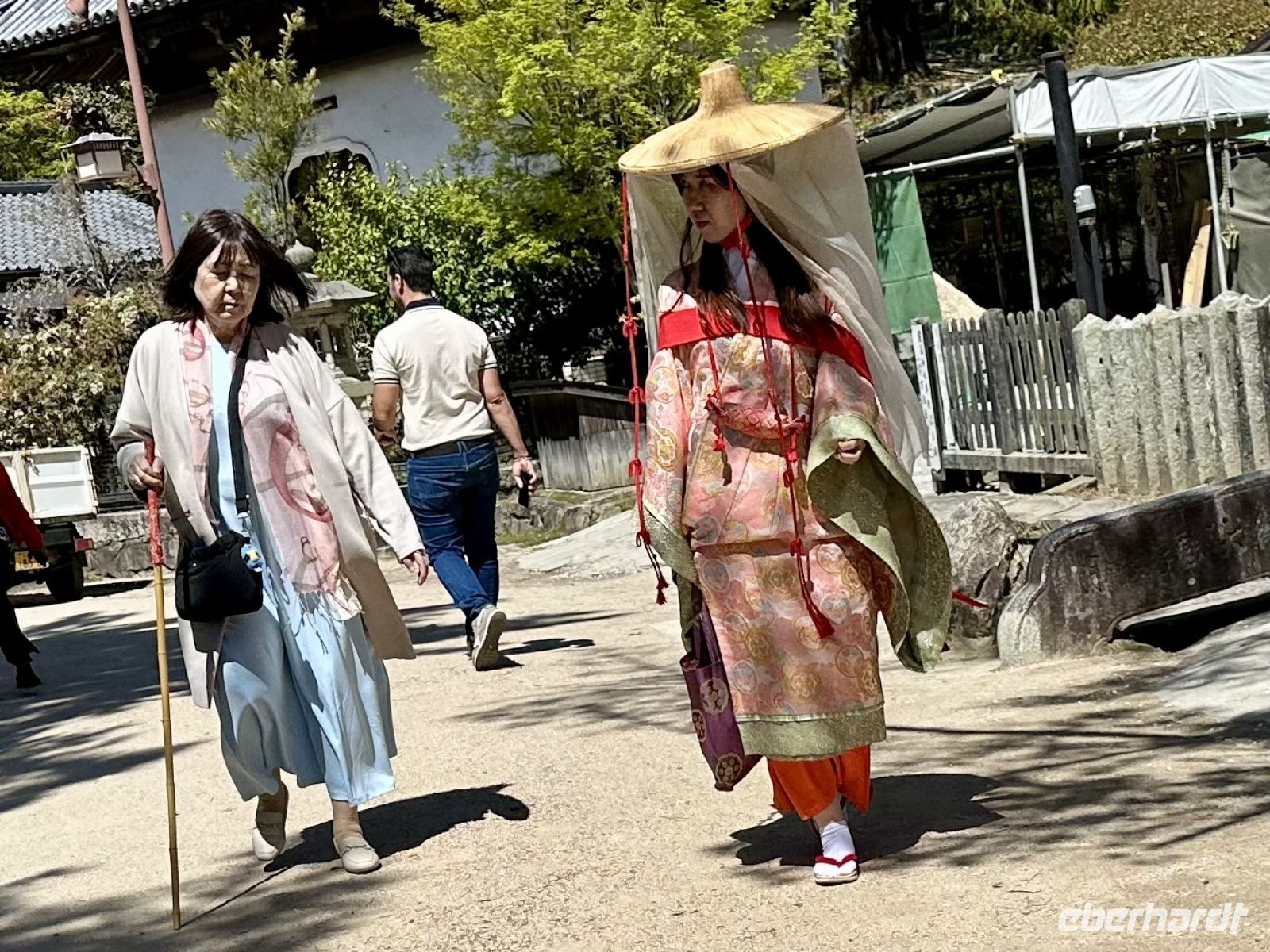 Ein besonderes Naturerlebnis erwartet uns am Okazaki-Tempel. Die Anlage liegt in einem wahren Blütenmeer aus Kirschblüten. Während wir die friedliche Atmosphäre genießen, haben wir großes Glück mit Tierbeobachtungen: Wir können einen Reiher in aller Ruhe beobachten und entdecken sogar einen leuchtend blauen Eisvogel – ein seltener und magischer Moment für unsere Gruppe.