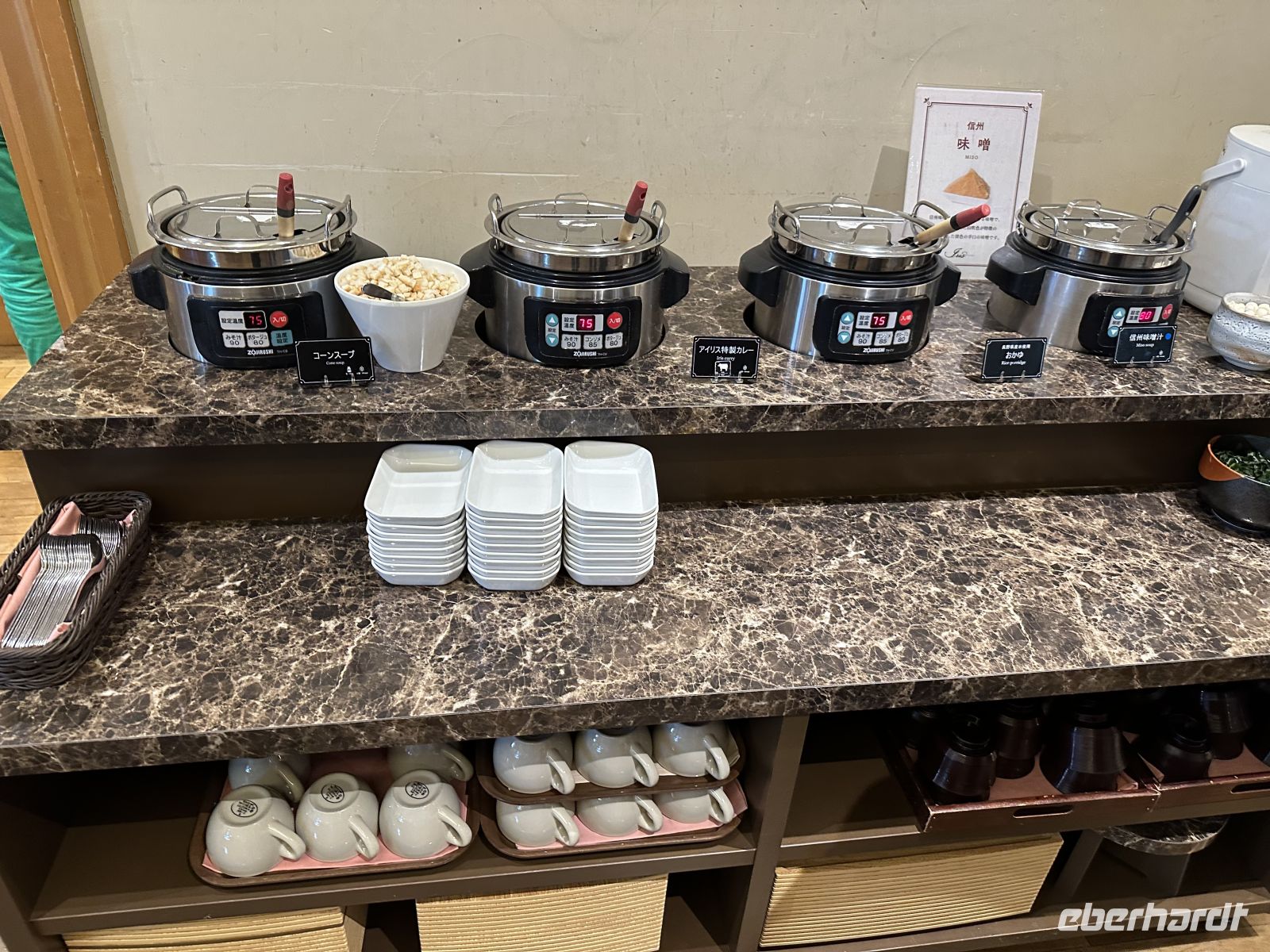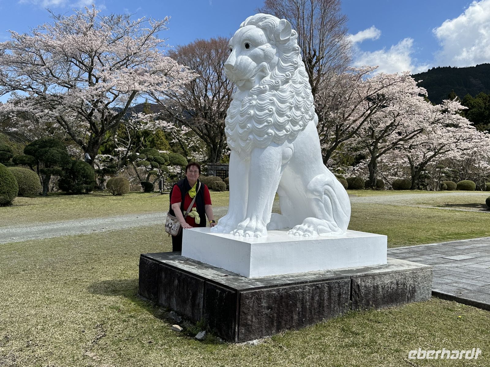 Unser Morgen beginnt im Ryokan mit einem Frühstück, das uns tief in die japanische Esskultur eintauchen lässt. Anstatt eines Buffets erwartet uns ein sorgfältig zusammengestelltes Set direkt am Tisch. Im Zentrum steht ein im Ganzen gegrillter Fisch, eine Spezialität der Region, der durch sein rauchiges Aroma besticht. Dazu werden zahlreiche kleine Beilagen gereicht: Eine Schale mit frisch gedämpftem, weißem Reis darf natürlich nicht fehlen. Wir entdecken verschiedene Pickles (Tsukemono), einen frischen Salat mit feinem Dressing und cremigen Tofu, der mit Gurkenscheiben und Radieschen garniert ist. Besonders appetitlich wirken die kleinen Schälchen mit Gewürzen, Frühlingszwiebeln und Wasabi, mit denen man seine Speisen individuell verfeinern kann. Auch eine klassische Miso-Suppe in einer lackierten Schale und ein kleiner Joghurt mit Mandarine als süßer Abschluss gehören dazu. Es ist ein ruhiges Frühstück, das uns Kraft für die bevorstehende Weiterreise gibt. Nach dem Frühstück verlassen wir das Hotel und fahren hinauf in das Owakudani-Tal. Schon bei der Ankunft steigen uns die Schwefeldämpfe der aktiven Vulkanzone in die Nase. Ein absolutes Muss hier oben ist das Probieren der Kuro-tamago, der berühmten schwarzen Eier. Diese werden in den natürlichen heißen Quellen gekocht, wodurch ihre Schale durch eine chemische Reaktion mit dem Eisen und Schwefel tiefschwarz wird. Man sagt, dass jedes gegessene Ei das Leben um sieben Jahre verlängert – eine Legende, die wir uns natürlich nicht entgehen lassen. Birgit spendiert für jeden ein schwarzes Ei. Nach dieser Stärkung bleibt noch etwas Zeit zum Shoppen in dem großen Souvenirgeschäft, bevor wir unsere Reise fortsetzen. Unser nächster Halt ist der Heiwa Peace Park. Wir werden dort von einer wunderschönen Kirschblüte empfangen, die den Park in ein zartes Rosa taucht. Besonders beeindruckend ist die große weiße Stupa, die weithin sichtbar ist. Ein Kuriosum des Parks sind die vielen verschiedenen Steinlöwen, die als Geschenke aus aller Welt hier aufgestellt wurden und die Vielfalt der Kulturen repräsentieren. Auf der anschließenden Busfahrt haben wir unglaubliches Glück: Der Himmel reißt auf und bietet uns einen fantastischen Blick auf den Fuji-san. Wir besuchen das alte Fuji World Heritage Center, wo wir noch tiefer in die Bedeutung dieses heiligen Berges eintauchen können. Auch von hier aus genießen wir einen super Ausblick auf den perfekt geformten Kegel des Vulkans, der heute ein ideales Fotomotiv abgibt. Danach steht uns eine längere Busfahrt bevor, die uns in den Norden nach Nagano führt. Wir beziehen unser Quartier im Hotel Metropolitan Nagano. Die Lage ist unschlagbar, da es einen direkten Zugang zu einem großen Einkaufszentrum und zum Bahnhof bietet, was für alle sehr praktisch ist. Der Abend steht zur freien Verfügung. Einige Gäste besuchen gemeinsam das Restaurant Nagano Meijitei. Dort genießen wir eine lokale Spezialität: Das Schnitzel ist riesengroß, fantastisch knusprig und mit der berühmten, würzigen Katsudon-Sauce verfeinert. Es schmeckt einfach hervorragend und ist der perfekte, herzhafte Abschluss für diesen ereignisreichen Tag.