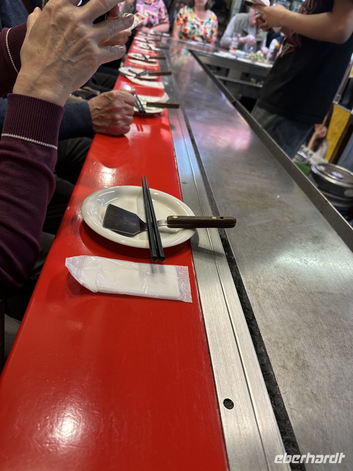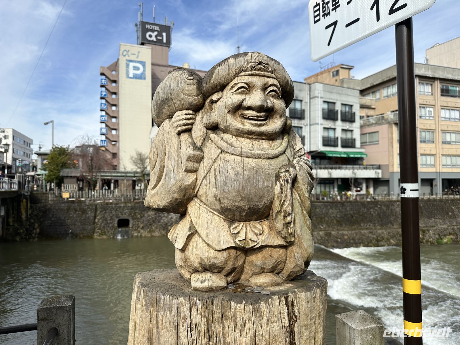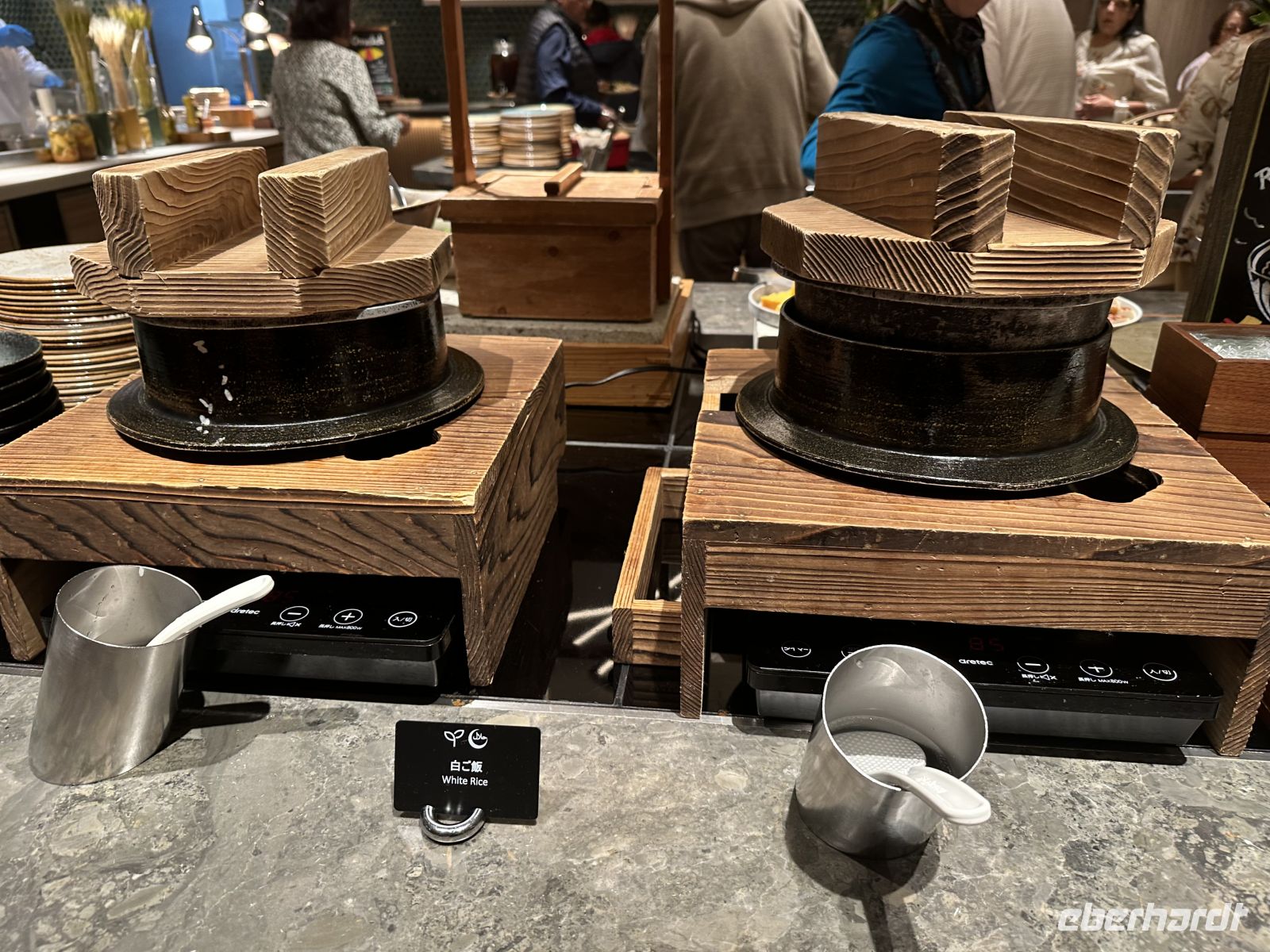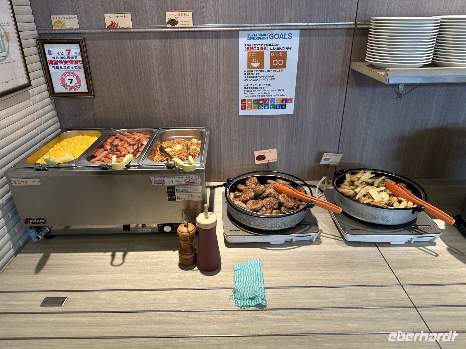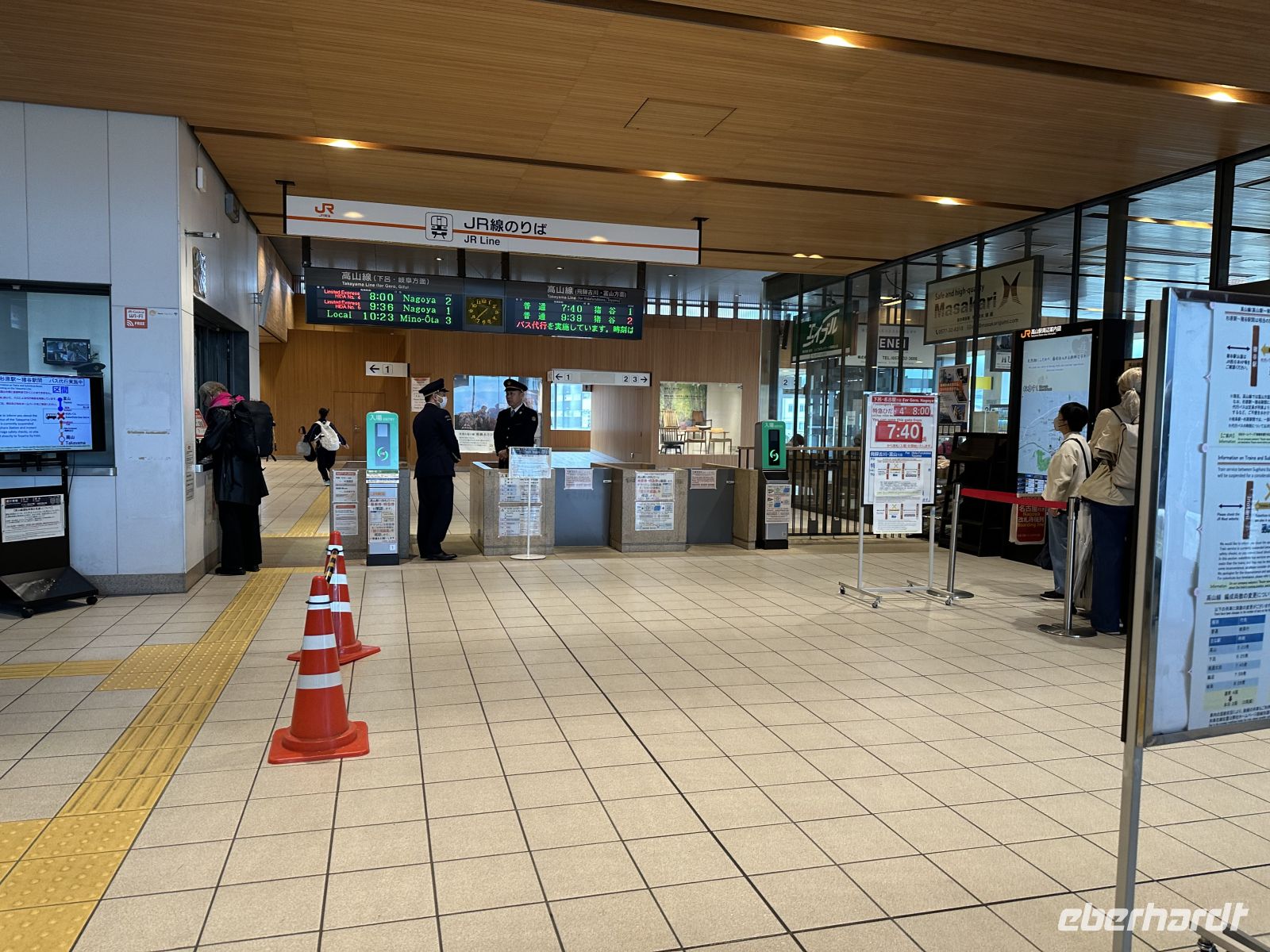 Unser letzter Morgen in Takayama beginnt kulinarisch noch einmal mit einem echten Highlight der Region. Beim Frühstück erwartet uns eine Spezialität, die typisch für die Hida-Berge ist: Tofu-Steak. Der Tofu wird auf einer heißen Platte goldbraun gebraten und mit einer würzigen Sauce sowie tanzenden Bonito-Flocken serviert. Es ist die perfekte, proteinreiche Stärkung für unseren heutigen Reisetag. Neben diesem warmen Gericht genießen wir die gewohnt vielfältige Auswahl des japanischen Frühstücksbuffets. Nach dem herzhaften Frühstück organisieren wir zuerst den Gepäckversand. Wir geben unsere Koffer im Hotel ab, damit sie direkt zu unserem nächsten Ziel transportiert werden, und reisen nur mit leichtem Handgepäck weiter. Das gibt uns die nötige Freiheit für unseren heutigen Zwischenstopp.
