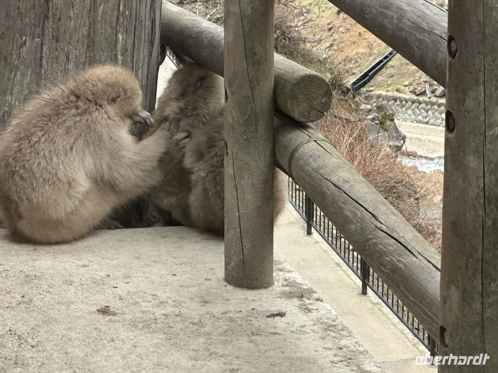 Unser Tag beginnt mit einem ganz besonderen Naturerlebnis. Um zu den berühmten Schneeaffen zu gelangen, unternehmen wir zunächst eine entspannte Wanderung. Der Weg führt uns etwa 30 Minuten lang durch einen verwunschenen Wald mit hohen Nadelbäumen. Die frische Waldluft und die Ruhe der Natur stimmen uns perfekt auf das ein, was uns am Ende des Pfades erwartet: der Jigokudani Monkey Park.