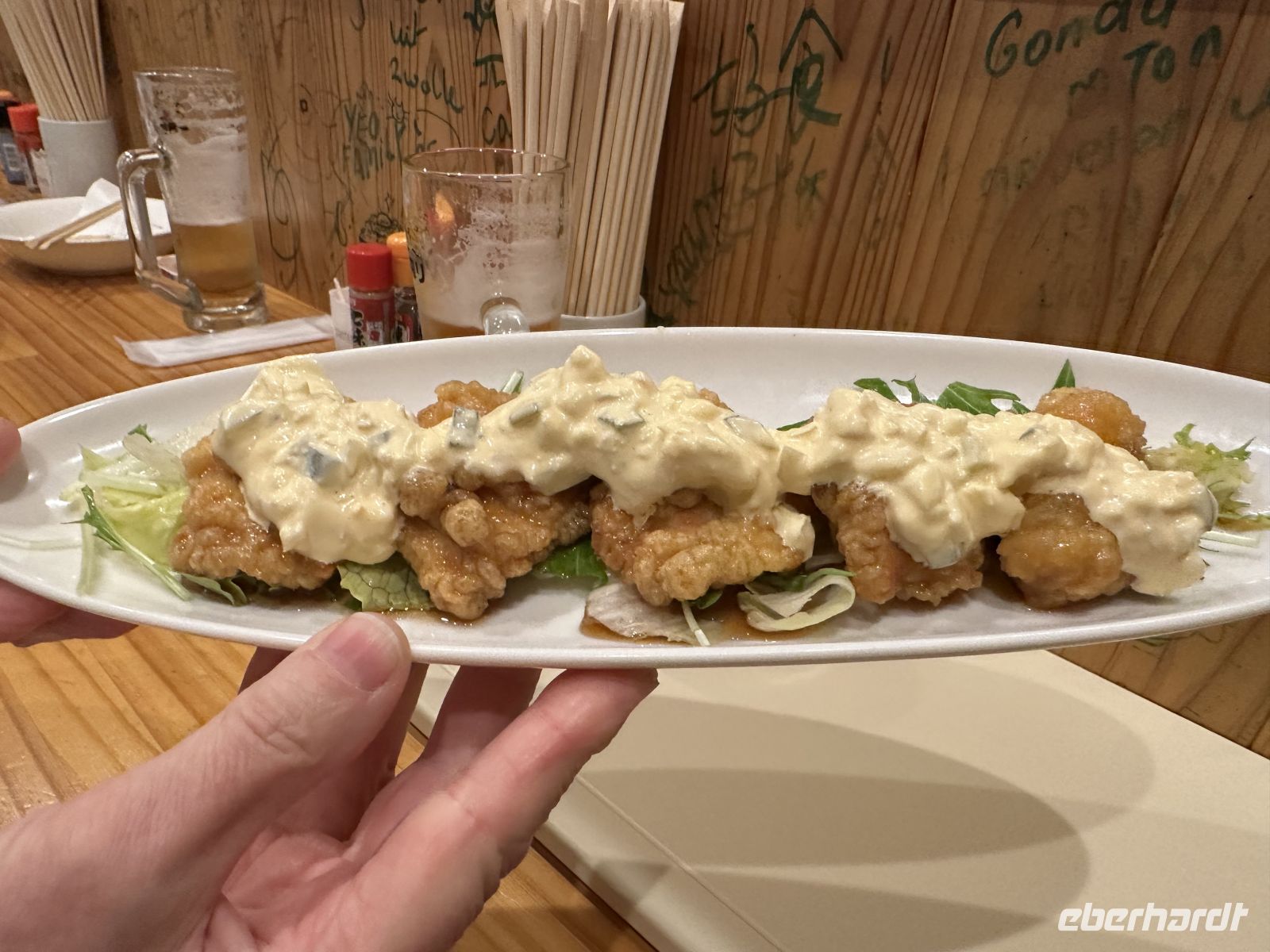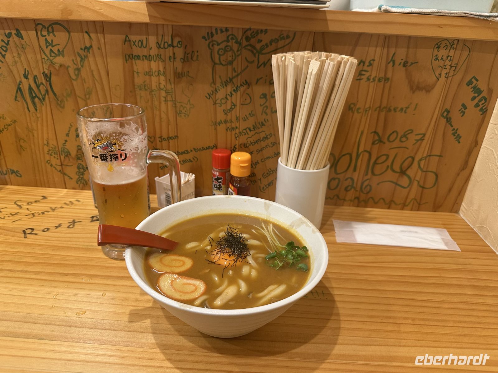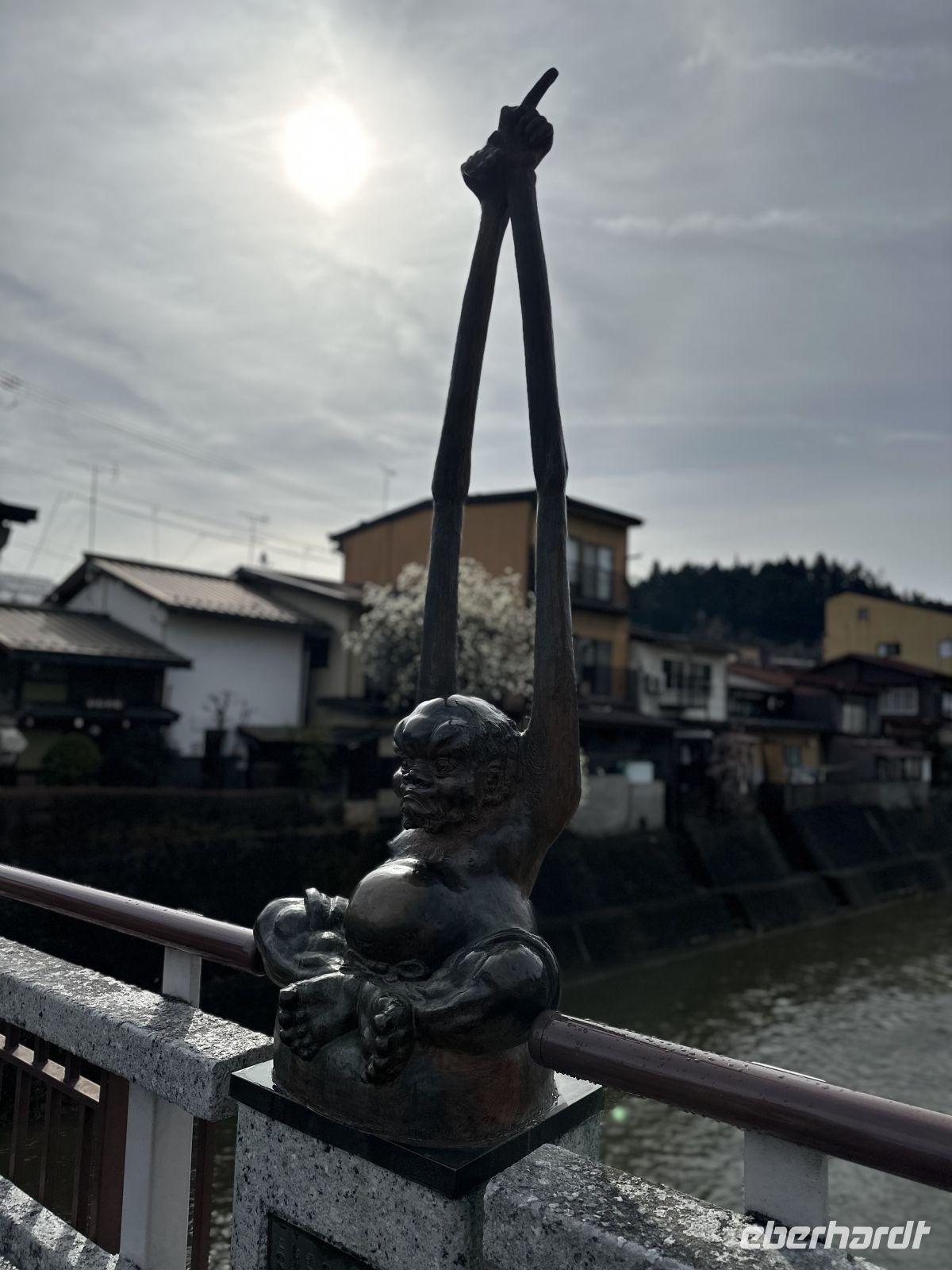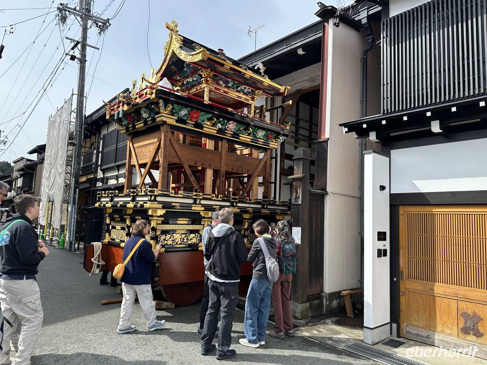 Wir starten entspannt in den Tag mit einem Besuch des Miyagawa Morgenmarktes. Entlang des Flusses schlendern wir an den Ständen vorbei, bewundern das lokale Kunsthandwerk und probieren die eine oder andere kleine Köstlichkeit. Danach führt uns unser Spaziergang durch die historische Altstadt. An der berühmten roten Nakabashi-Brücke halten wir inne: Die Kombination aus der leuchtend roten Brücke und den zartrosa Kirschblüten am Ufer ist ein absolutes Postkartenmotiv. Auf unserem Weg durch die Gassen entdecken wir hinter großen Toren die prachtvollen Festwagen (Yatai) in ihren Garagen, die für das berühmte Takayama-Festival genutzt werden. Ein kultureller Höhepunkt ist der Besuch des Takayama Jinya in Hachikemmachi. Dieses ehemalige Amtshaus der Shogune beeindruckt uns mit seinen weitläufigen Tatami-Räumen und der funktionalen, schlichten Architektur der Edo-Zeit. Gegen Mittag verlassen wir Takayama und fahren in das Bergdorf Ogimachi in Shirakawa-go. Schon der Weg ins Dorf ist spektakulär, als wir die lange Hängebrücke über den Fluss überqueren. Das UNESCO-Weltkulturerbe mit seinen strohgedeckten Gassho-Zukuri-Häusern wirkt wie aus einer anderen Zeit. Wir besichtigen das historische Kanda-Haus von innen. Es ist faszinierend zu sehen, wie die Menschen unter den riesigen Dächern lebten und arbeiteten – besonders der Blick in die oberen Stockwerke, wo früher Seidenraupen gezüchtet wurden, ist beeindruckend. Den Abend lassen wir in der lebendigen Atmosphäre des Dekonaru Yokocho ausklingen. Diese schmalen Gassen sind ein Paradies für kulinarische Entdeckungen und bietet genau das Japan, das man aus Filmen kennt: kleine, gemütliche Stände, herzliche Gastgeber und eine bunte Mischung an Gästen. An den urigen Holztischen, die über und über mit Grüßen früherer Besucher verziert sind, genießen wir eine Auswahl an japanischen Klassikern, wie Curry-Udon: Eine dampfende Schüssel mit dicken Nudeln in einer würzigen Currybrühe, garniert mit einem Eigelb für die Extra-Cremigkeit oder Mentaiko-Pasta (Udon-Style): Eine cremige Nudelvariante mit würzigem Fischrogen und frischem Shiso-Blatt und Chicken Nanban: Knusprig frittiertes Hähnchen, großzügig getoppt mit einer cremigen Tatarensauce und frischem Salat. Dazu ein frisch gezapftes Kirin Ichiban aus dem Glas – so schmeckt das echte Japan! Es ist ein herrlich ungezwungener Abend, an dem wir das pulsierende Nachtleben von Takayama in vollen Zügen genießen.