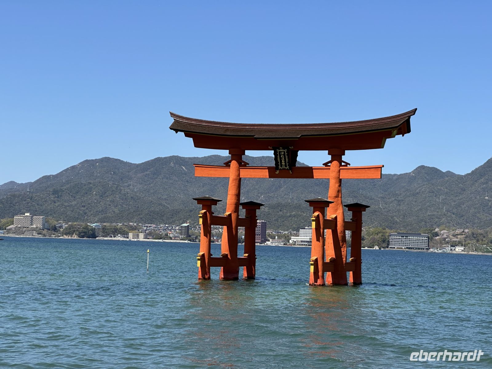 Der heutige Tag beginnt mit einer flotten Fahrt: Wir nehmen das Schnellboot direkt nach Miyajima. Gemütlich im Inneren des Bootes sitzend, genießen wir den Blick auf die vorbeiziehende Küstenlandschaft und die kleinen Inseln, während wir zügig auf die heilige Insel übersetzen. Den Vormittag verbringen wir auf Miyajima, einer Insel, die zu den drei schönsten Landschaften Japans zählt. Miyajima gilt seit jeher als heilige Insel des Shintoismus. Früher war es gewöhnlichen Menschen untersagt, die Insel zu betreten. Um den heiligen Boden nicht zu verunreinigen, wurde der Itsukushima-Schrein, der heute zum UNESCO-Weltkulturerbe zählt, so konstruiert, dass er auf Stelzen im Wasser steht. So konnten Besucher den Schrein mit dem Boot erreichen, ohne den Boden der Insel direkt zu berühren. Das berühmte rote Torii ist eines der bekanntesten Fotomotive Japans. Es steht ohne tiefes Fundament im Meeresboden und wird allein durch sein massives Eigengewicht (ca. 60 Tonnen) und geschickte Holzbauweise an Ort und Stelle gehalten. Unterwegs begegnen uns zahme Rehe, die im Shintoismus als heilige Boten der Götter gelten. Am Nachmittag kehren wir zum Festland zurück und spazieren durch den Peace Memorial Park (Friedenspark). Es ist ein bewegender Ort der Erinnerung und Mahnung. Inmitten der nachdenklichen Atmosphäre setzen die blühenden Kirschblüten entlang der Flussufer einen zarten Akzent der Hoffnung und Erneuerung. Ein besonderer Moment für die Gruppe ist es, als wir die Friedensglocke schlagen – der tiefe, langanhaltende Klang ist ein Symbol für den Wunsch nach weltweitem Frieden und hallt noch lange in uns nach. Zum Abendessen wartet ein kulinarisches Muss in Hiroshima auf uns: Okonomiyaki. Wir fahren in den Stadtteil Matsubaracho und besuchen das Restaurant Sozo. Dieses moderne Lokal ist bekannt für seine kreative Interpretation des Hiroshima-Style Okonomiyaki. Hier werden die Zutaten wie Nudeln, Kohl, Ei und Fleisch kunstvoll in Schichten übereinander gestapelt und direkt auf einer heißen Eisenplatte vor unseren Augen zubereitet. Die herzhaften, dampfenden Fladen, frisch vom Grill serviert, sind der perfekte, genussvolle Abschluss für diesen ereignisreichen Tag.