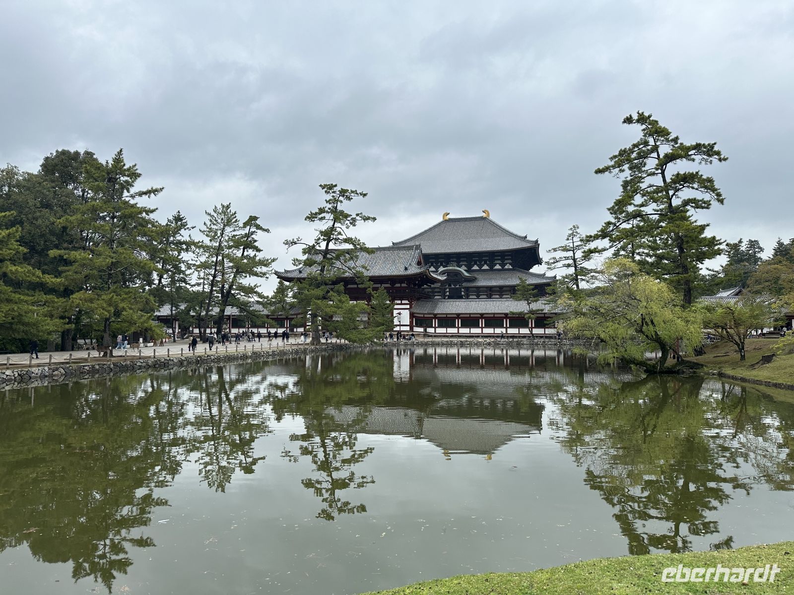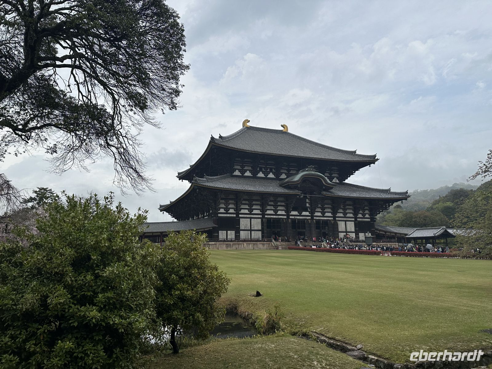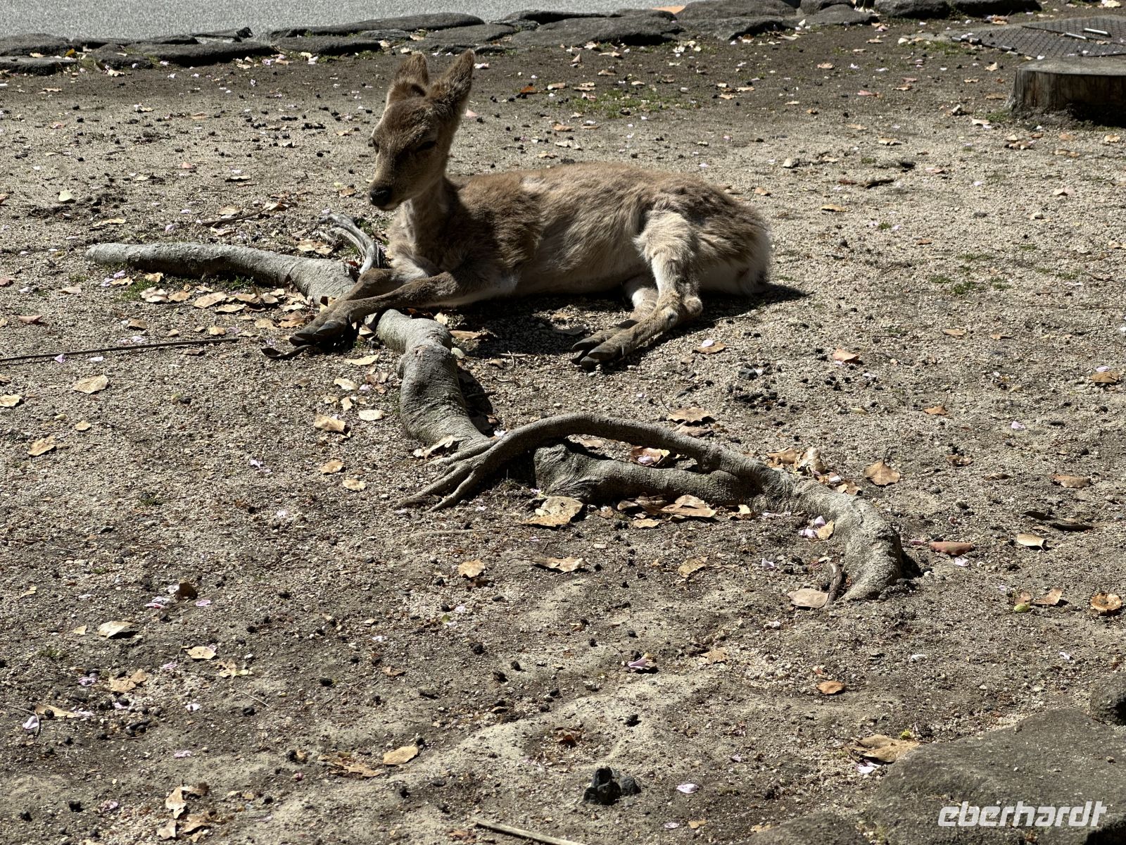 Wir lassen das Gewusel hinter uns und fahren weiter nach Nara. Im berühmten Nara-Park werden wir sofort von den tierischen Bewohnern begrüßt. Die Hirsche hier sind alles andere als scheu und knabbern neugierig an allem herum, was sie finden können – Taschen, Karten und Jacken sind vor ihren sanften, aber hartnäckigen Mäulern nicht sicher.