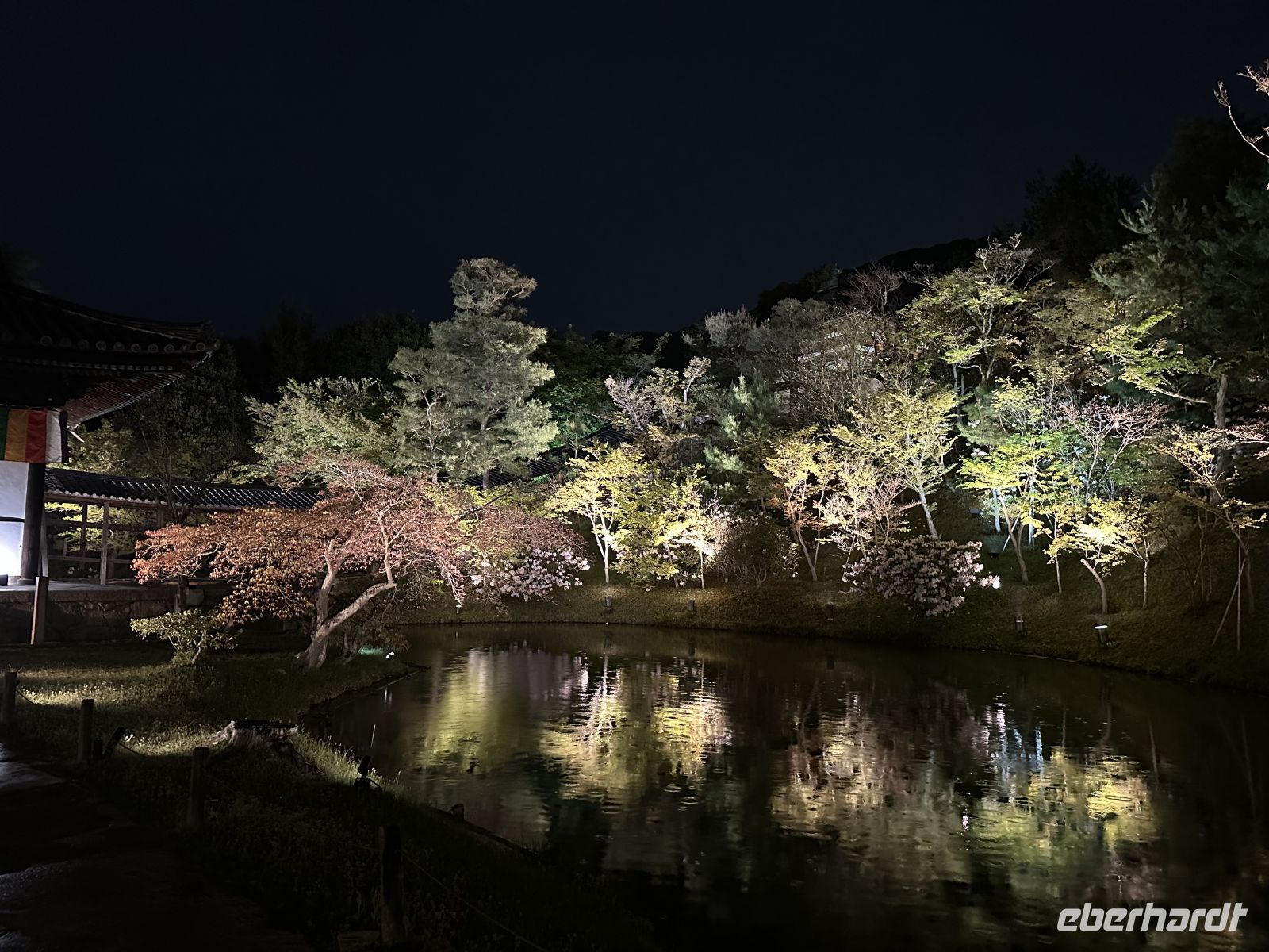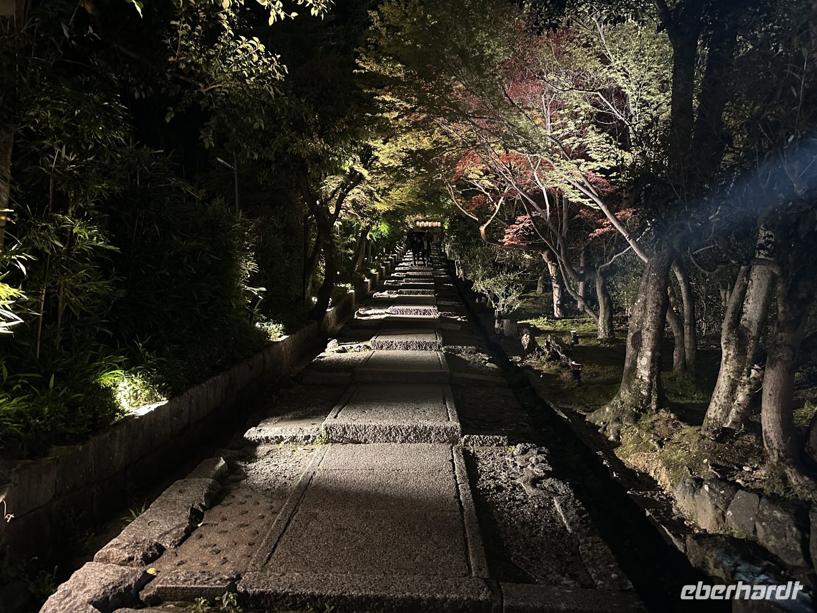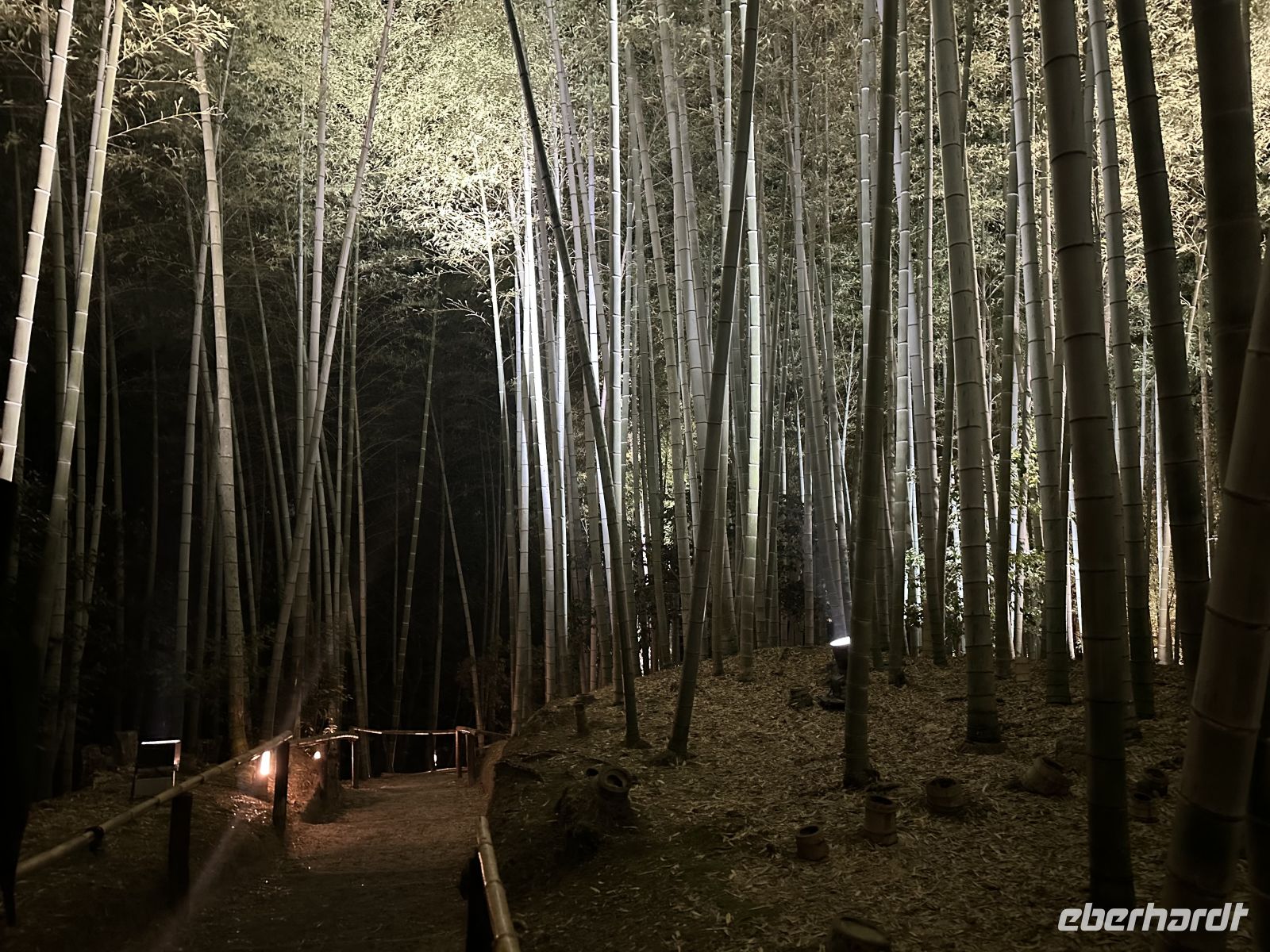 Den krönenden Abschluss bildet der Rückweg durch den Bambuswald. Auch hier sind die hoch aufragenden Halme am Abend kunstvoll beleuchtet, was dem Ort eine ganz andere, mystische Aura verleiht als am Tag.