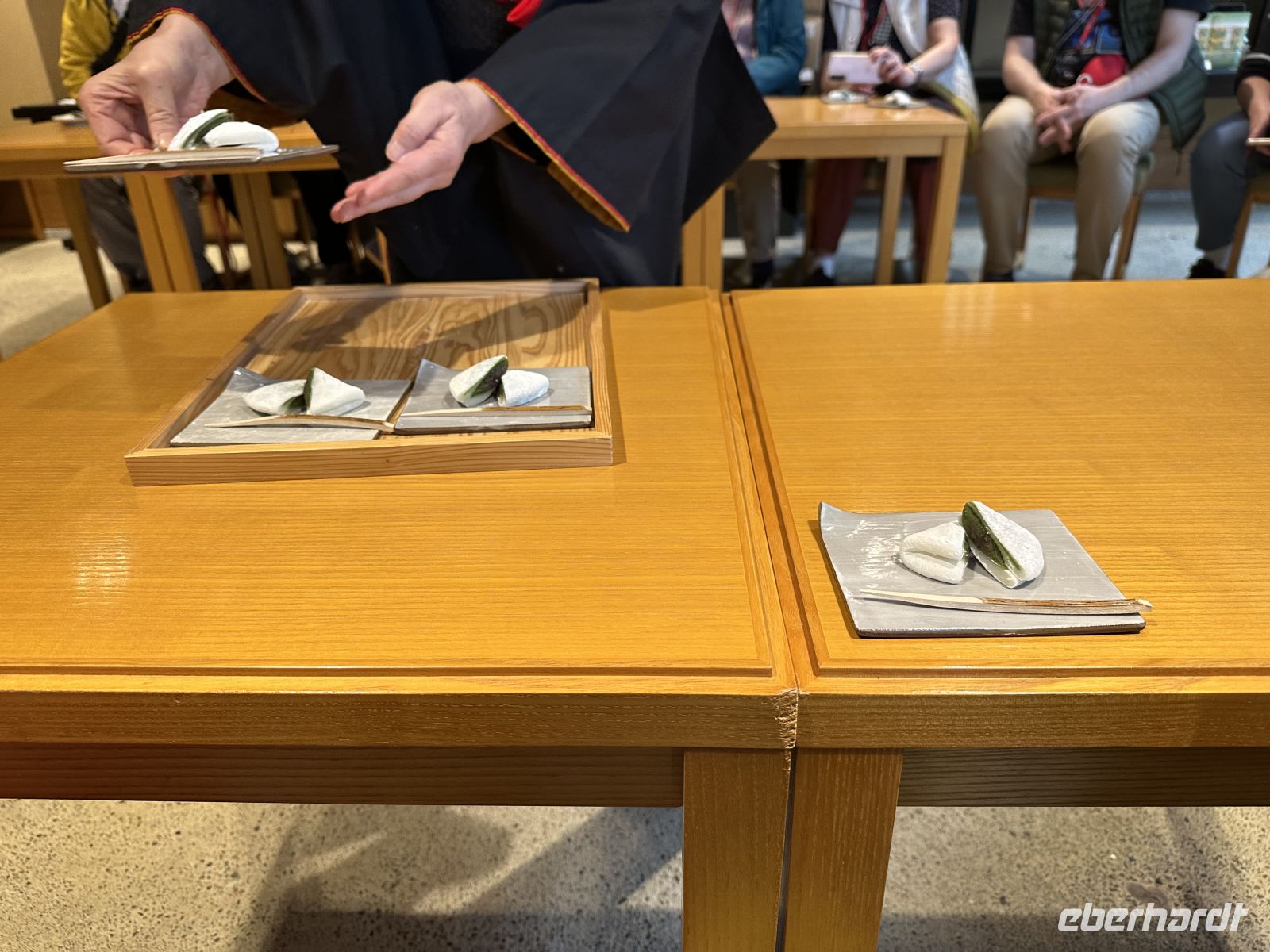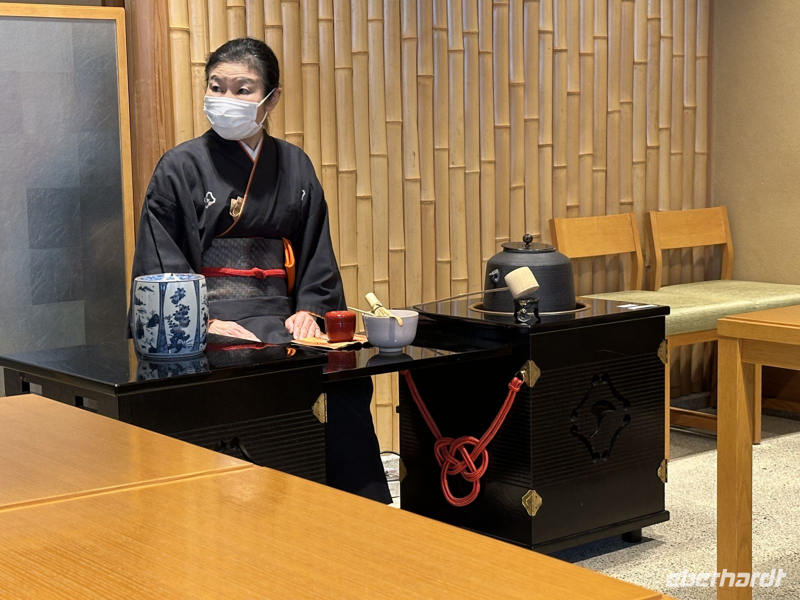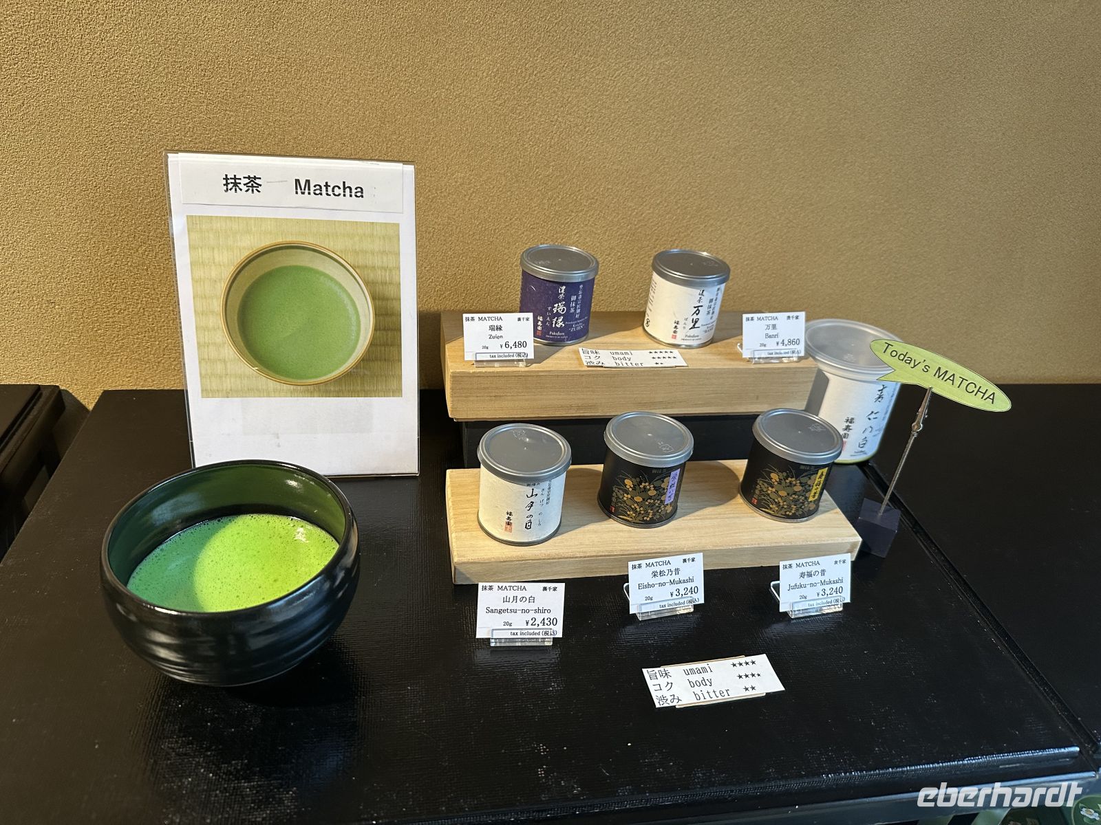 Anschließend tauchen wir tiefer in die japanische Kultur ein und besuchen das traditionsreiche Haus Fukujuen. Bei einer feierlichen Teezeremonie lernen wir die Kunst der Zubereitung von Matcha kennen. Die anschließende Verkostung überzeugt uns so sehr, dass viele von uns die Gelegenheit nutzen, hochwertigen Tee als Andenken für zu Hause zu kaufen.