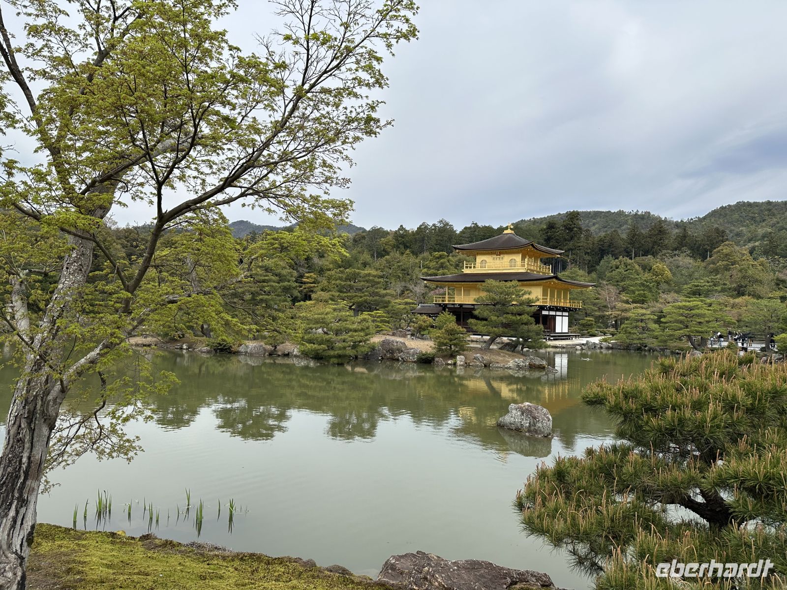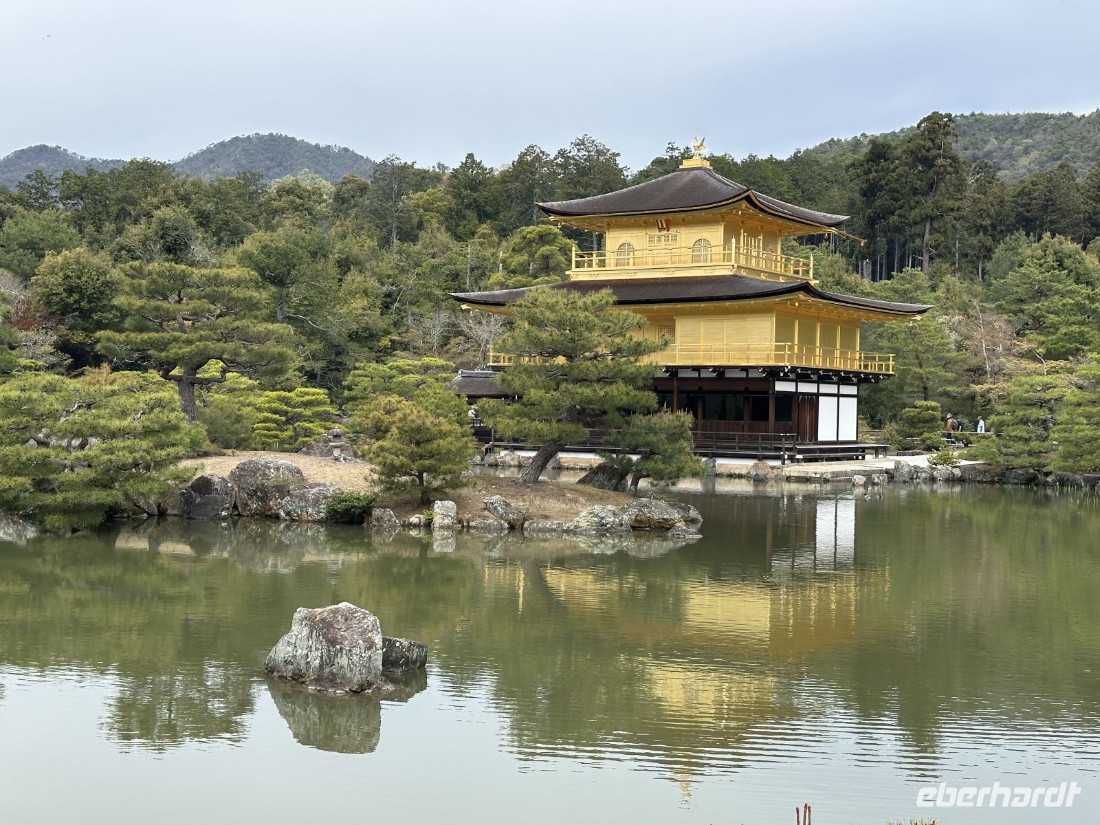 Nur einen kurzen Spaziergang entfernt erwartet uns ein glänzender Kontrast: Der Kinkaku-ji, der Goldene Pavillon. Die oberen Stockwerke sind komplett mit Blattgold überzogen und spiegeln sich im davorliegenden See. Ein Anblick, der trotz der vielen Besucher jedes Mal aufs Neue den Atem raubt.