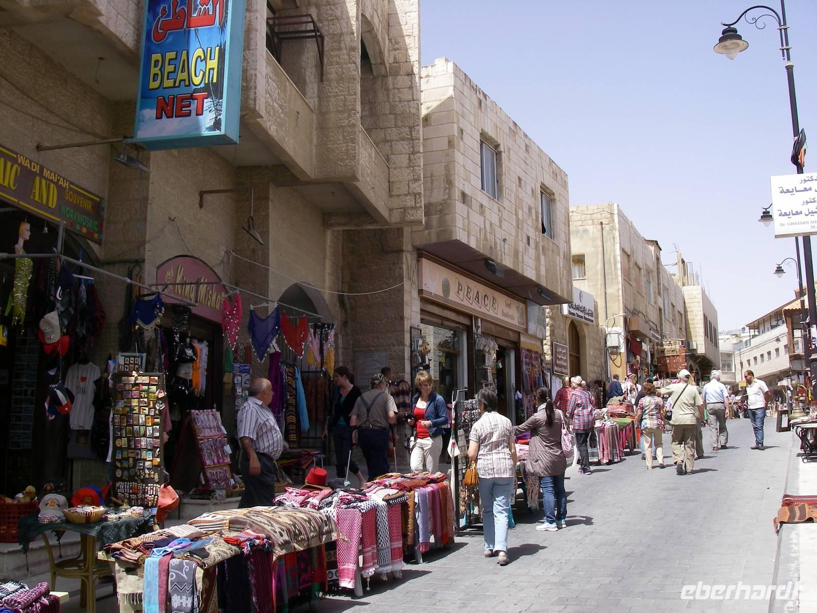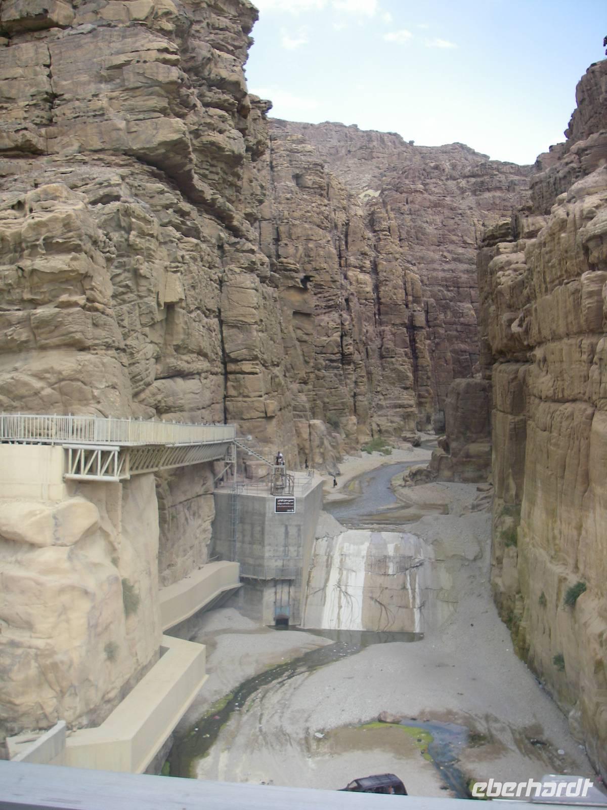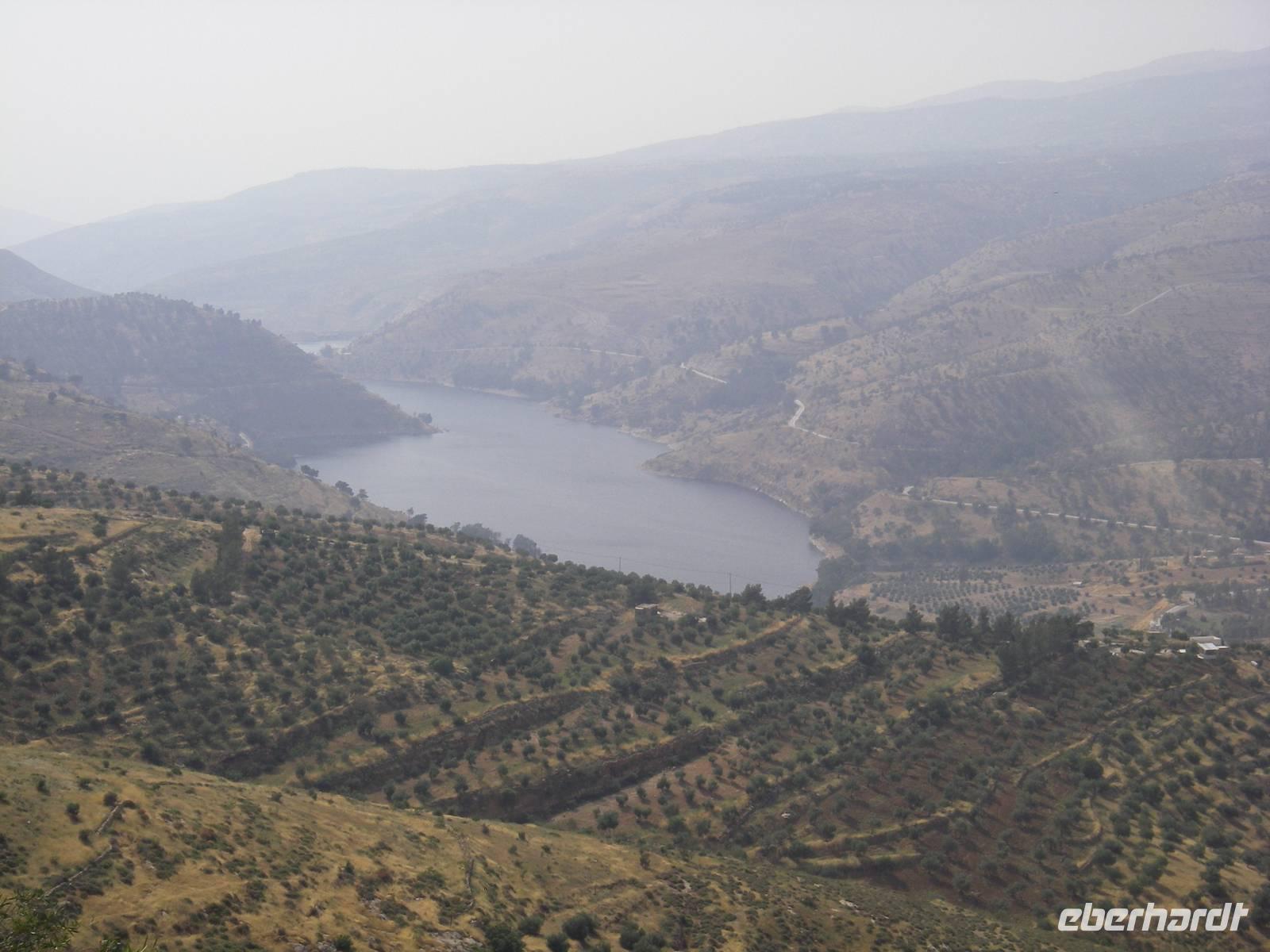 Bevor wir anschließend wieder zum Hotel in Amman fahren, schlendern wir noch etwas über den kleinen Basar am Parkplatz und erstehen erste kleine Souvenirs. Auf dem Weg zurück nach Amman legen wir noch einen kurzen Fotostopp an dem größten Stausee von Jordanien, dem Stausee König Abdullah, ein.