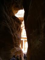 Heute steht das Highlight unserer Reise - die rosarote Felsenstadt Petra - auf dem Programm. Sie ist eines der sieben neuen Weltwunder und wird von T.E. Lawrence als „...der herrlichste Ort der Welt." bezeichnet. Der Name Petra kommt von dem griechischen Begriff Petros und bedeutet Felsen. Mit dem Bus erreichen wir in nur 10 Minuten den Eingang, wo Mahmoud unsere Eintrittskarten, welche mit den Vornamen der Gäste versehen sind, besorgt. Vom Besucherzentrum laufen wir bis zum Eingang vom Siq. Unterwegs sehen wir bereits die ersten Gräber, wie die Djin-Blöcke oder aber das Obeliskengrab. Bevor wir durch den Siq, der Hauptstraße nach Petra seit der Antike, laufen, erklärt uns Mahmoud, wer diese Nabatäer überhaupt waren. So erfahren wir, dass sie ein arabischer Nomadenstamm waren, die aus Süden heranzogen sind und um 500 v. Chr. die in dieser Region lebenden Edomiter verdrängten. Sie errichteten Petra als ihre Hauptstadt und entwickelten sich zu den Herrschern des gesamten Handelsraumes zwischen Damaskus und dem Sinai. Zudem hatten sie ein großes Wissen in Bezug auf Wasser. Denn wie wir später noch bei unserem Rundgang sehen werden, verfügt die Stadt über Zisternen, Kanäle, Dämme und Aquädukte, welche die Wasserversorgung der Stadt mit ca. 30.000 Einwohnern sicherten. 328 n. Chr. wurde das letzte Mal von den Nabatäer gehört, danach verliert sich ihre Spur. Erst im Jahre 1812 wurde Petra von dem Schweizer Orientalist Johann Ludwig Burckhardt wiederentdeckt.